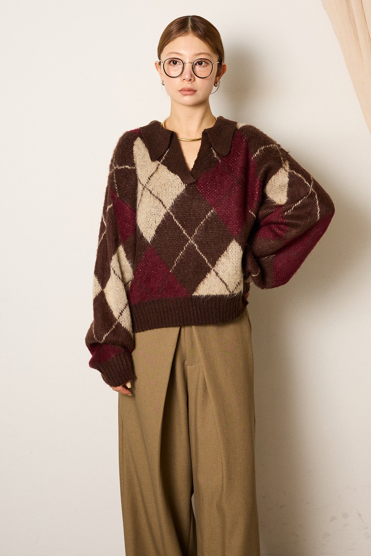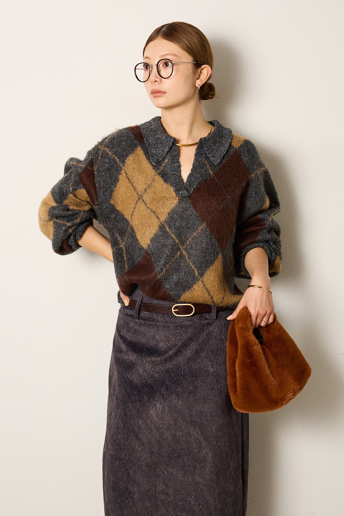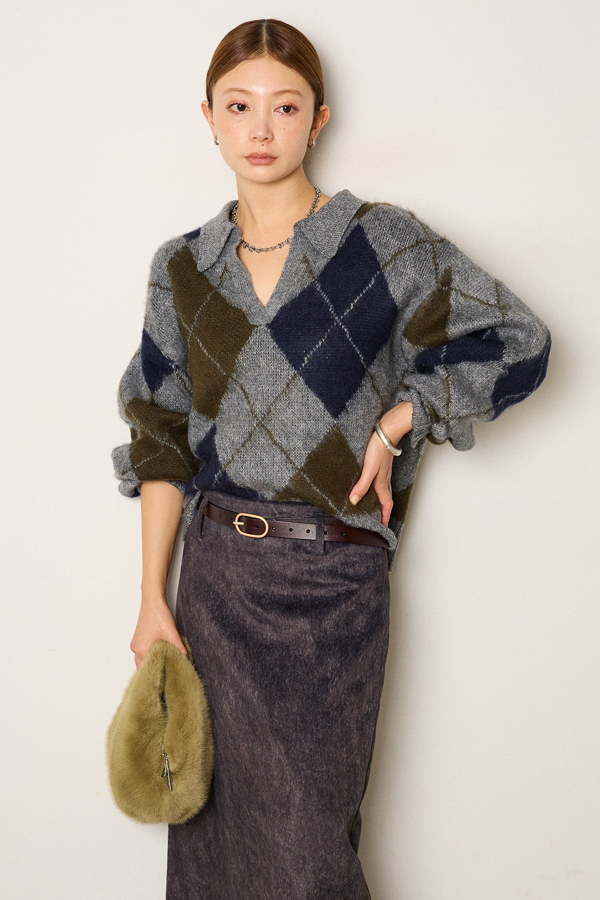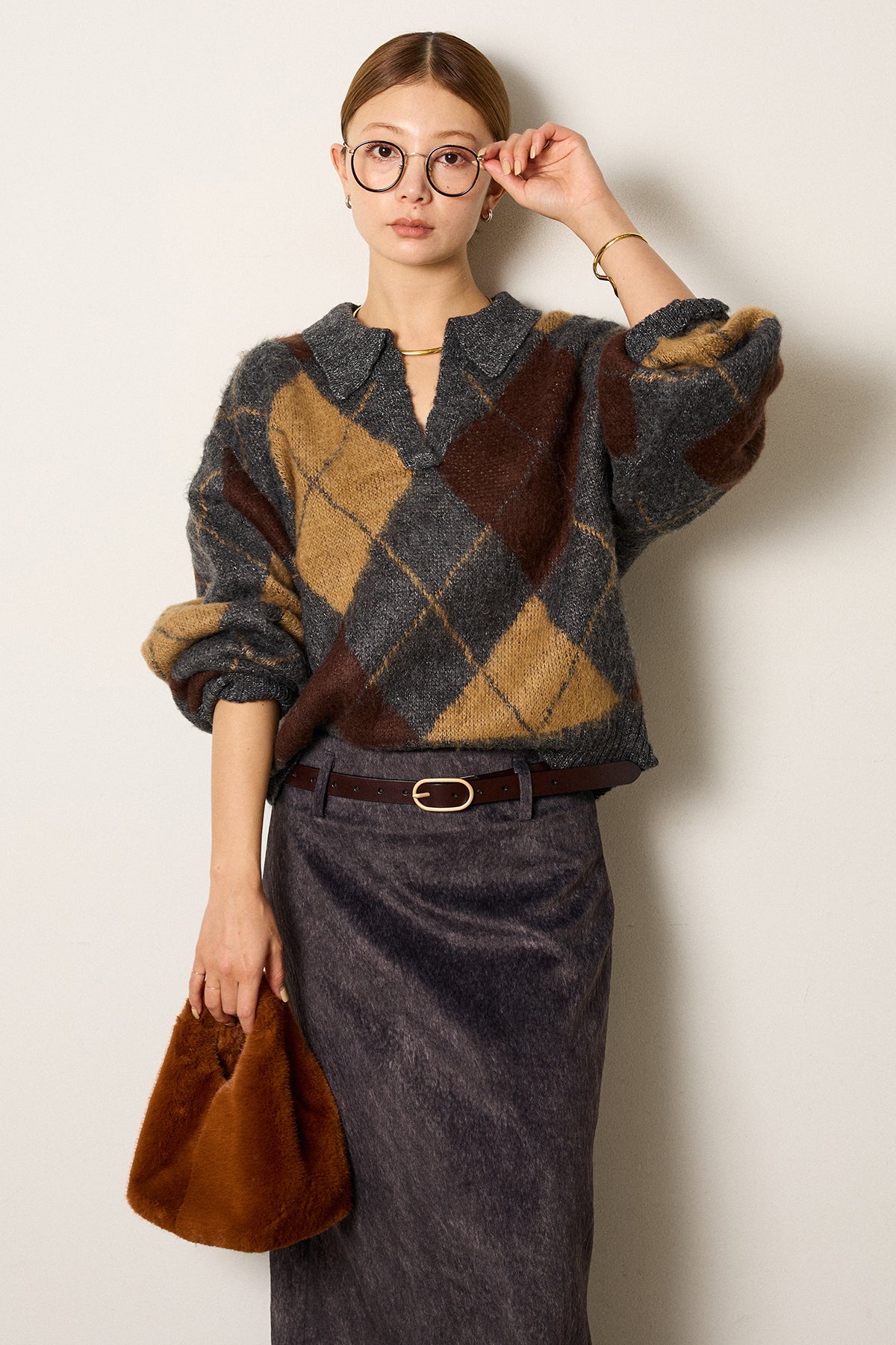 アクリルモヘアアーガイルキーネックプルオーバーの他のセットページはこちら