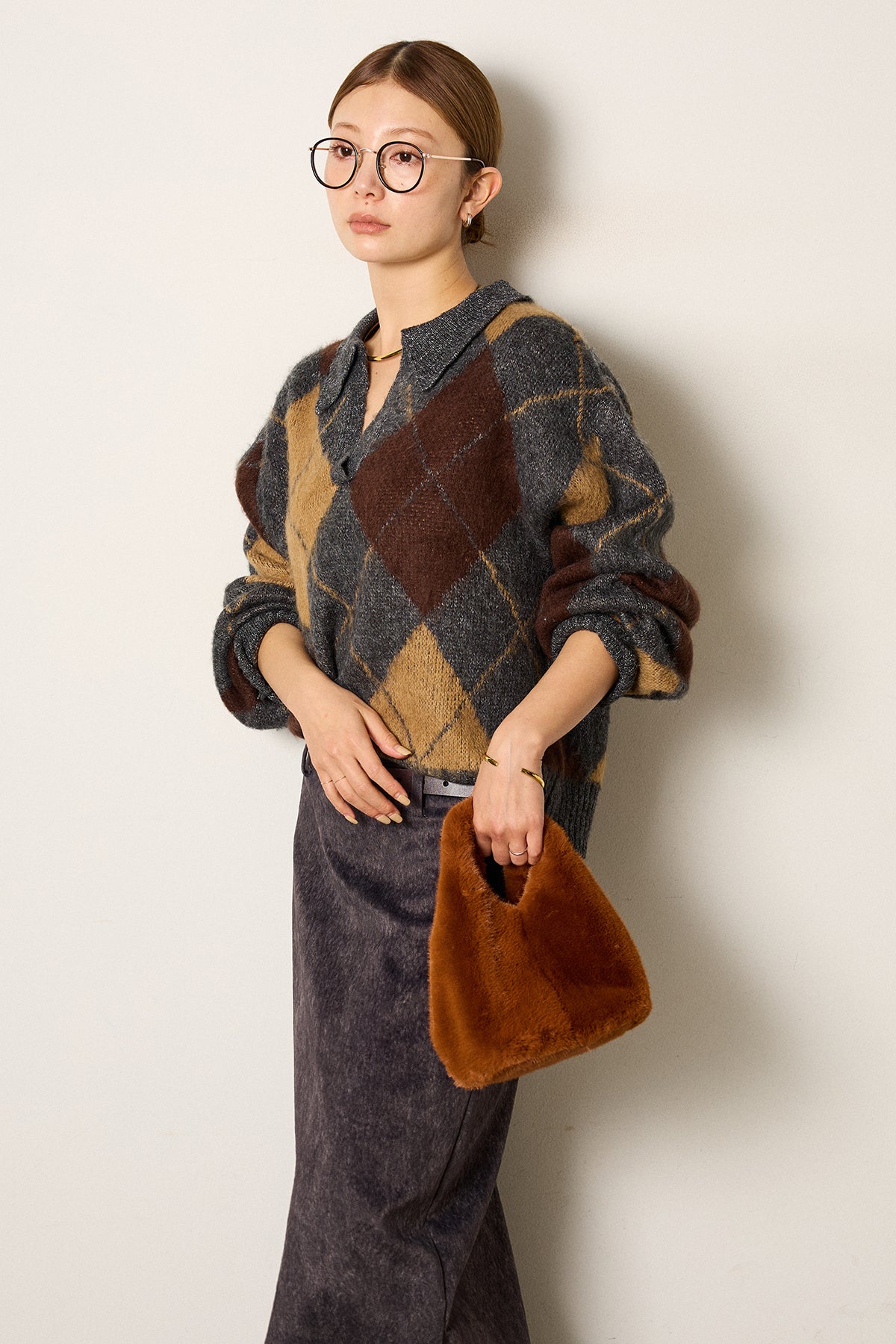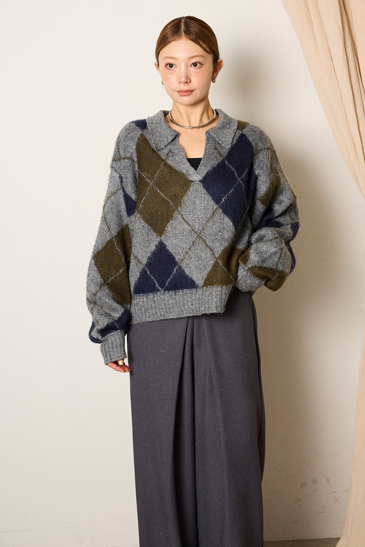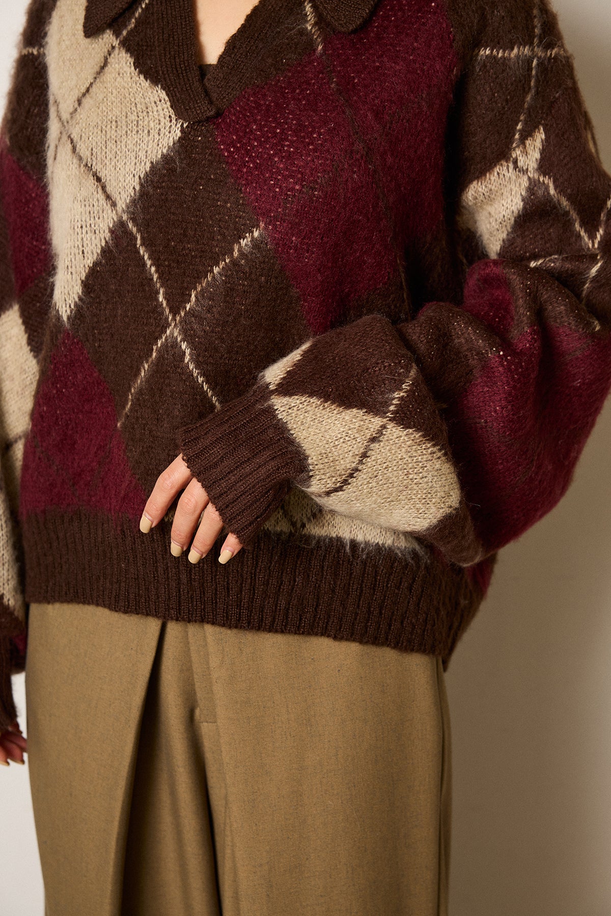 ◆ アクリルモヘアアーガイルキーネックプルオーバー