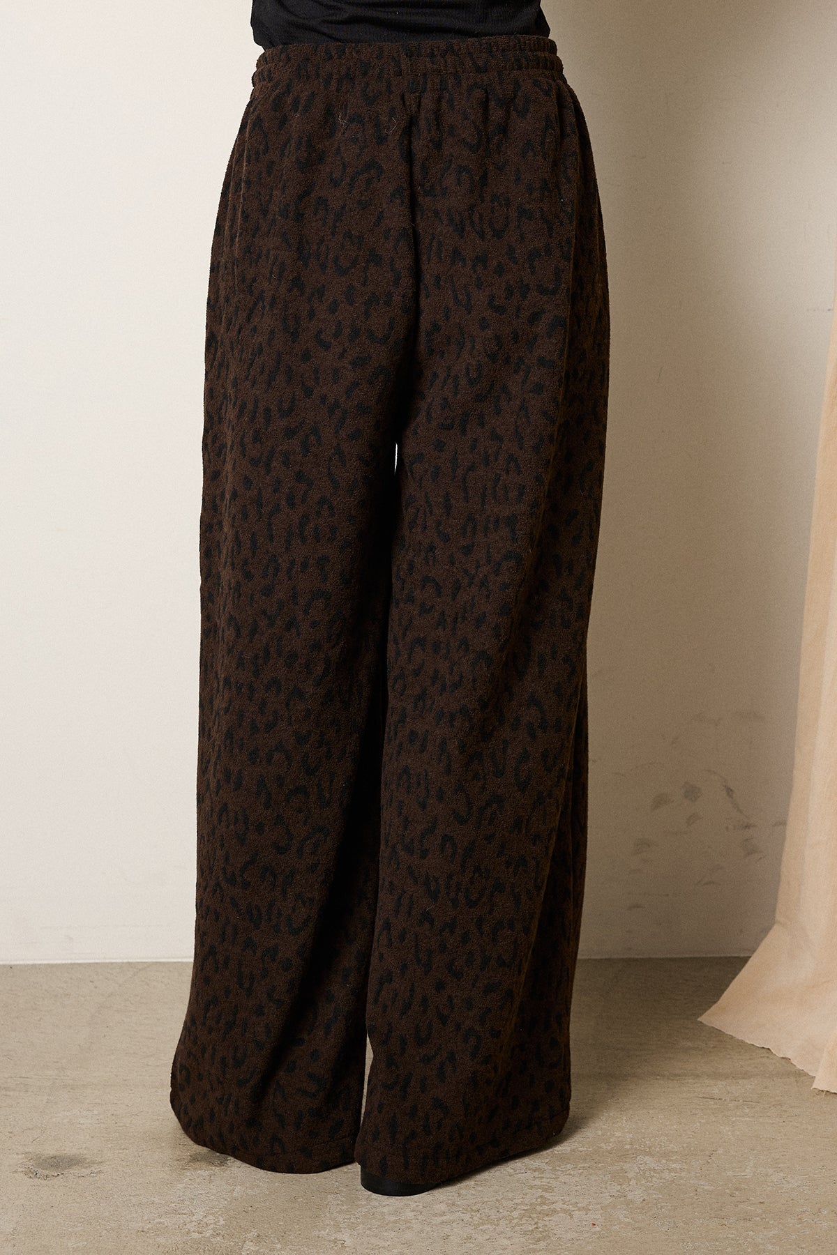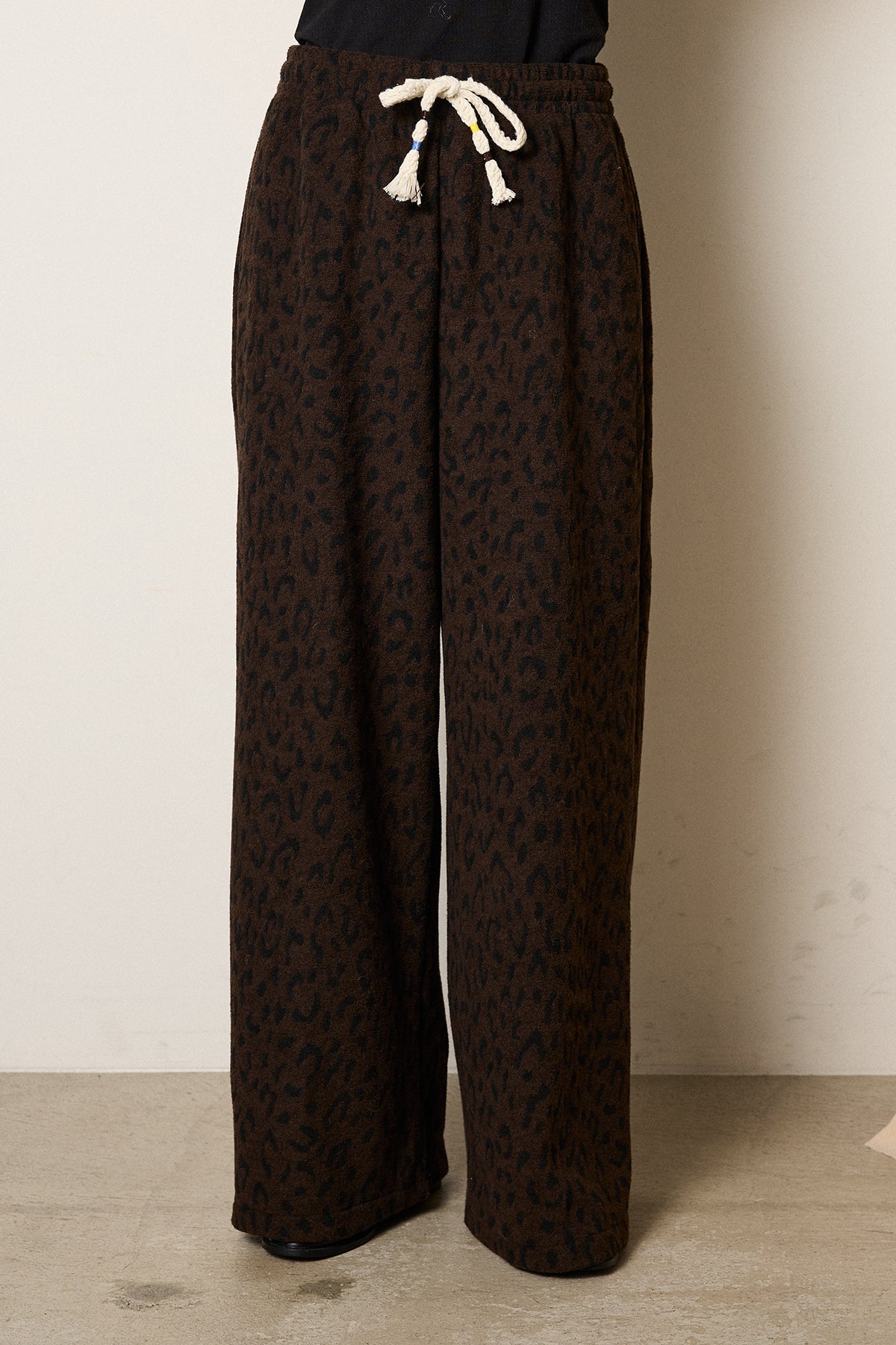 レオパード柄をジャガードで表現したニットパンツ。 程よい厚みと柔らかさのある素材で、リラックス感のある穿き心地が魅力です。 ウエストはドローストリング仕様で調整がしやすく、こなれた雰囲気をプラス。 シンプルなトップスを合わせるだけで、存在感のあるスタイルが完成します。 大人の抜け感を楽しめる、シーズンムード漂うアイテムです。
