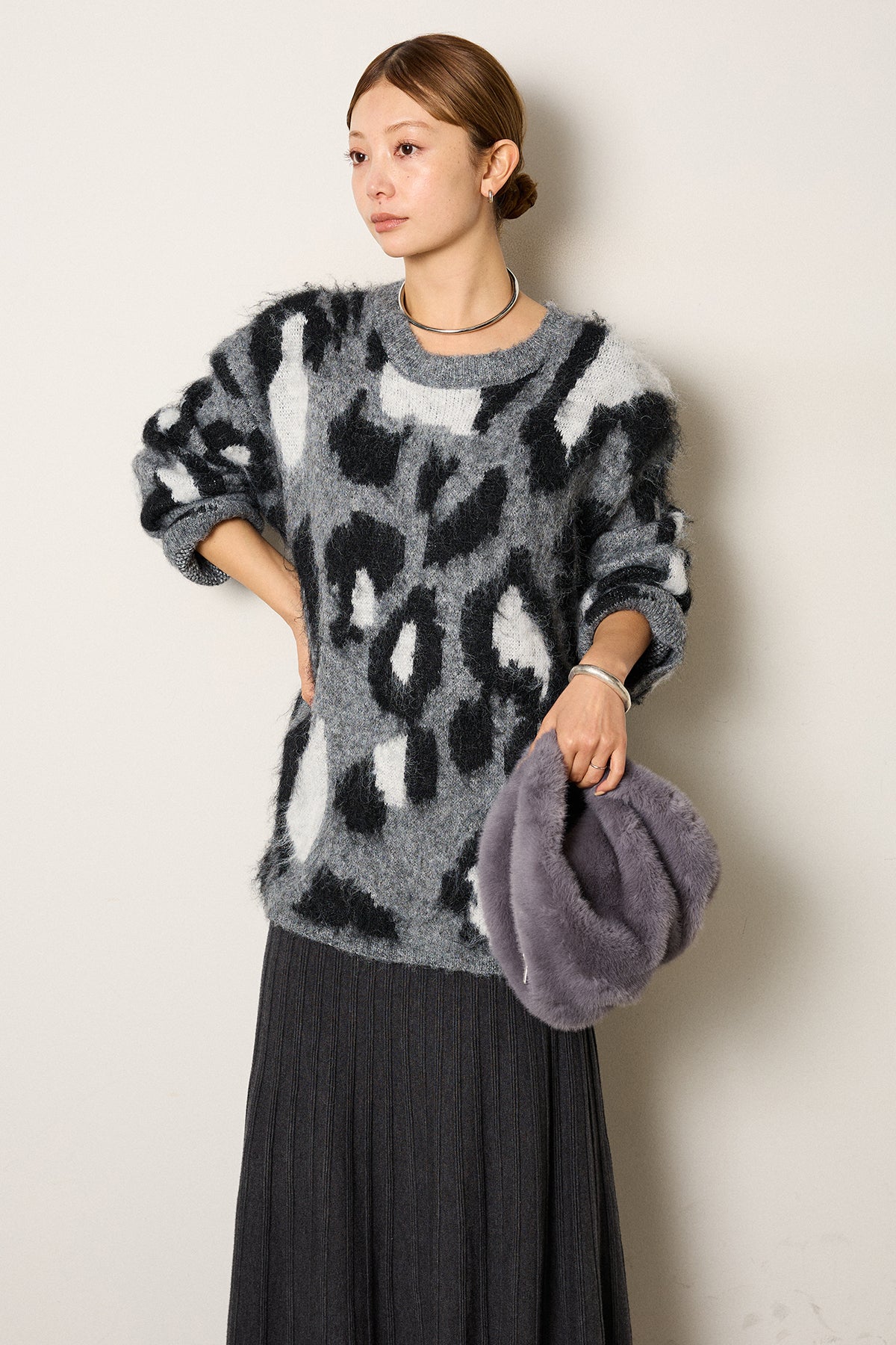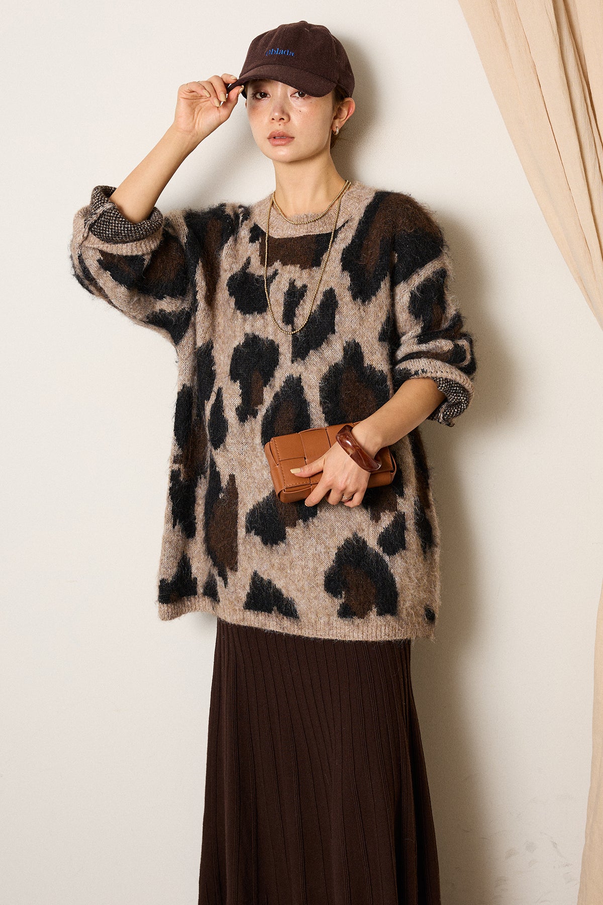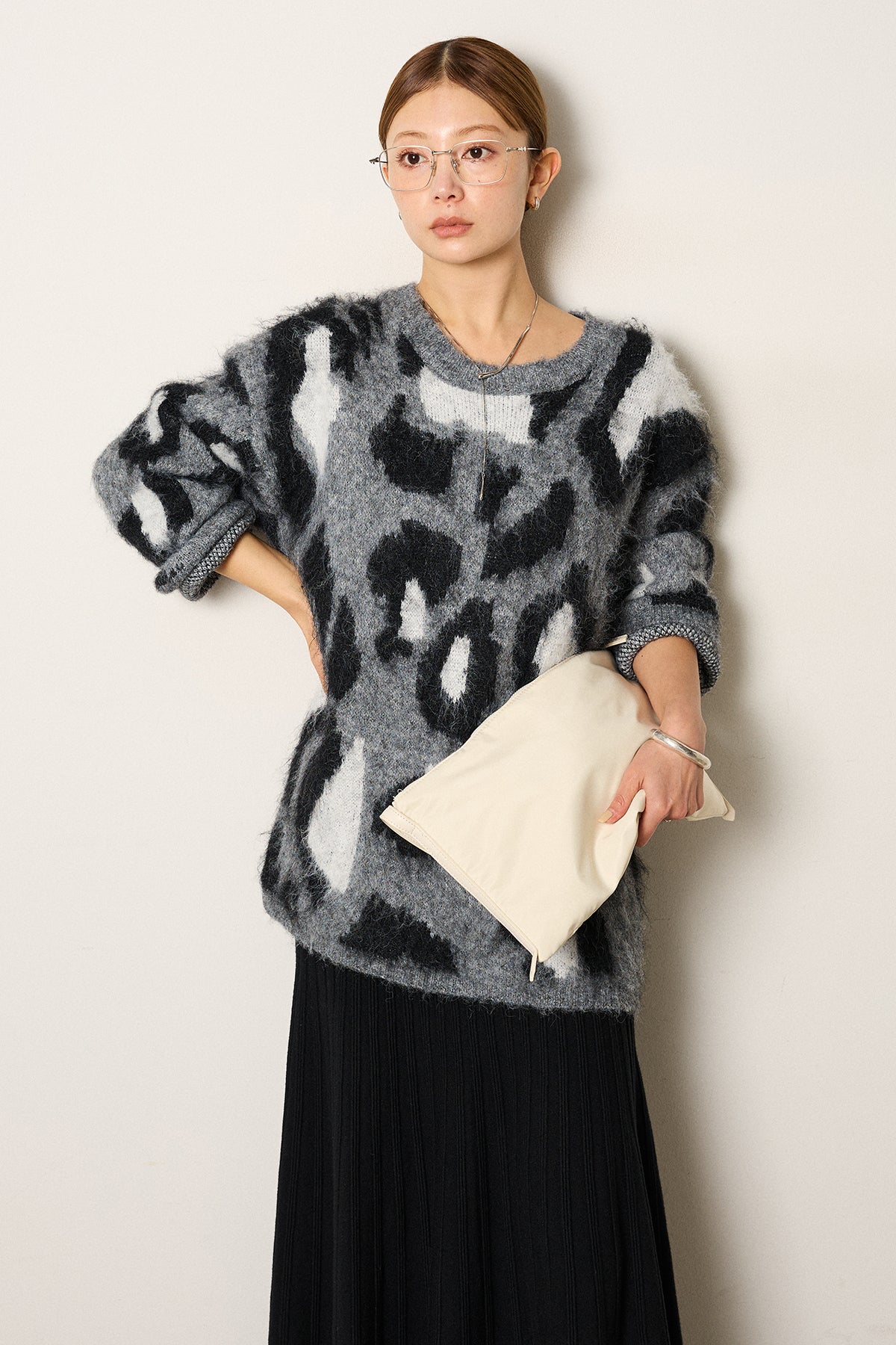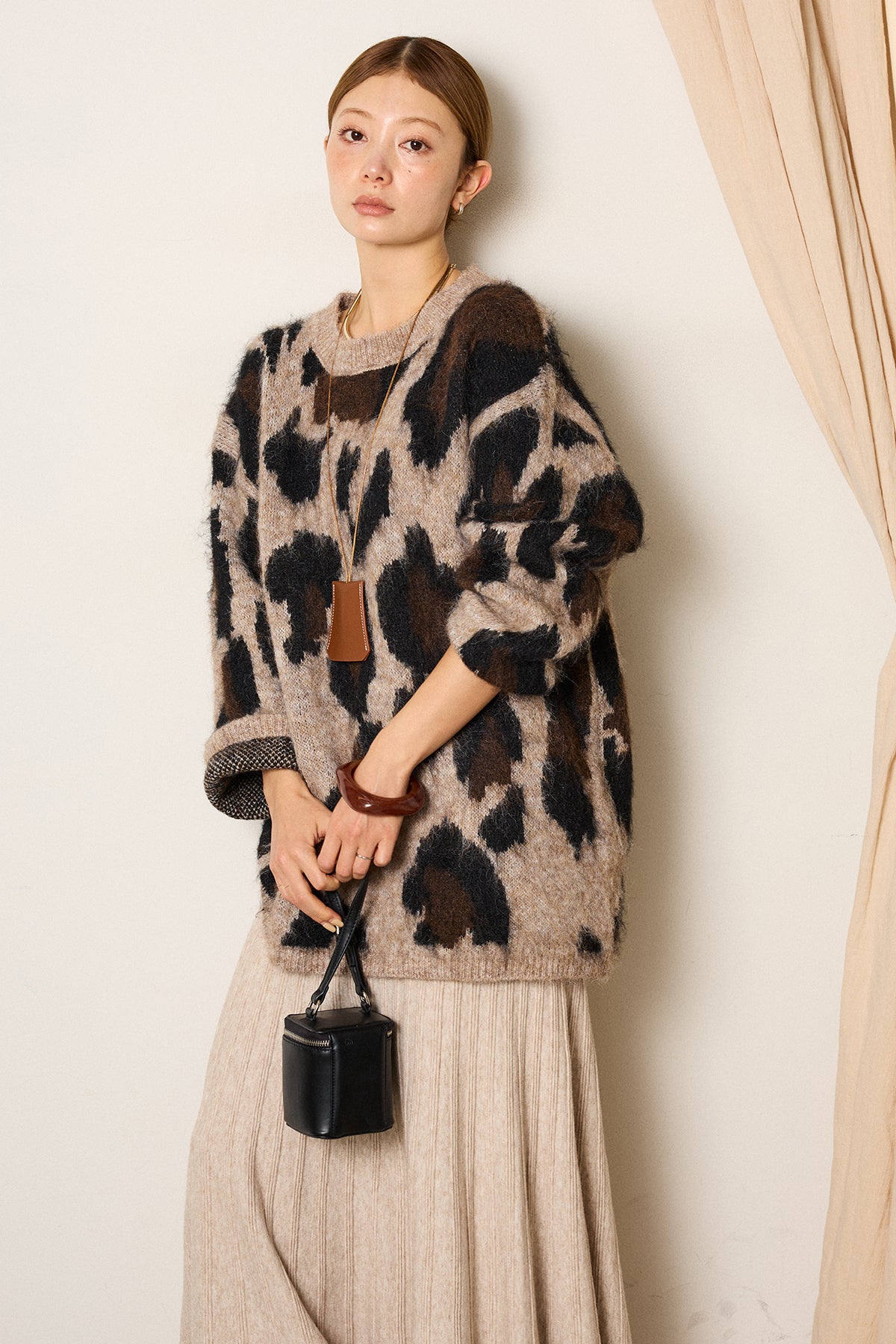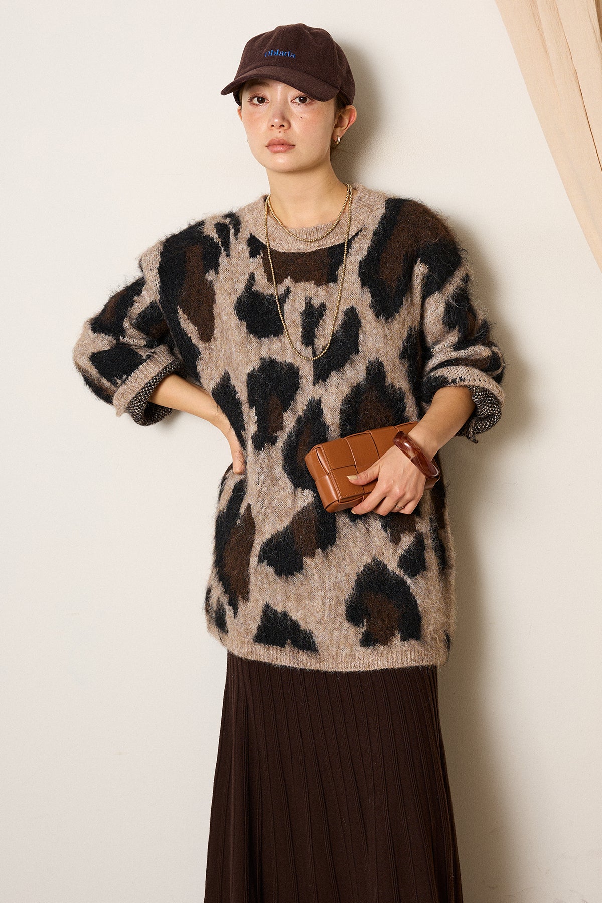 ふわふわとしたモヘア素材が魅力のルーズニット。 存在感のあるアニマル柄がスタイリングの主役になり、トレンド感と季節感を両立します。 ゆったりとしたシルエットでリラクシーな着心地ながら、ボリュームスリーブが程よい抜け感をプラス。 シンプルなボトムに合わせるだけで、大人のカジュアルスタイルが完成します。