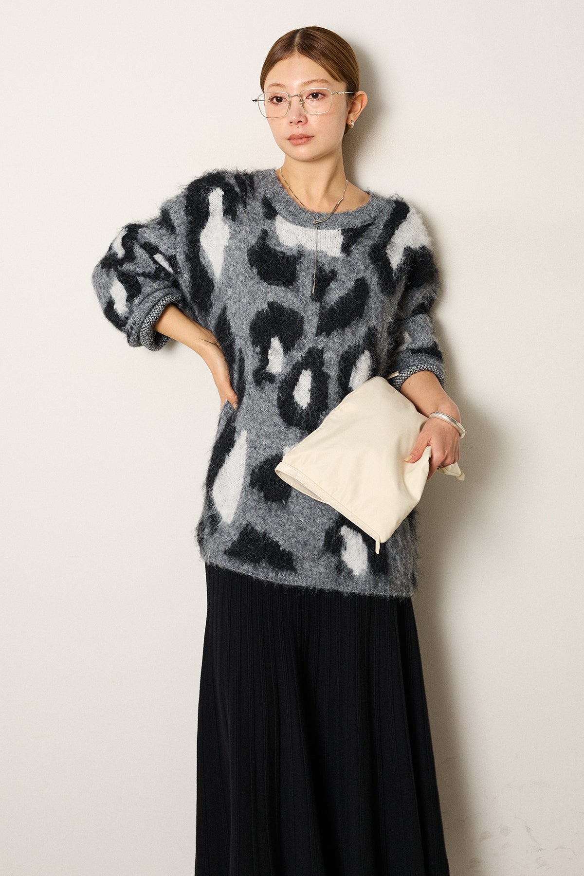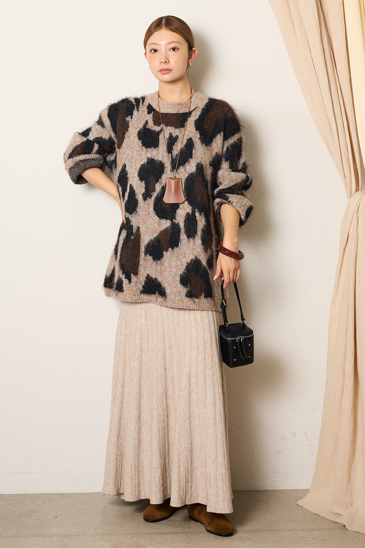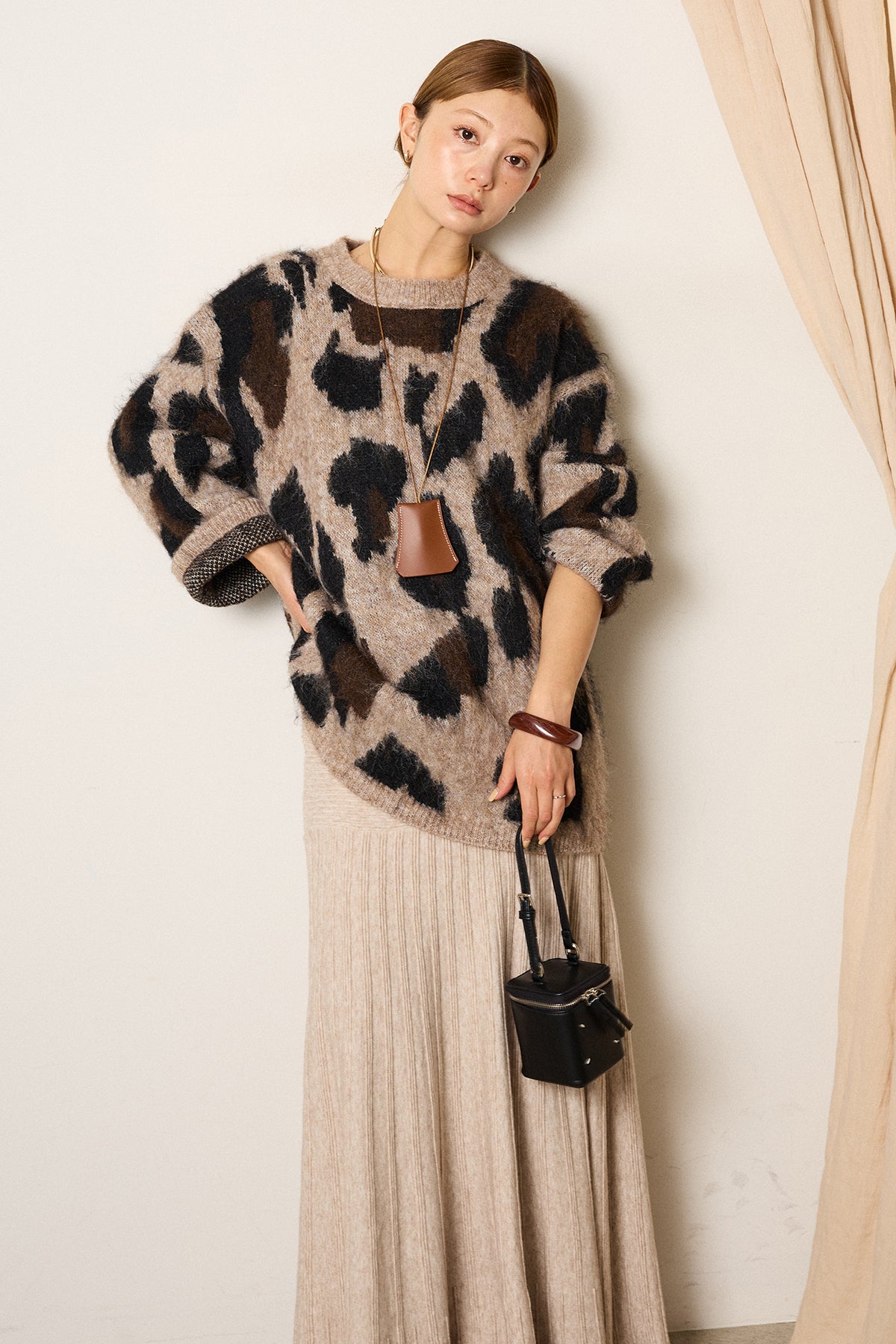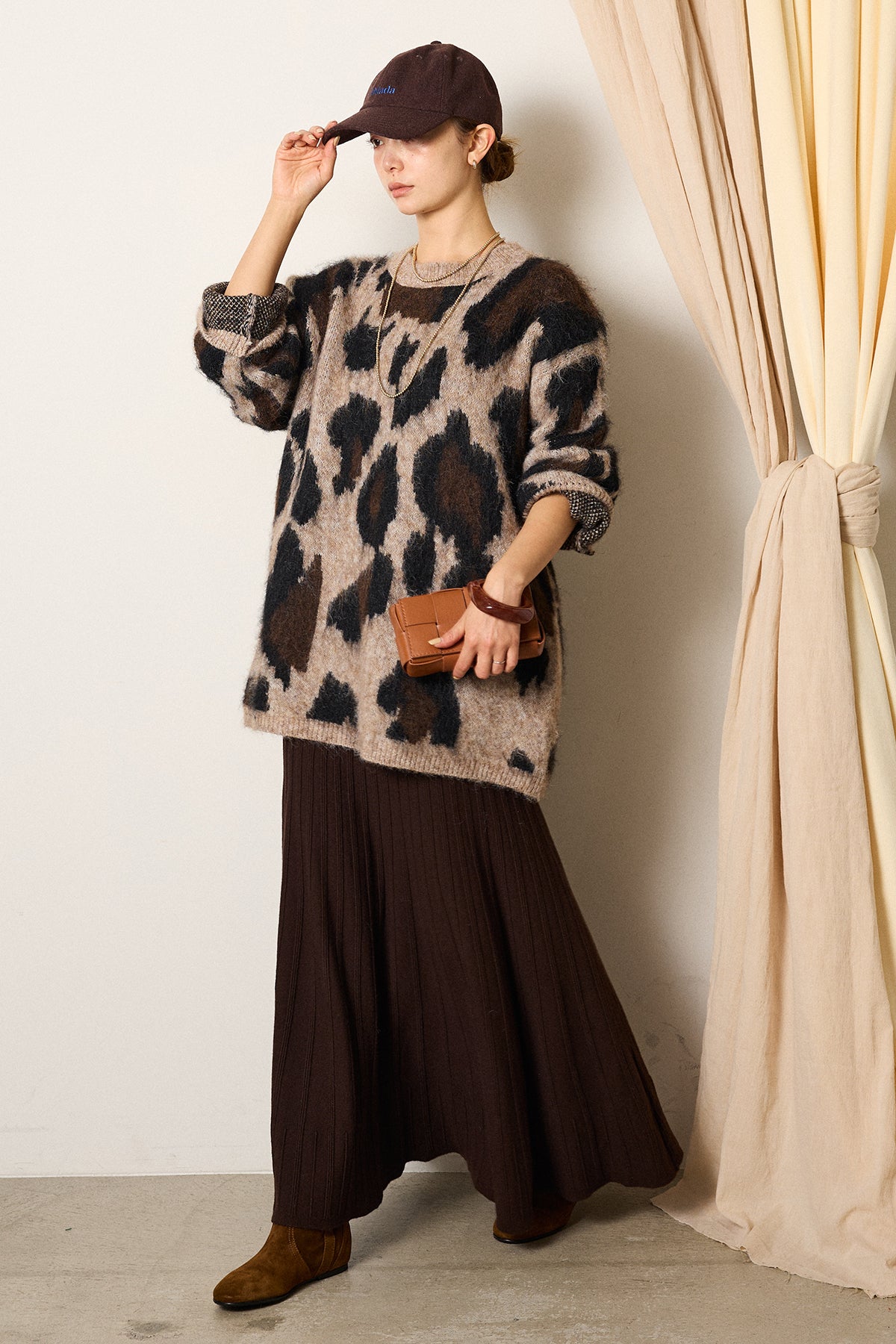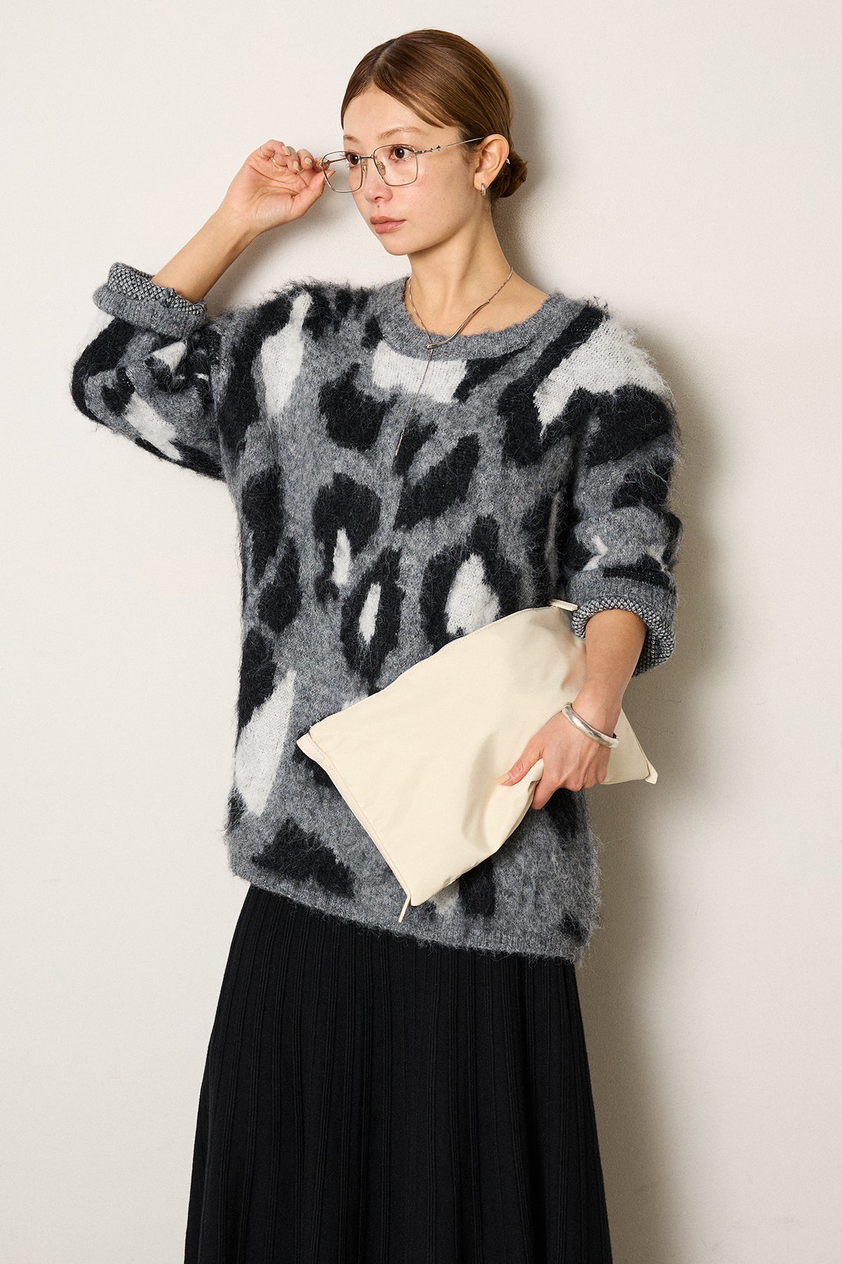 ふわふわとしたモヘア素材が魅力のルーズニット。 存在感のあるアニマル柄がスタイリングの主役になり、トレンド感と季節感を両立します。 ゆったりとしたシルエットでリラクシーな着心地ながら、ボリュームスリーブが程よい抜け感をプラス。 シンプルなボトムに合わせるだけで、大人のカジュアルスタイルが完成します。