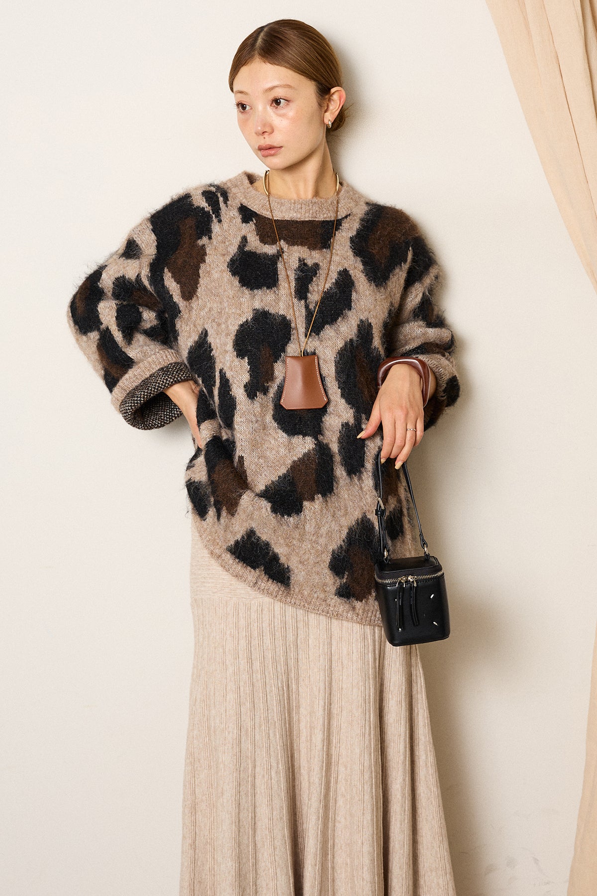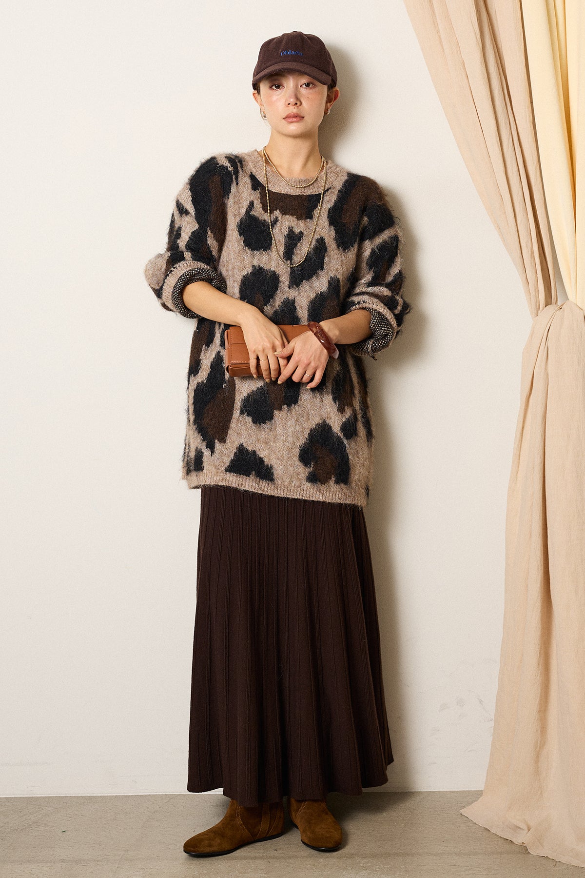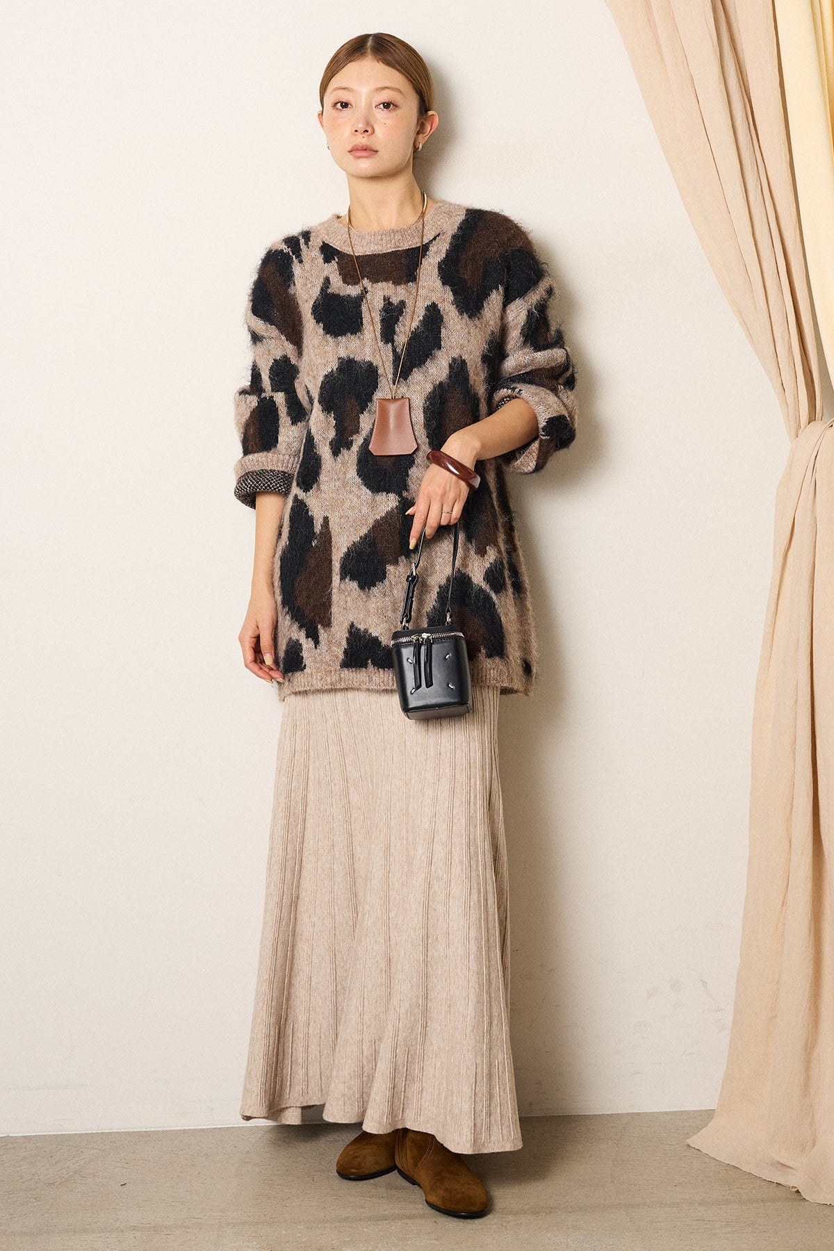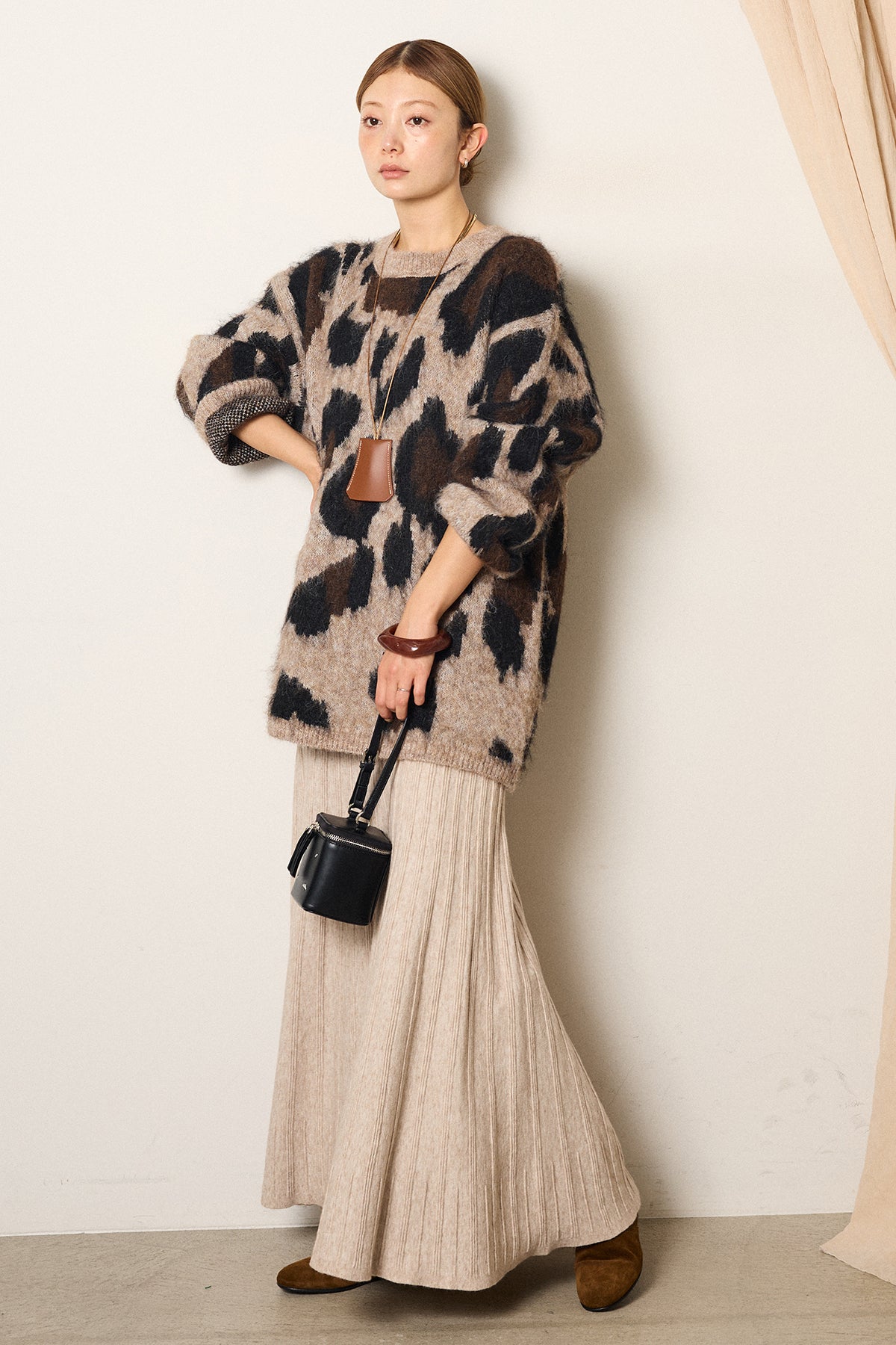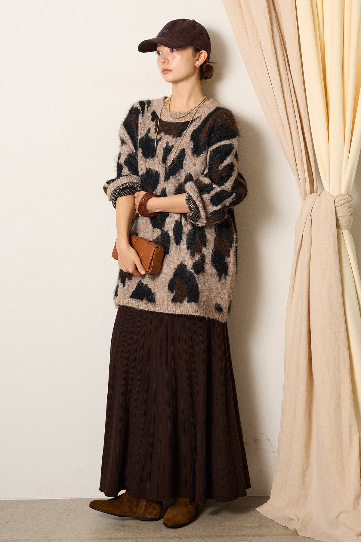 ふわふわとしたモヘア素材が魅力のルーズニット。 存在感のあるアニマル柄がスタイリングの主役になり、トレンド感と季節感を両立します。 ゆったりとしたシルエットでリラクシーな着心地ながら、ボリュームスリーブが程よい抜け感をプラス。 シンプルなボトムに合わせるだけで、大人のカジュアルスタイルが完成します。