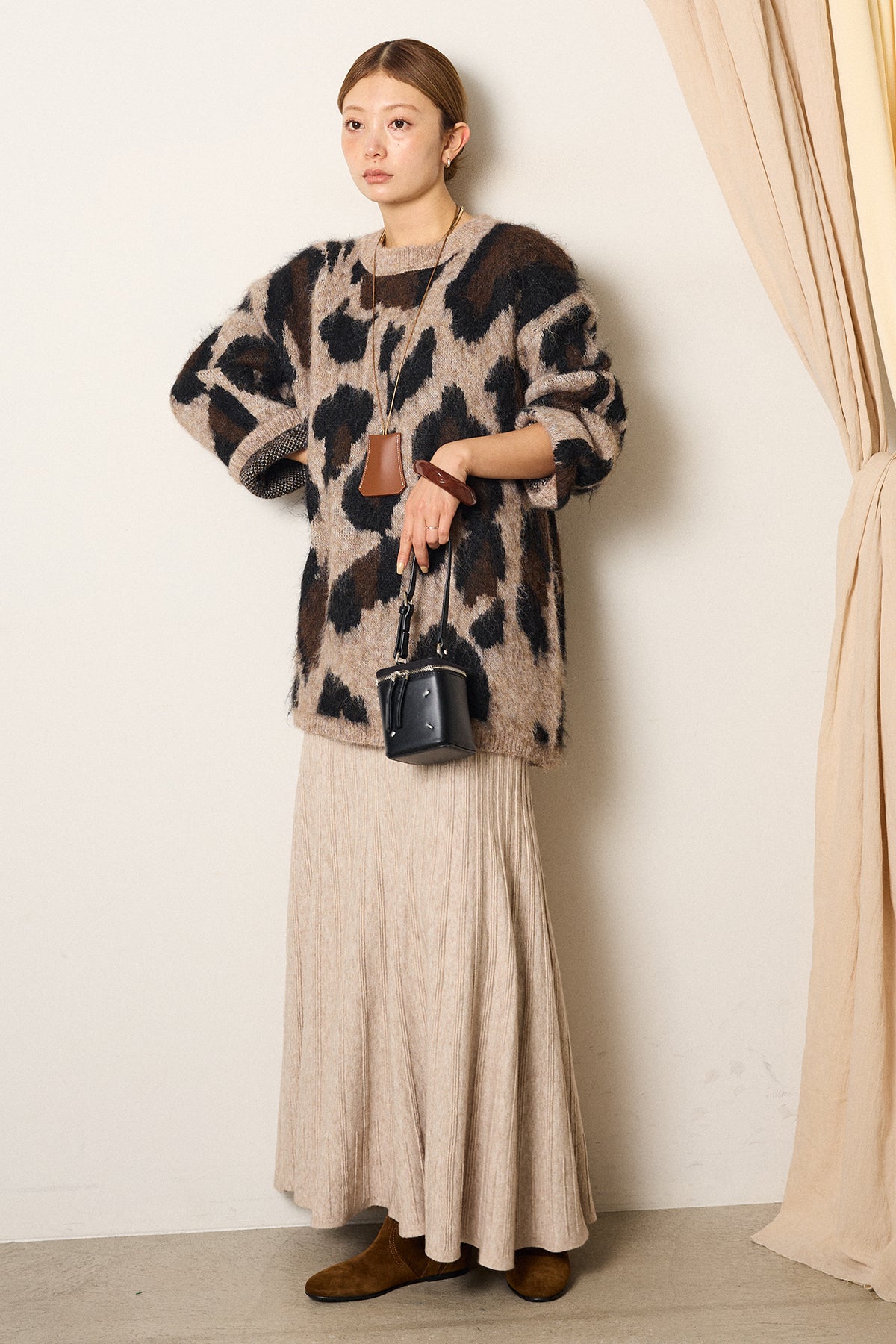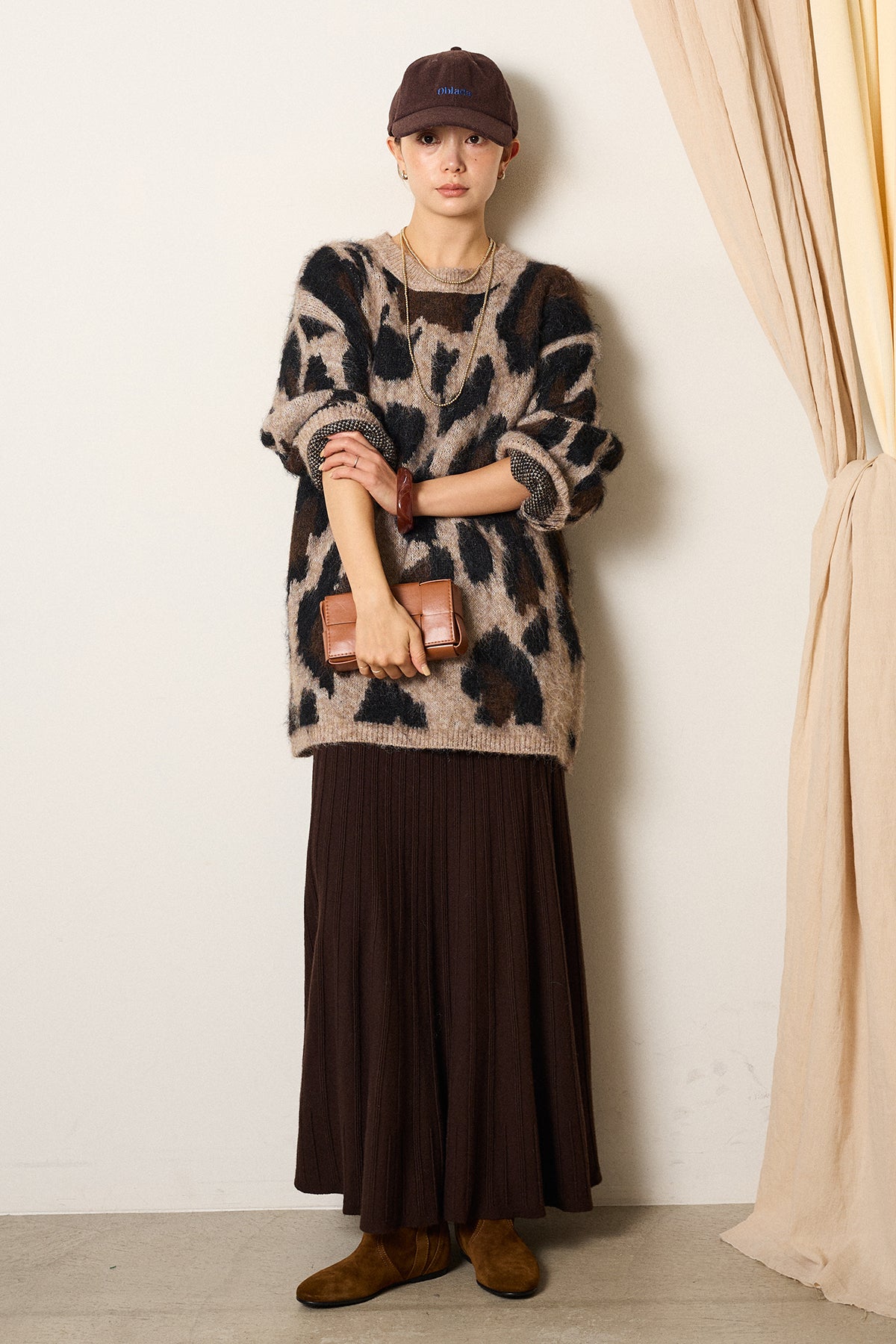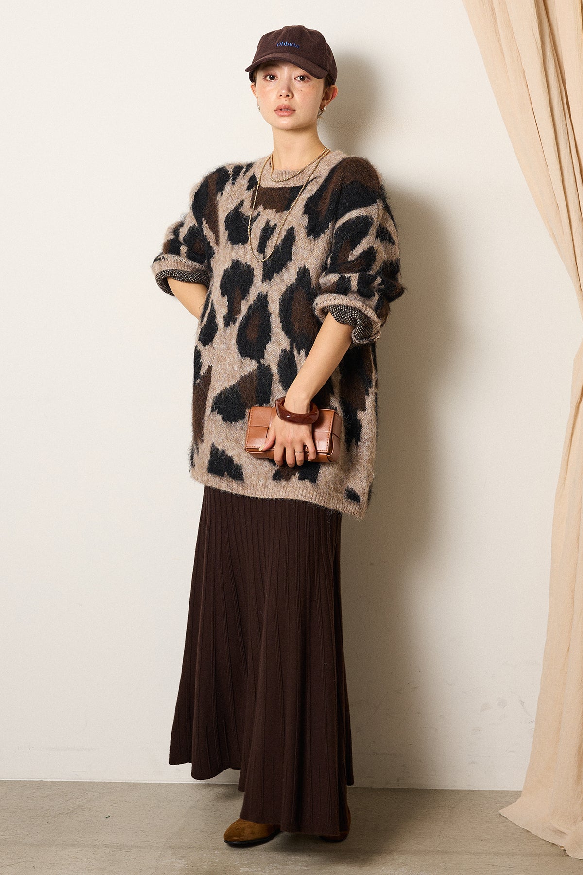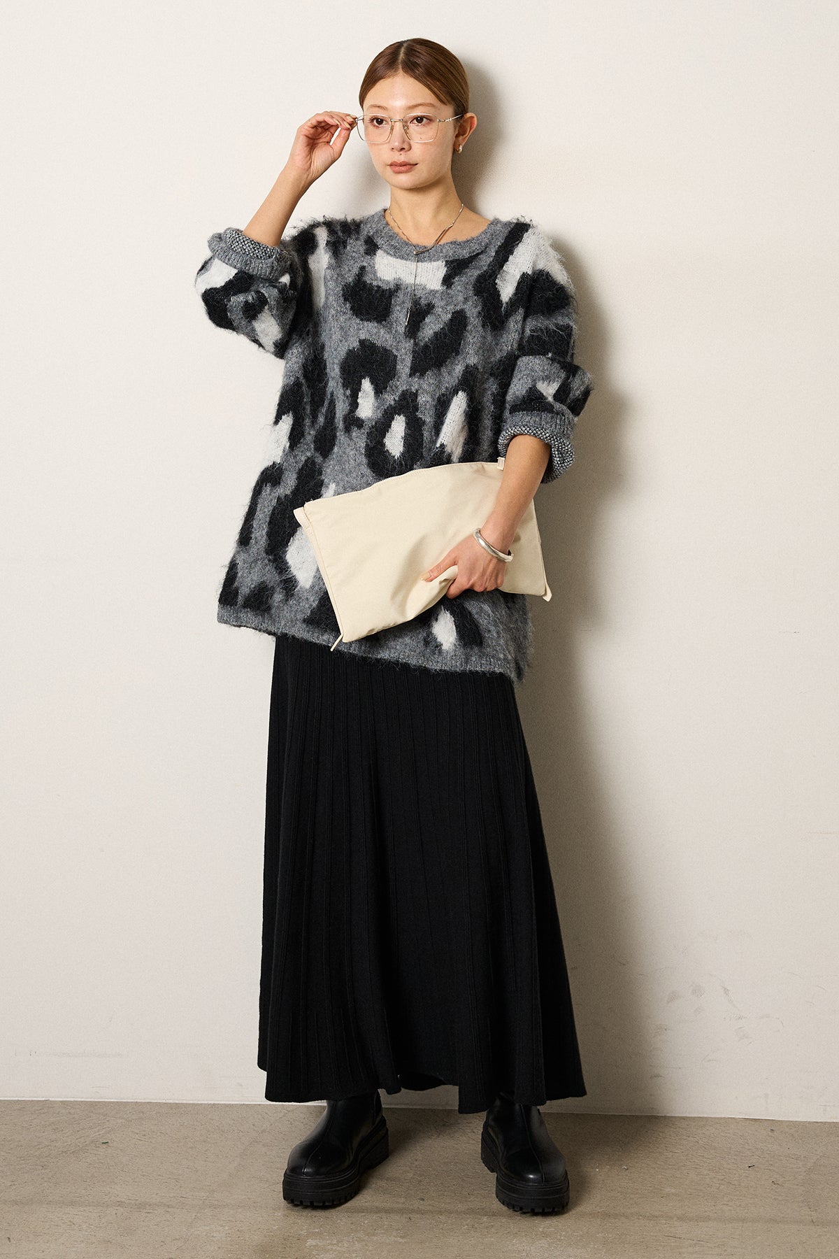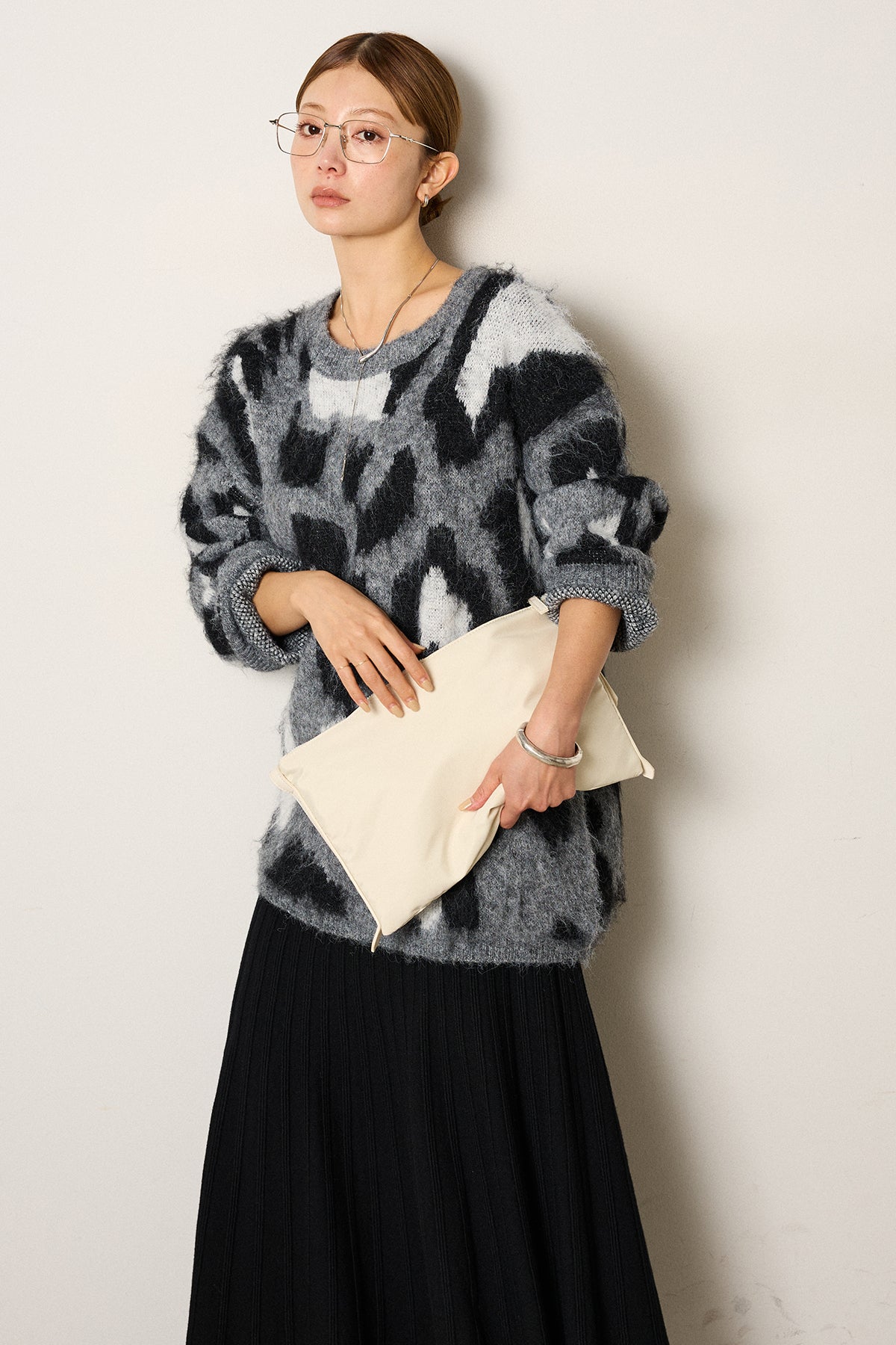 ふわふわとしたモヘア素材が魅力のルーズニット。 存在感のあるアニマル柄がスタイリングの主役になり、トレンド感と季節感を両立します。 ゆったりとしたシルエットでリラクシーな着心地ながら、ボリュームスリーブが程よい抜け感をプラス。 シンプルなボトムに合わせるだけで、大人のカジュアルスタイルが完成します。