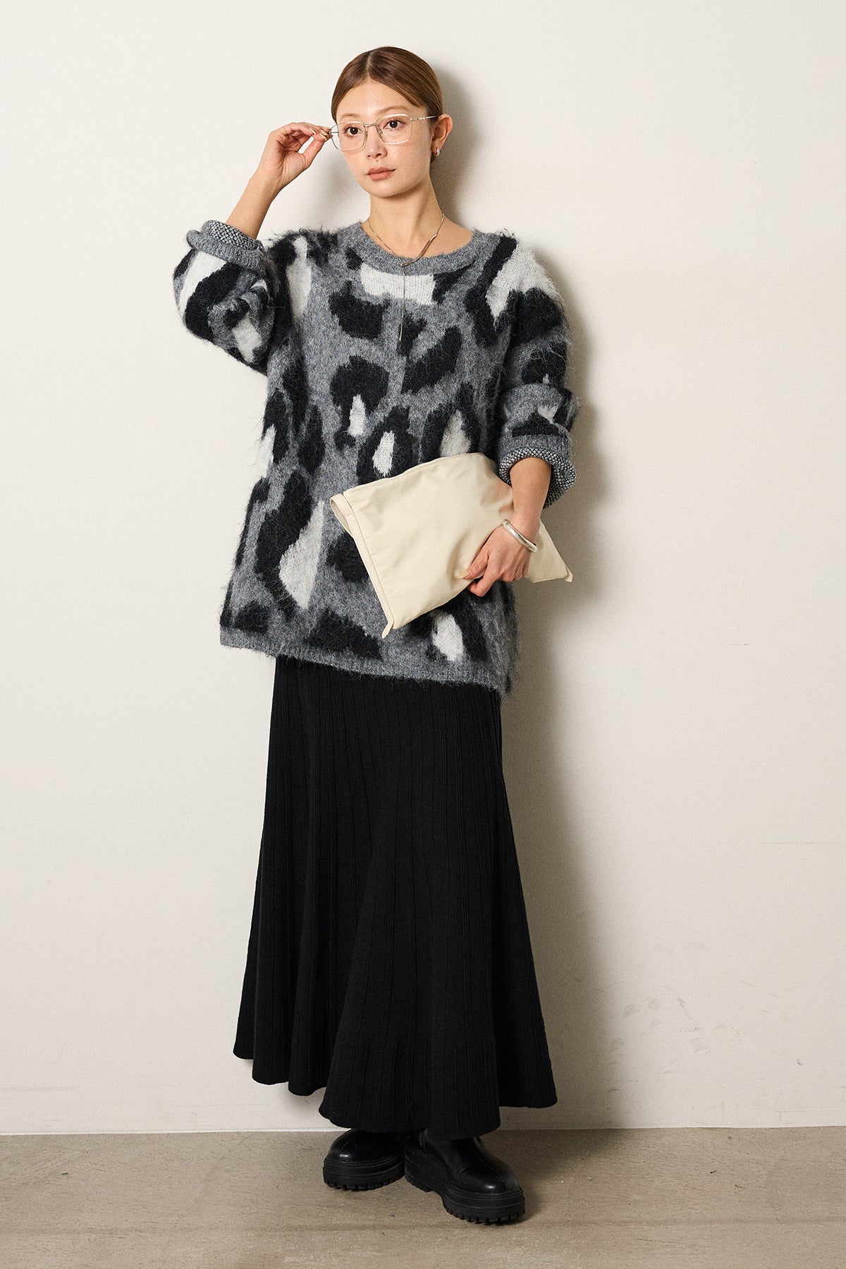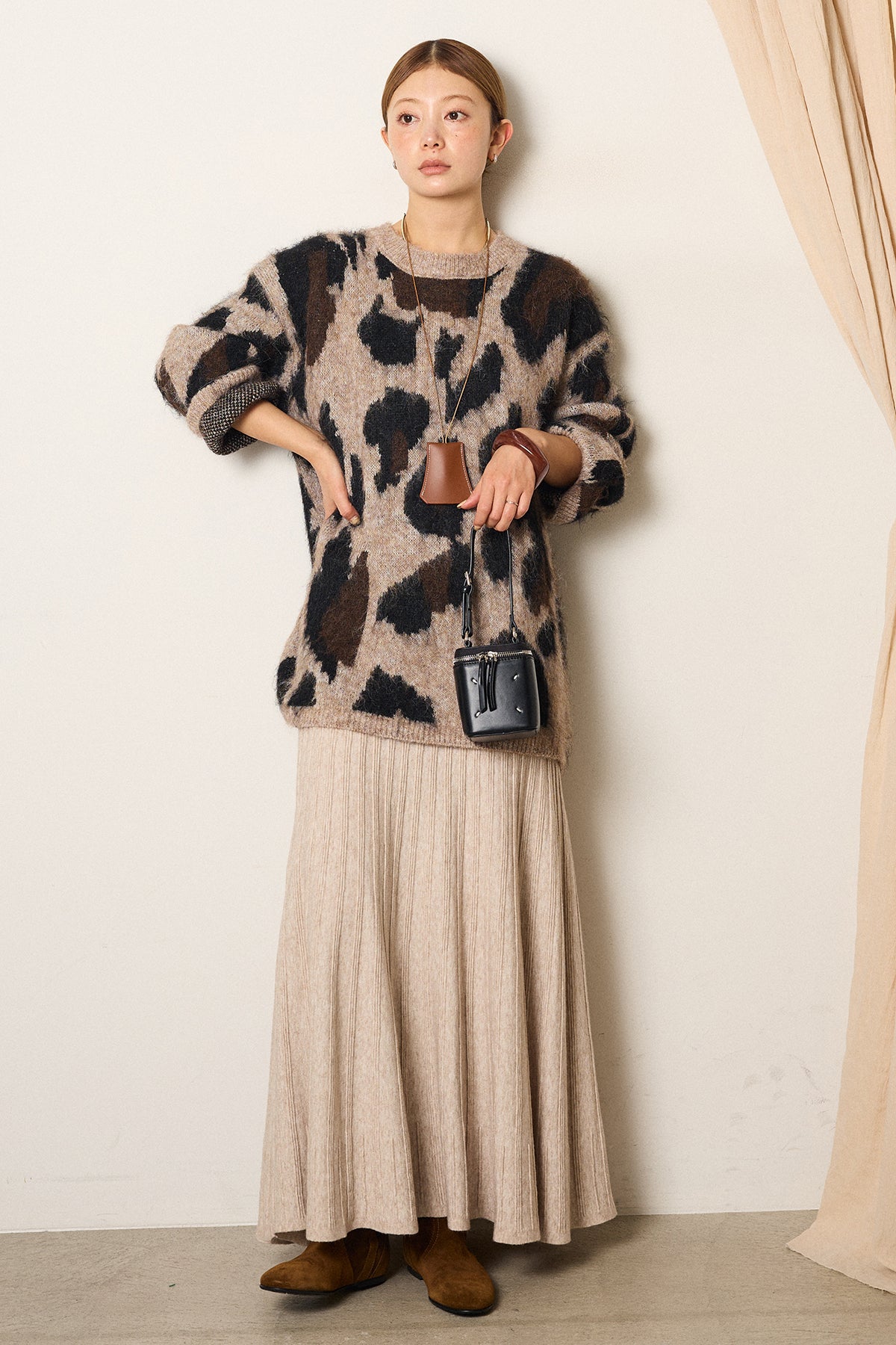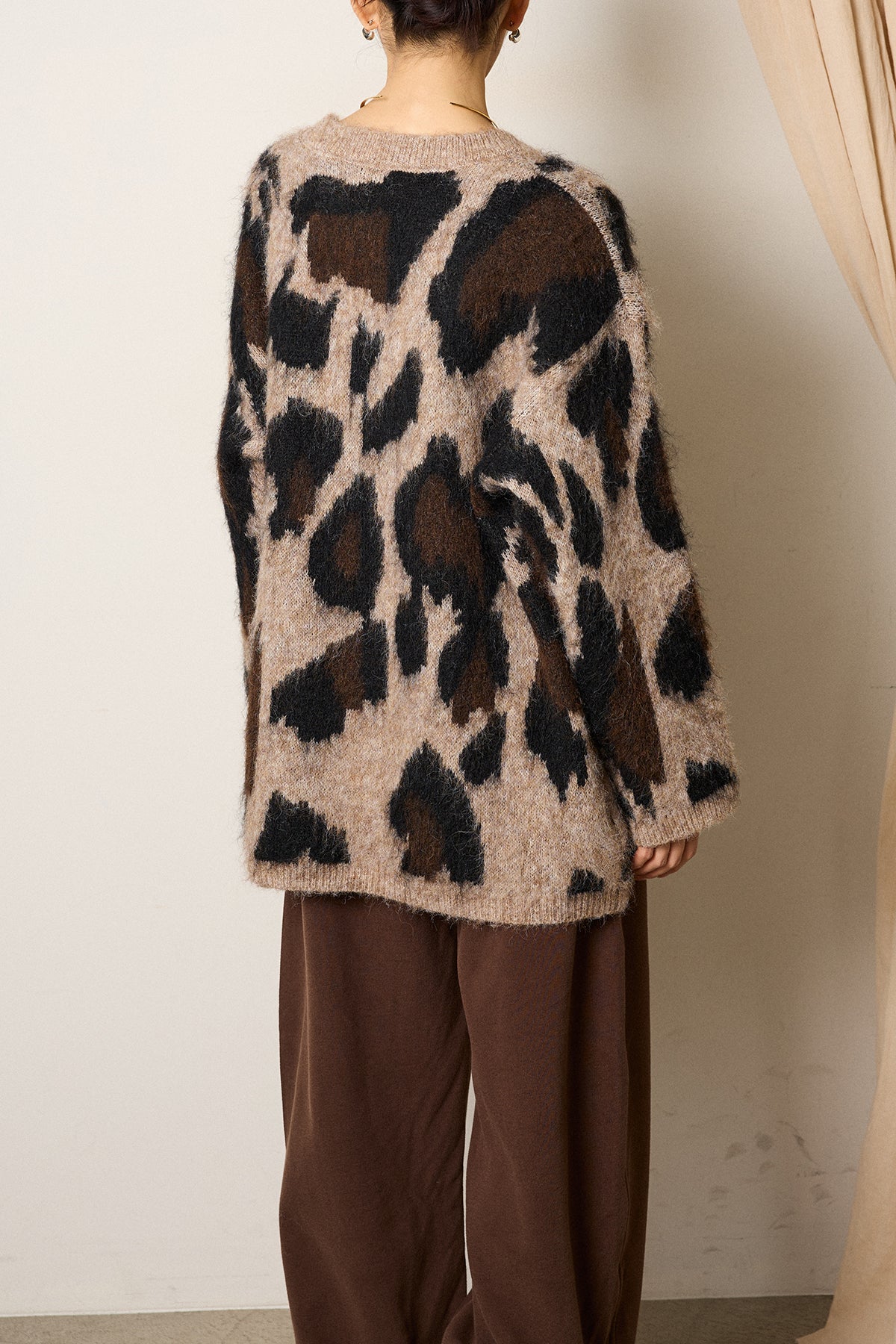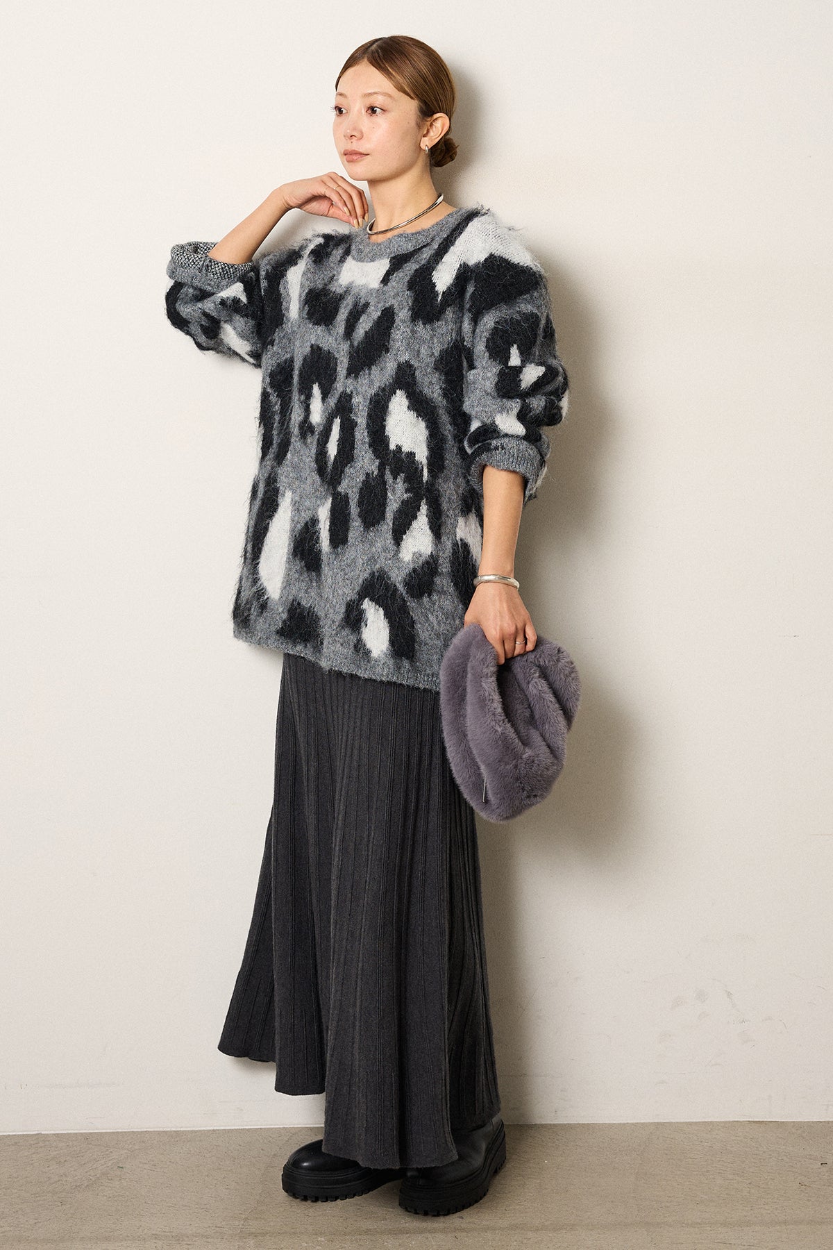 ふわふわとしたモヘア素材が魅力のルーズニット。 存在感のあるアニマル柄がスタイリングの主役になり、トレンド感と季節感を両立します。 ゆったりとしたシルエットでリラクシーな着心地ながら、ボリュームスリーブが程よい抜け感をプラス。 シンプルなボトムに合わせるだけで、大人のカジュアルスタイルが完成します。