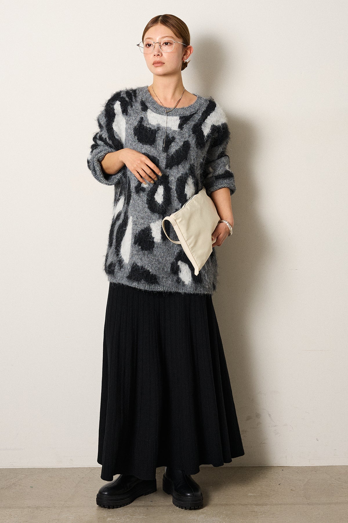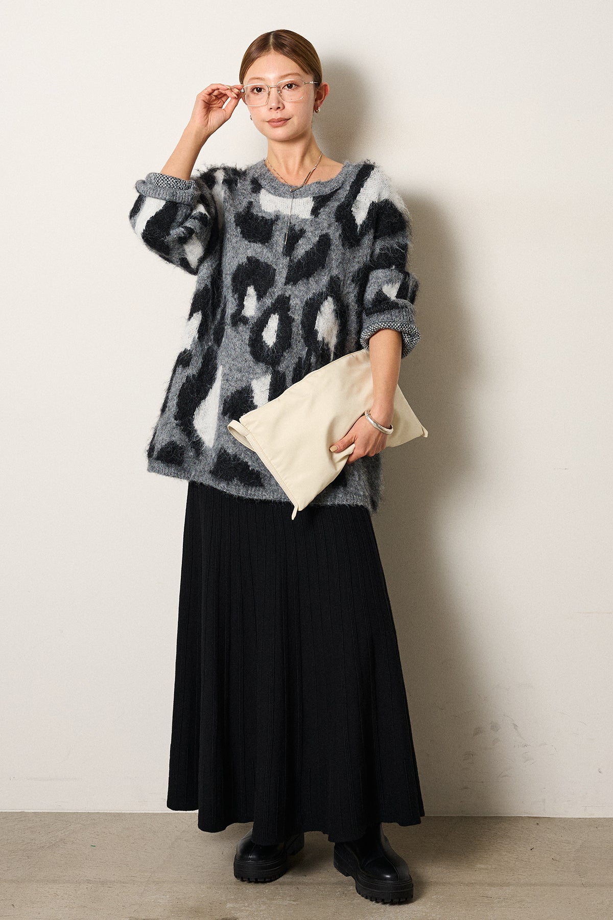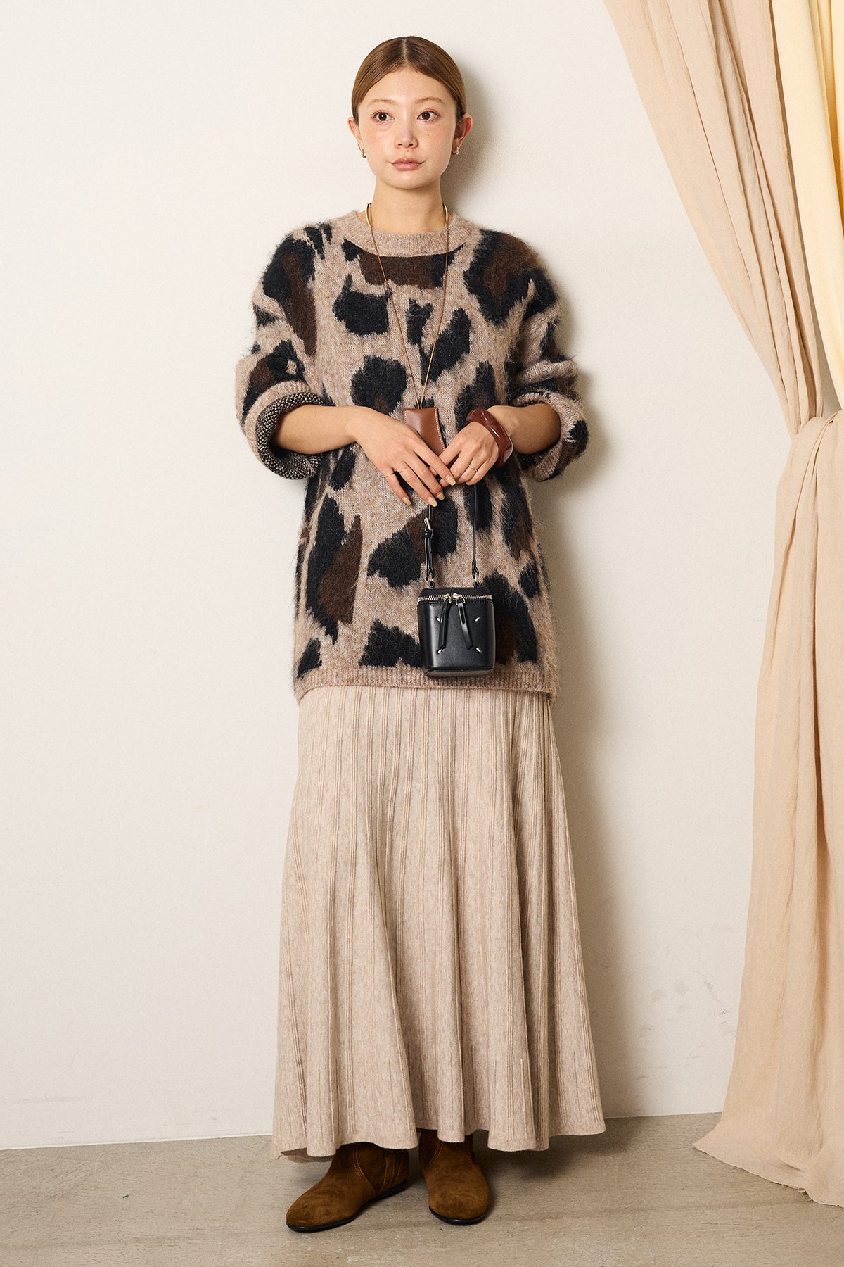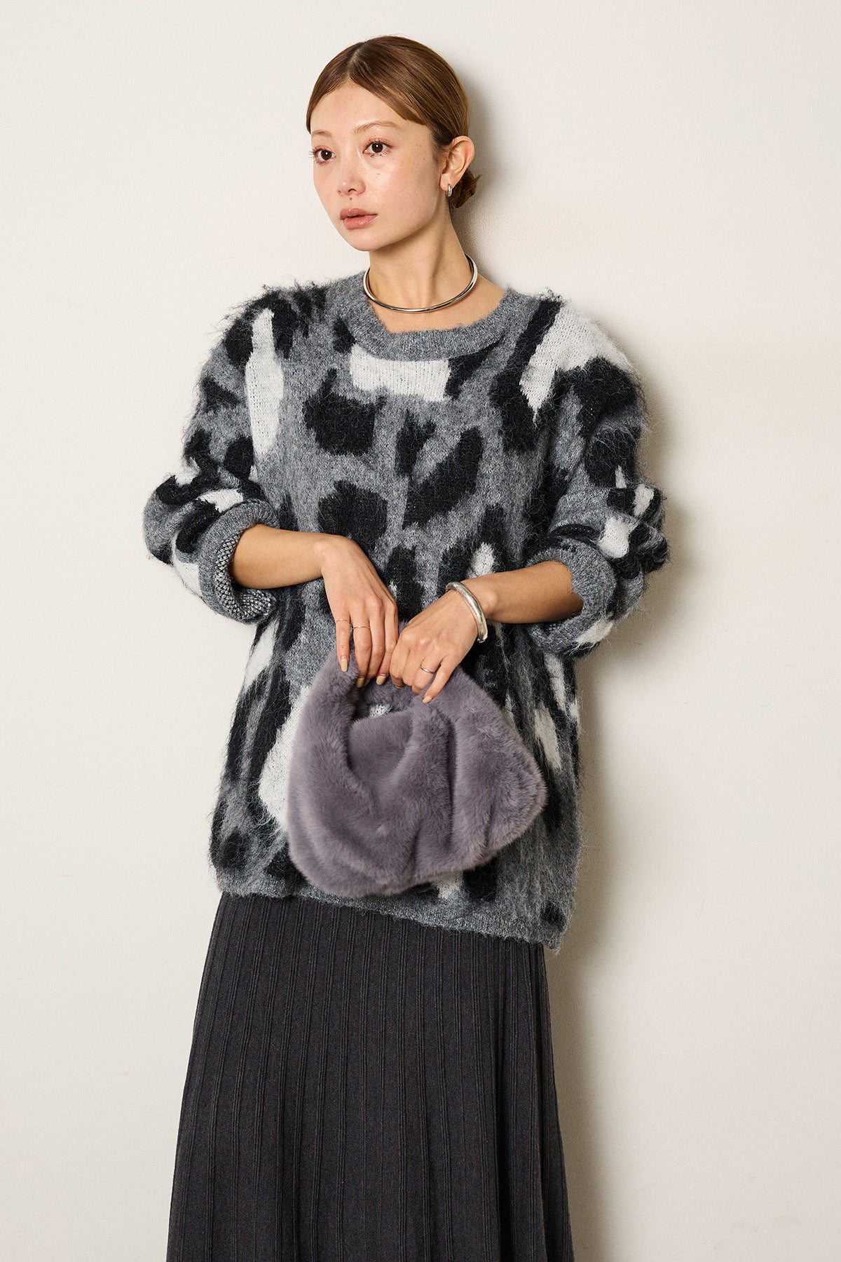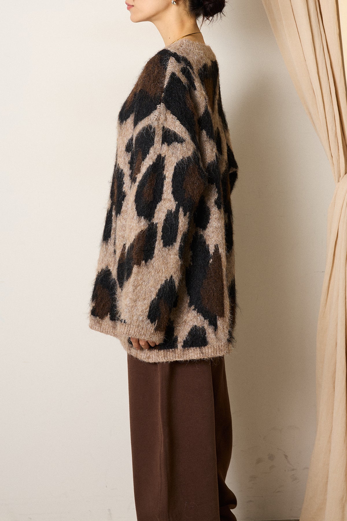 ふわふわとしたモヘア素材が魅力のルーズニット。 存在感のあるアニマル柄がスタイリングの主役になり、トレンド感と季節感を両立します。 ゆったりとしたシルエットでリラクシーな着心地ながら、ボリュームスリーブが程よい抜け感をプラス。 シンプルなボトムに合わせるだけで、大人のカジュアルスタイルが完成します。