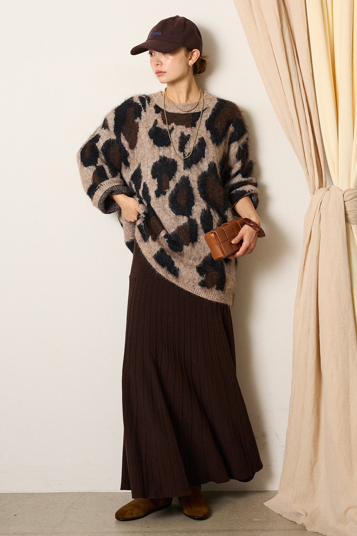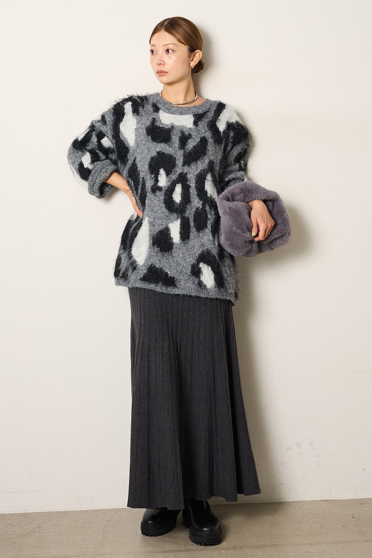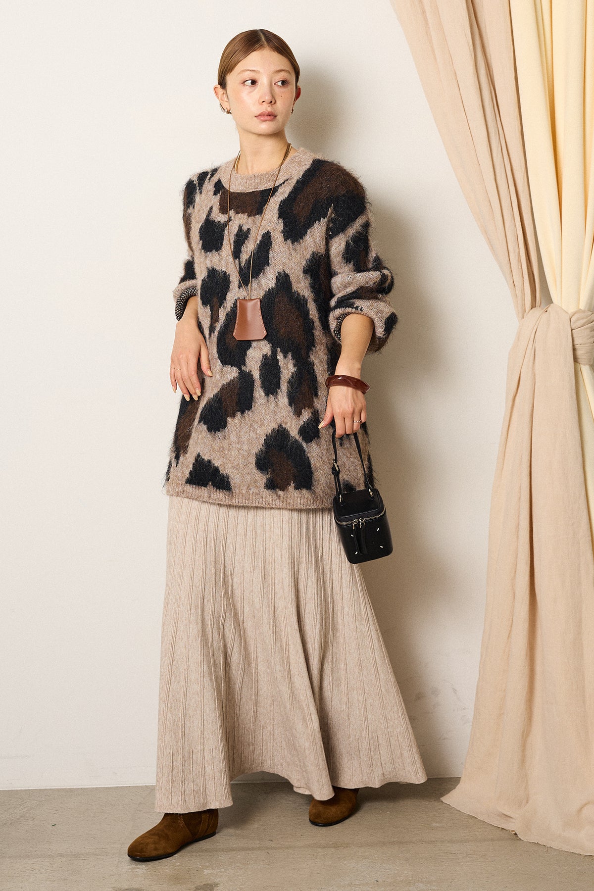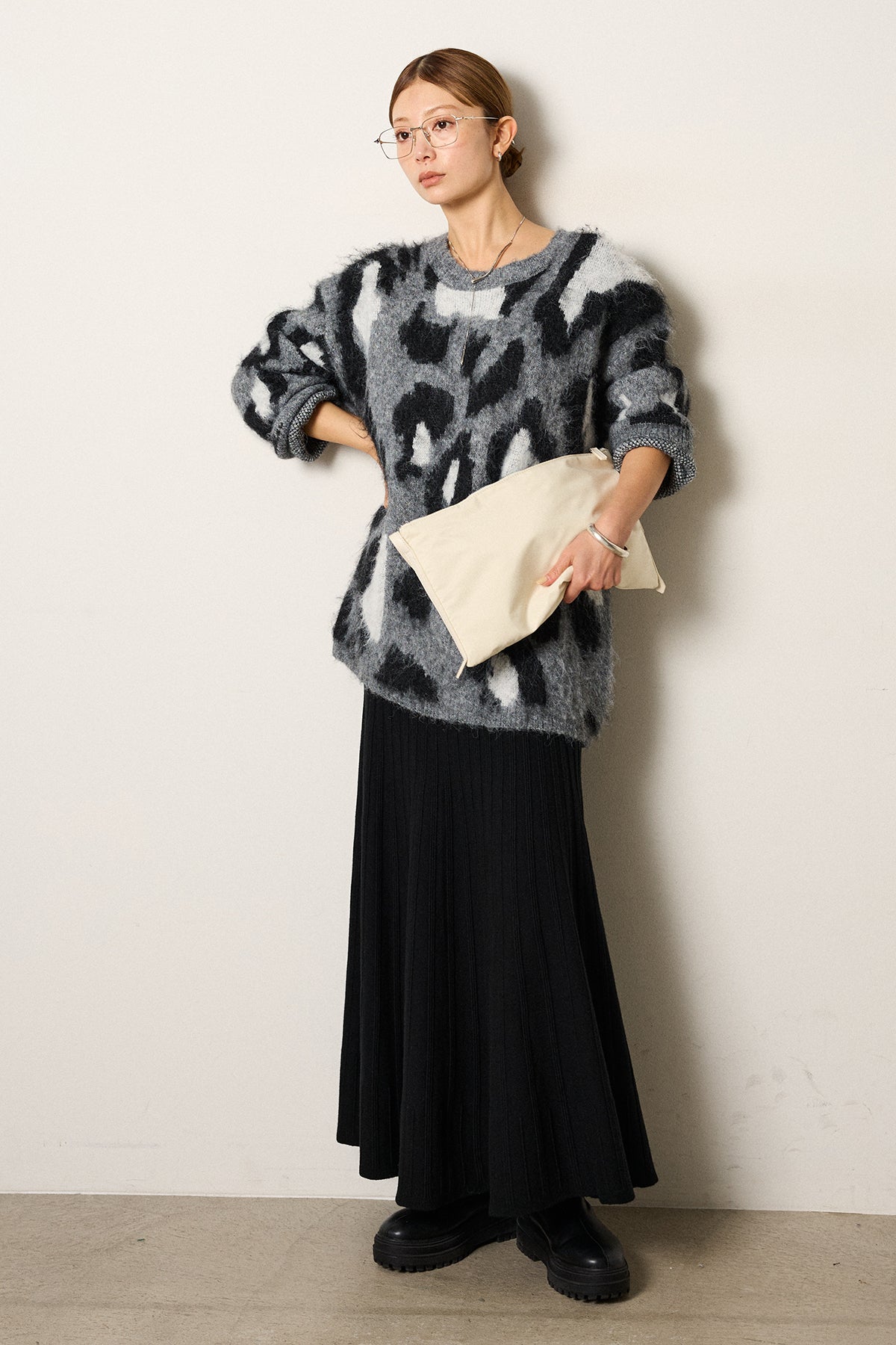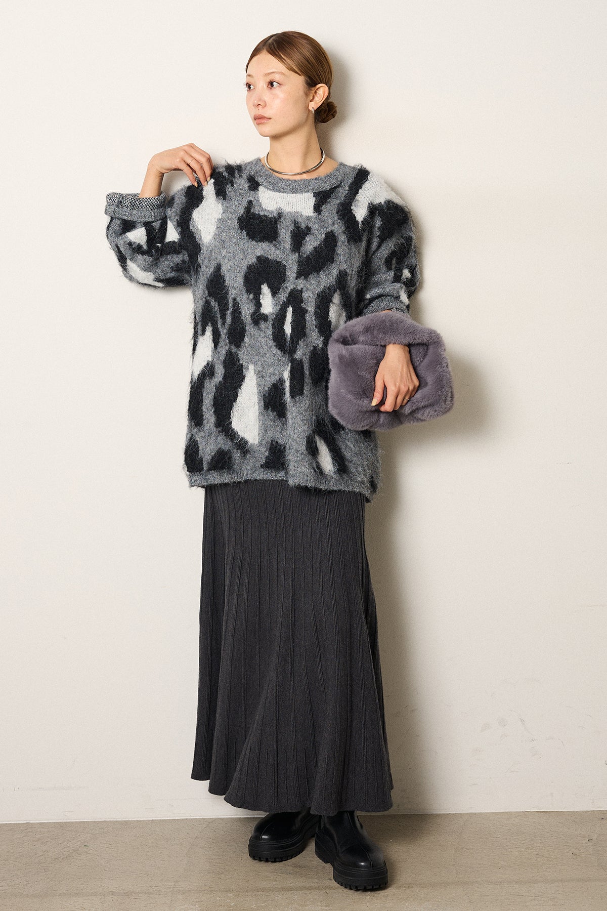 ふわふわとしたモヘア素材が魅力のルーズニット。 存在感のあるアニマル柄がスタイリングの主役になり、トレンド感と季節感を両立します。 ゆったりとしたシルエットでリラクシーな着心地ながら、ボリュームスリーブが程よい抜け感をプラス。 シンプルなボトムに合わせるだけで、大人のカジュアルスタイルが完成します。