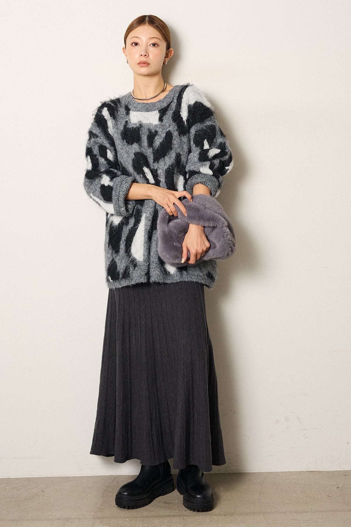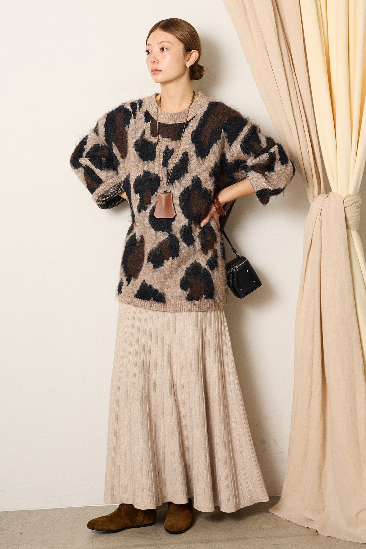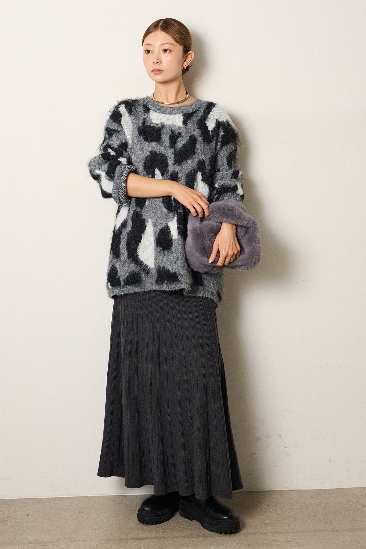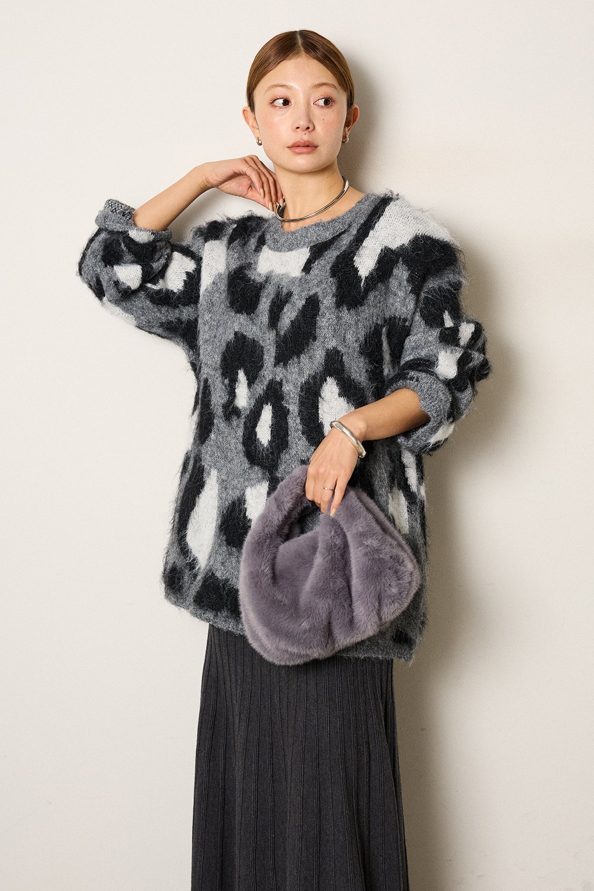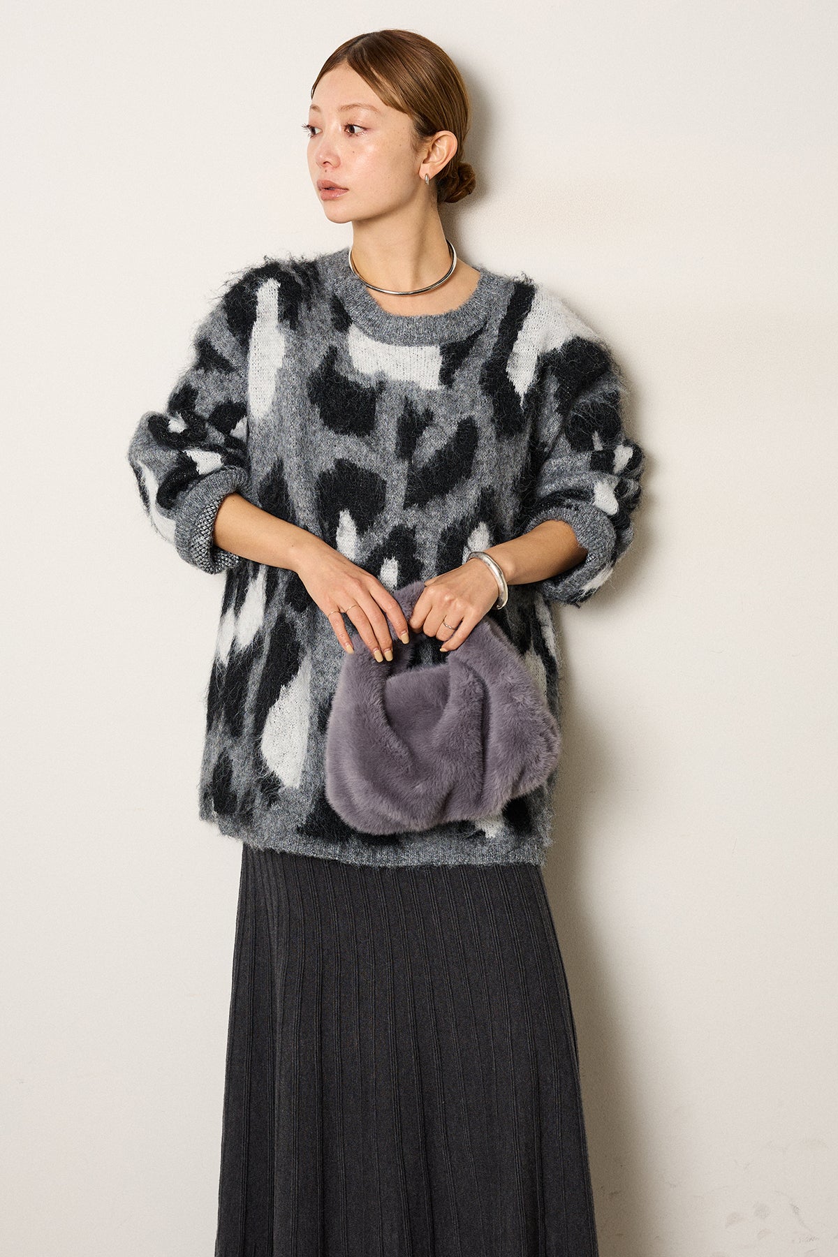 ふわふわとしたモヘア素材が魅力のルーズニット。 存在感のあるアニマル柄がスタイリングの主役になり、トレンド感と季節感を両立します。 ゆったりとしたシルエットでリラクシーな着心地ながら、ボリュームスリーブが程よい抜け感をプラス。 シンプルなボトムに合わせるだけで、大人のカジュアルスタイルが完成します。