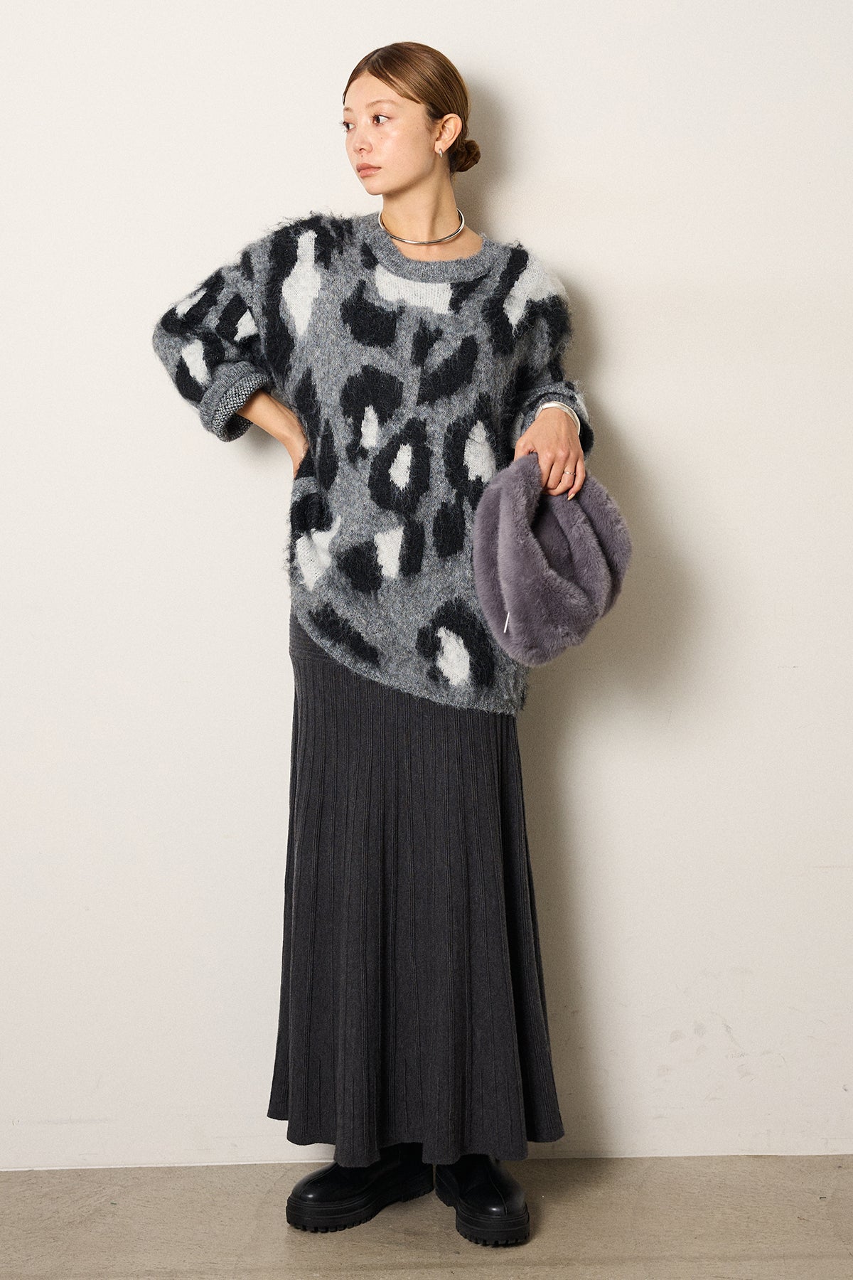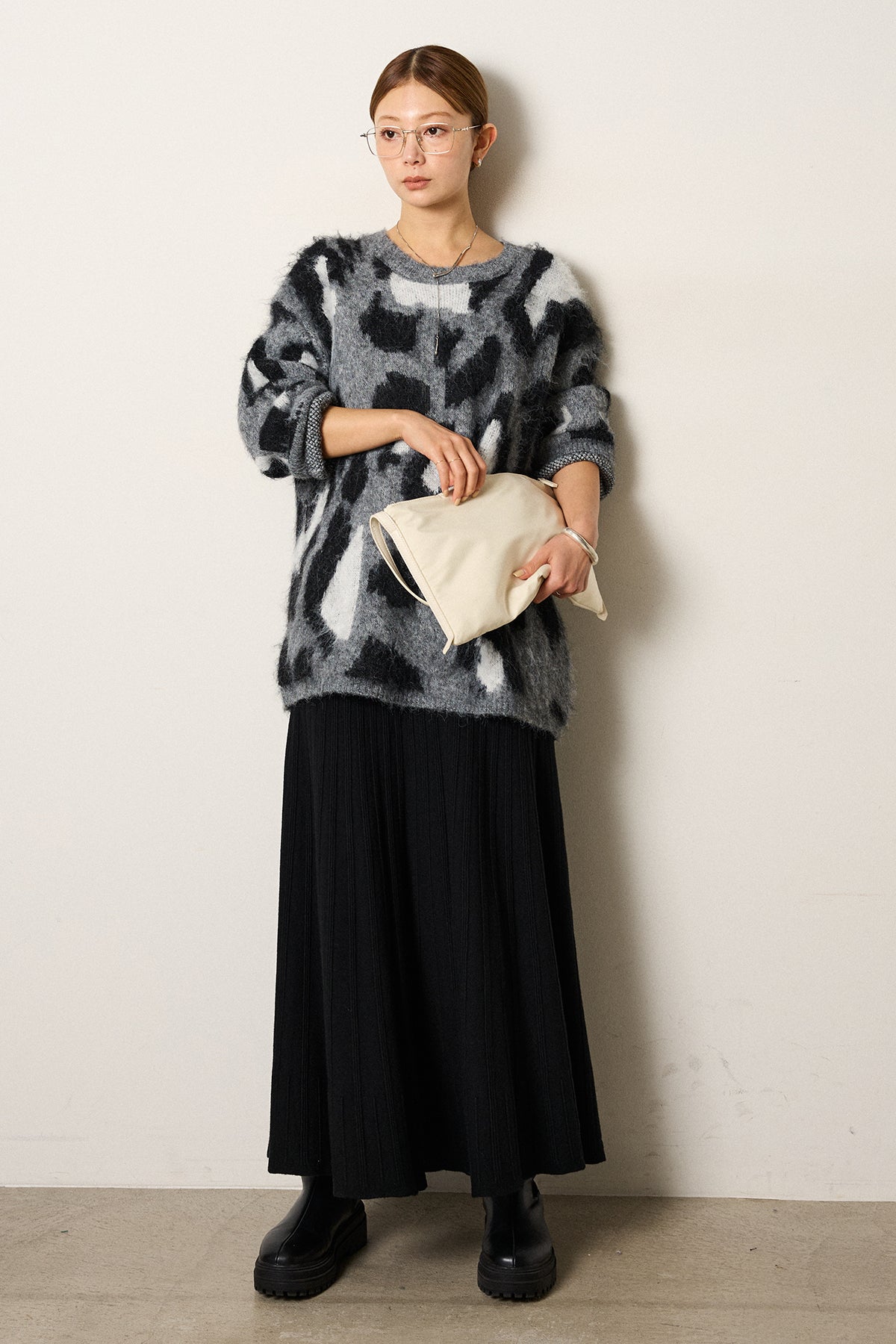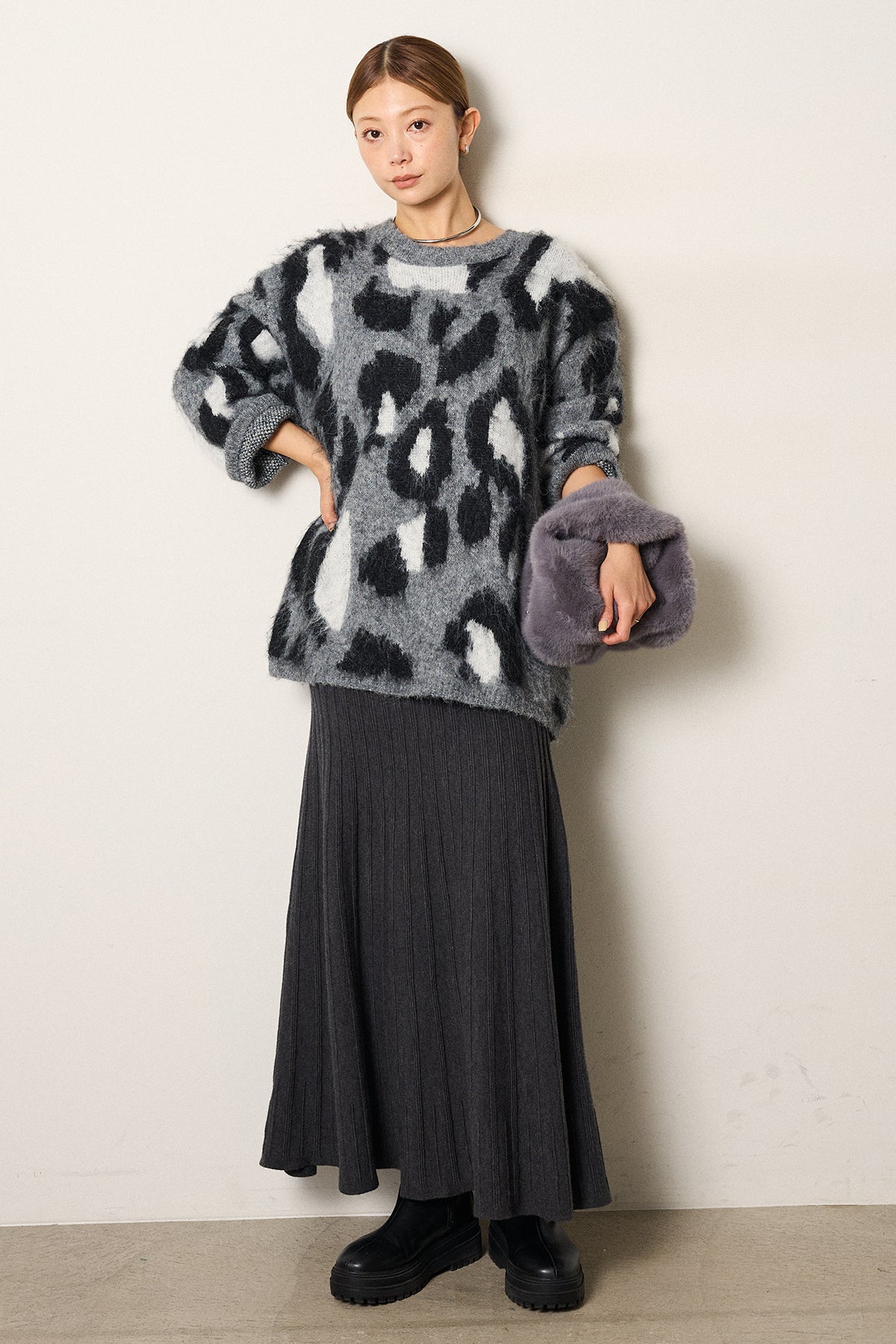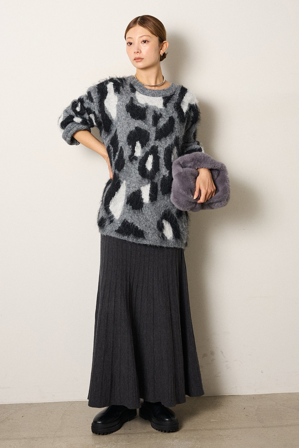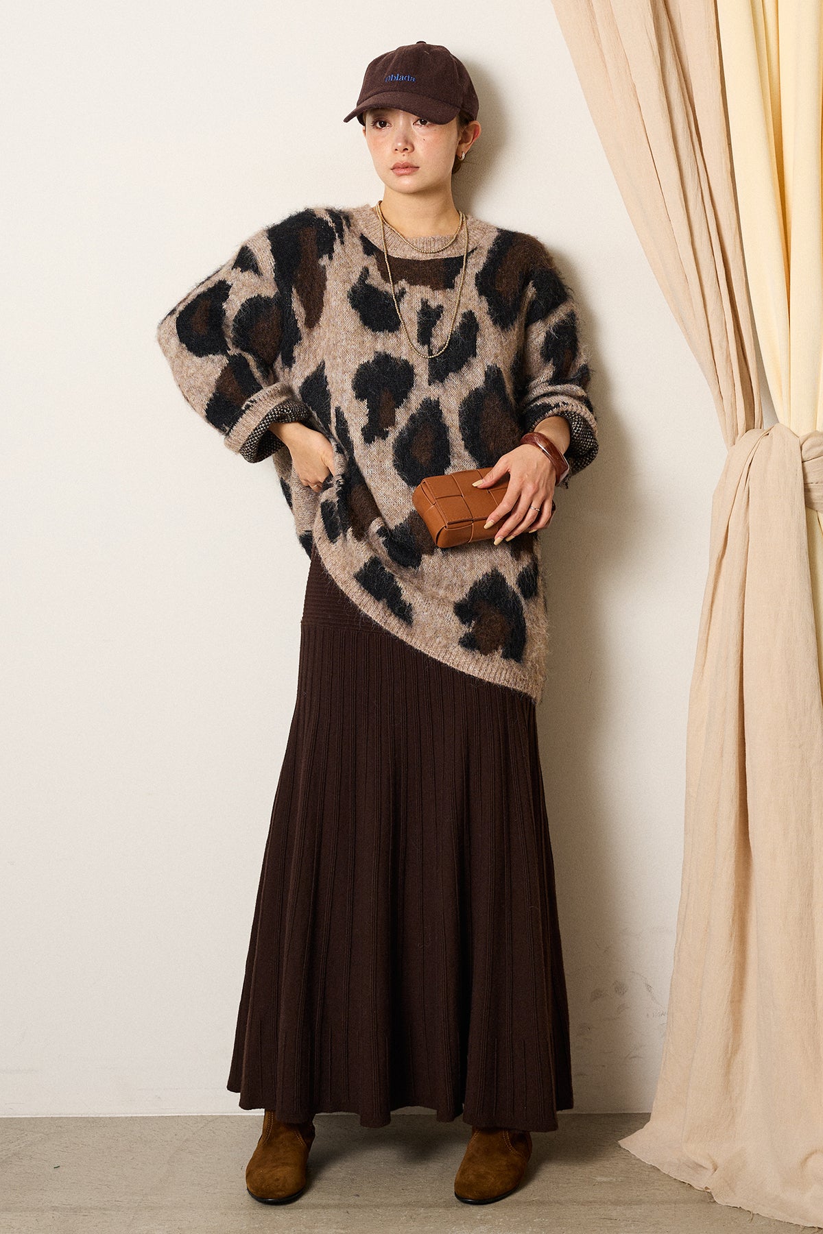 ふわふわとしたモヘア素材が魅力のルーズニット。 存在感のあるアニマル柄がスタイリングの主役になり、トレンド感と季節感を両立します。 ゆったりとしたシルエットでリラクシーな着心地ながら、ボリュームスリーブが程よい抜け感をプラス。 シンプルなボトムに合わせるだけで、大人のカジュアルスタイルが完成します。