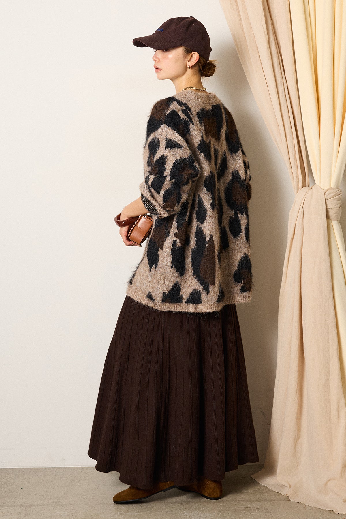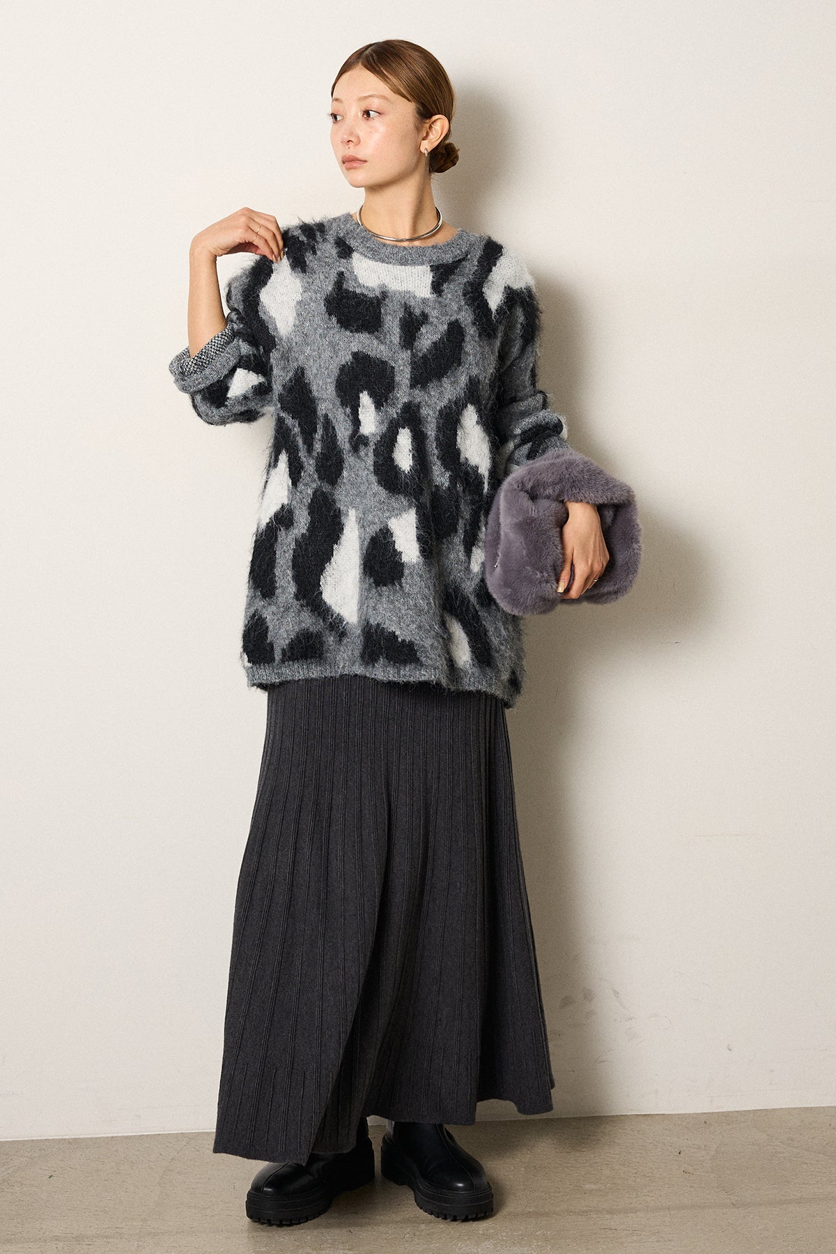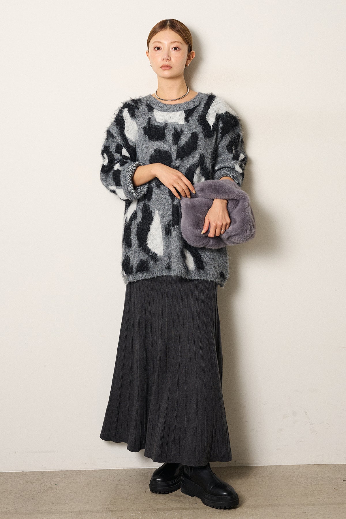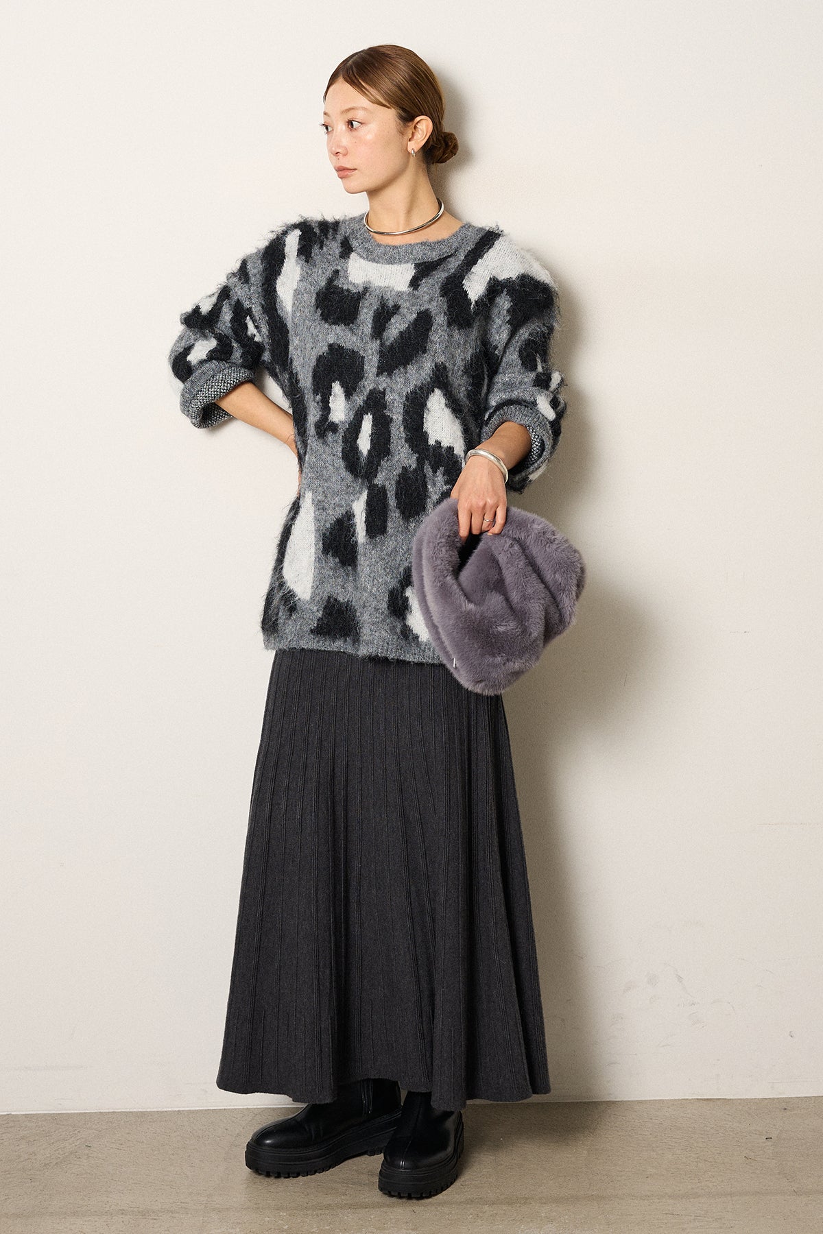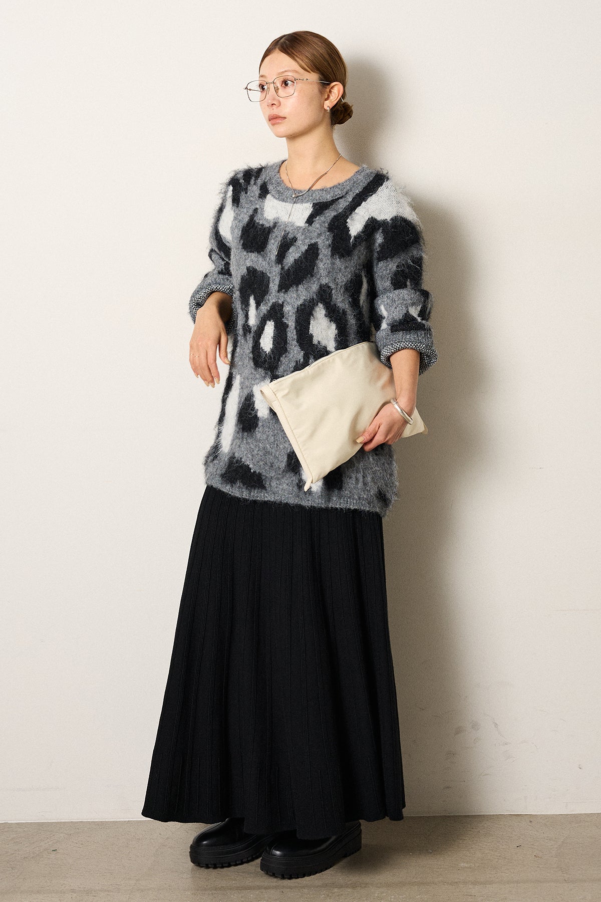 ふわふわとしたモヘア素材が魅力のルーズニット。 存在感のあるアニマル柄がスタイリングの主役になり、トレンド感と季節感を両立します。 ゆったりとしたシルエットでリラクシーな着心地ながら、ボリュームスリーブが程よい抜け感をプラス。 シンプルなボトムに合わせるだけで、大人のカジュアルスタイルが完成します。
