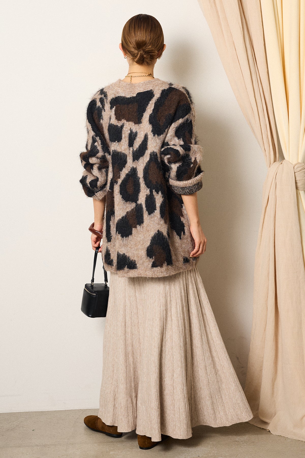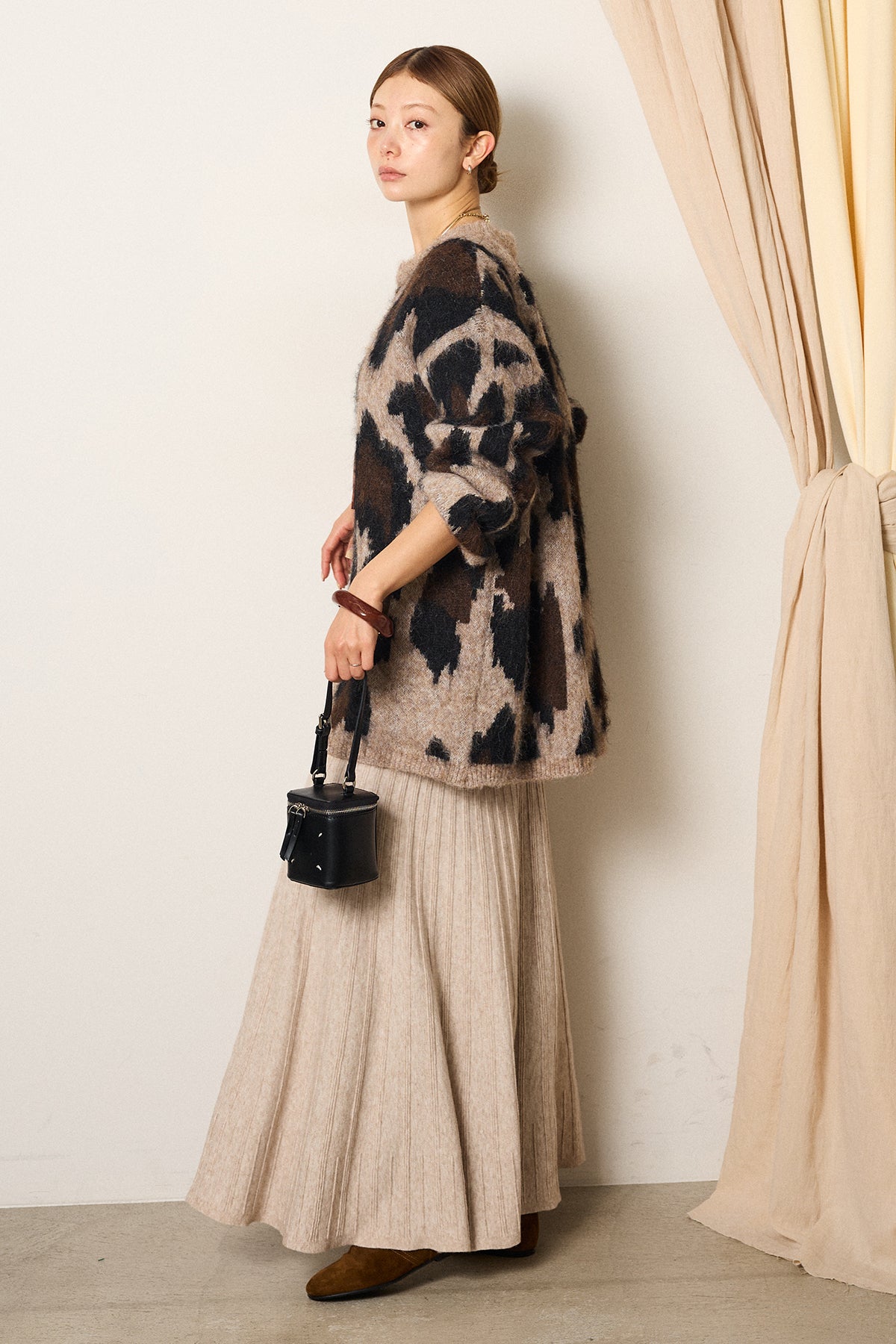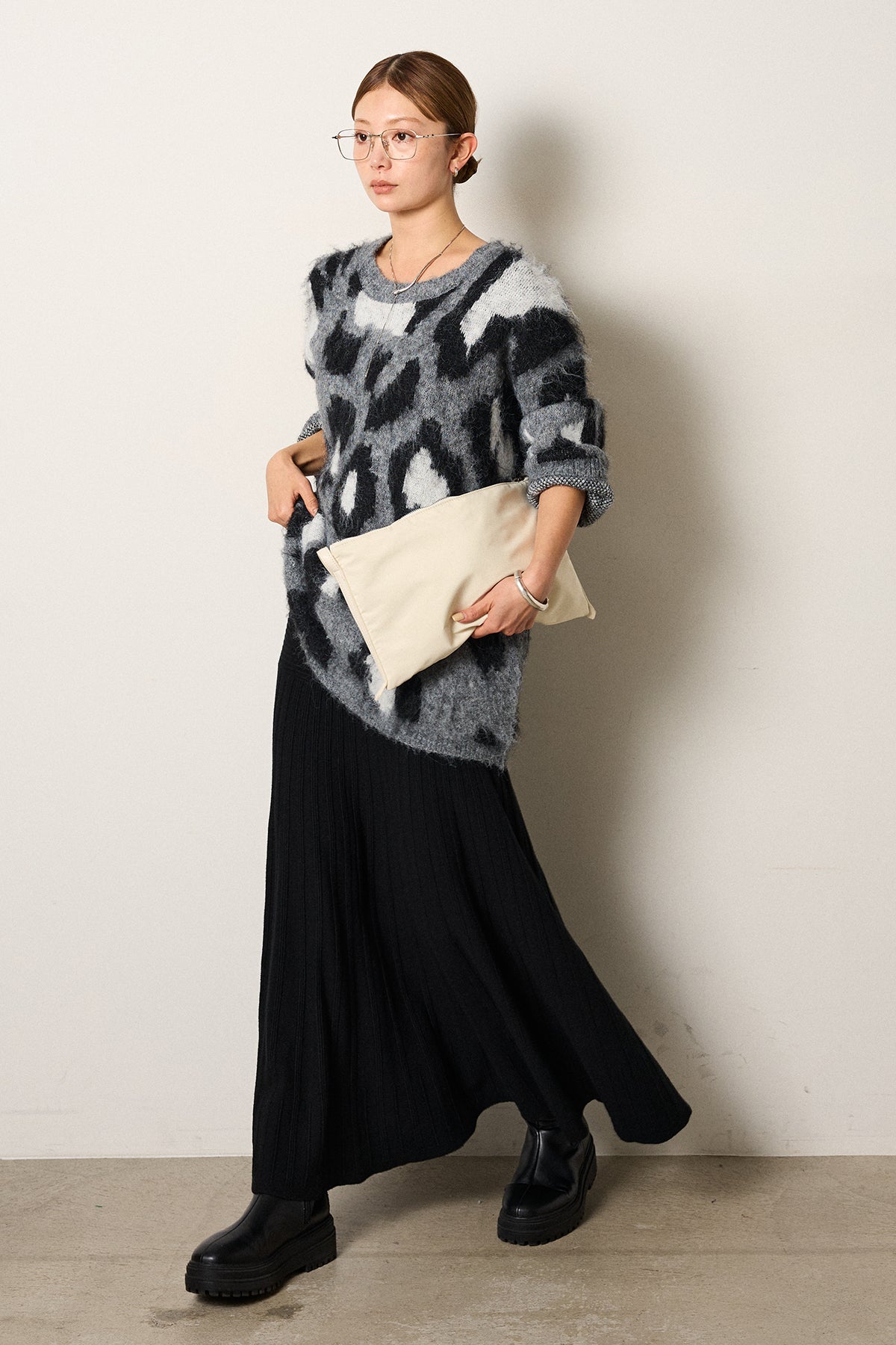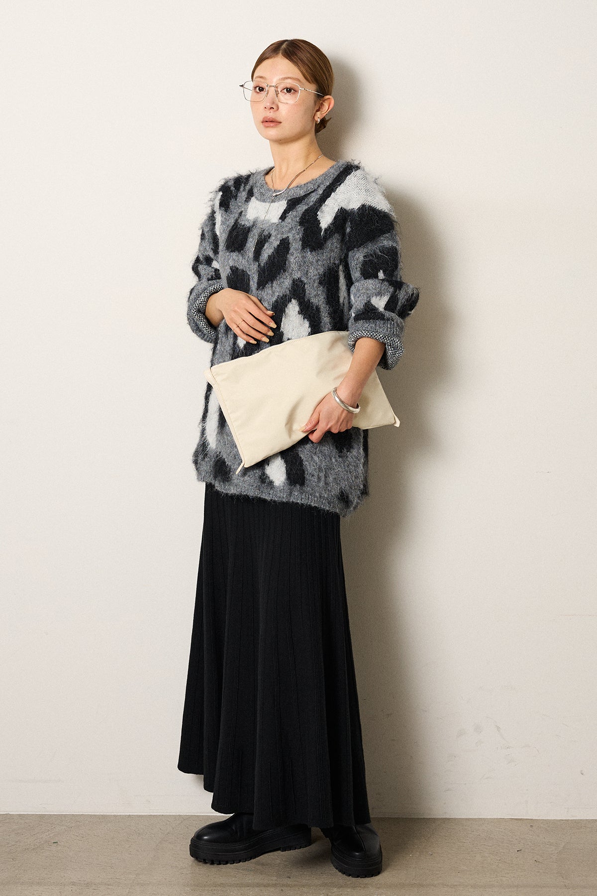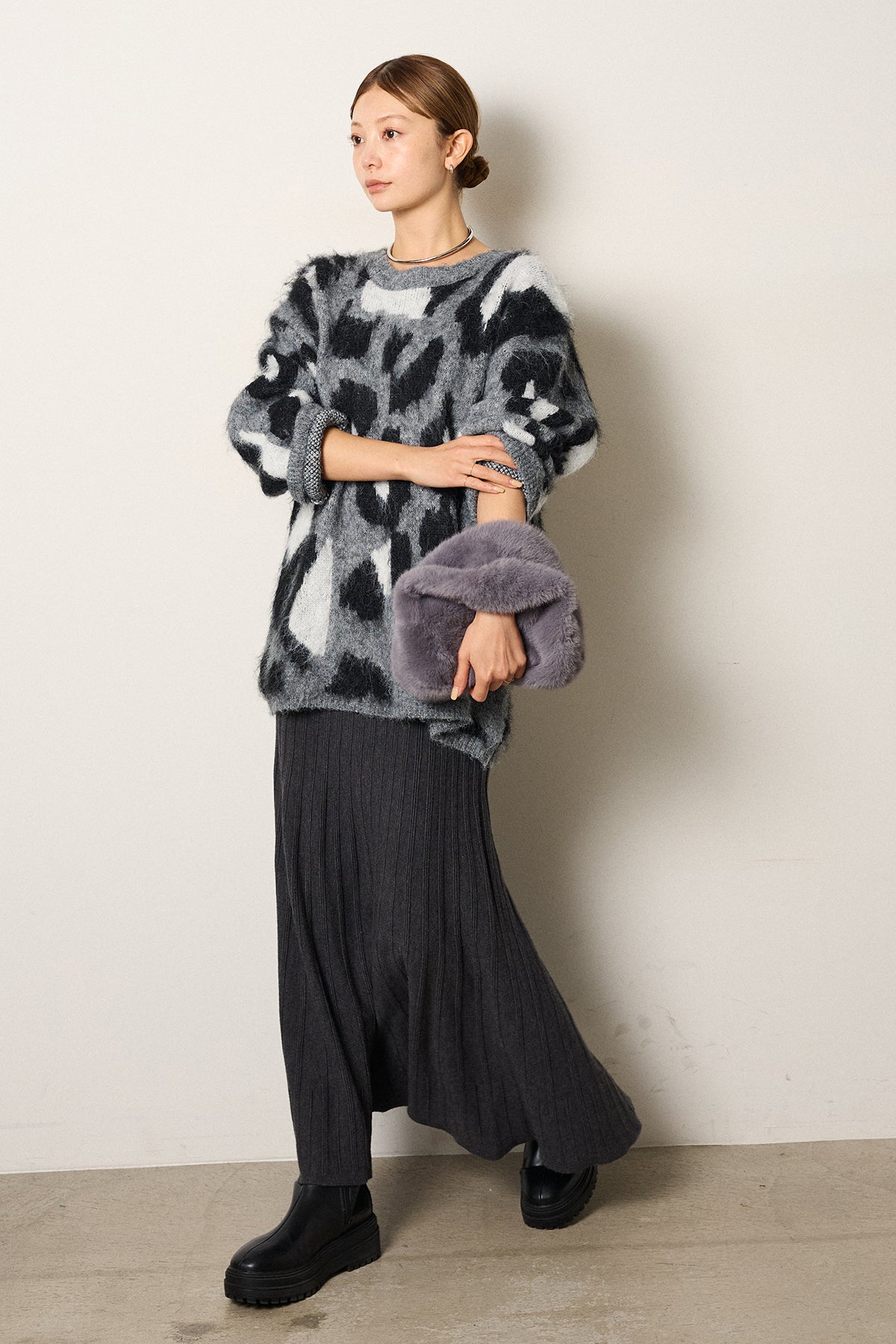 ふわふわとしたモヘア素材が魅力のルーズニット。 存在感のあるアニマル柄がスタイリングの主役になり、トレンド感と季節感を両立します。 ゆったりとしたシルエットでリラクシーな着心地ながら、ボリュームスリーブが程よい抜け感をプラス。 シンプルなボトムに合わせるだけで、大人のカジュアルスタイルが完成します。