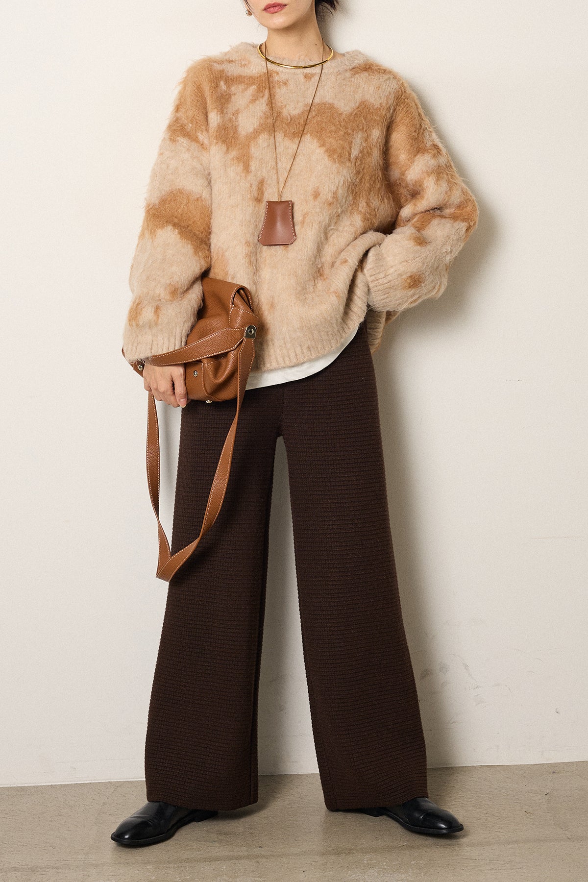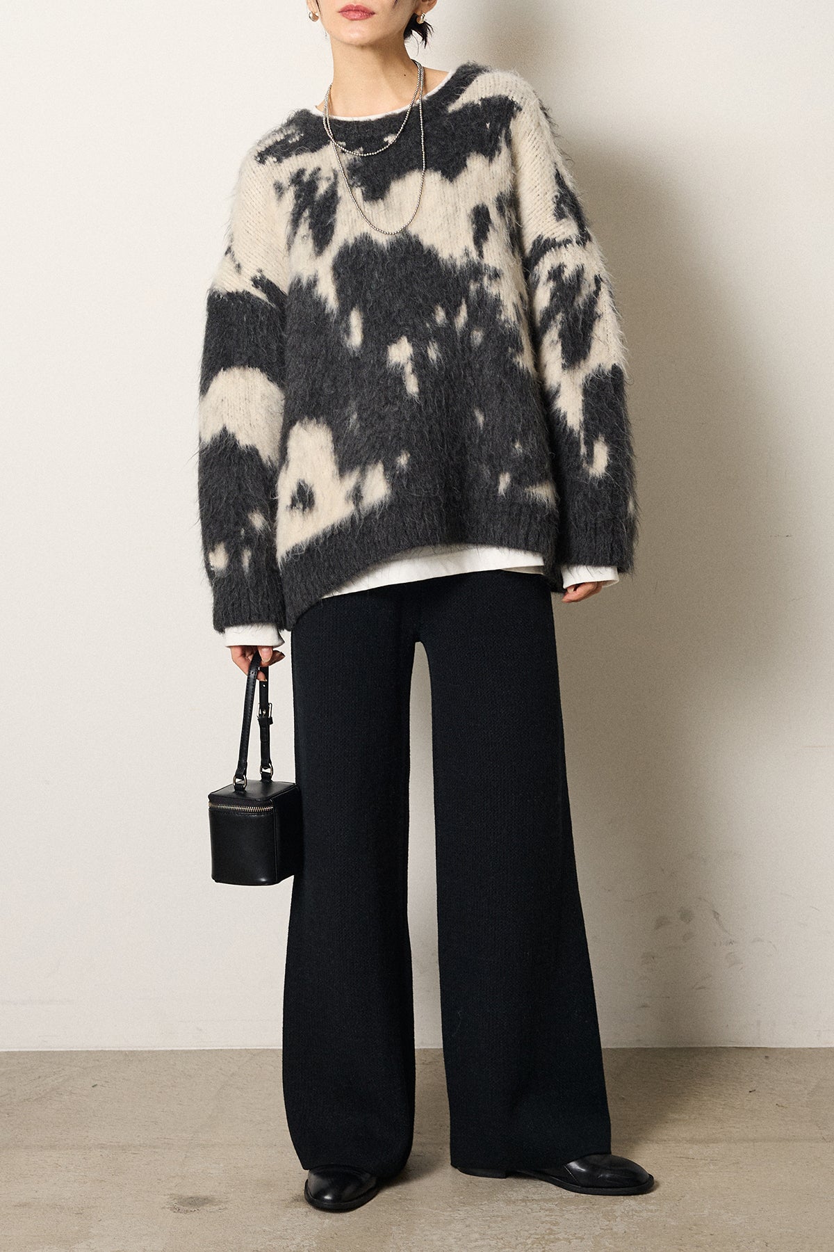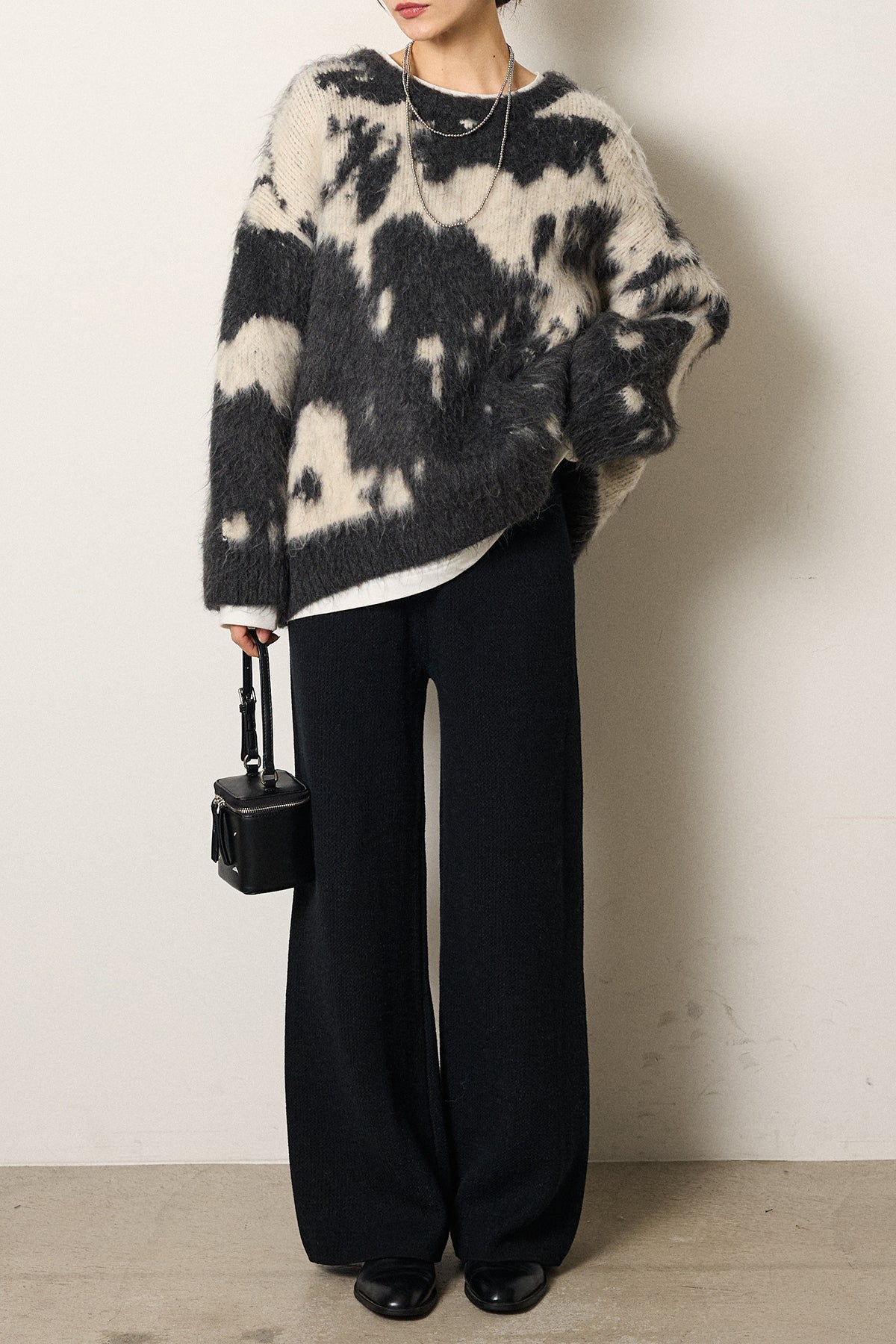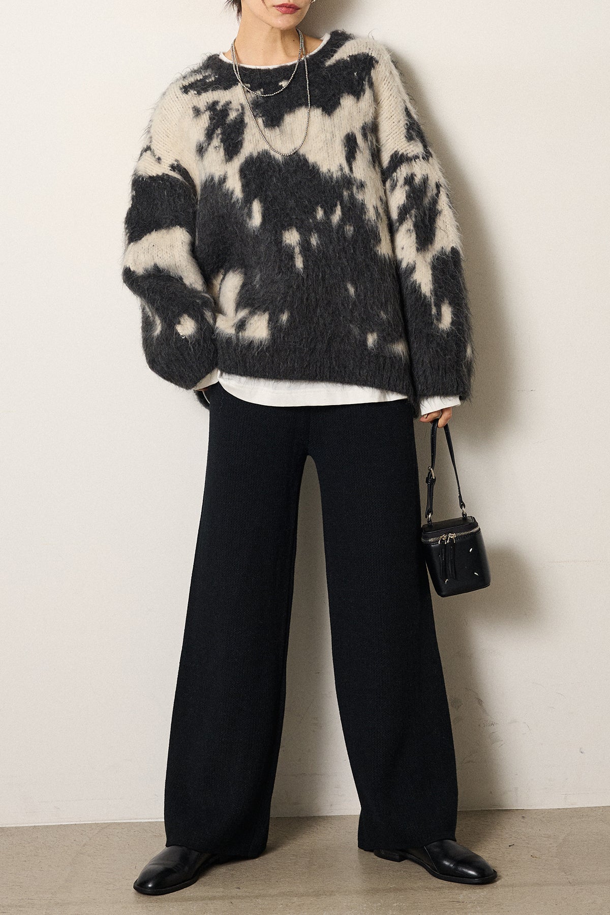 [SET]モヘアタッチマーブルニット+箔プリントBIGシルエットロングスリーブTシャツ+ワイドリブニットイージーパンツ(3set)