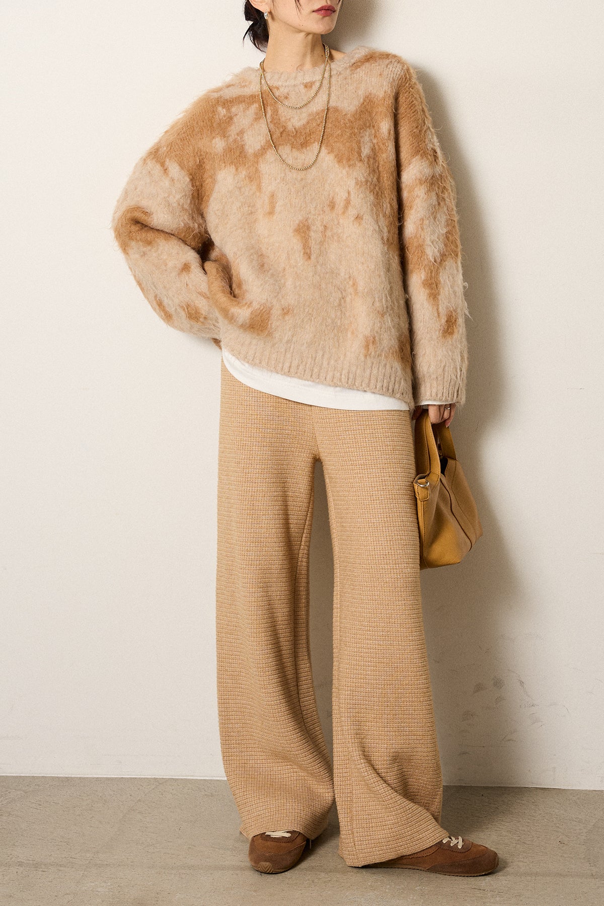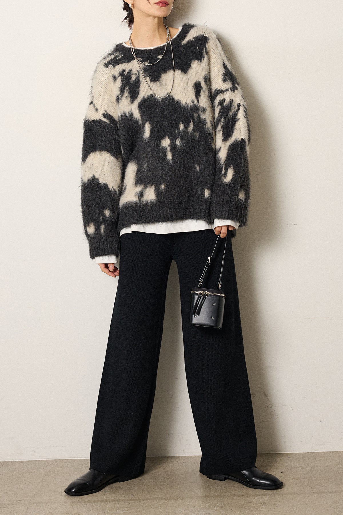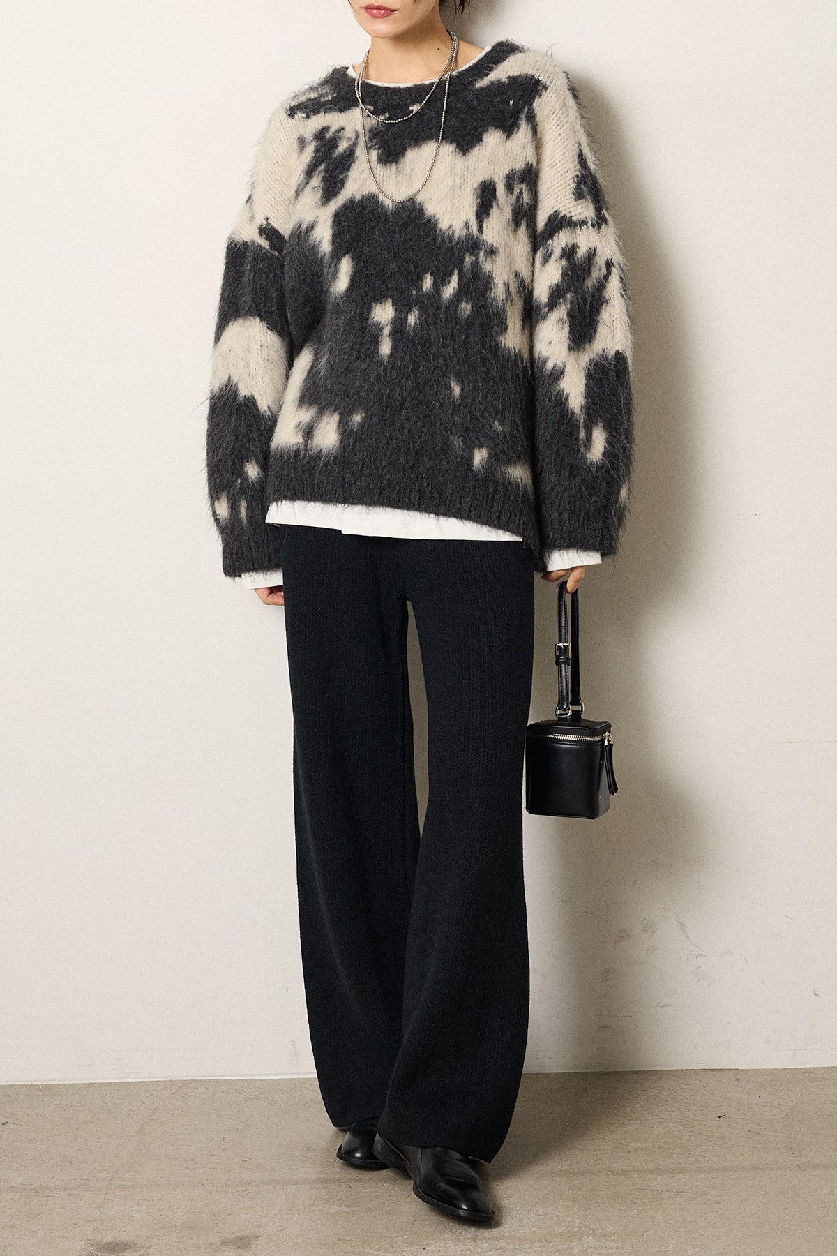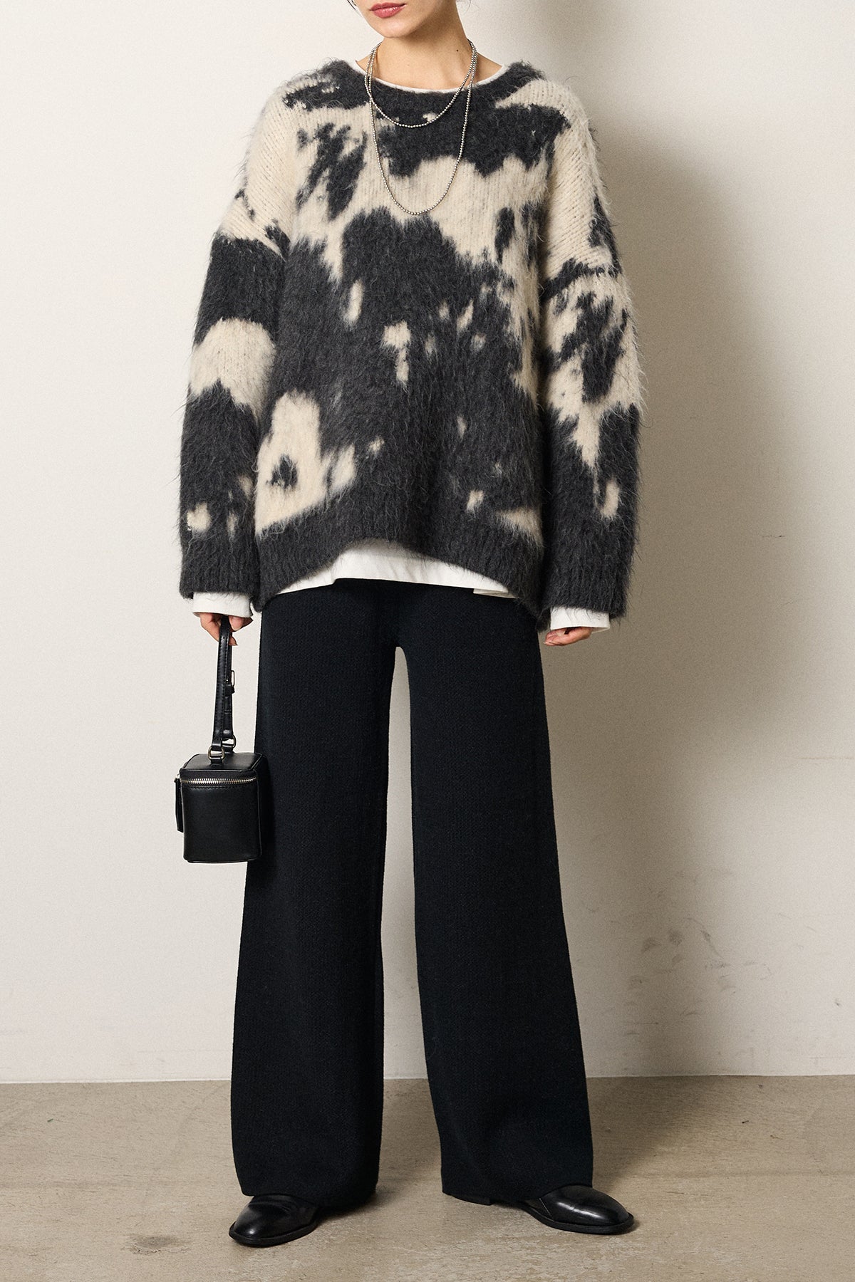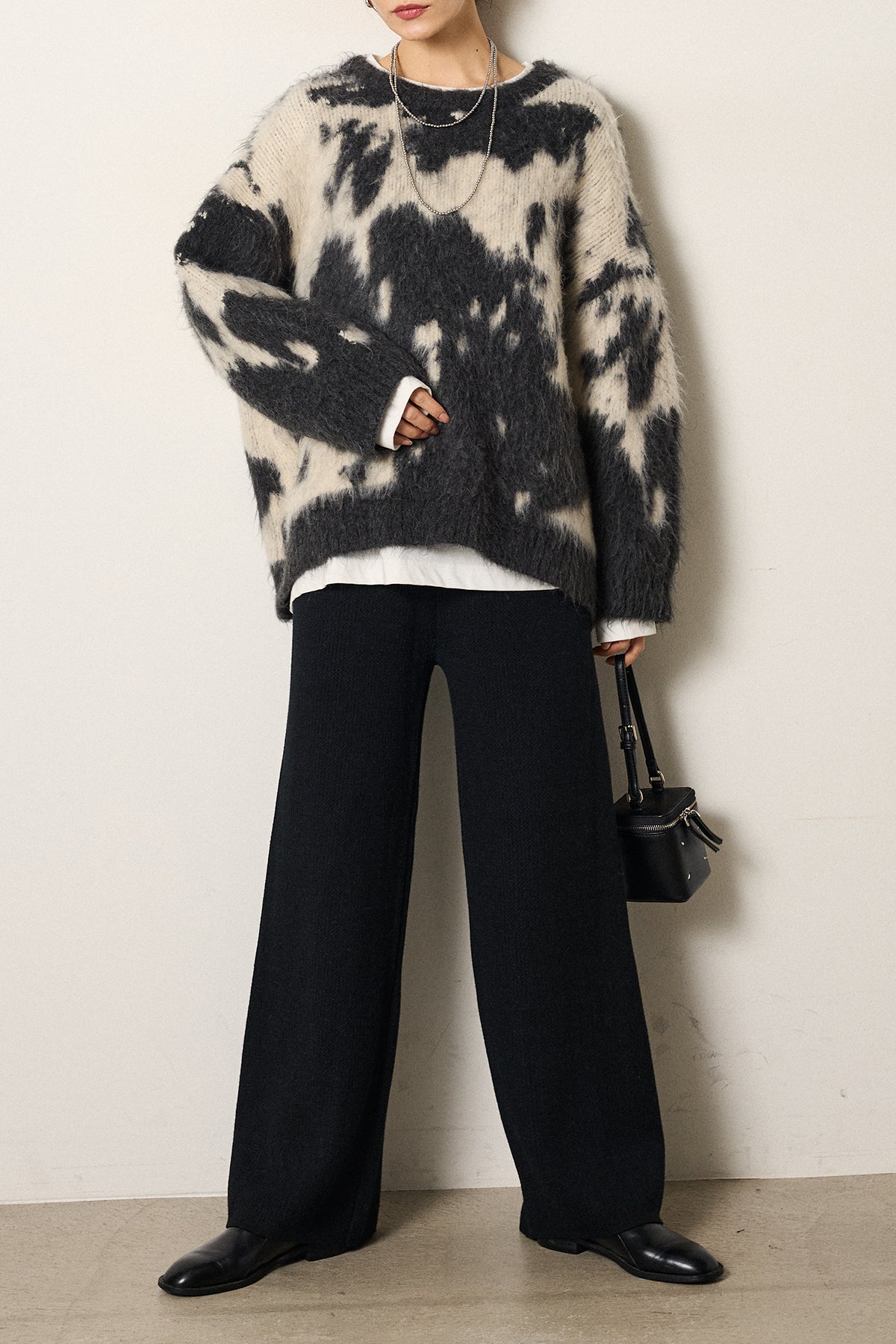 [SET]モヘアタッチマーブルニット+箔プリントBIGシルエットロングスリーブTシャツ+ワイドリブニットイージーパンツ(3set)