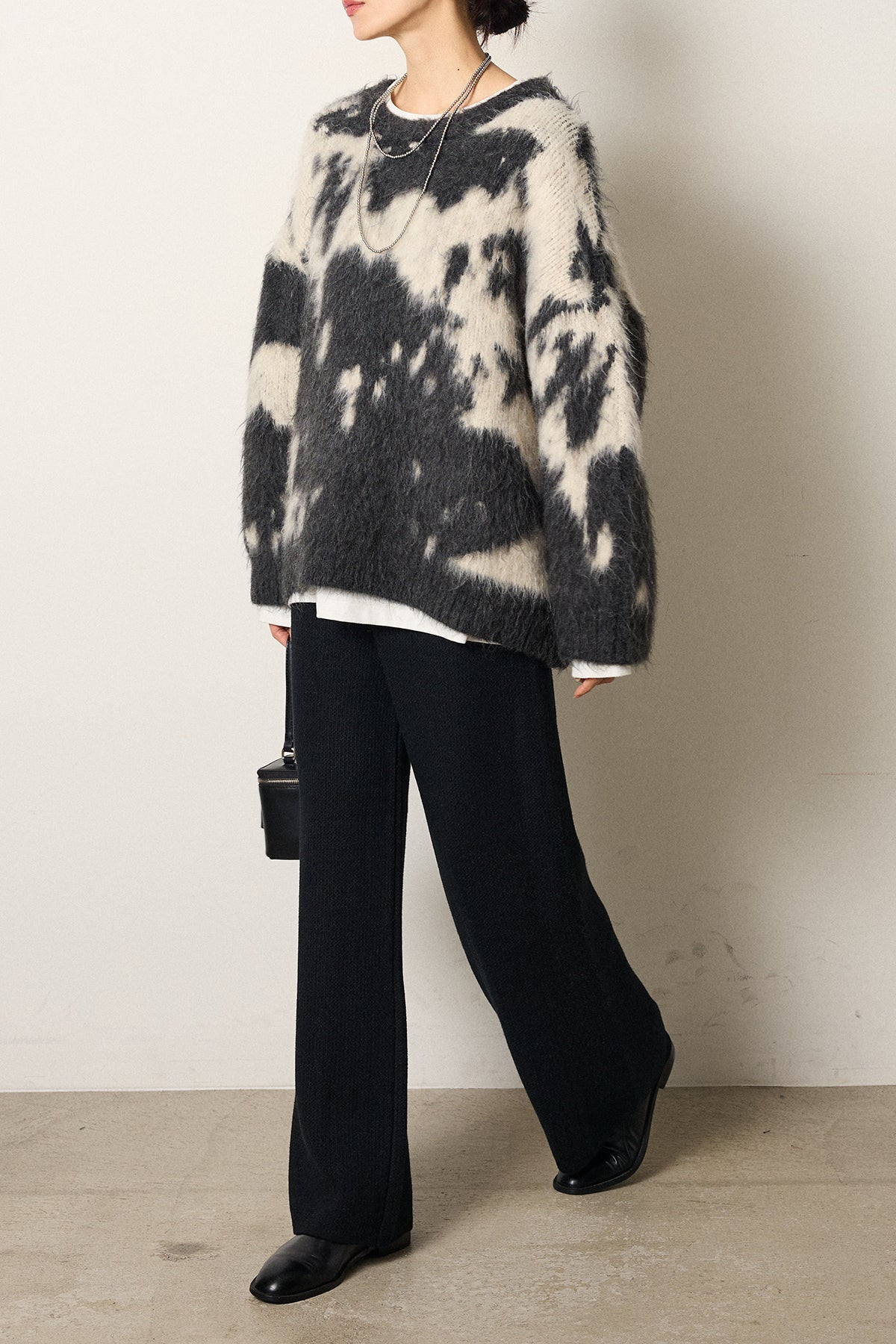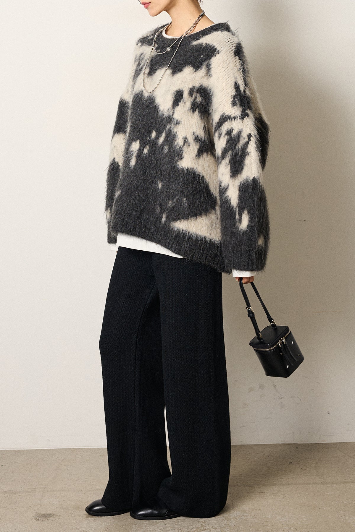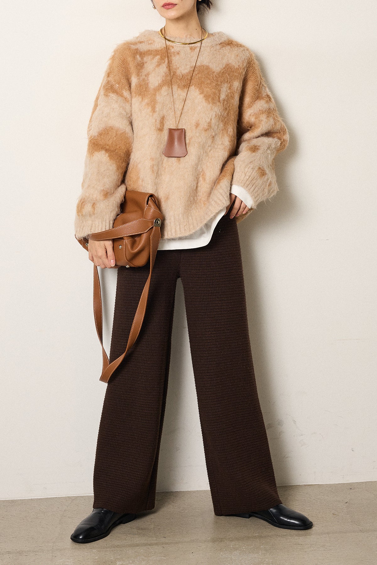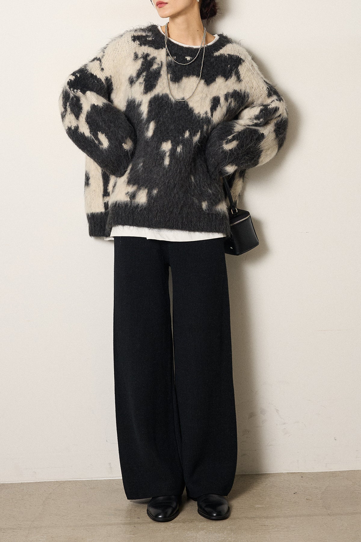 [SET]モヘアタッチマーブルニット+箔プリントBIGシルエットロングスリーブTシャツ+ワイドリブニットイージーパンツ(3set)