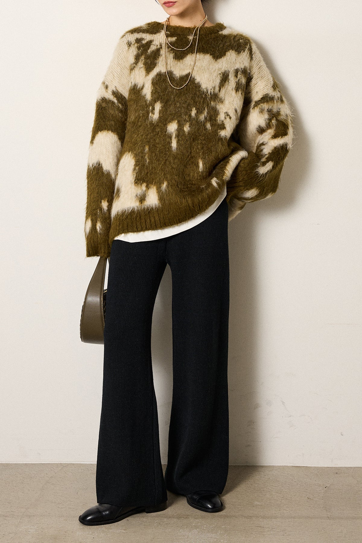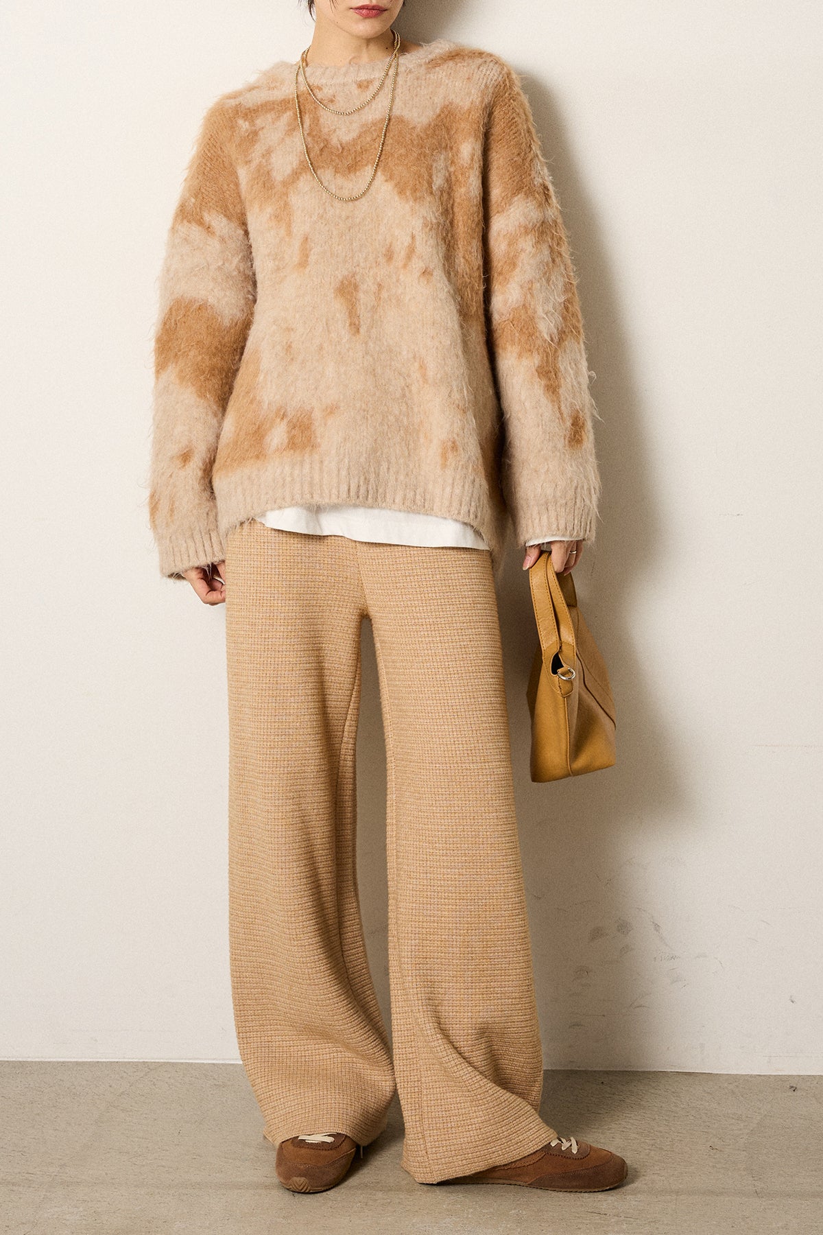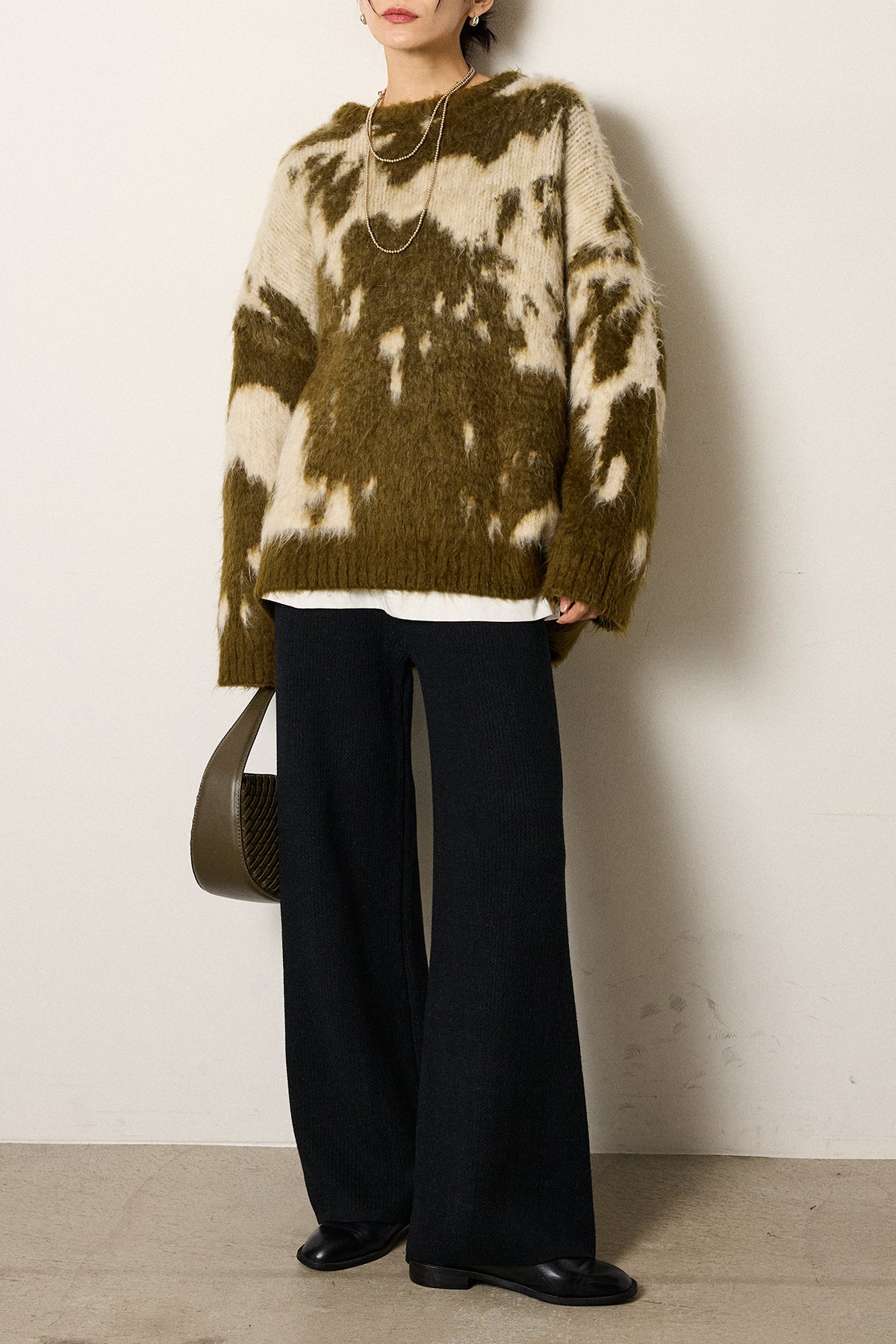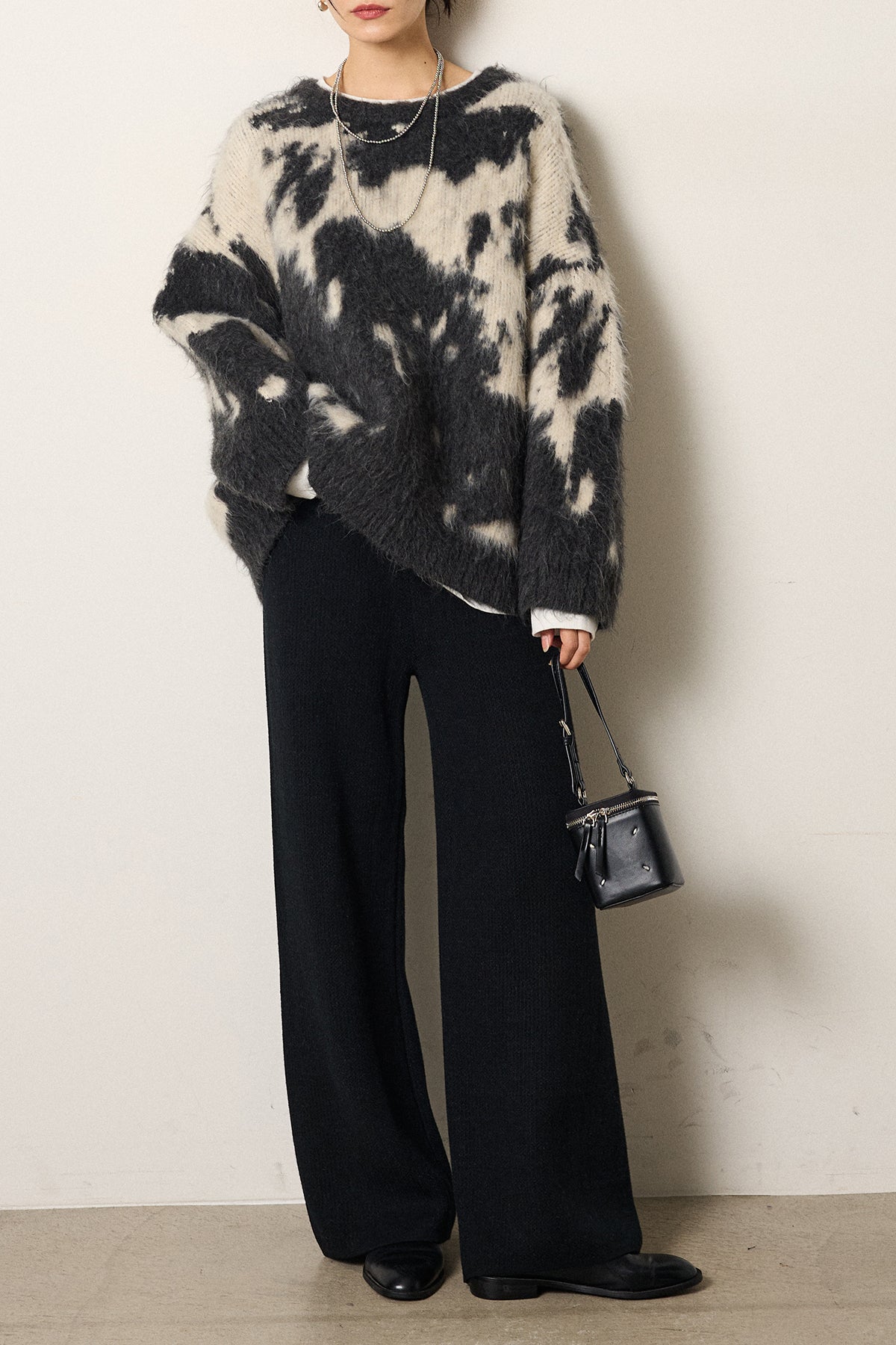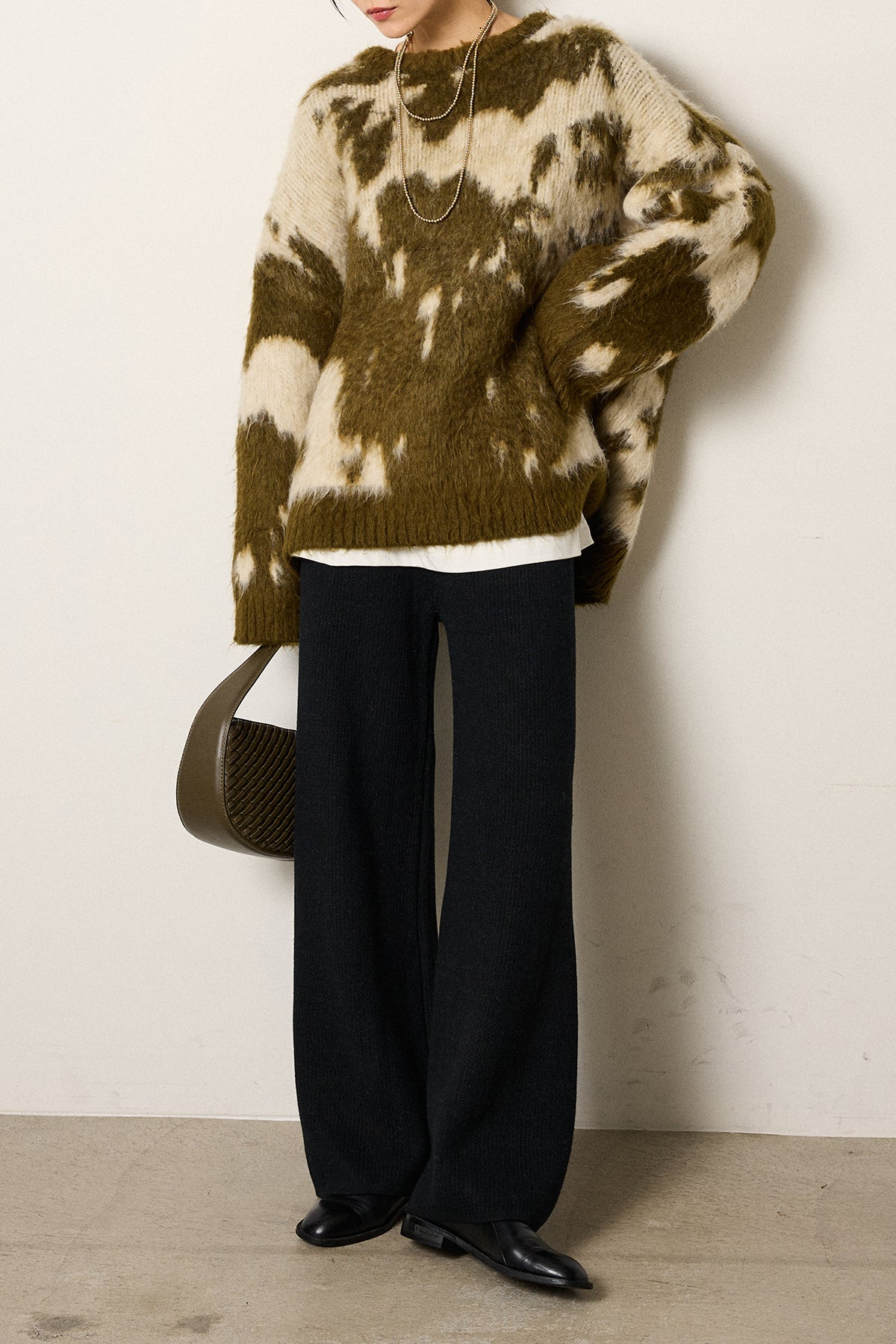 [SET]モヘアタッチマーブルニット+箔プリントBIGシルエットロングスリーブTシャツ+ワイドリブニットイージーパンツ(3set)