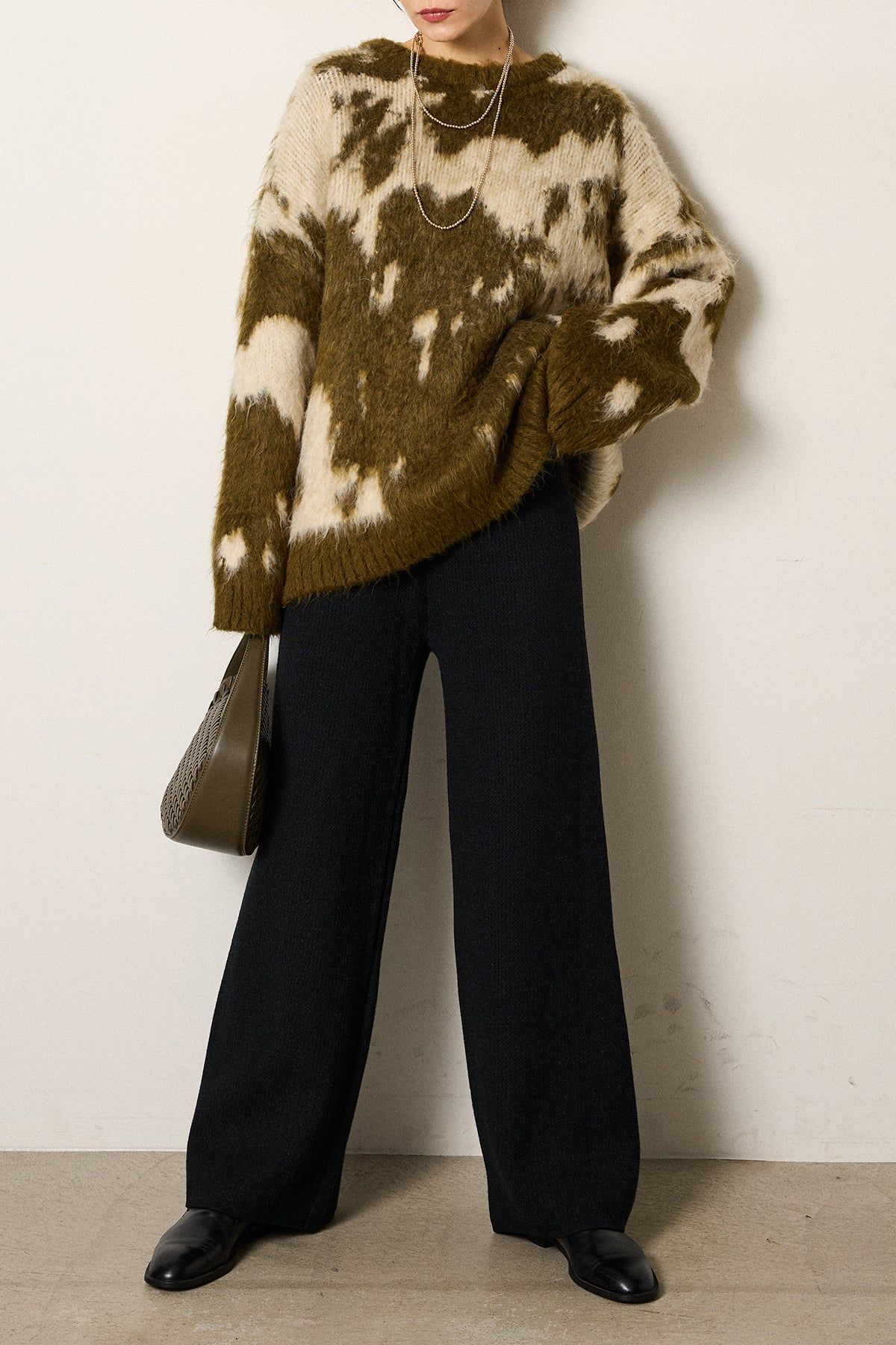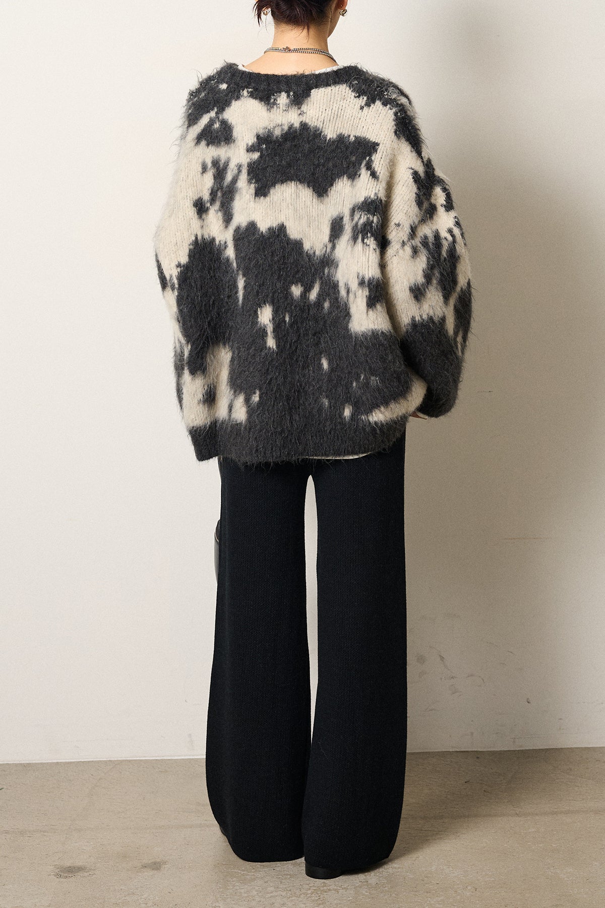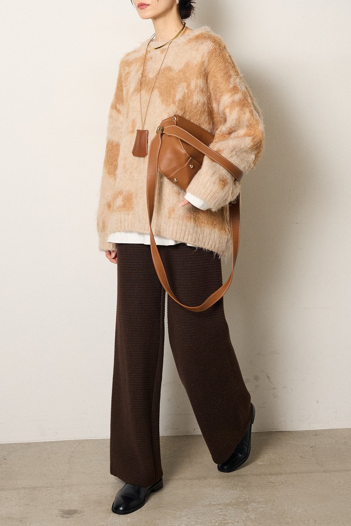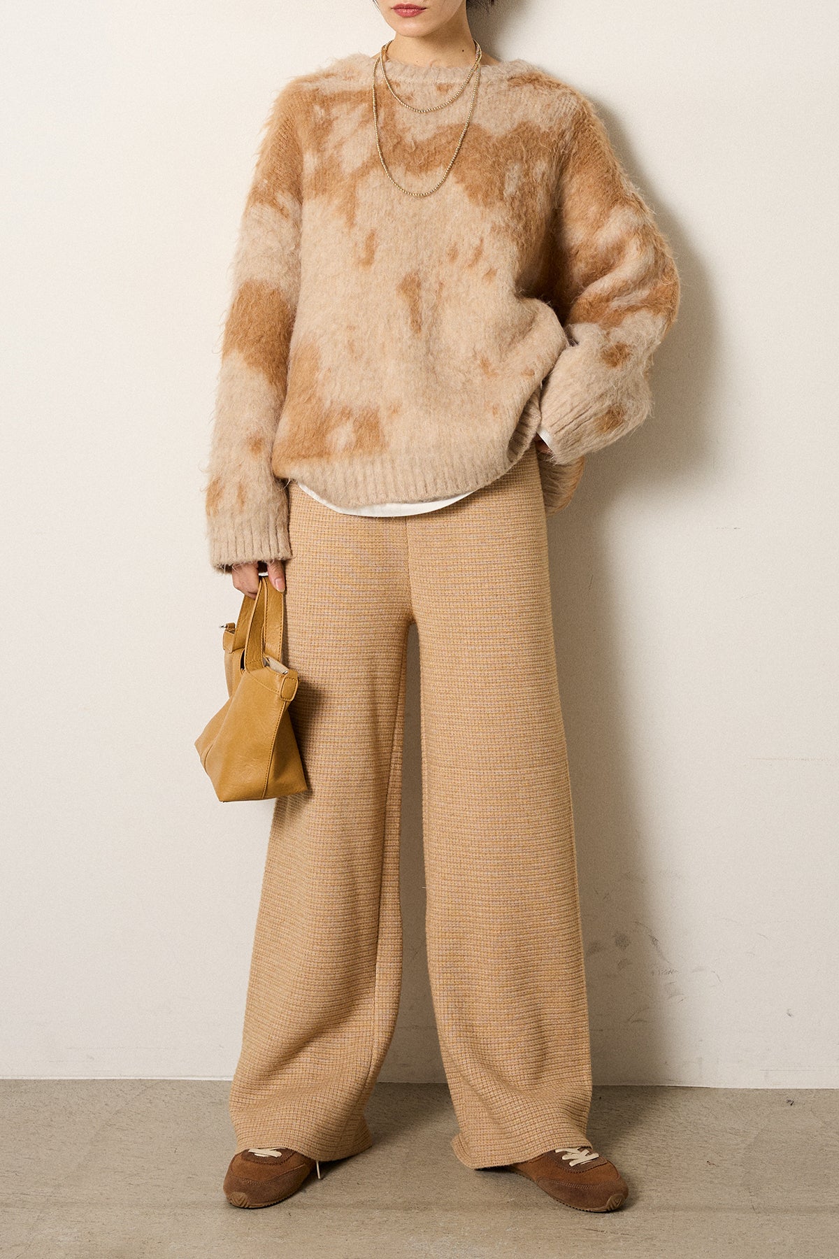 [SET]モヘアタッチマーブルニット+箔プリントBIGシルエットロングスリーブTシャツ+ワイドリブニットイージーパンツ(3set)