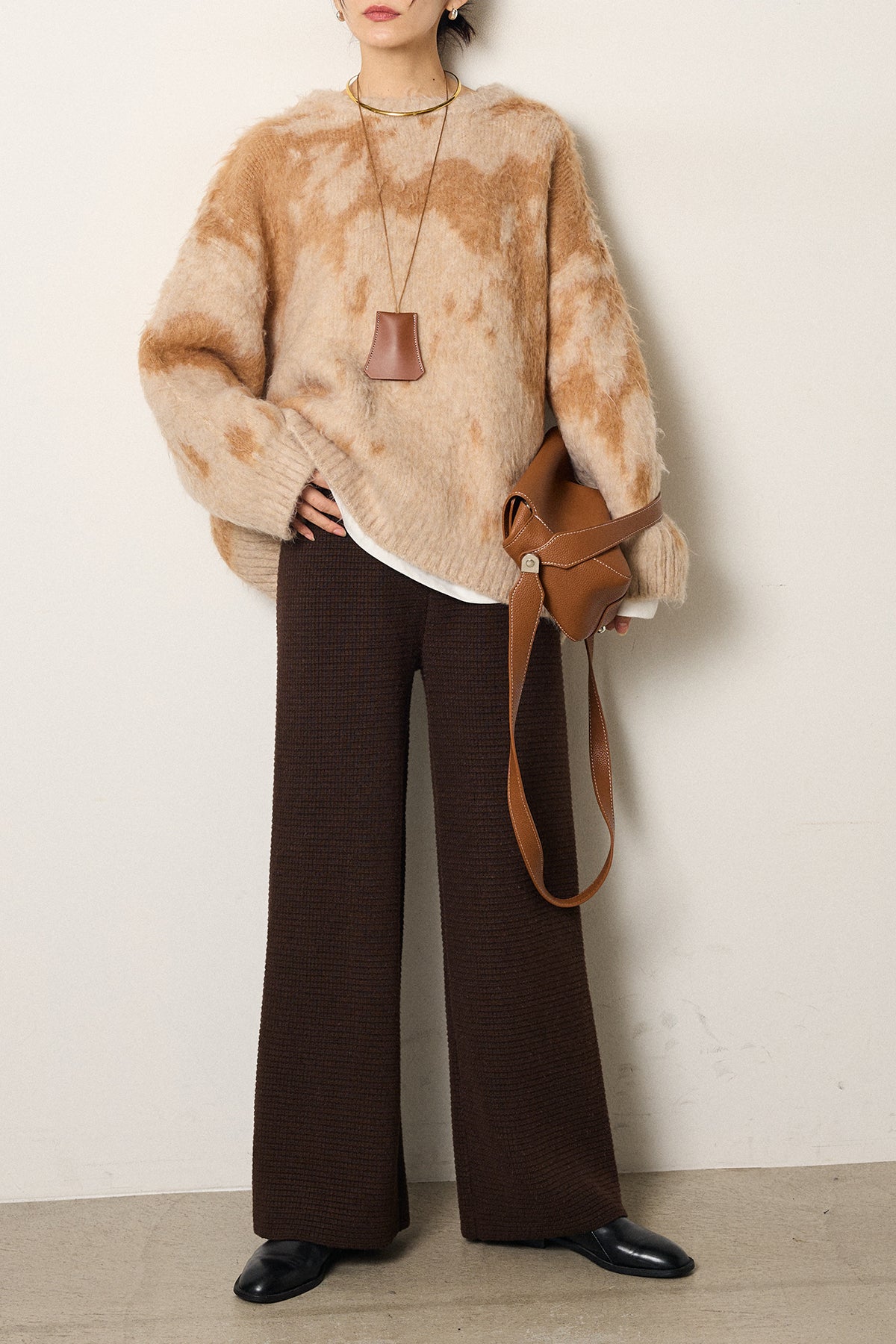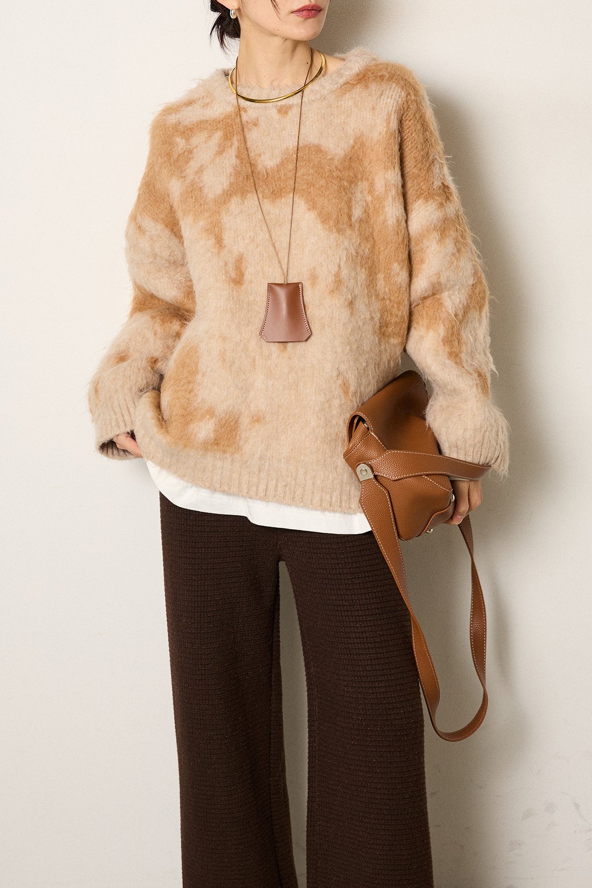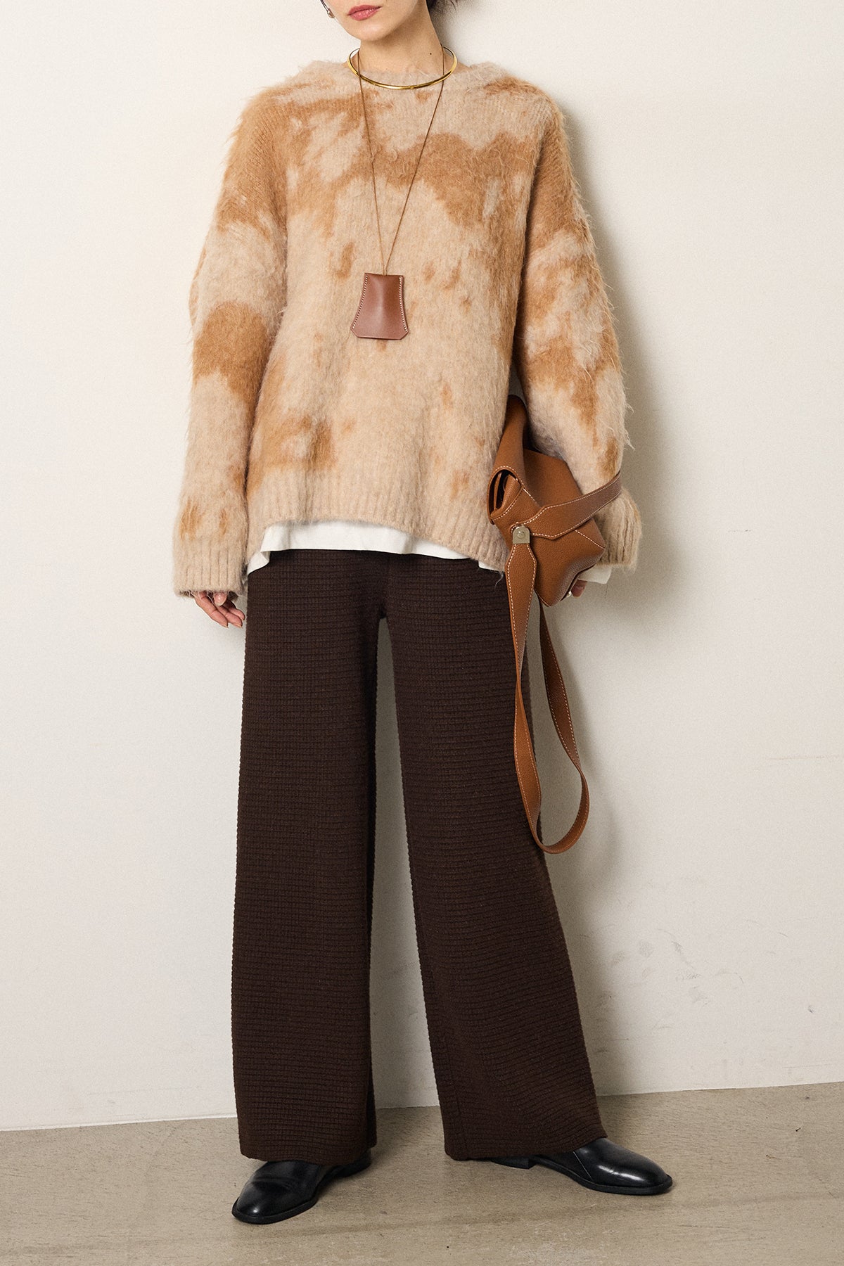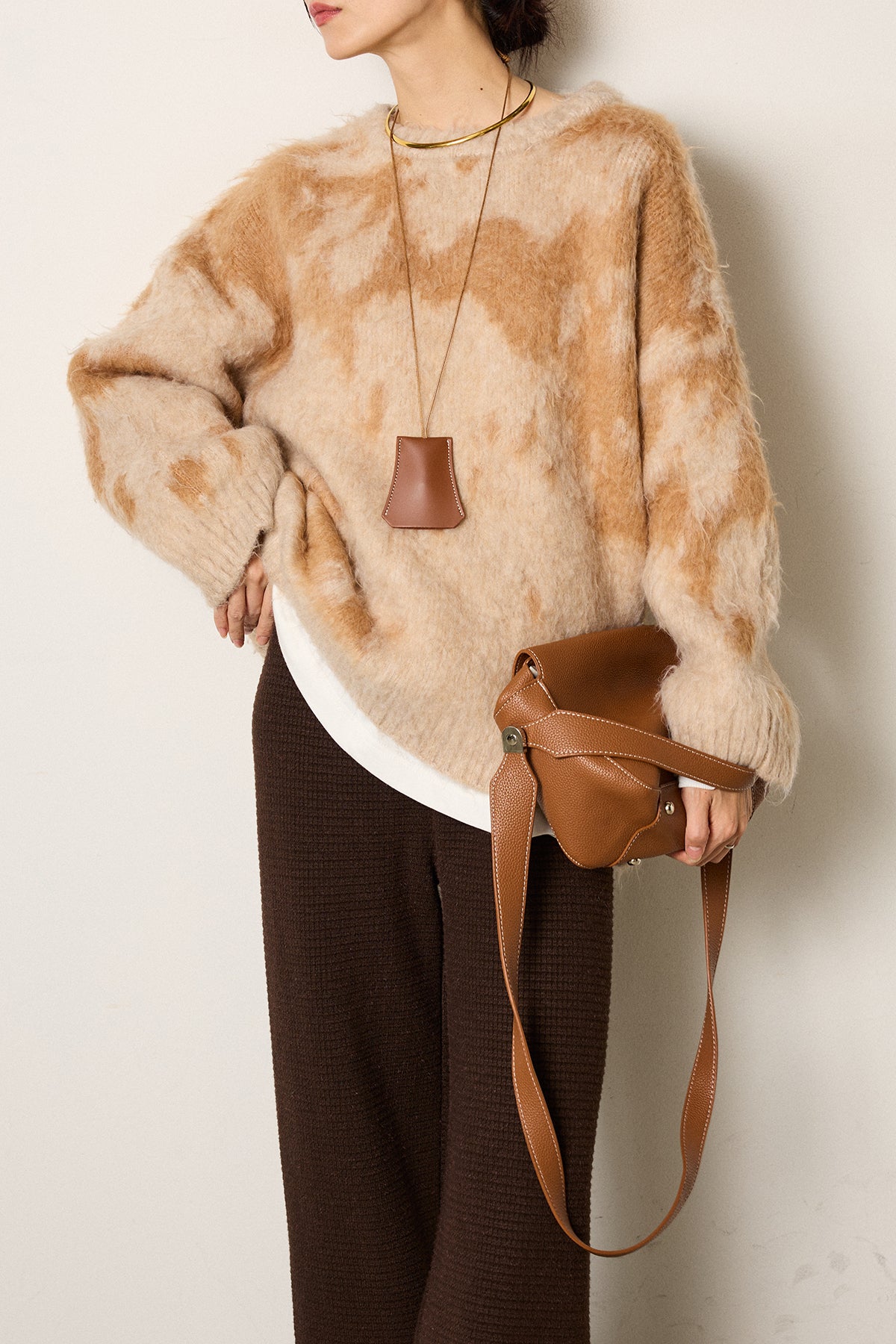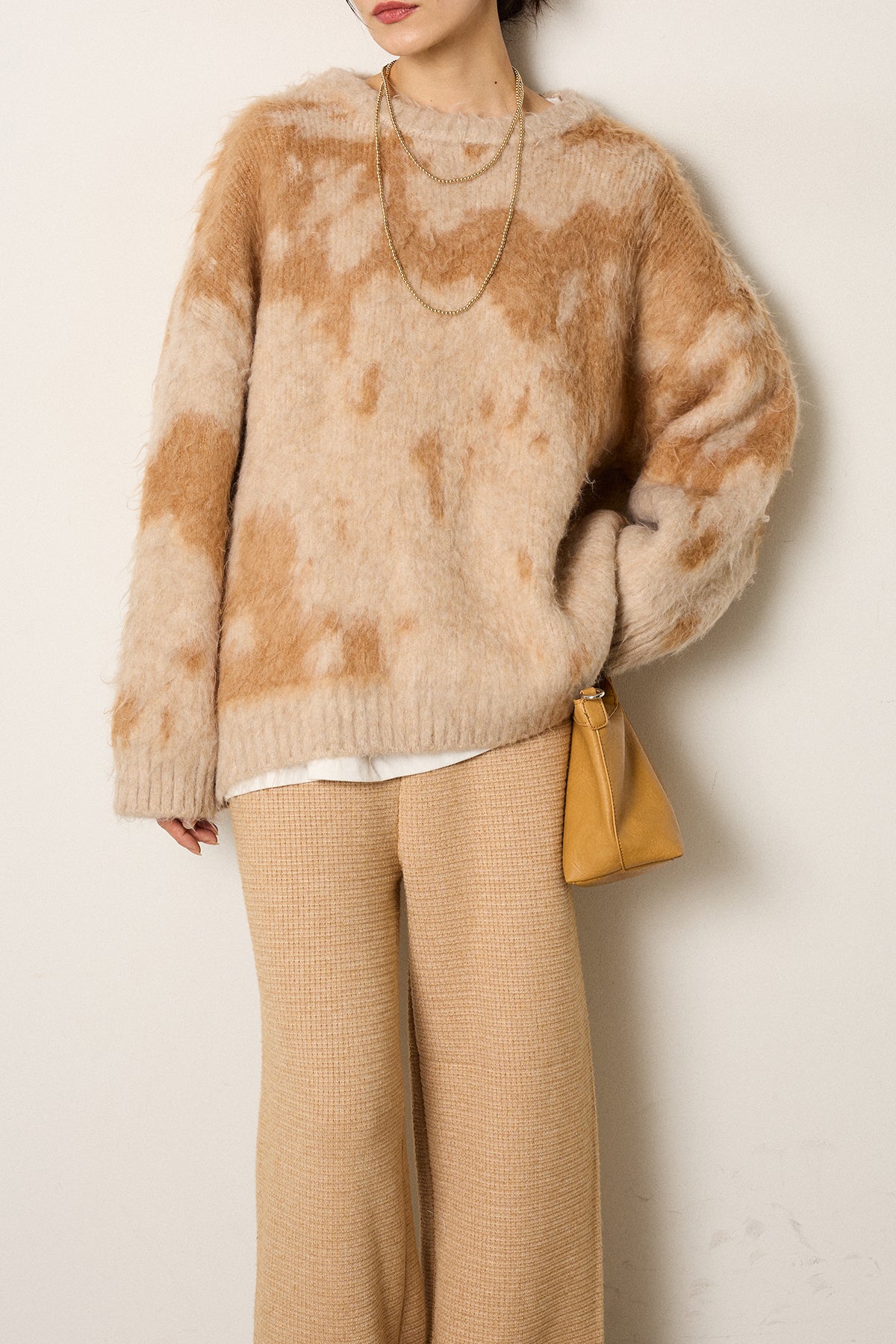 柔らかなモヘアタッチ素材が魅力のマーブルニット。 ふんわりとした質感と優しい色合いが、シーズンムードを高めてくれます。 ゆとりのあるシルエットでリラックス感がありながらも、上品な印象に。 一枚で主役になる存在感で、デニムからスカートまで幅広くマッチします。