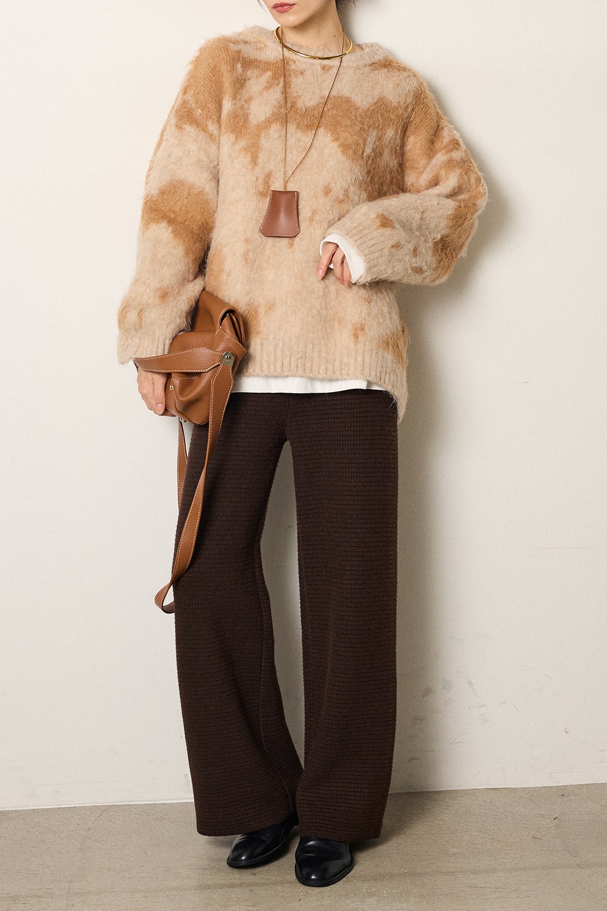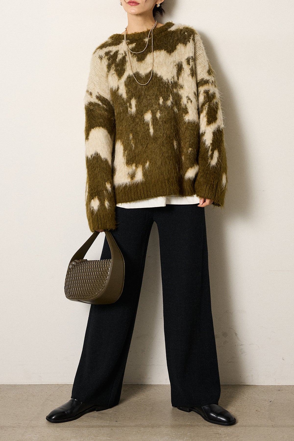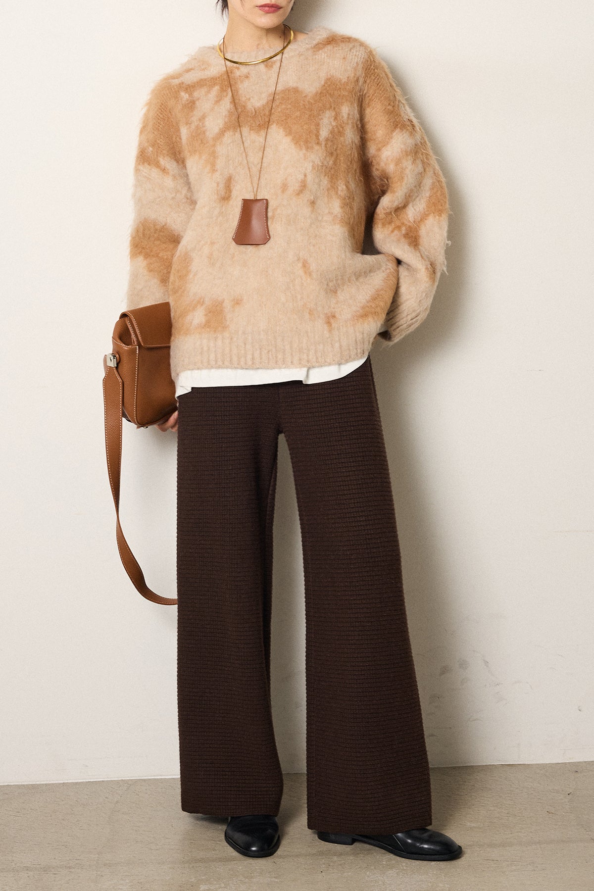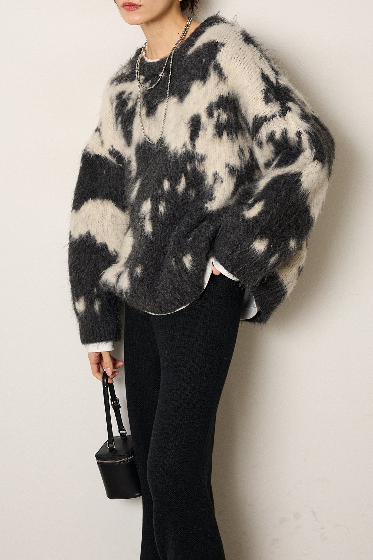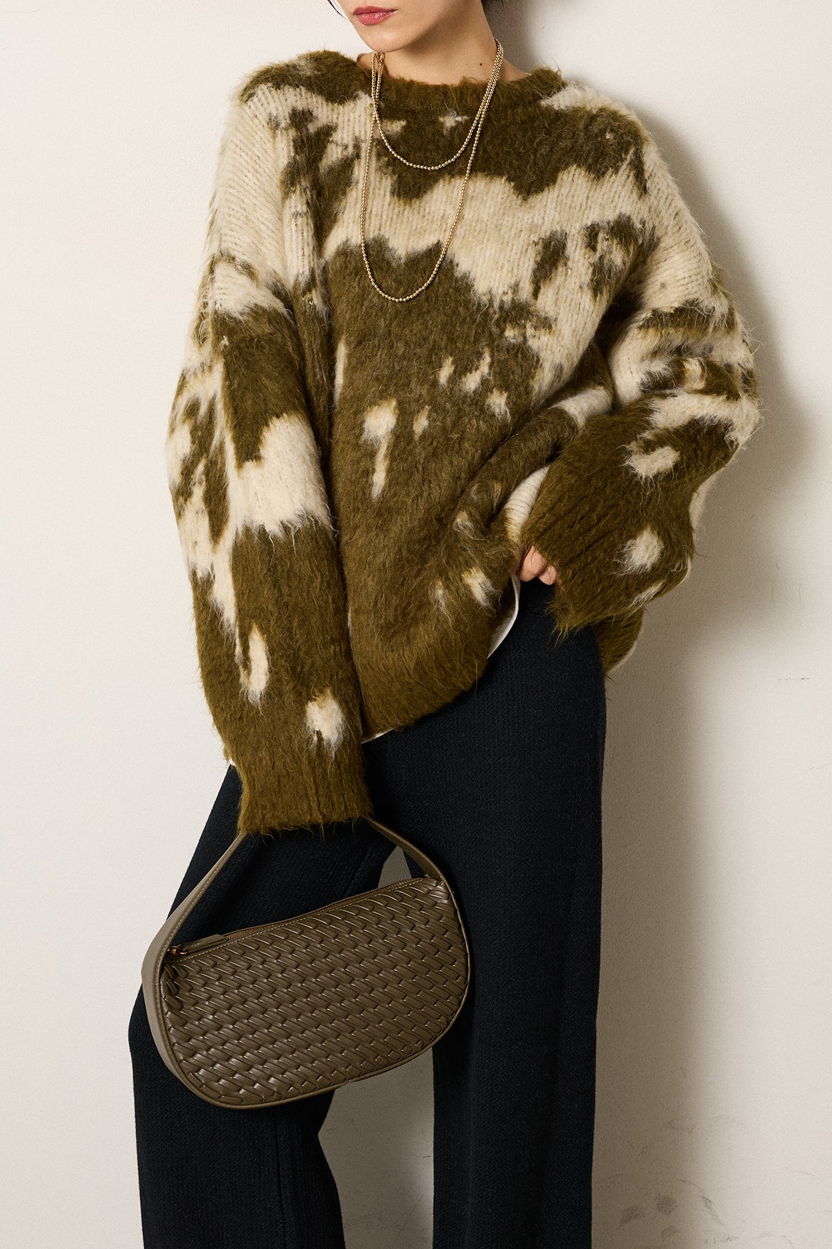 柔らかなモヘアタッチ素材が魅力のマーブルニット。 ふんわりとした質感と優しい色合いが、シーズンムードを高めてくれます。 ゆとりのあるシルエットでリラックス感がありながらも、上品な印象に。 一枚で主役になる存在感で、デニムからスカートまで幅広くマッチします。