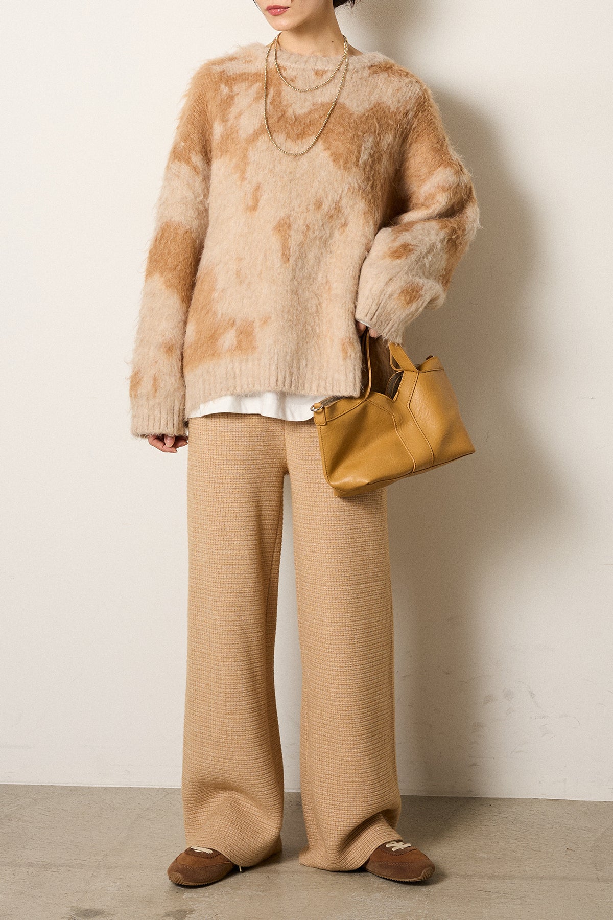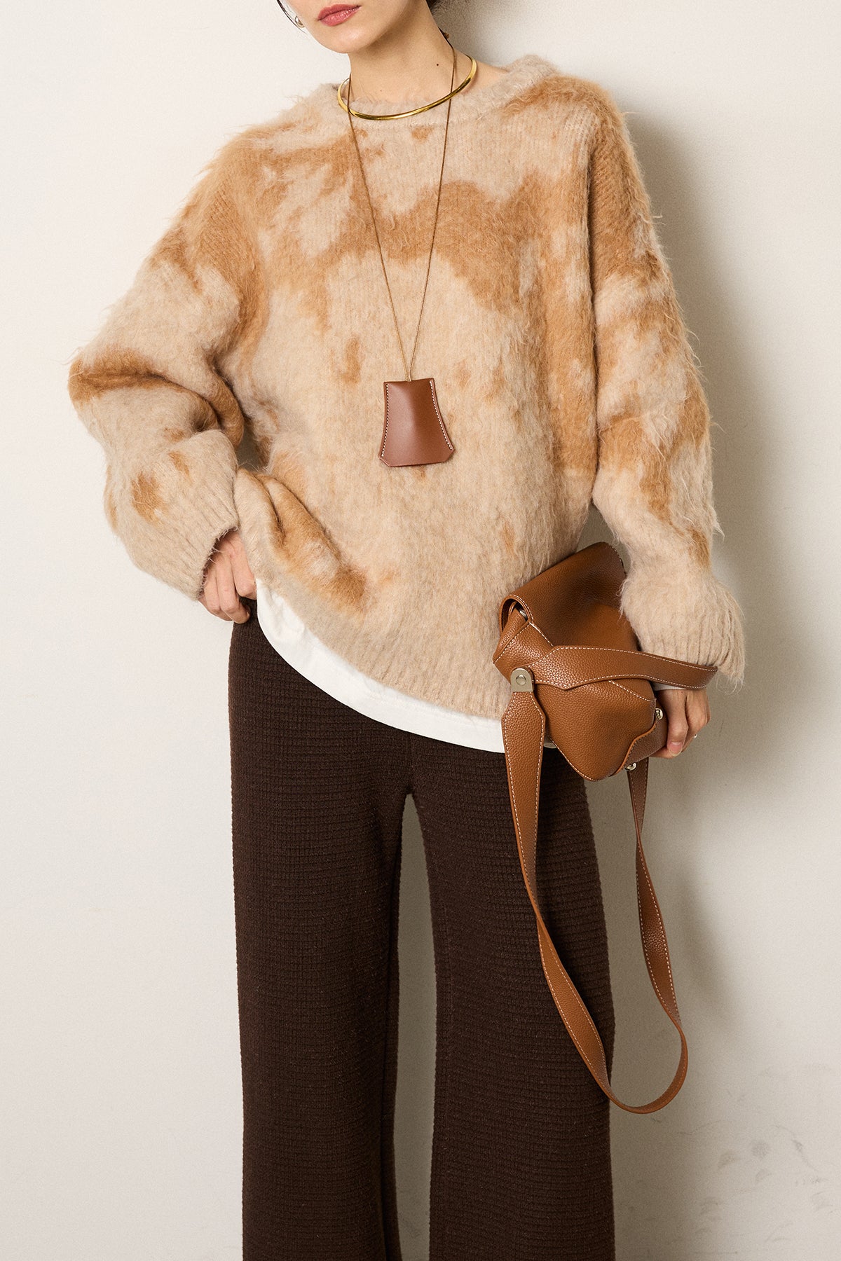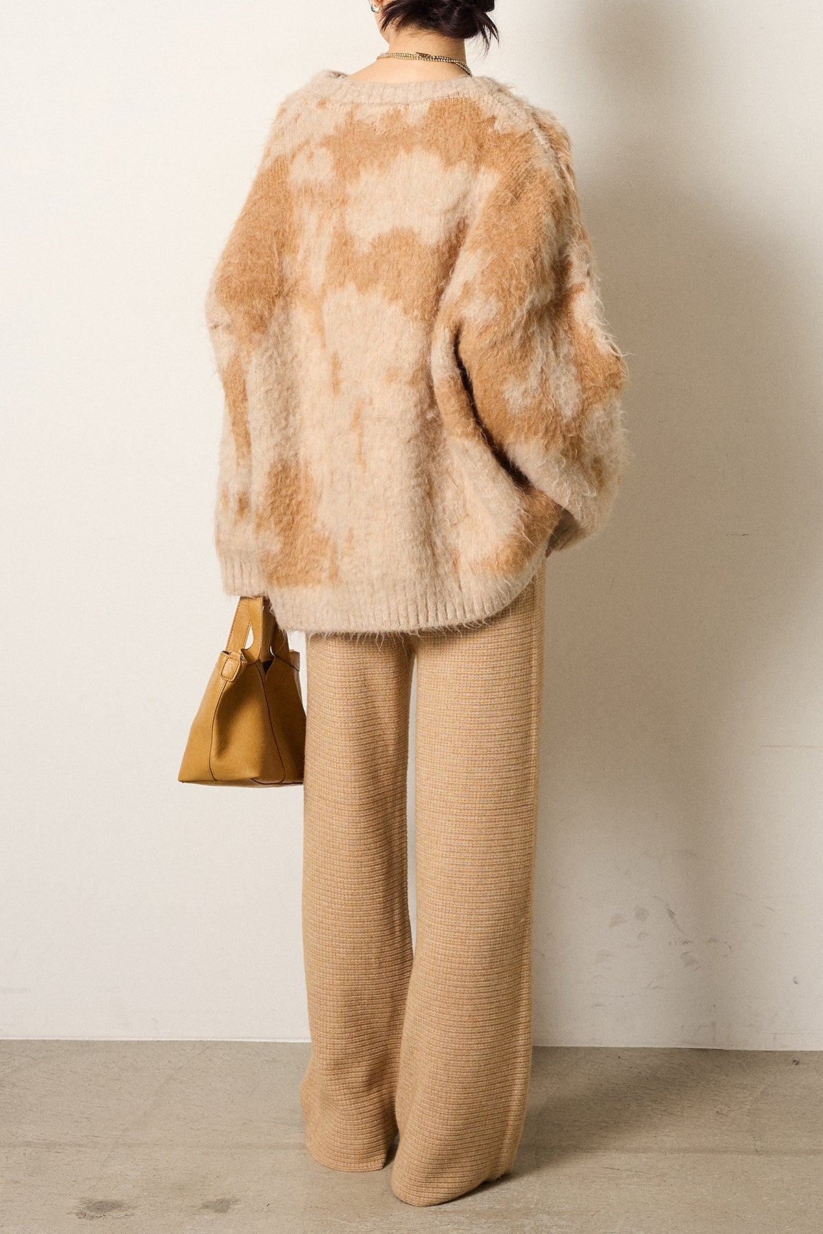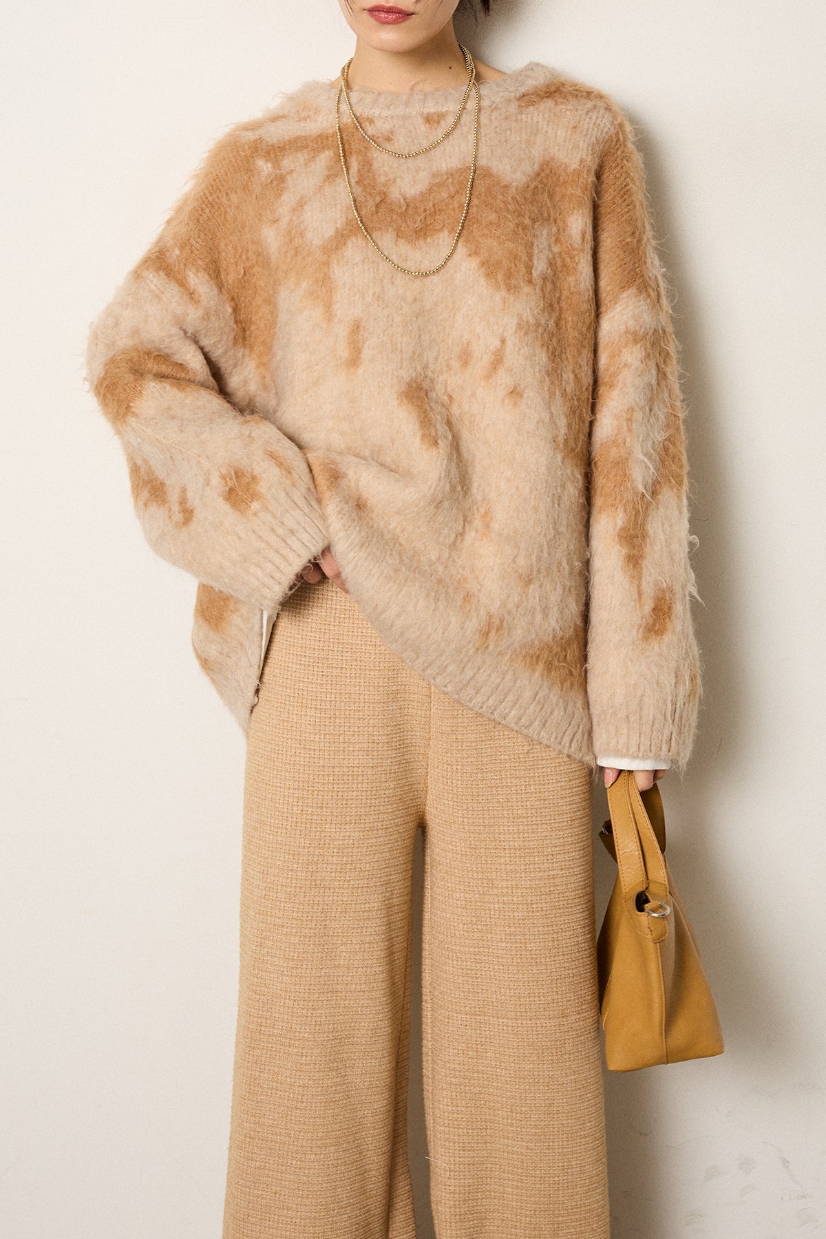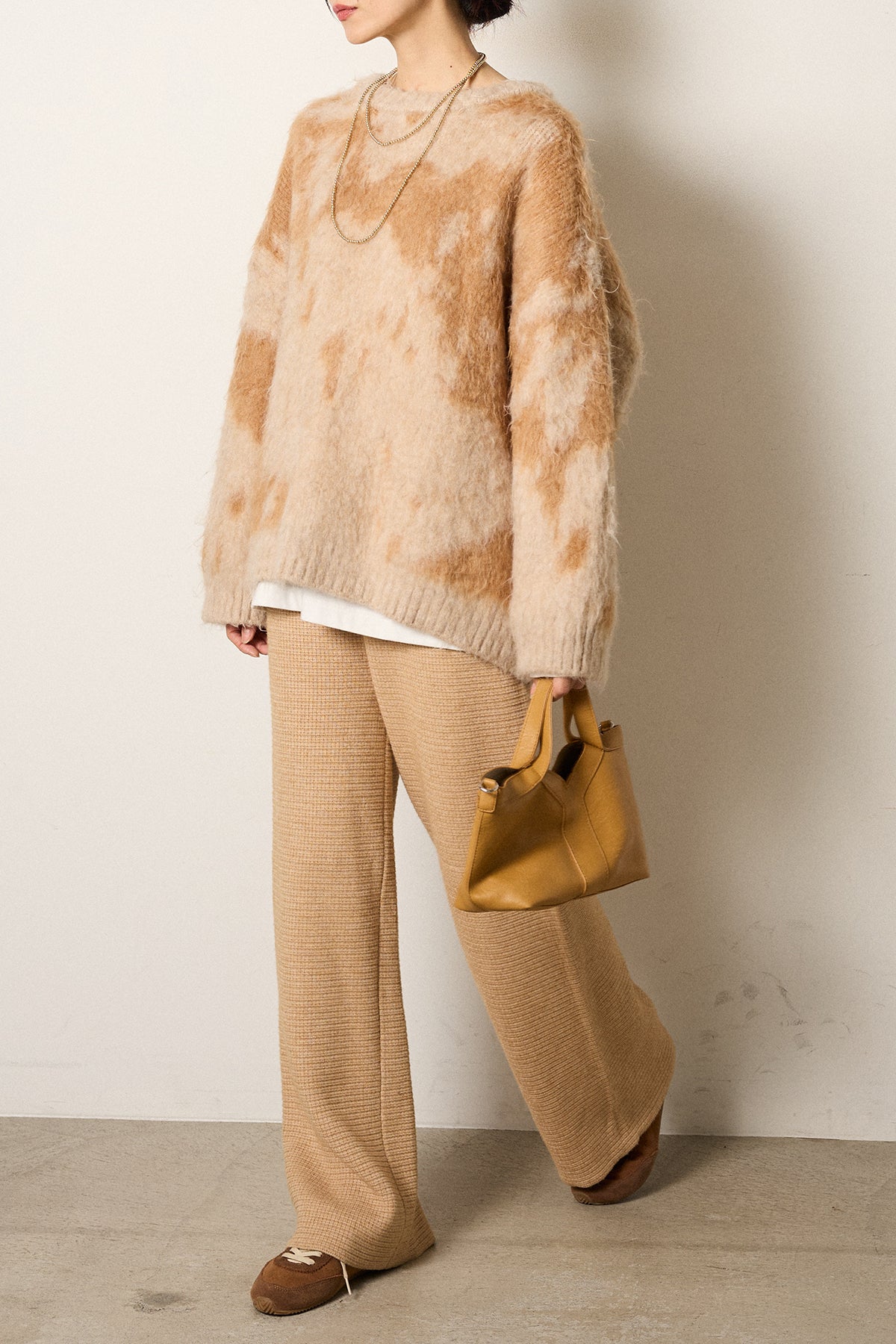柔らかなモヘアタッチ素材が魅力のマーブルニット。 ふんわりとした質感と優しい色合いが、シーズンムードを高めてくれます。 ゆとりのあるシルエットでリラックス感がありながらも、上品な印象に。 一枚で主役になる存在感で、デニムからスカートまで幅広くマッチします。