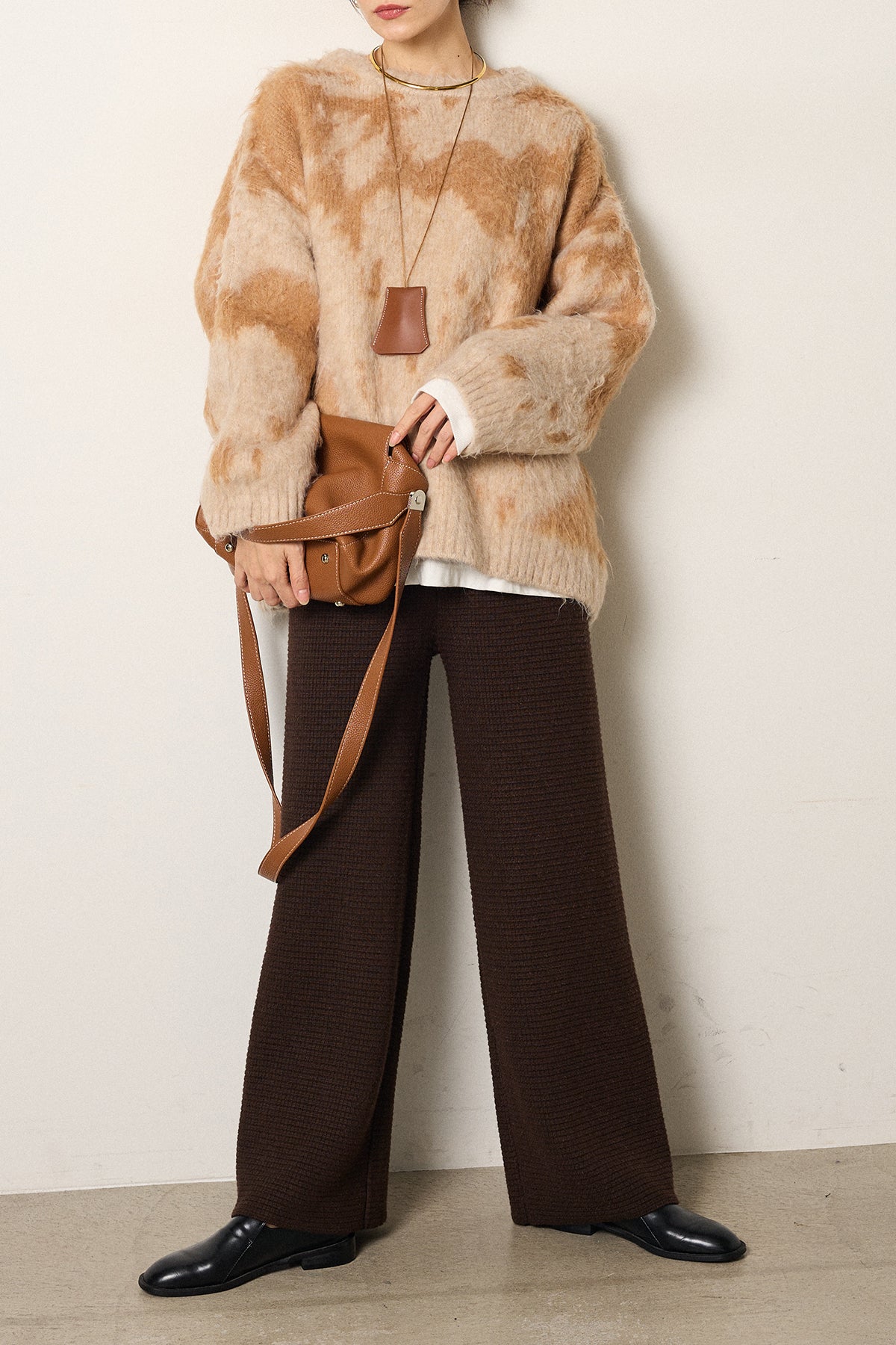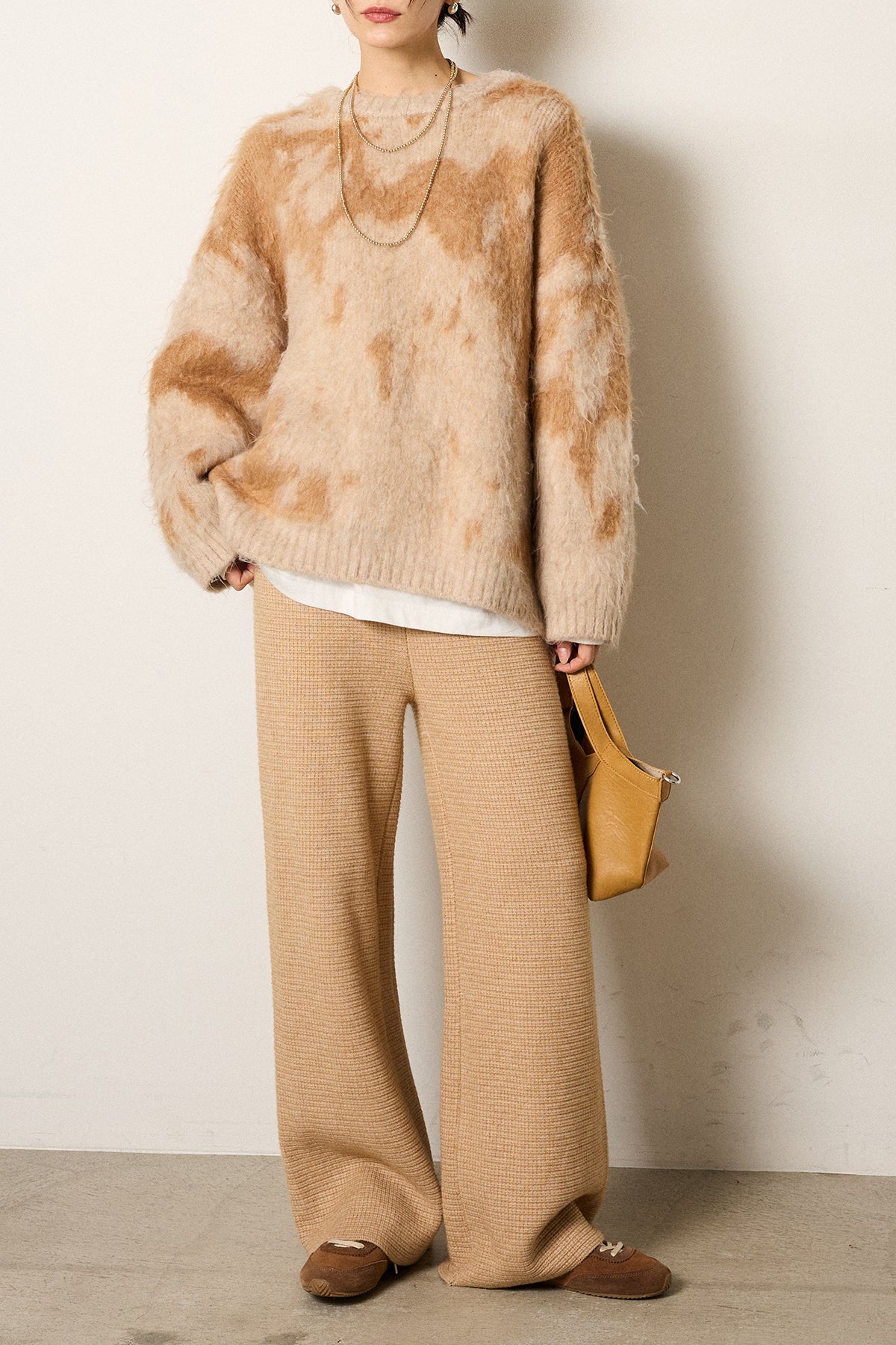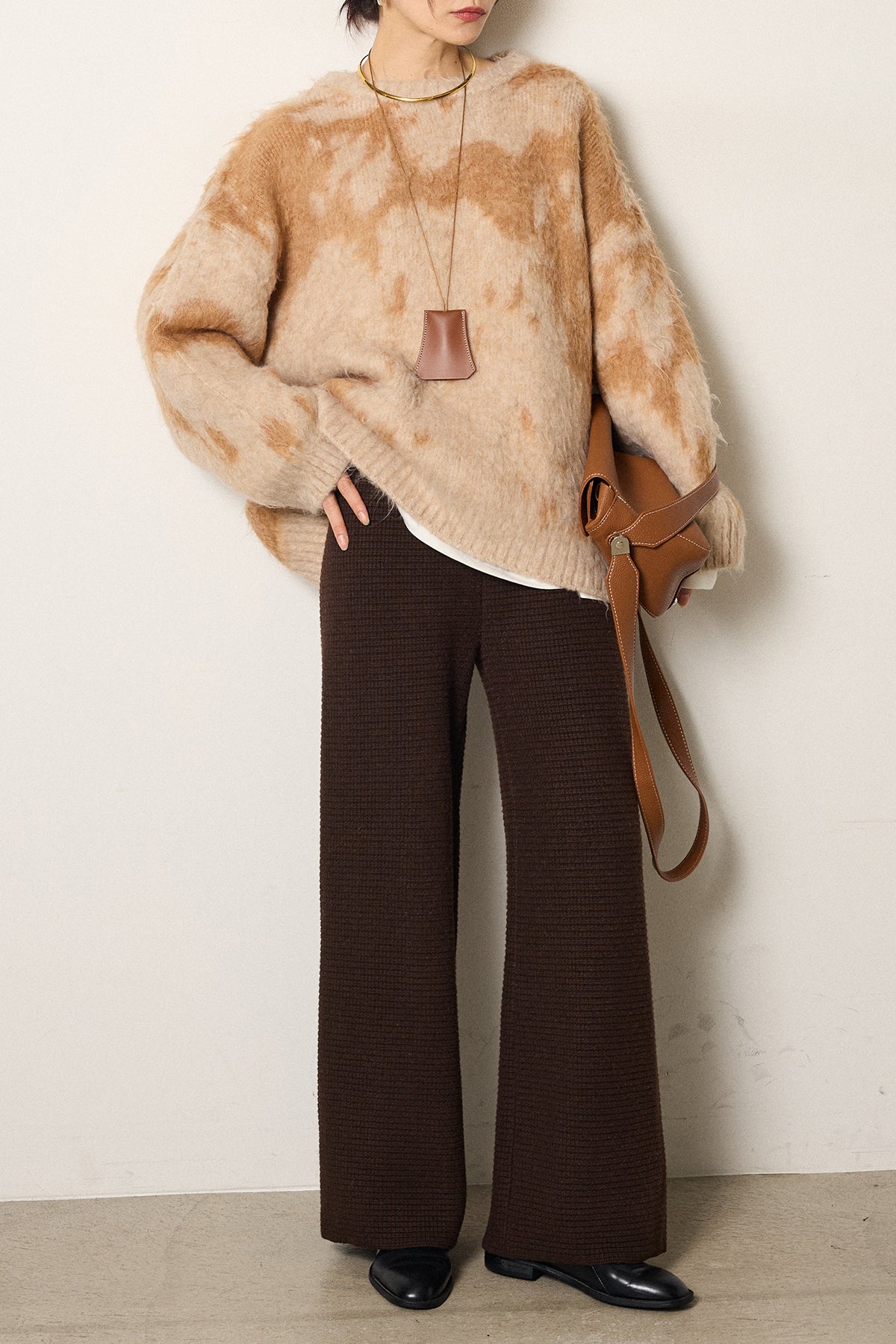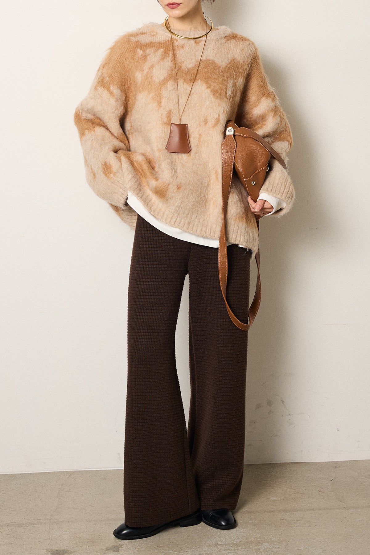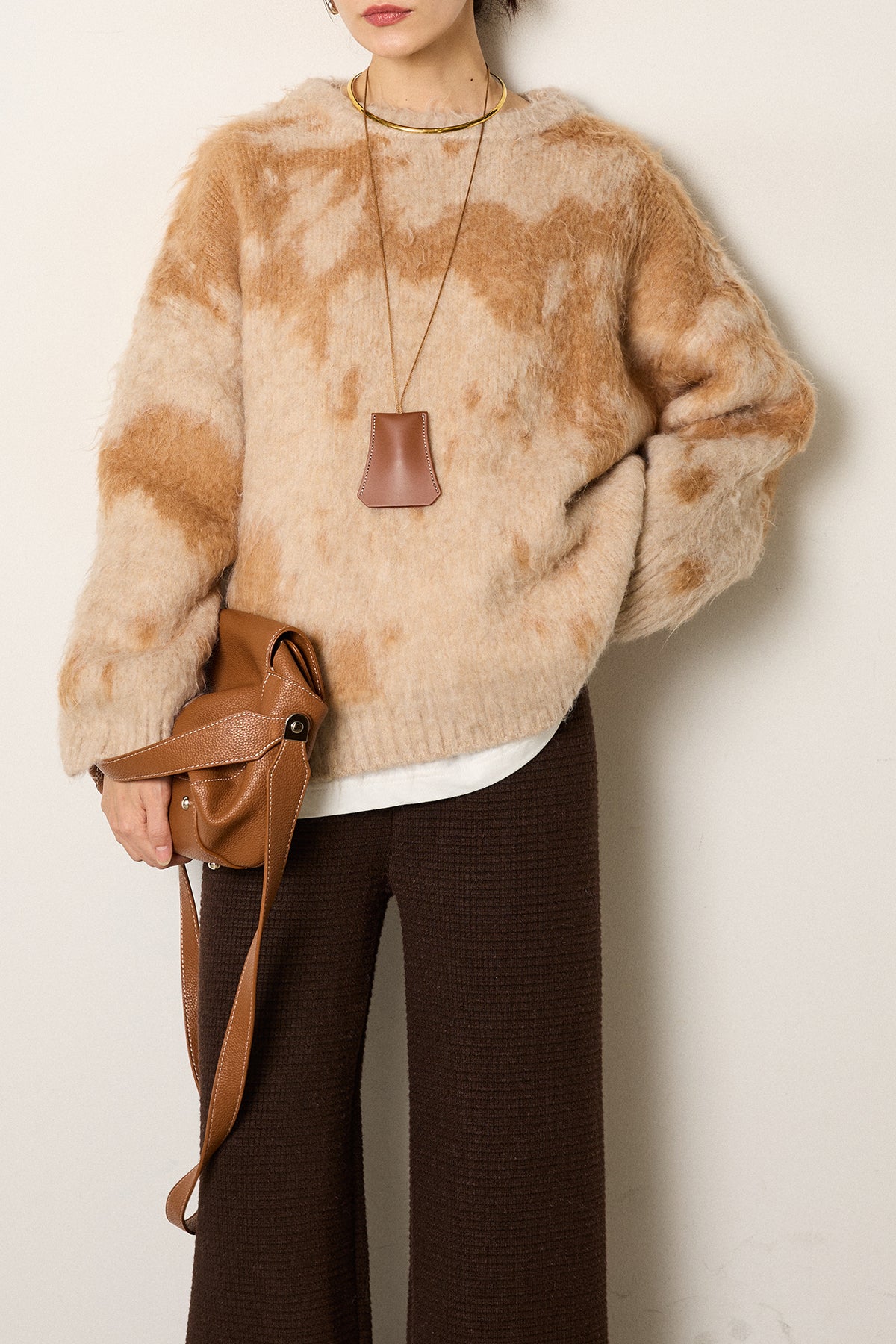 柔らかなモヘアタッチ素材が魅力のマーブルニット。 ふんわりとした質感と優しい色合いが、シーズンムードを高めてくれます。 ゆとりのあるシルエットでリラックス感がありながらも、上品な印象に。 一枚で主役になる存在感で、デニムからスカートまで幅広くマッチします。