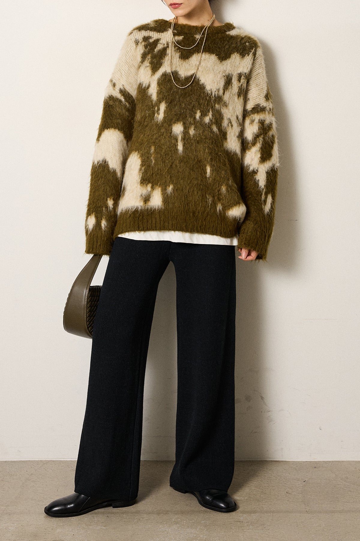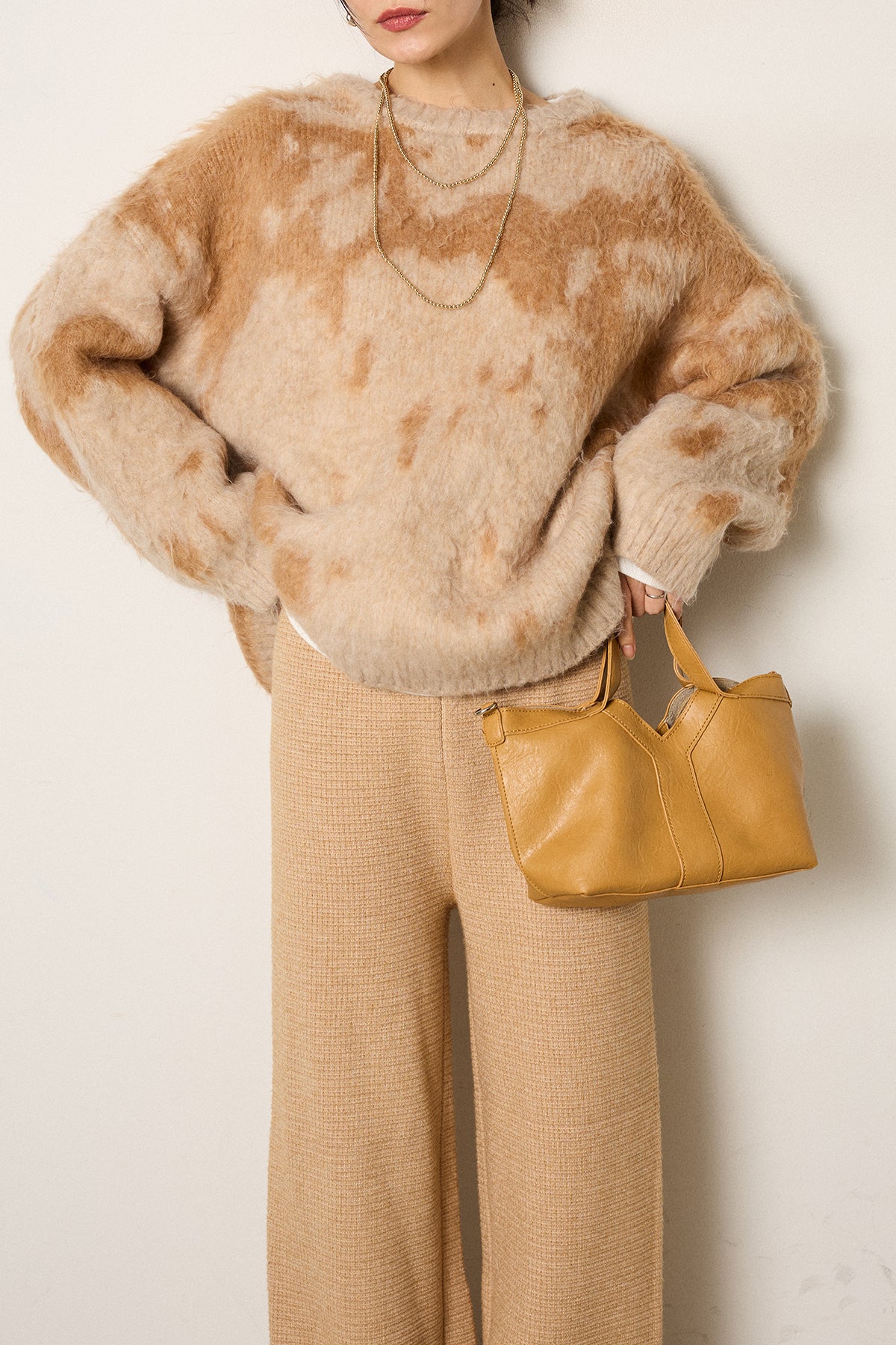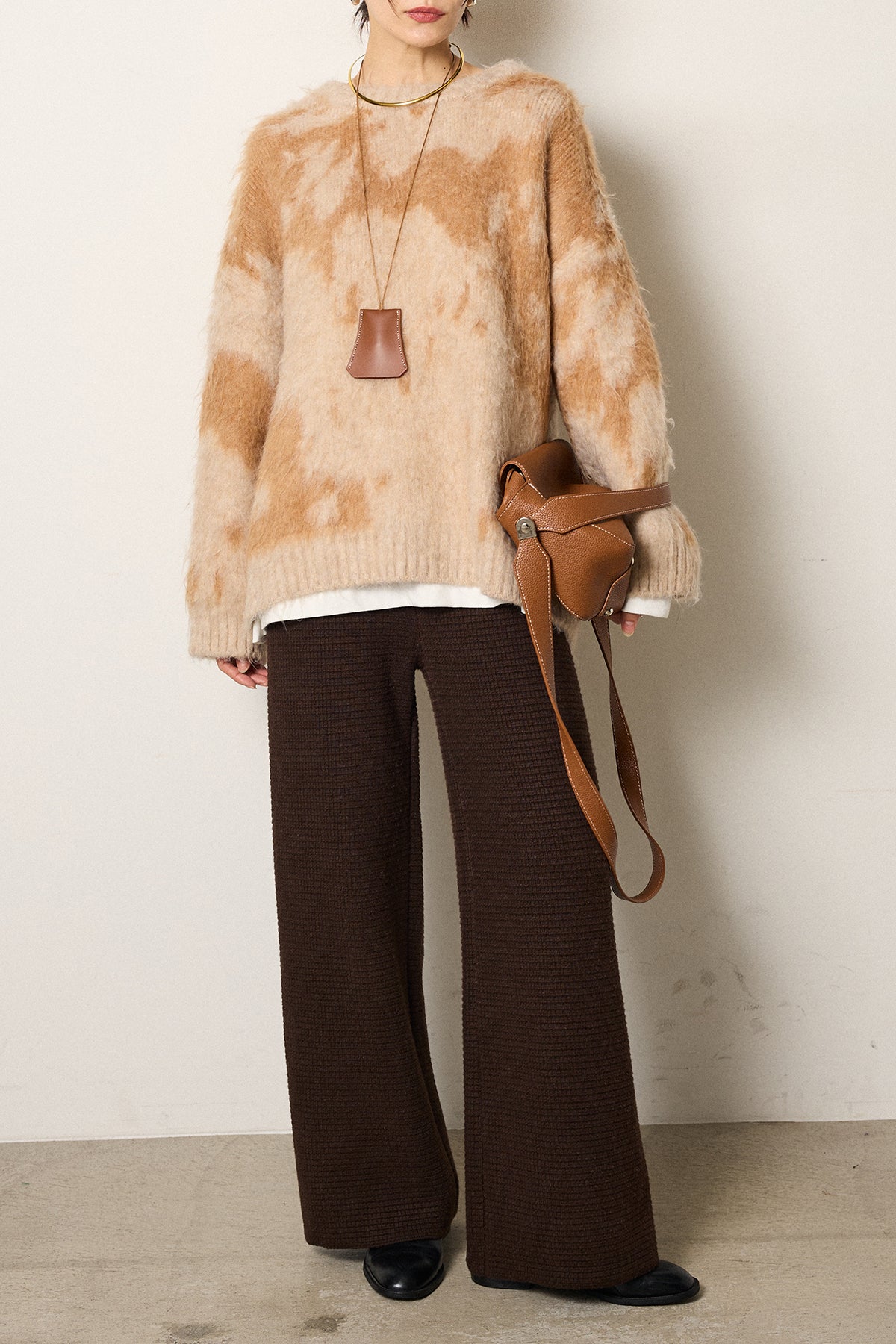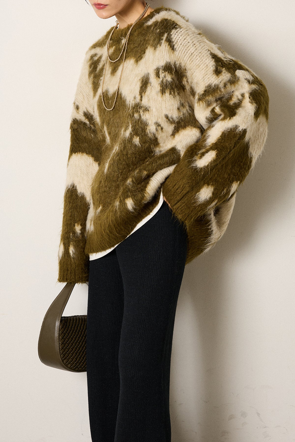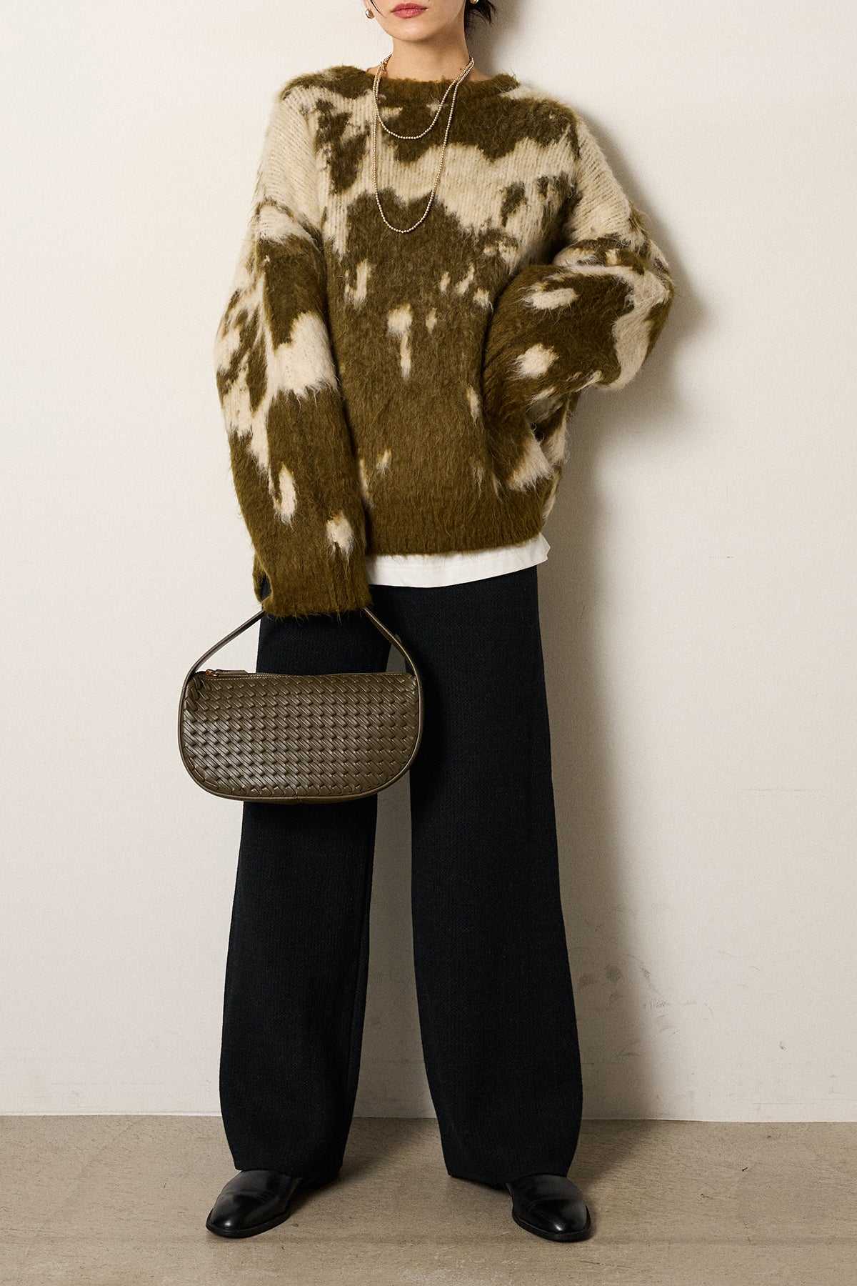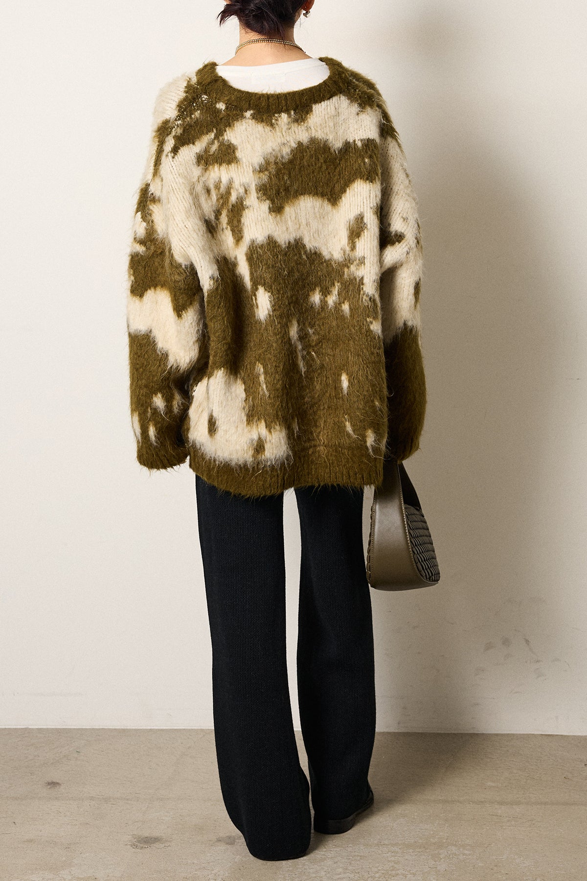 柔らかなモヘアタッチ素材が魅力のマーブルニット。 ふんわりとした質感と優しい色合いが、シーズンムードを高めてくれます。 ゆとりのあるシルエットでリラックス感がありながらも、上品な印象に。 一枚で主役になる存在感で、デニムからスカートまで幅広くマッチします。