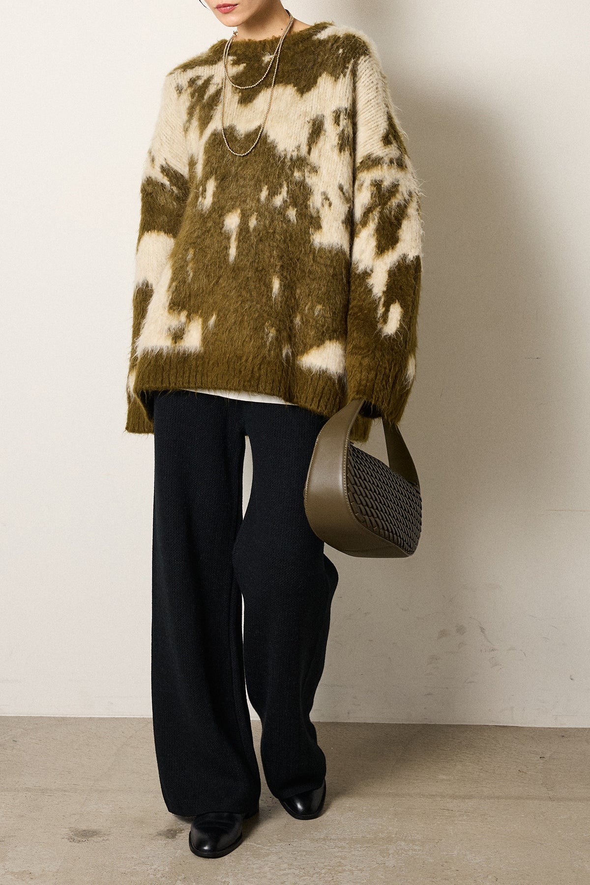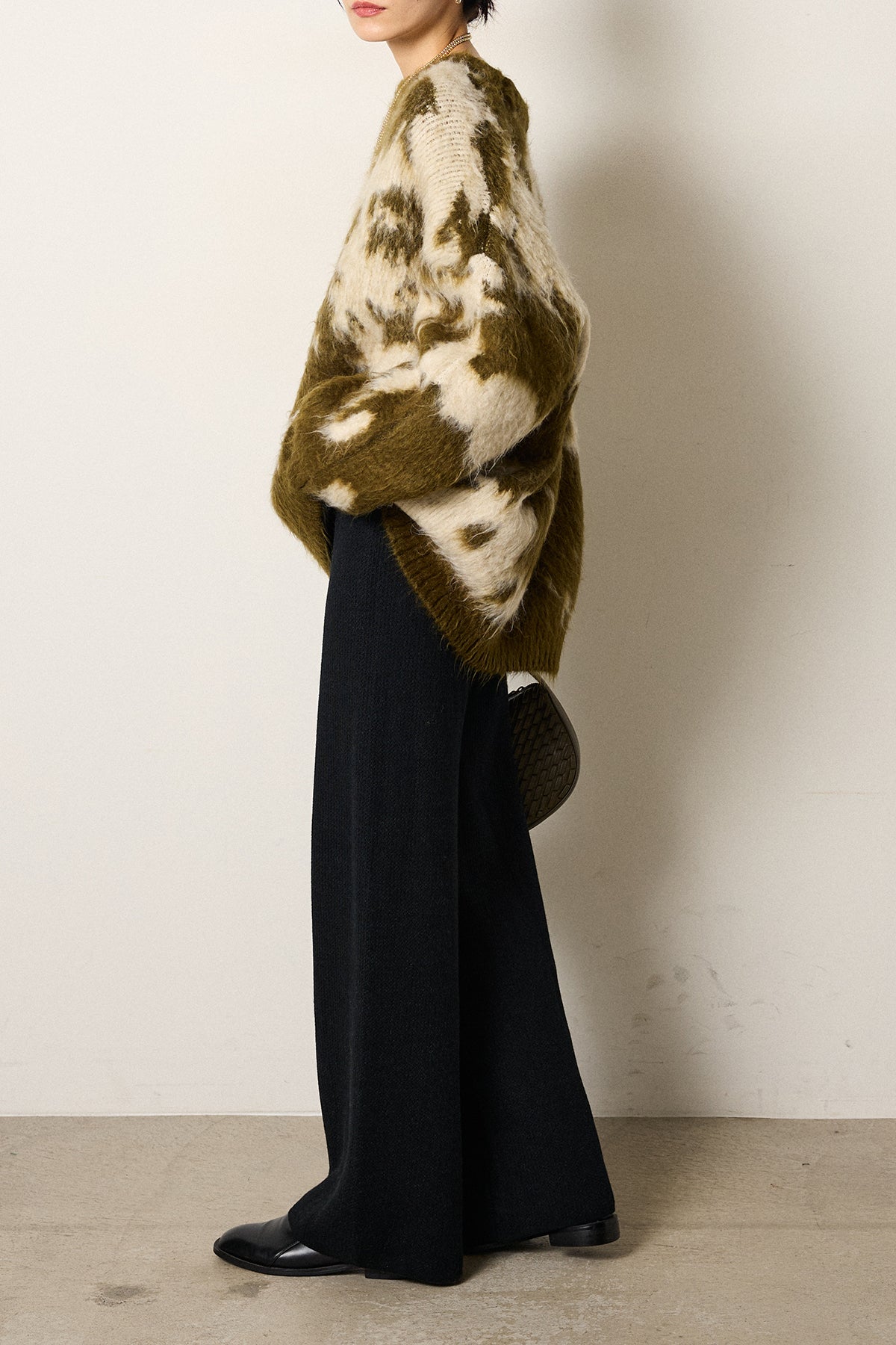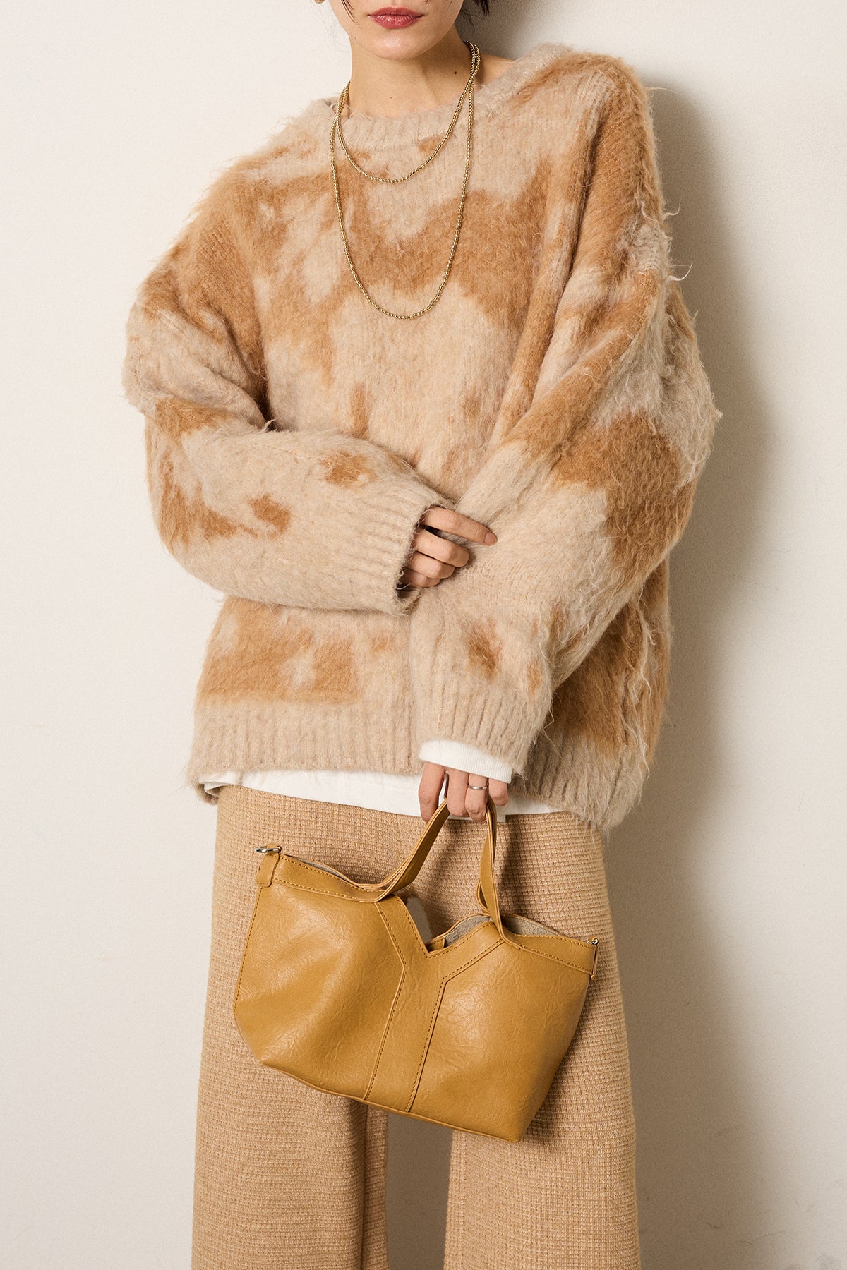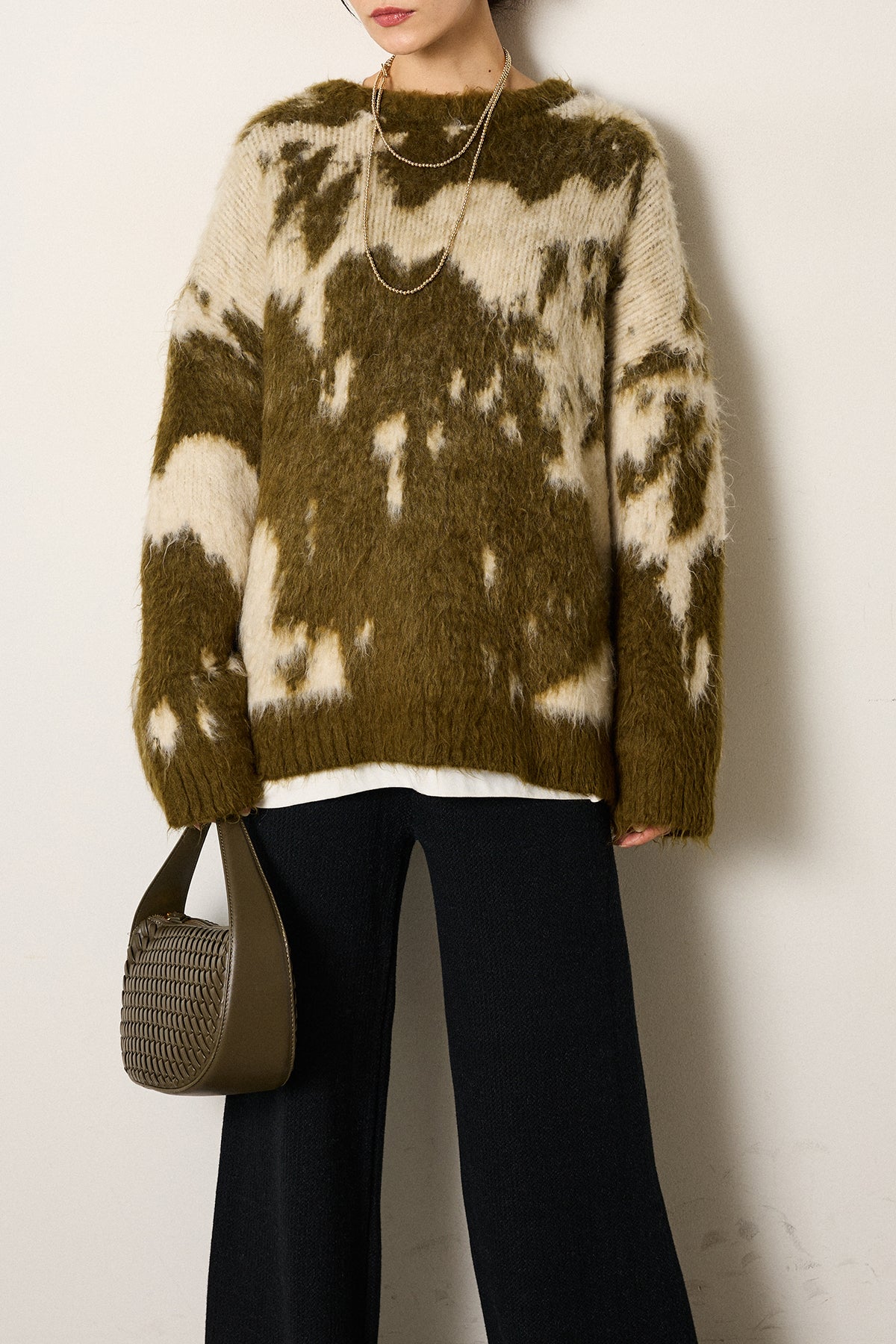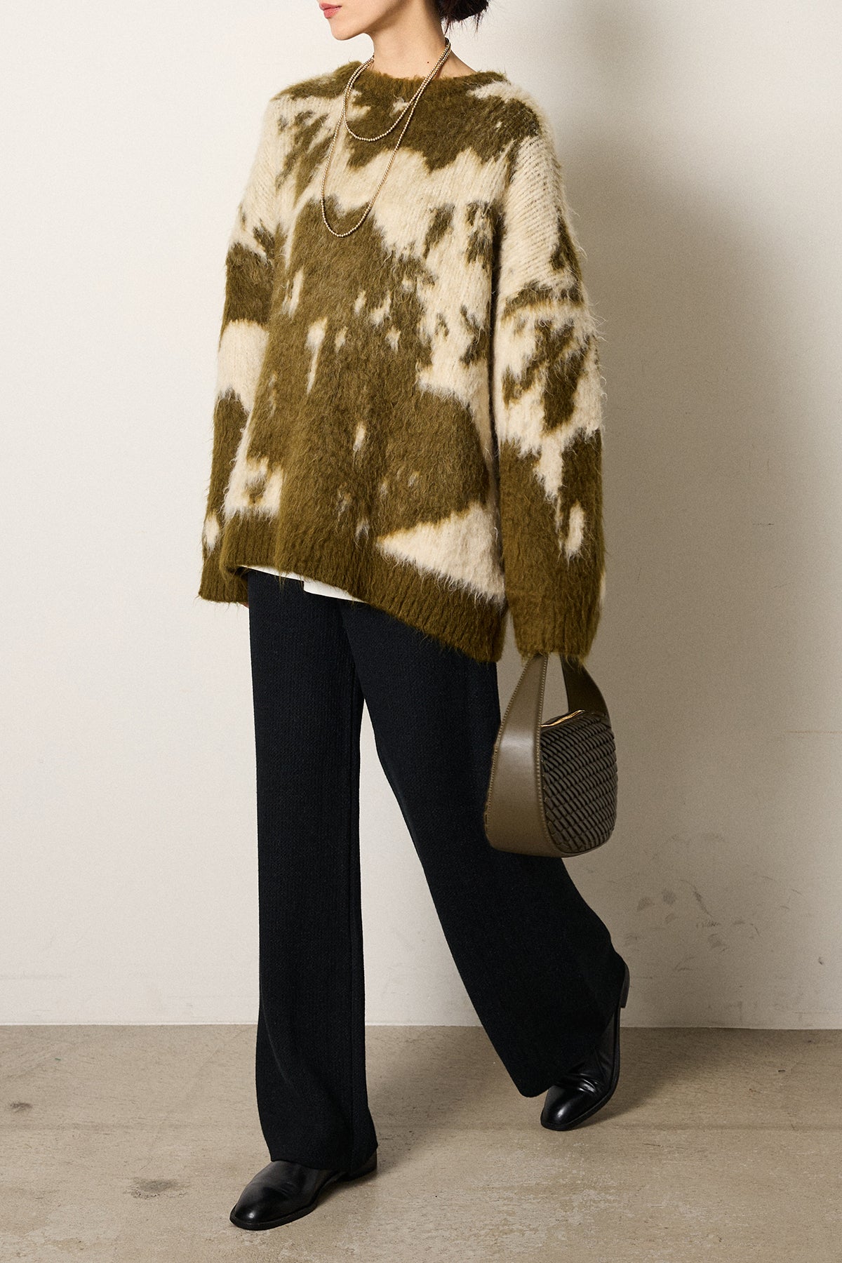 柔らかなモヘアタッチ素材が魅力のマーブルニット。 ふんわりとした質感と優しい色合いが、シーズンムードを高めてくれます。 ゆとりのあるシルエットでリラックス感がありながらも、上品な印象に。 一枚で主役になる存在感で、デニムからスカートまで幅広くマッチします。