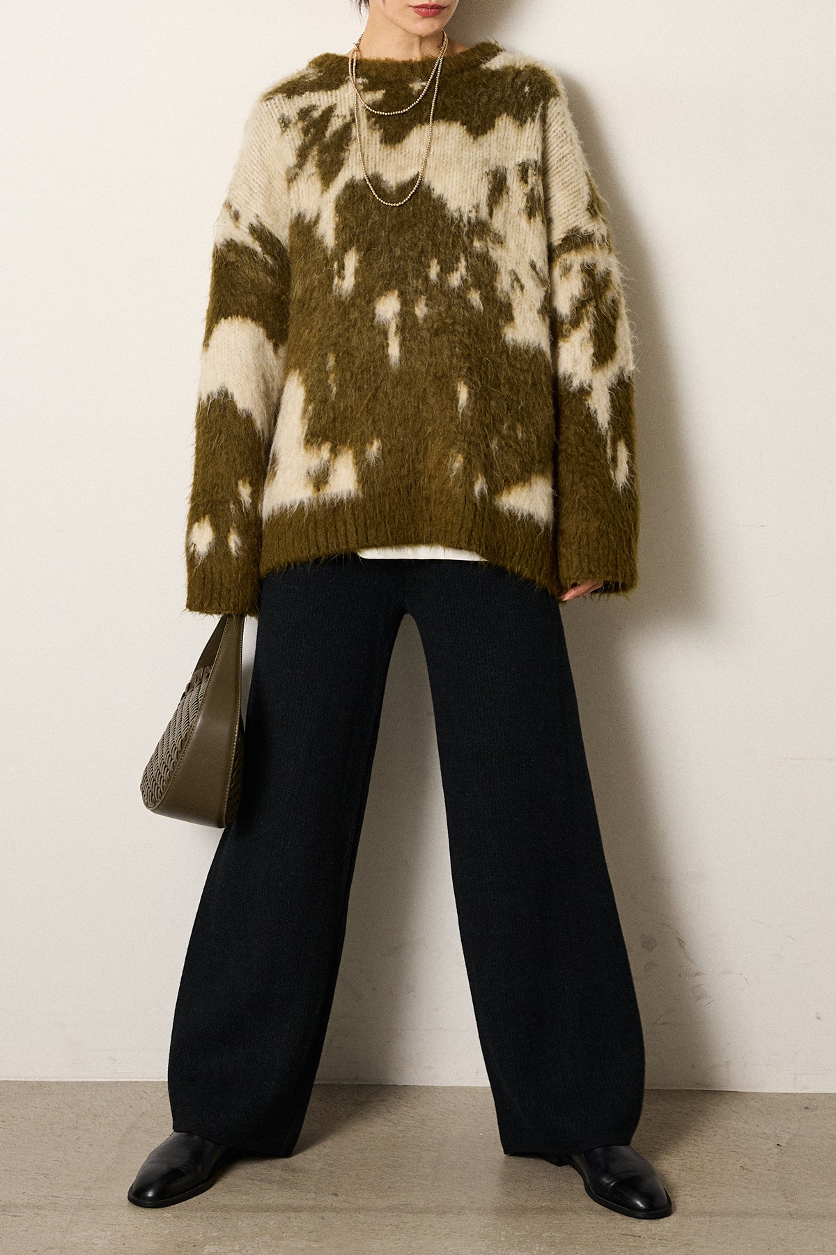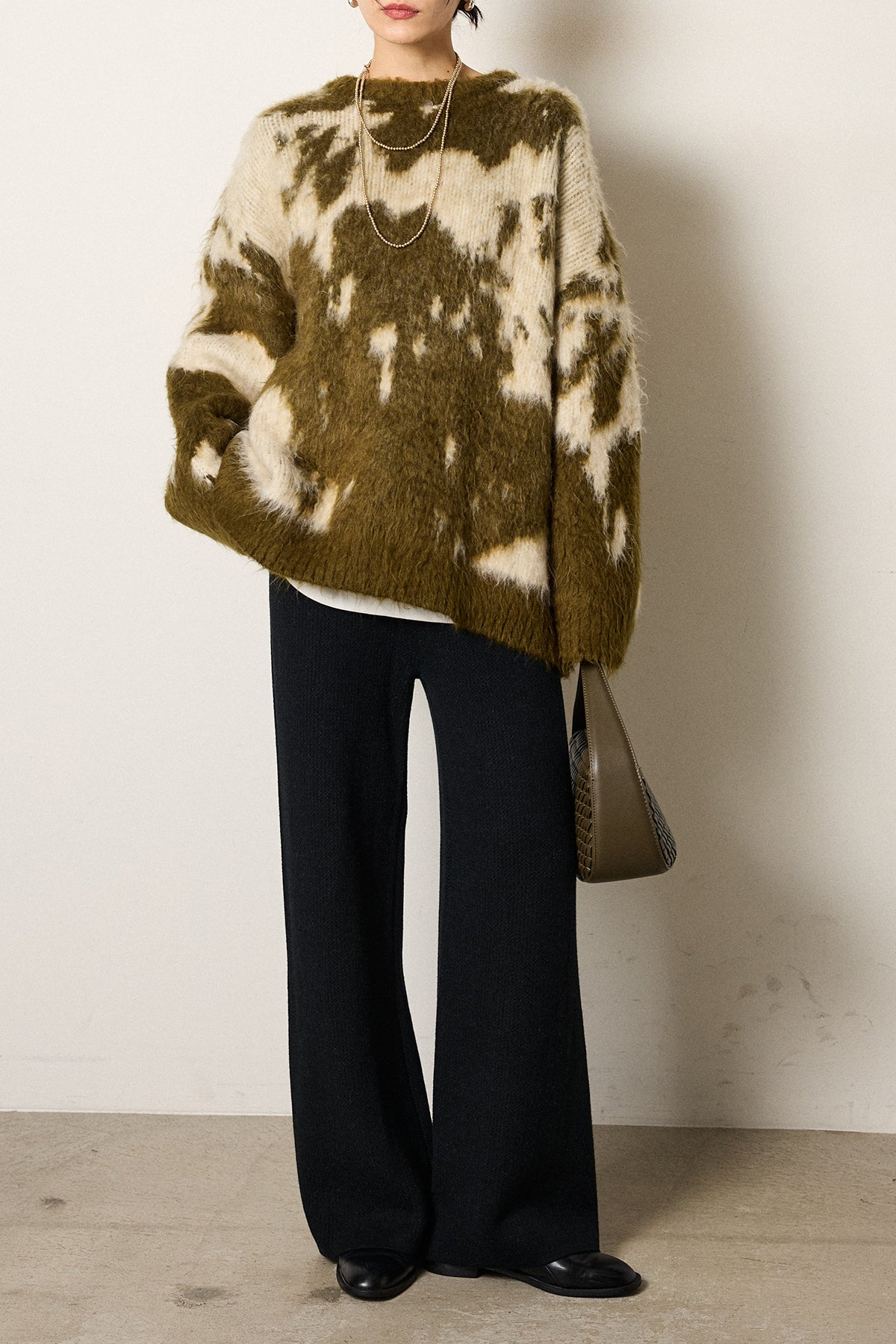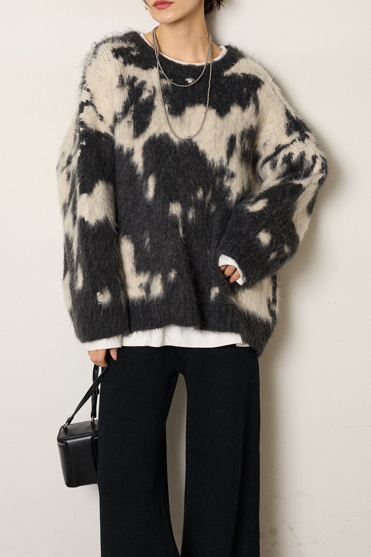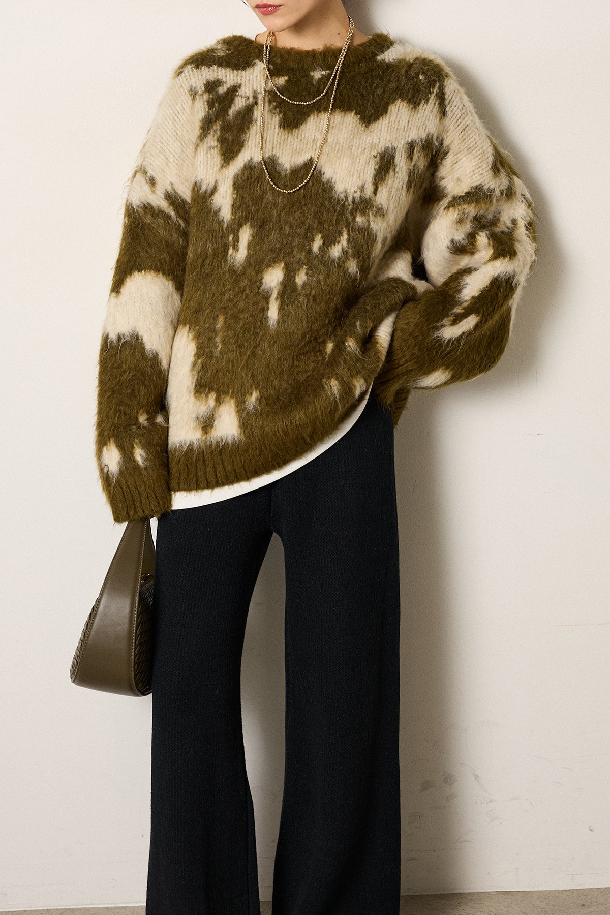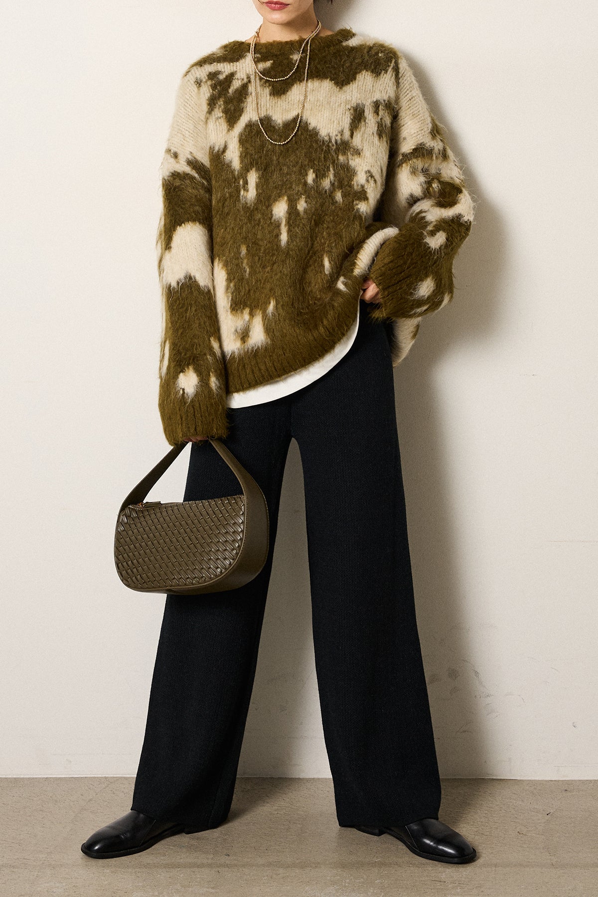 柔らかなモヘアタッチ素材が魅力のマーブルニット。 ふんわりとした質感と優しい色合いが、シーズンムードを高めてくれます。 ゆとりのあるシルエットでリラックス感がありながらも、上品な印象に。 一枚で主役になる存在感で、デニムからスカートまで幅広くマッチします。