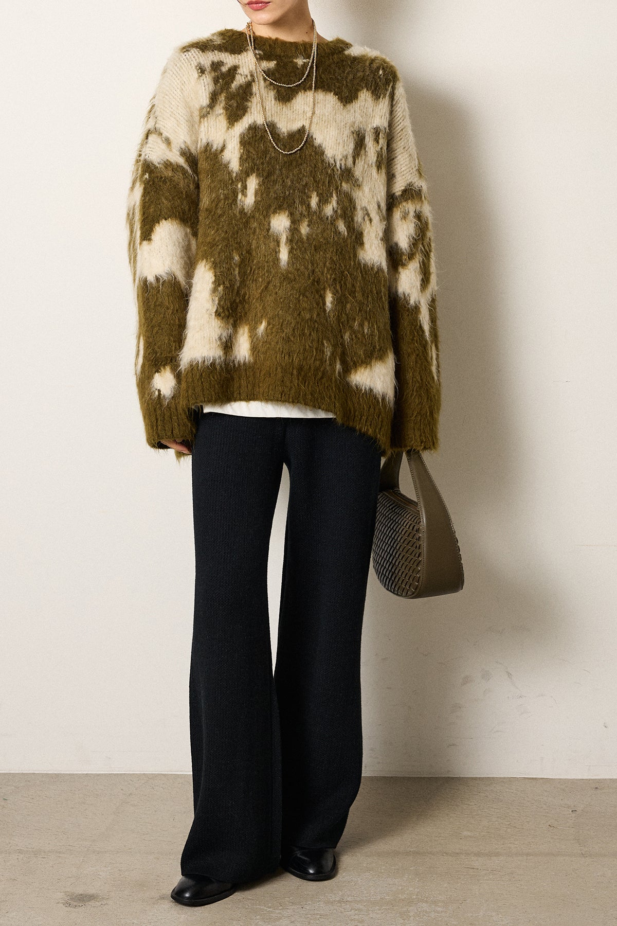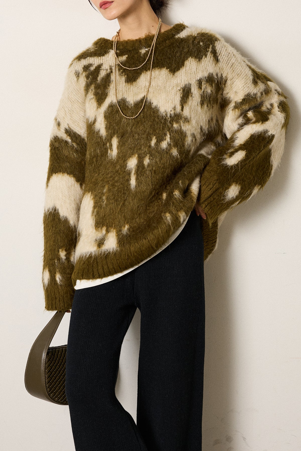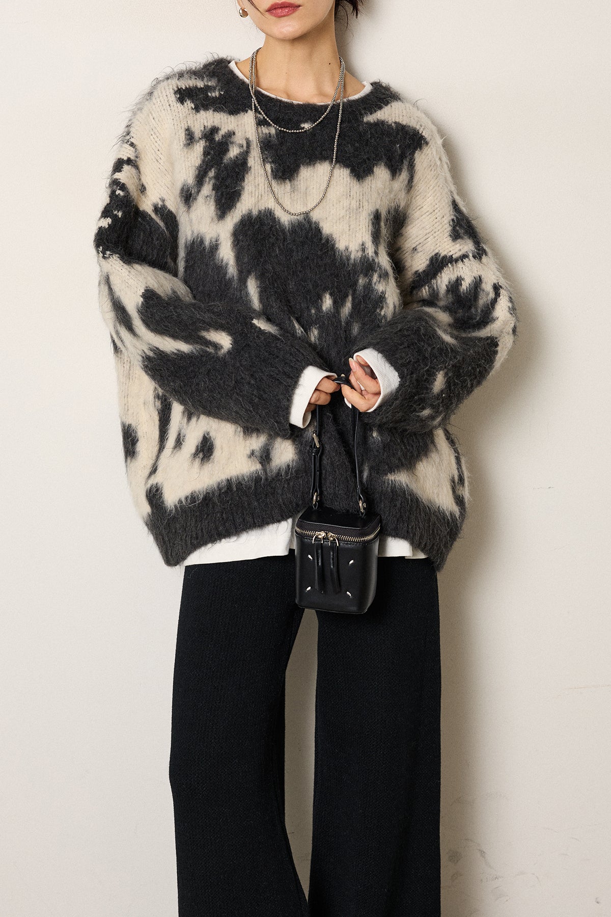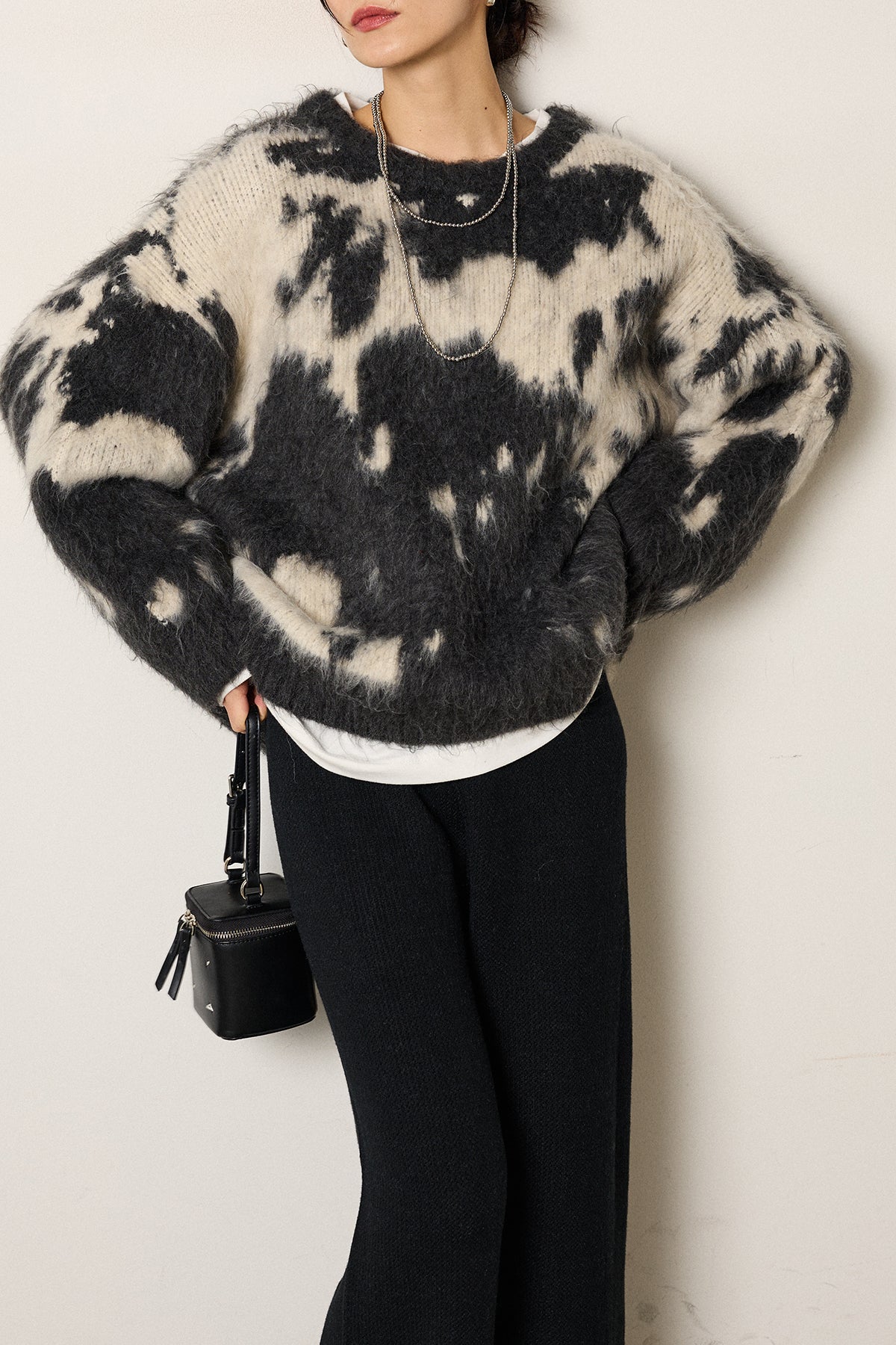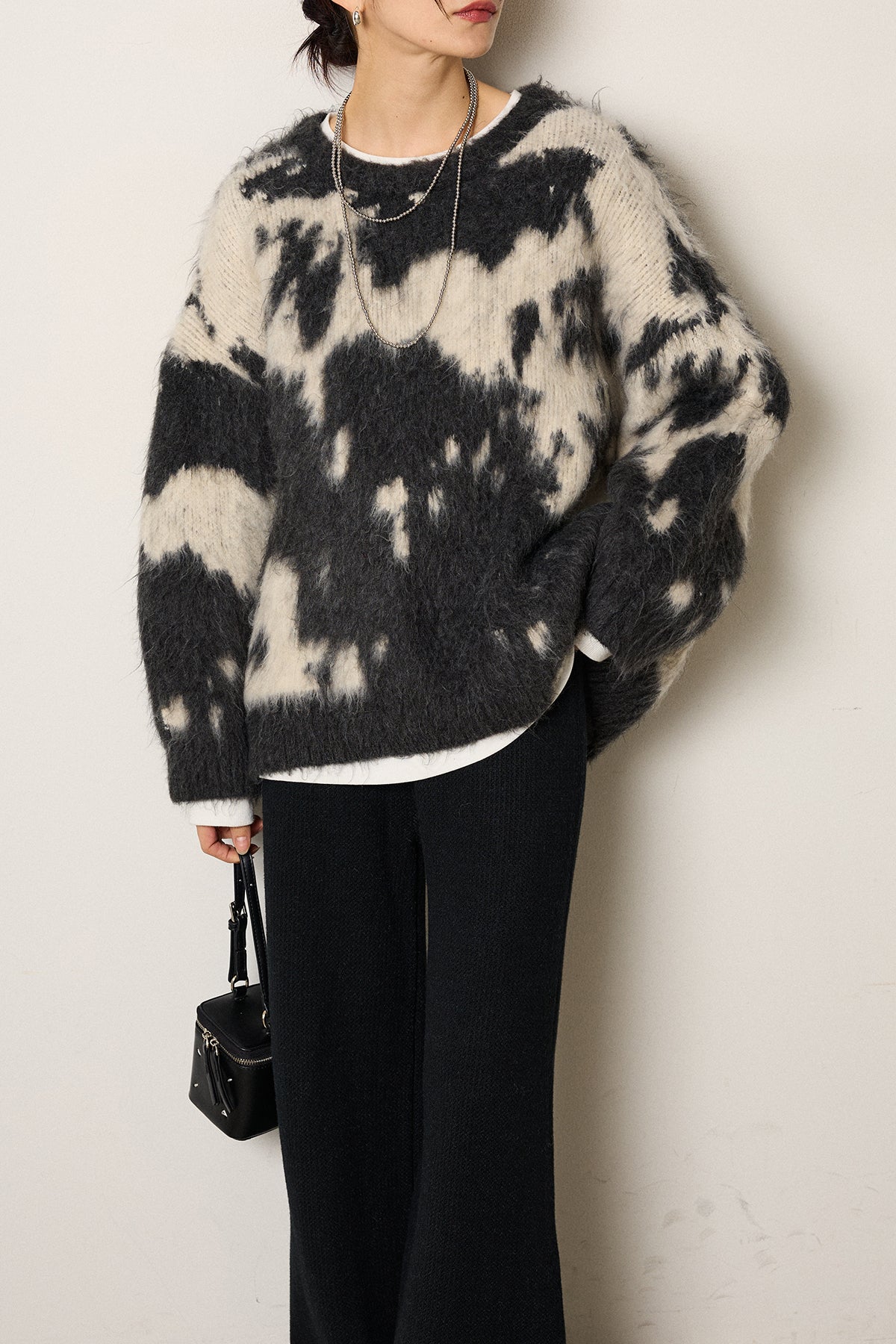 柔らかなモヘアタッチ素材が魅力のマーブルニット。 ふんわりとした質感と優しい色合いが、シーズンムードを高めてくれます。 ゆとりのあるシルエットでリラックス感がありながらも、上品な印象に。 一枚で主役になる存在感で、デニムからスカートまで幅広くマッチします。