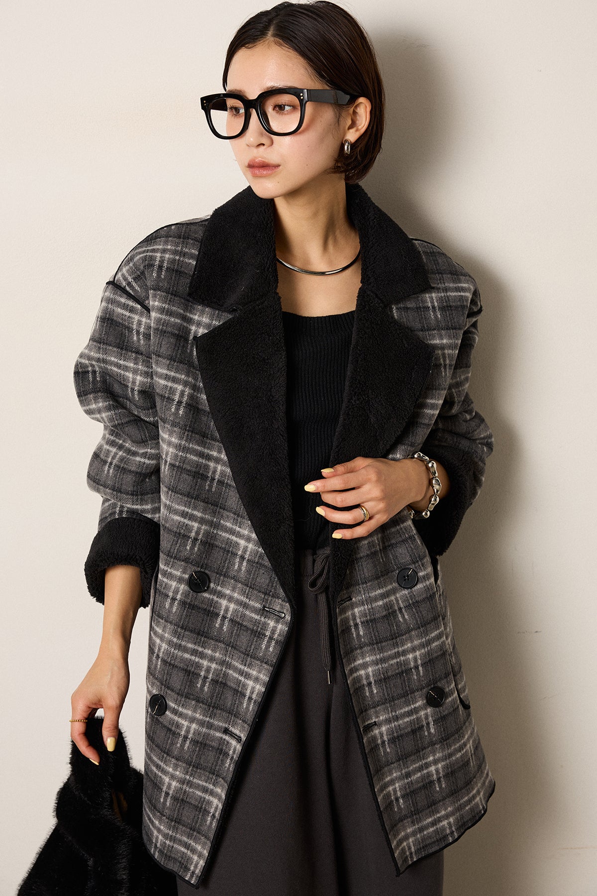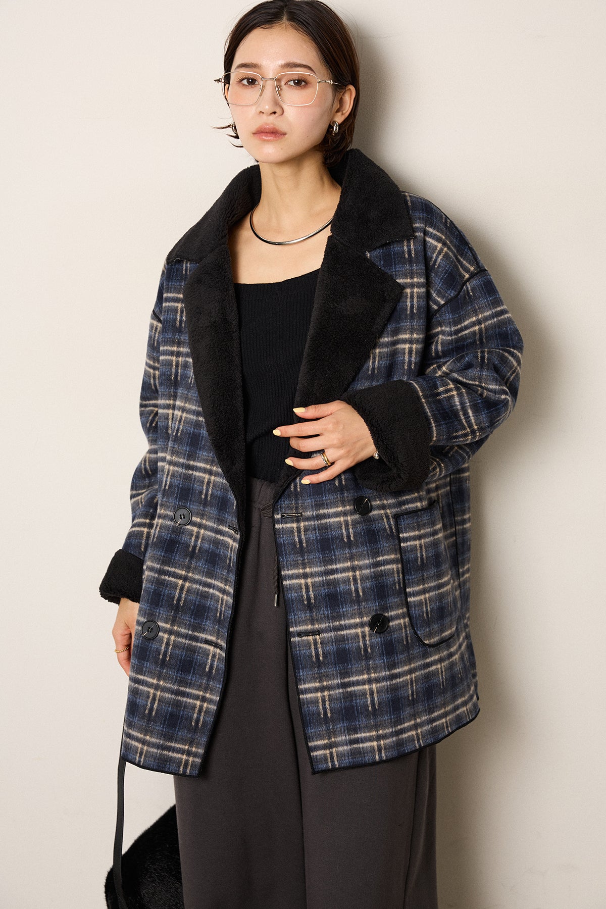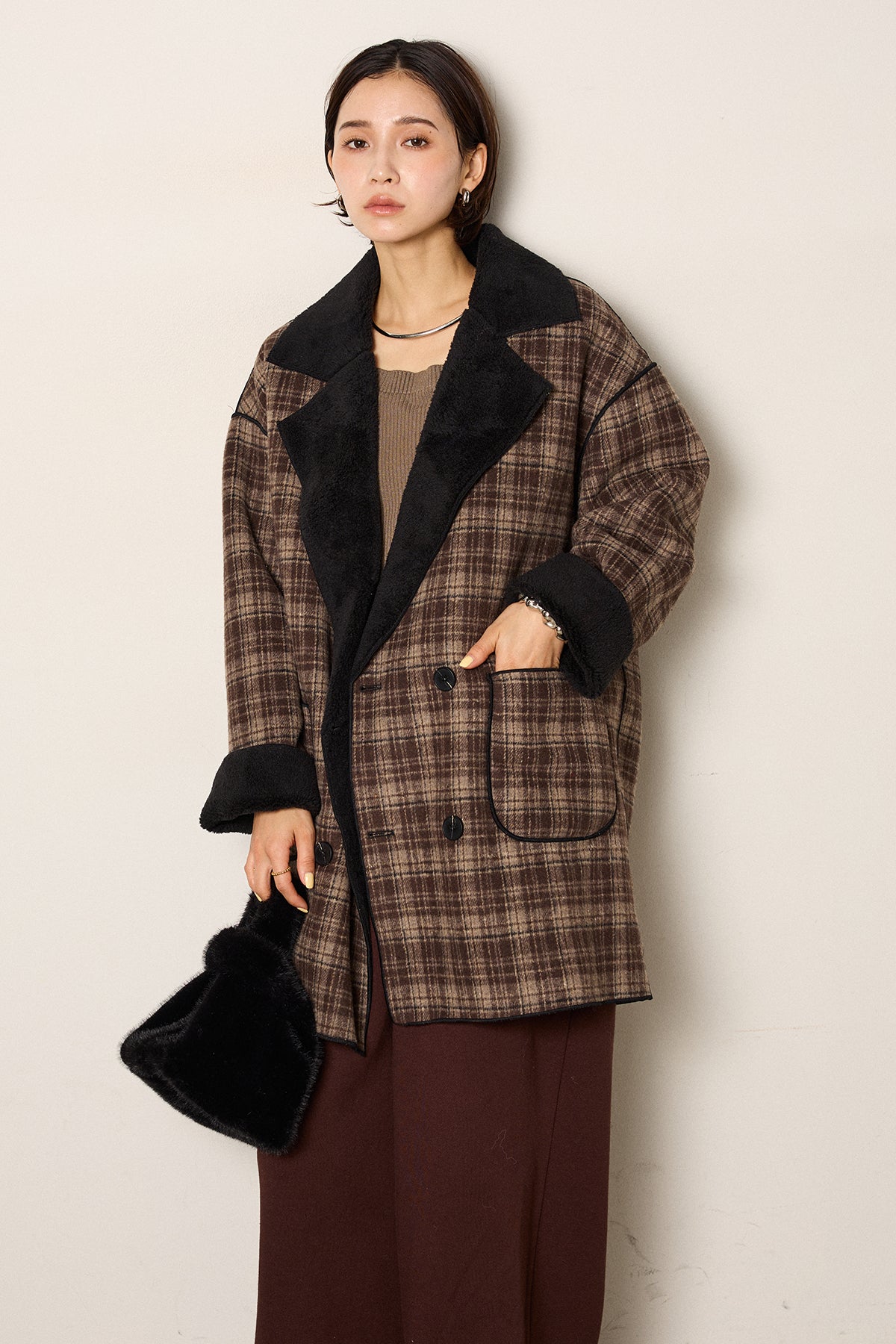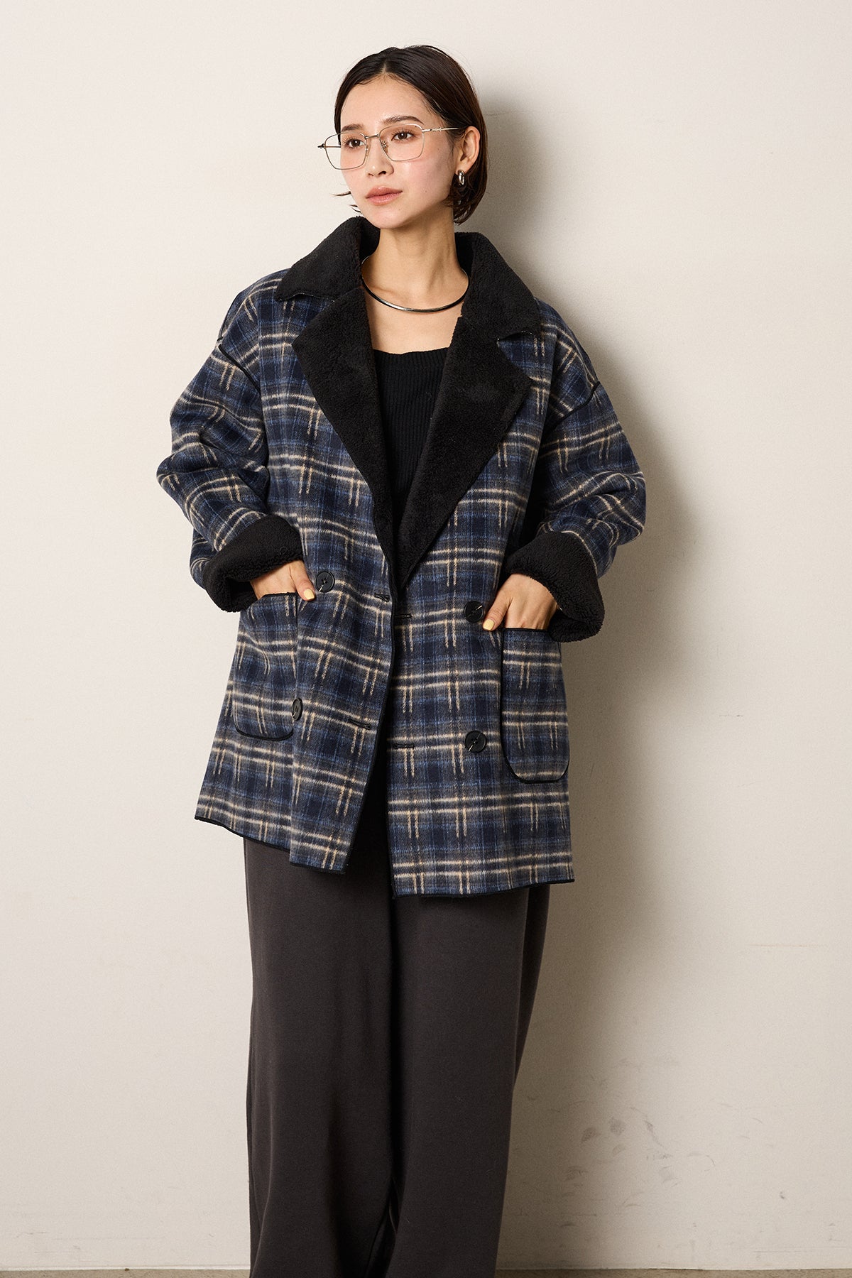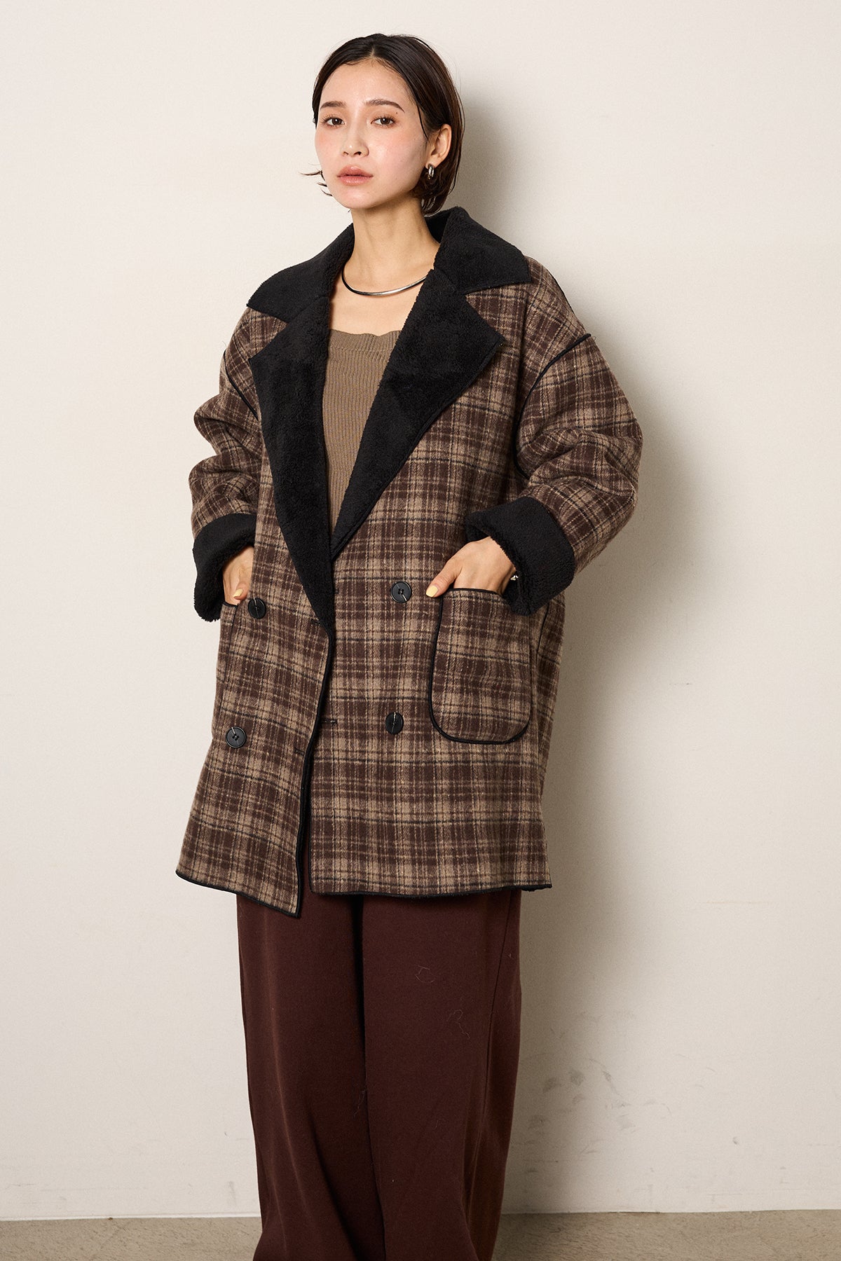 ◆ 裏地ボアタータンチェック柄ミディアムコート