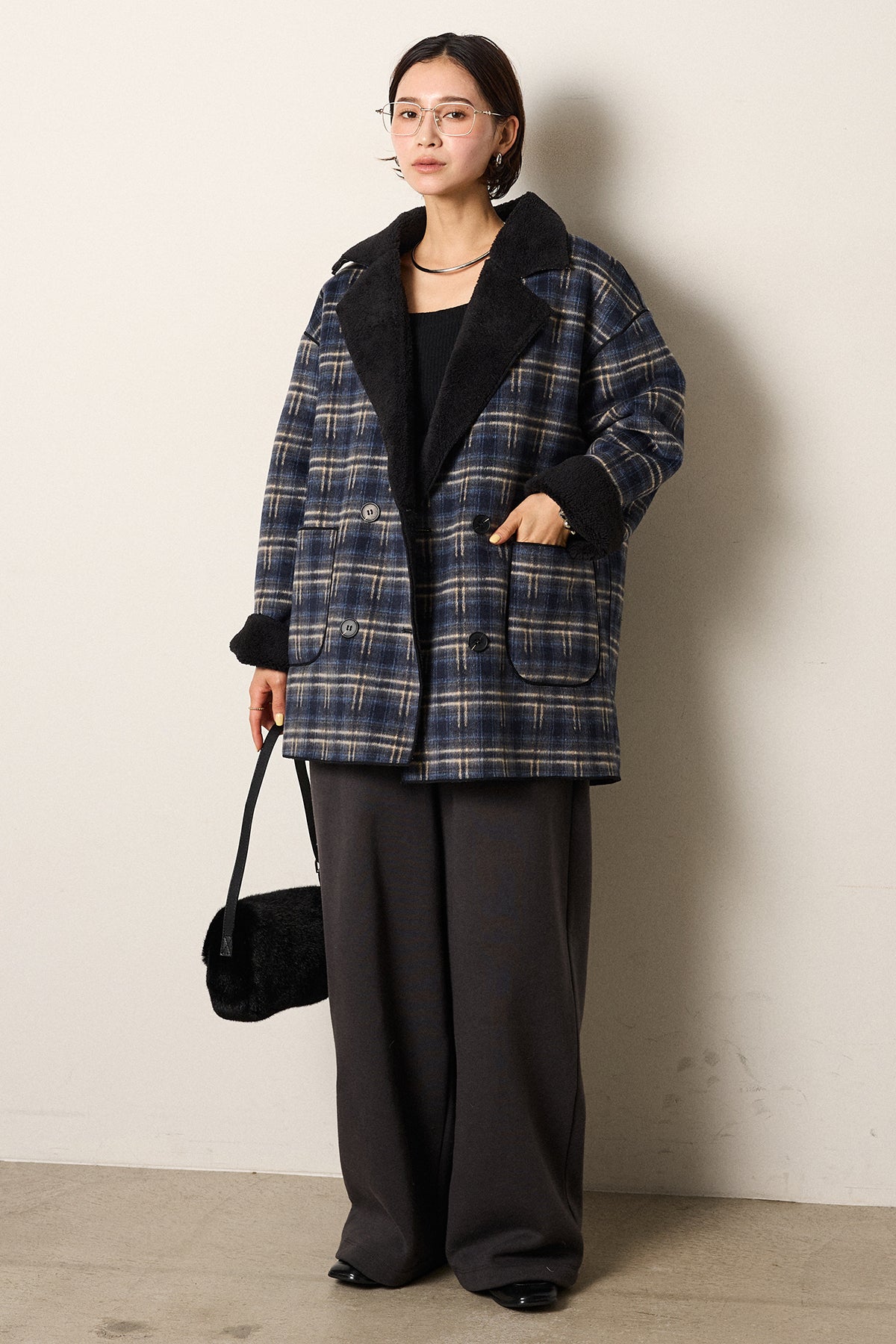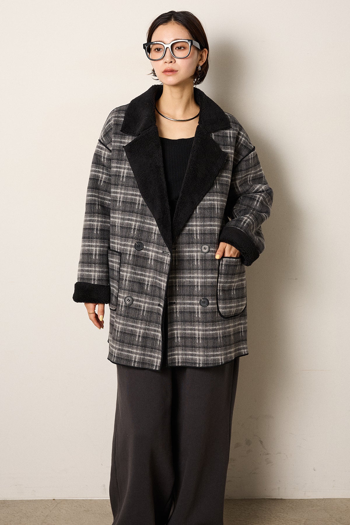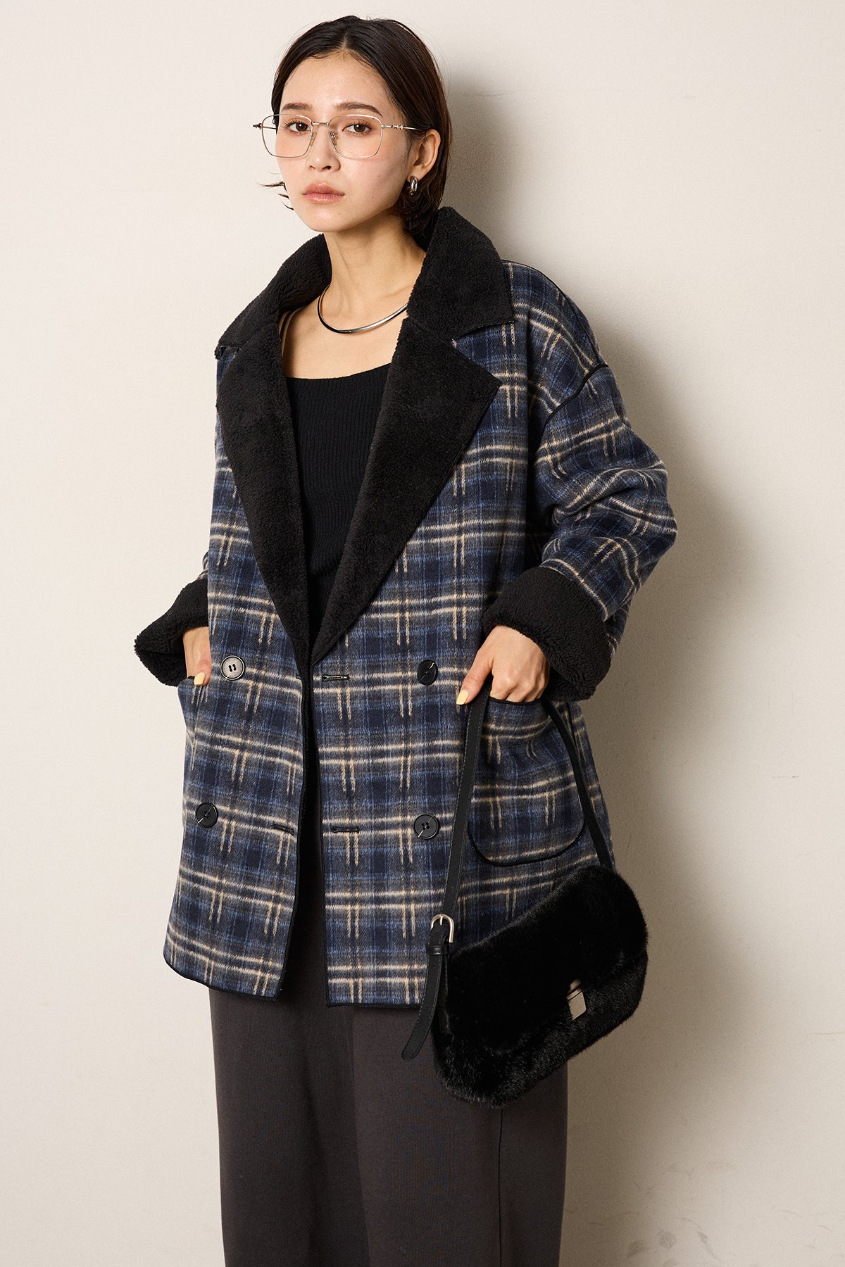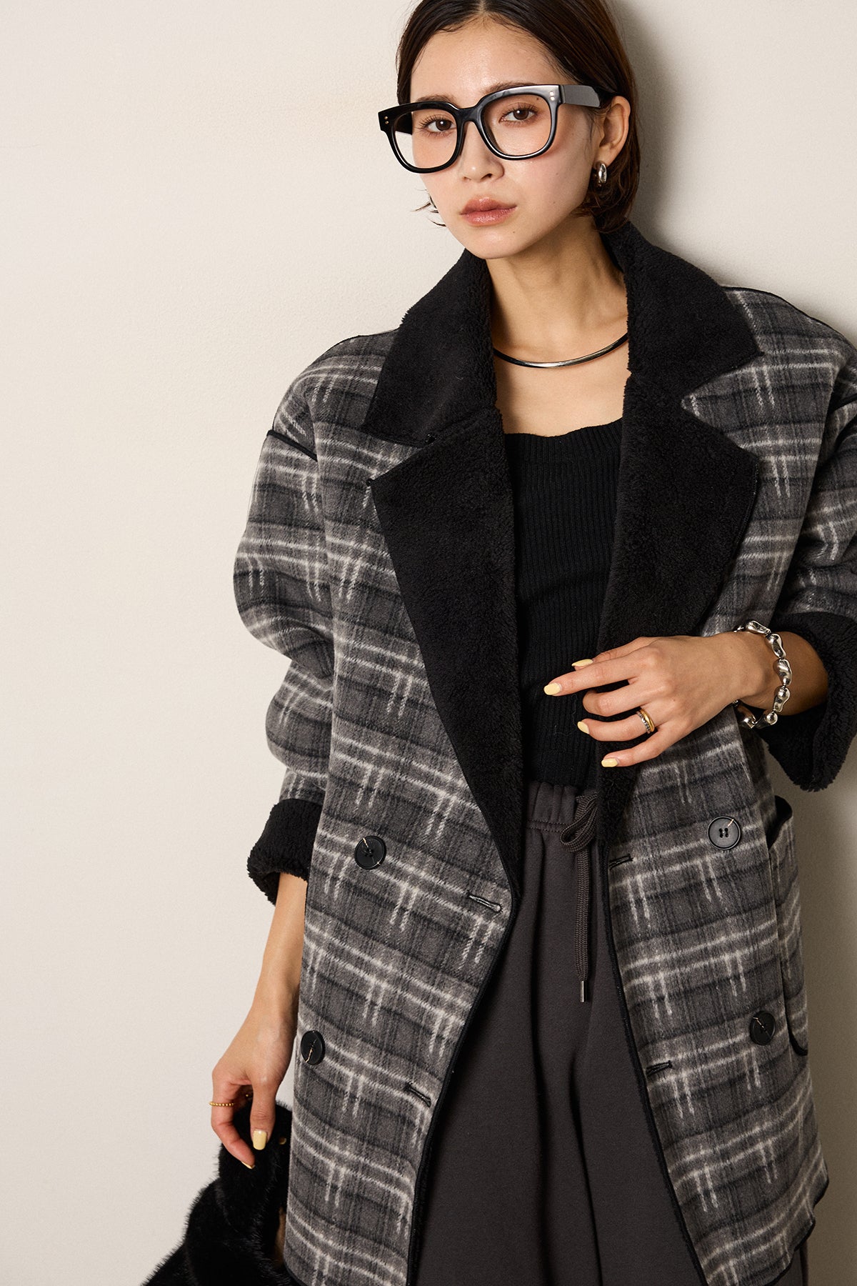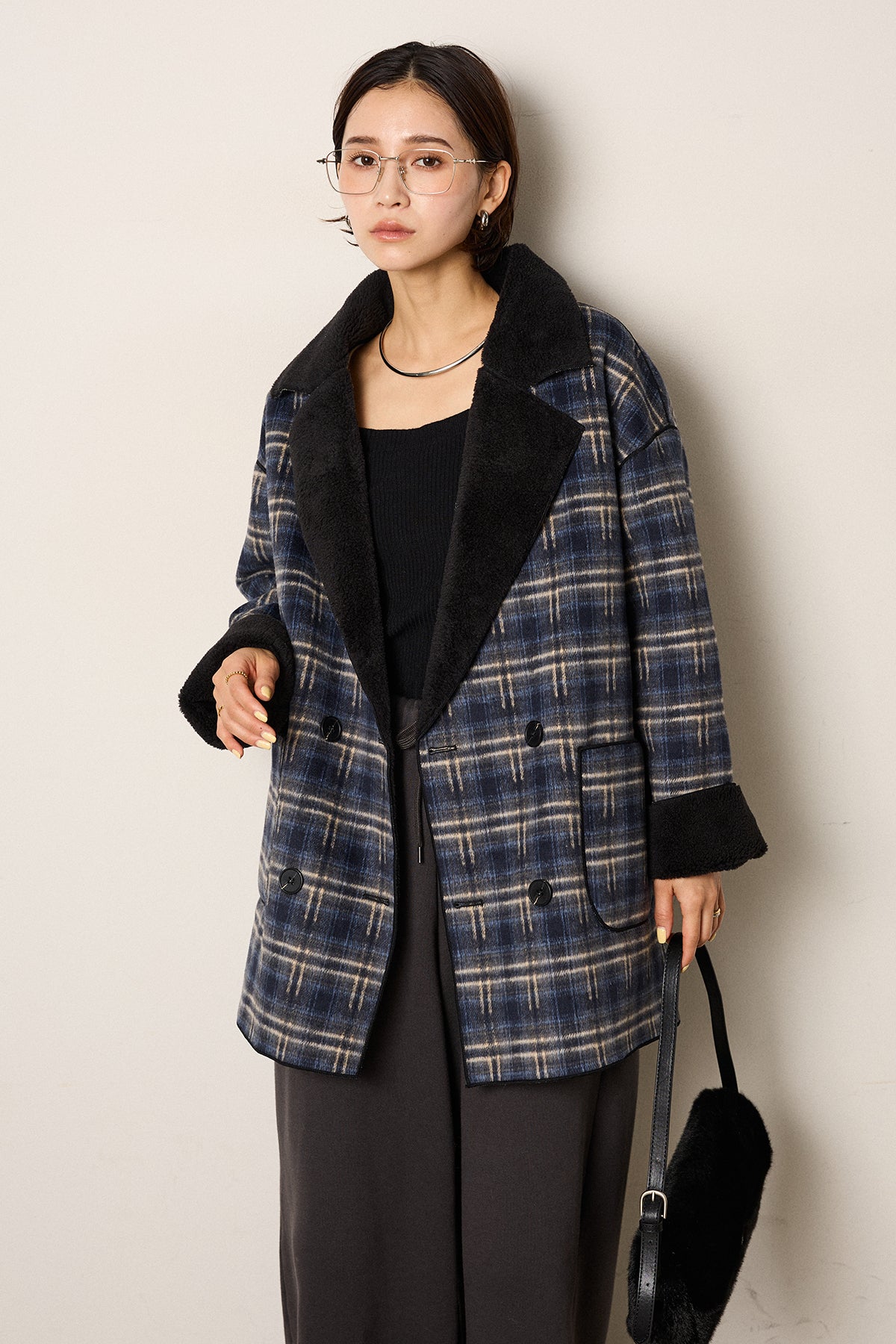 ◆ 裏地ボアタータンチェック柄ミディアムコート
