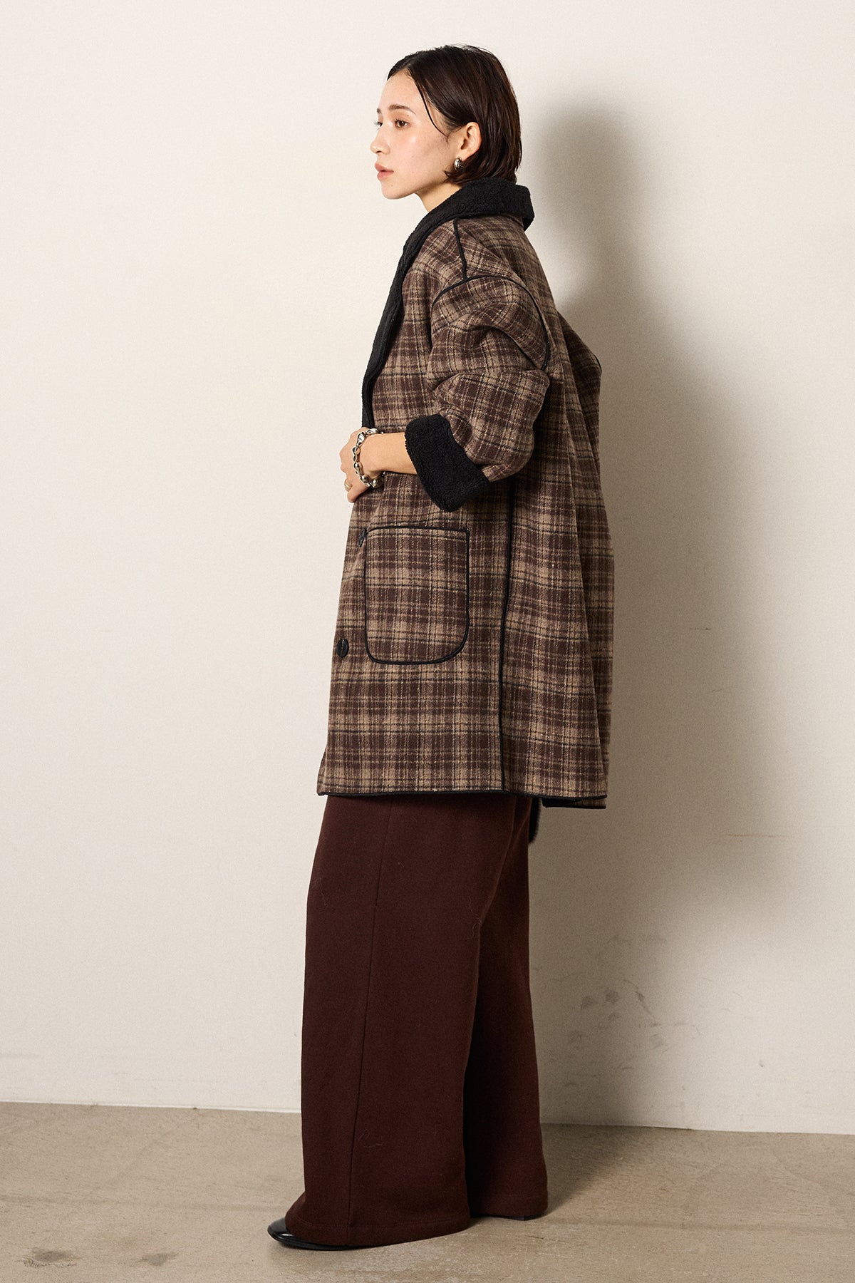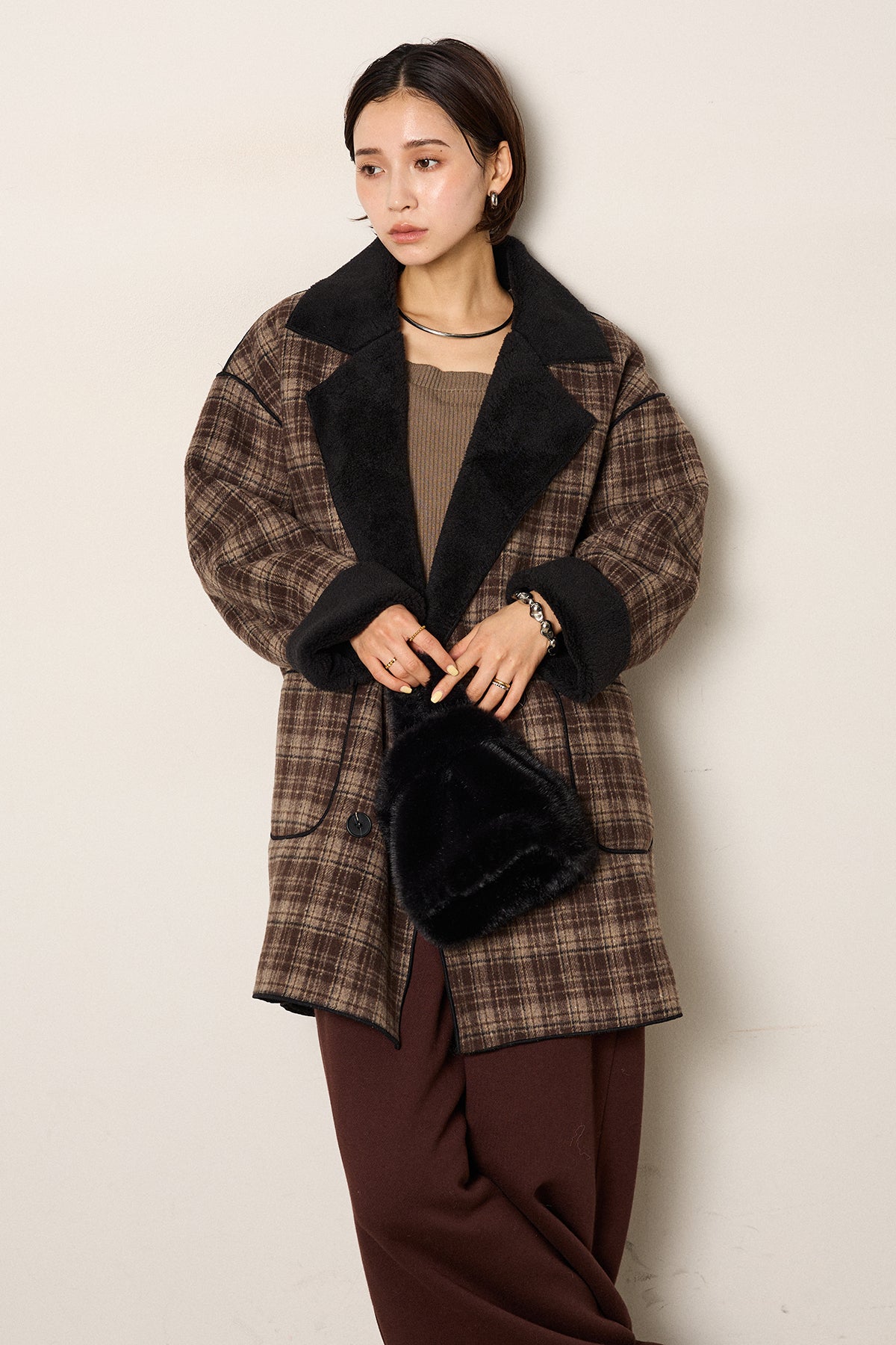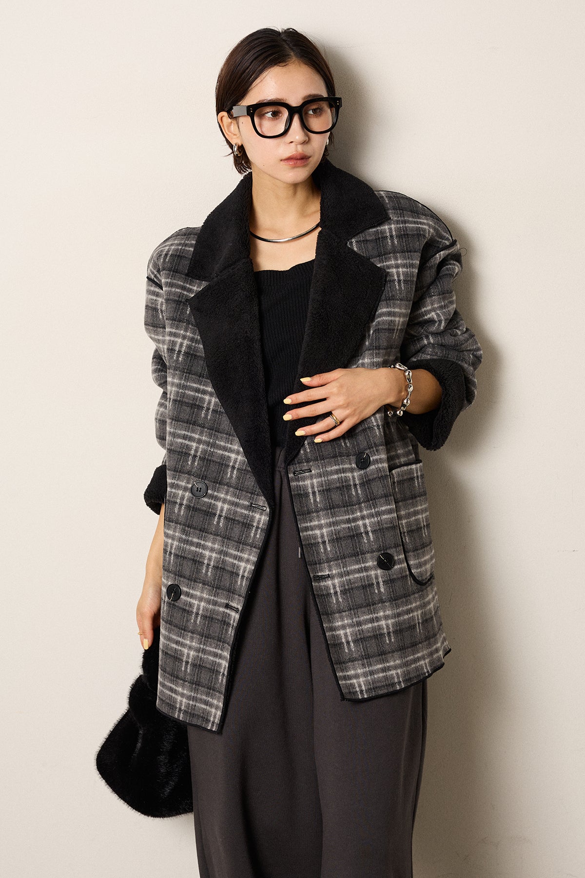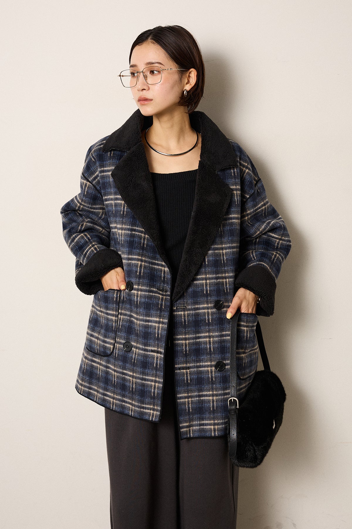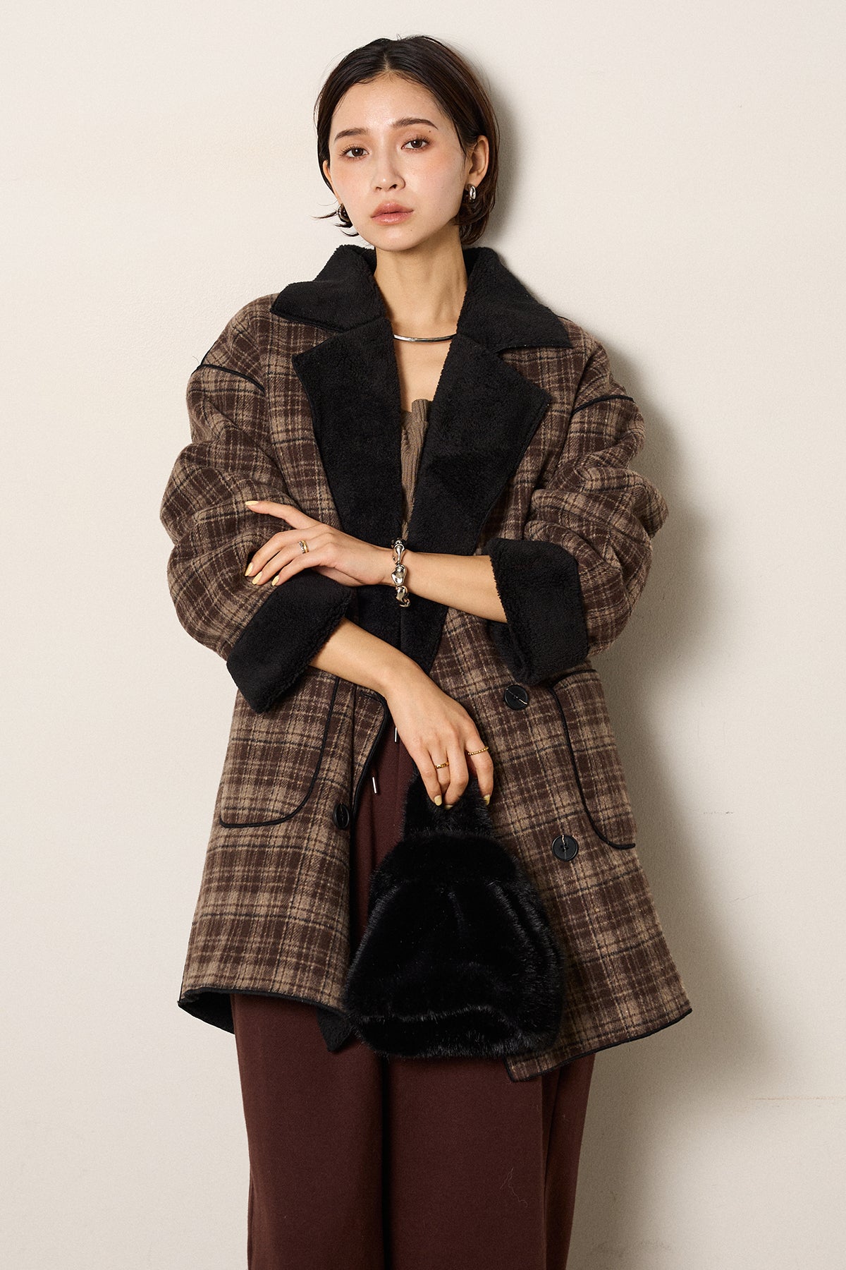 ◆ 裏地ボアタータンチェック柄ミディアムコート
