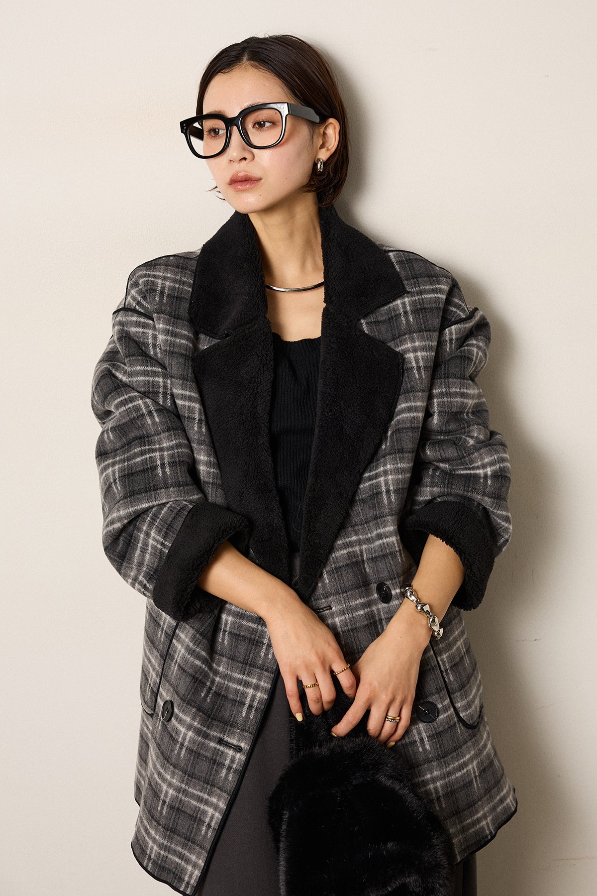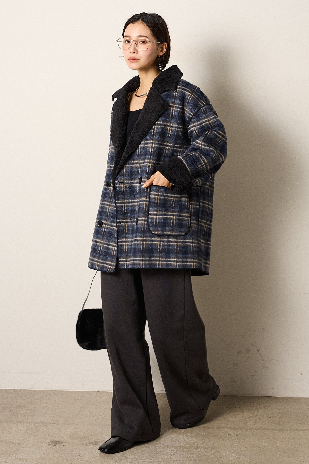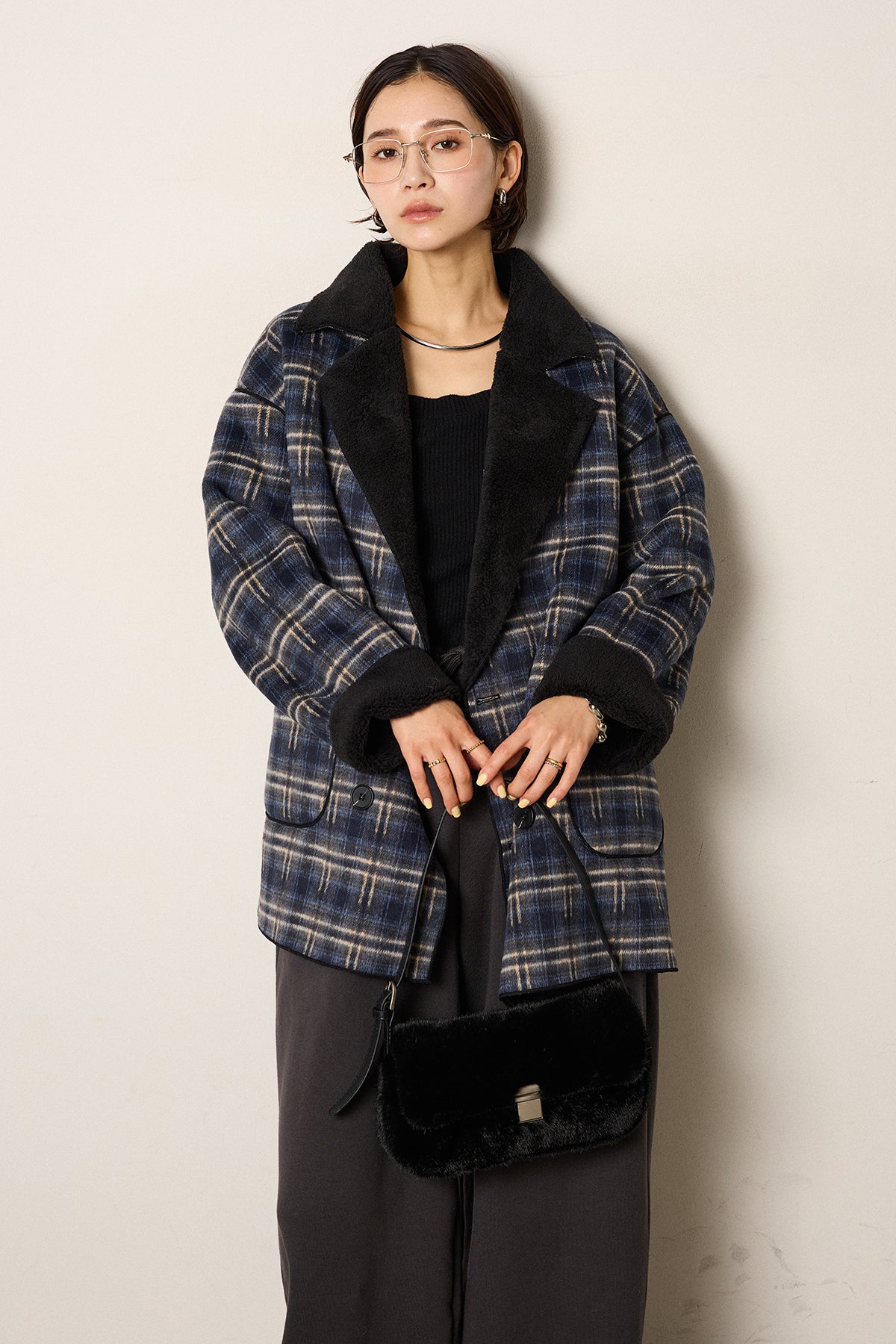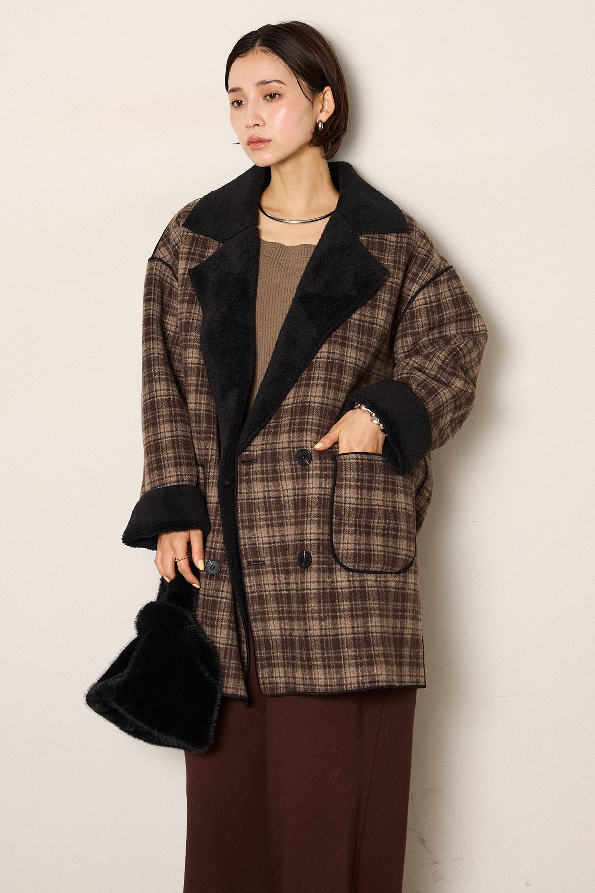 ◆ 裏地ボアタータンチェック柄ミディアムコート
