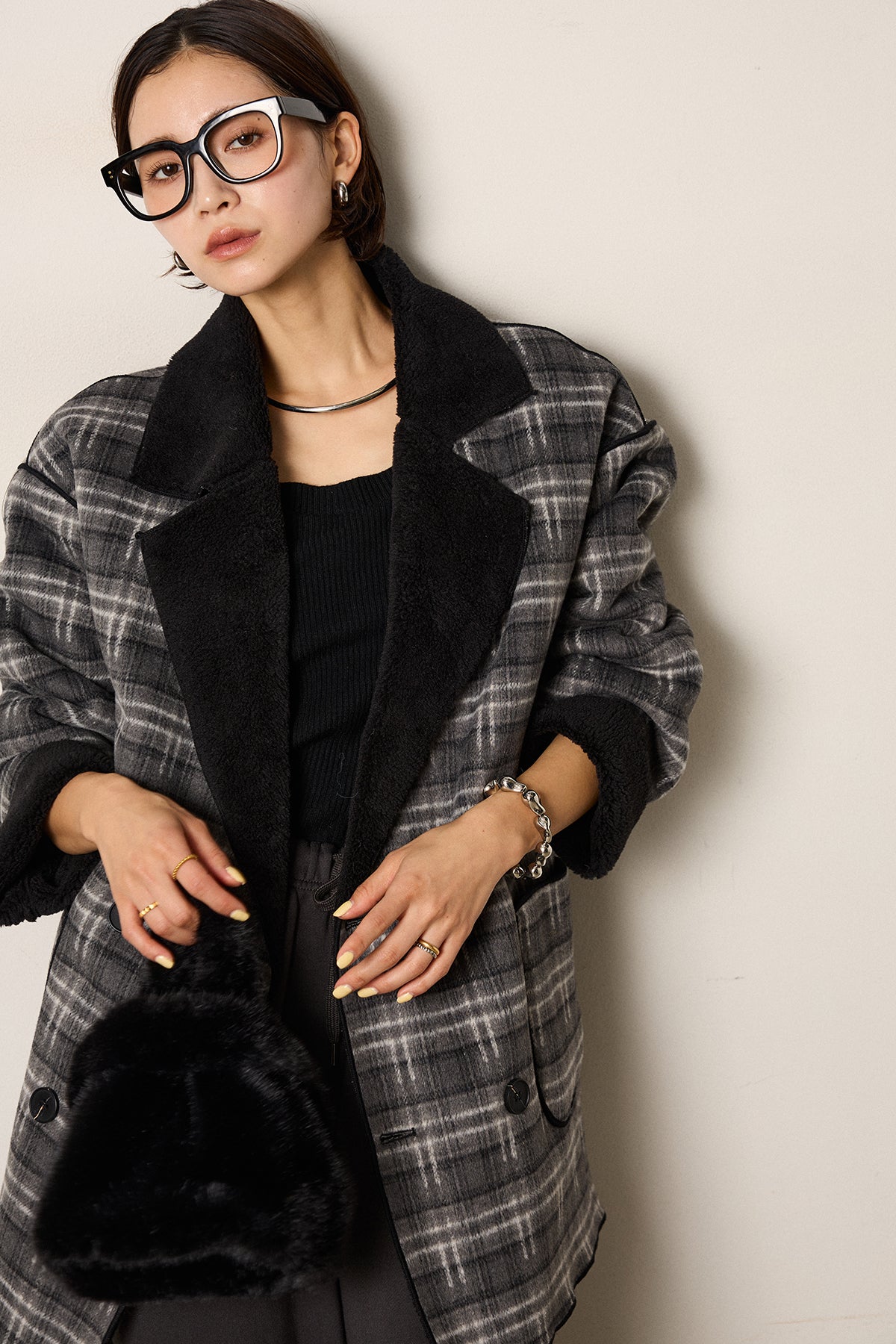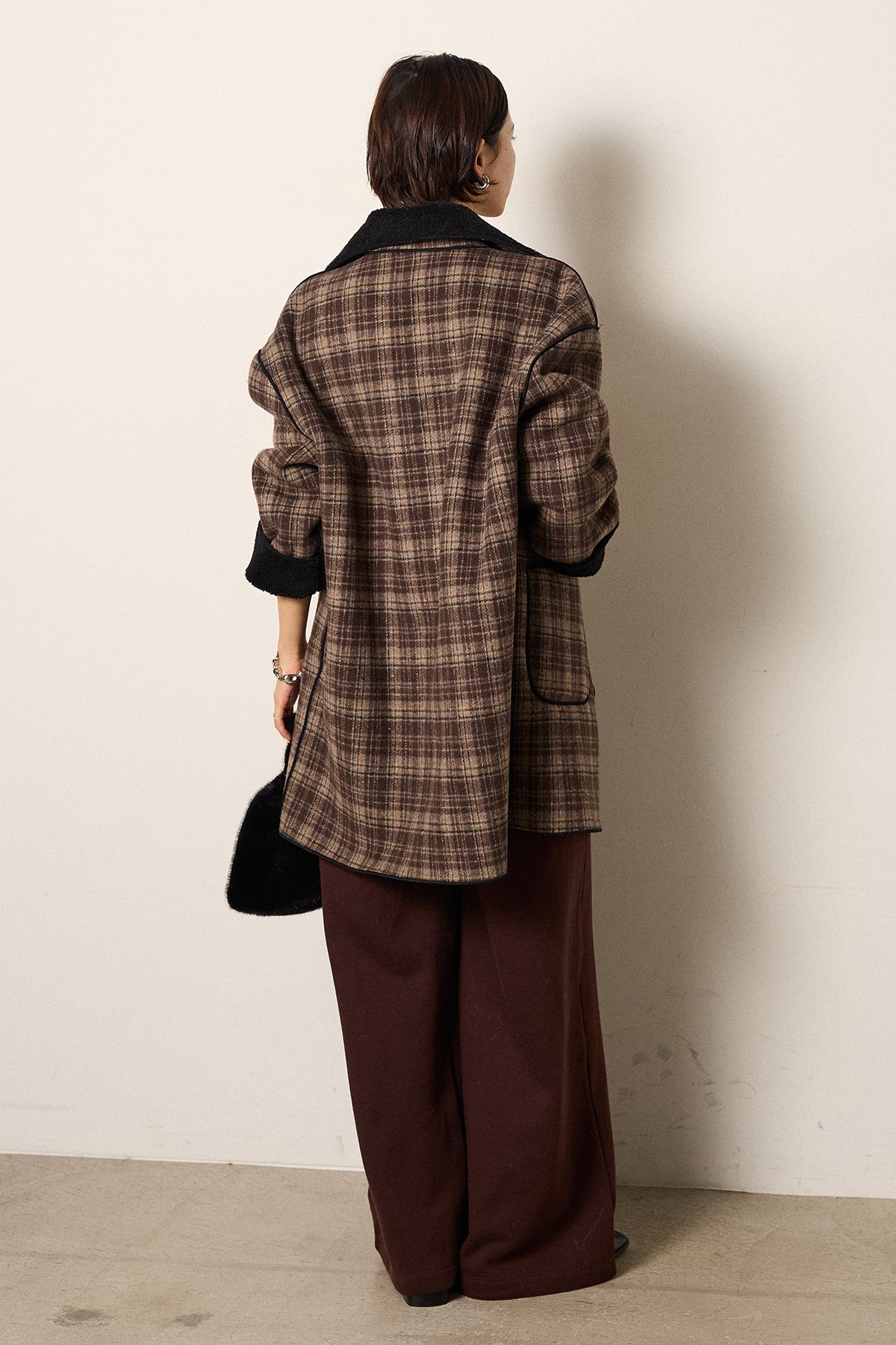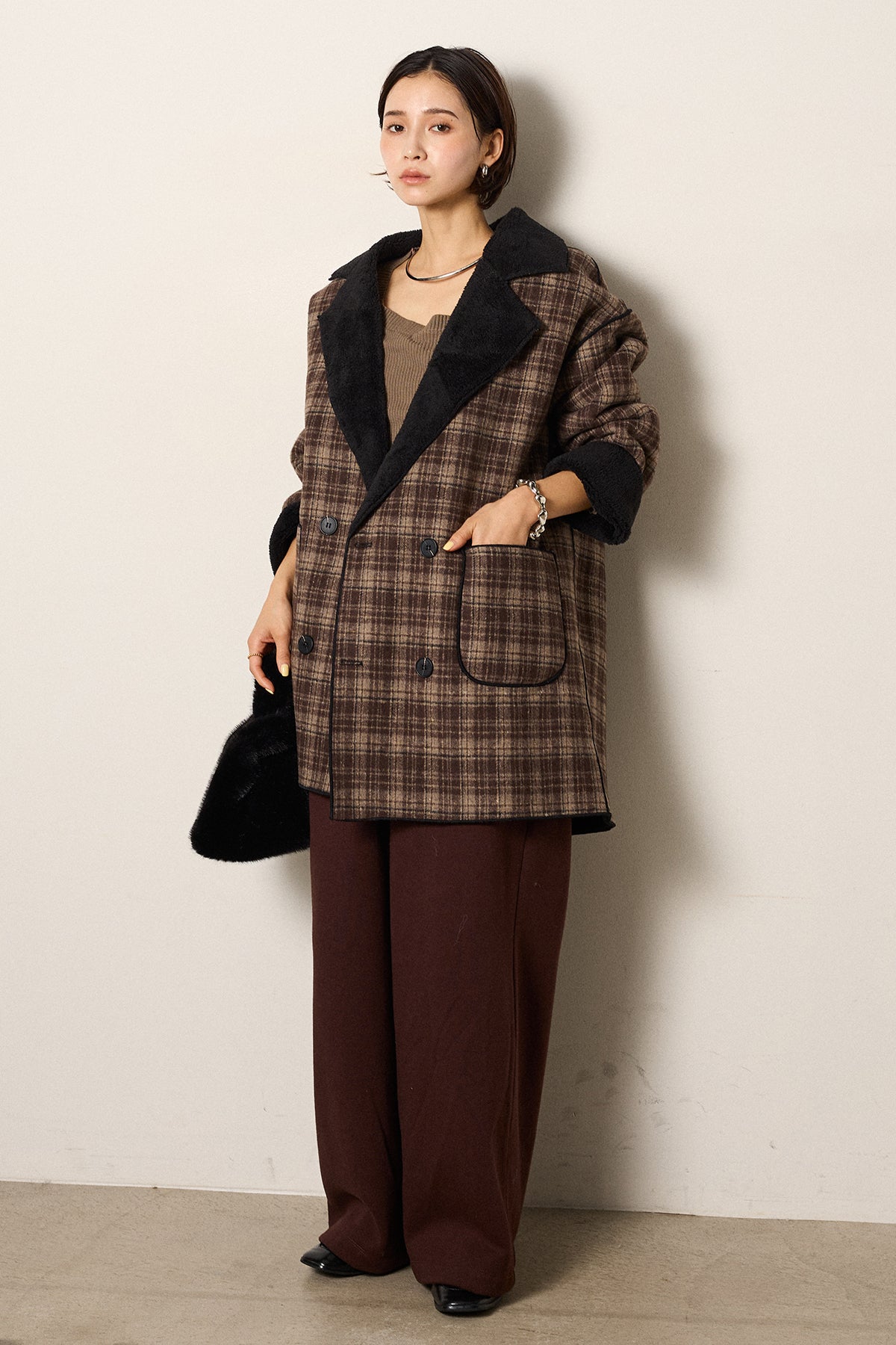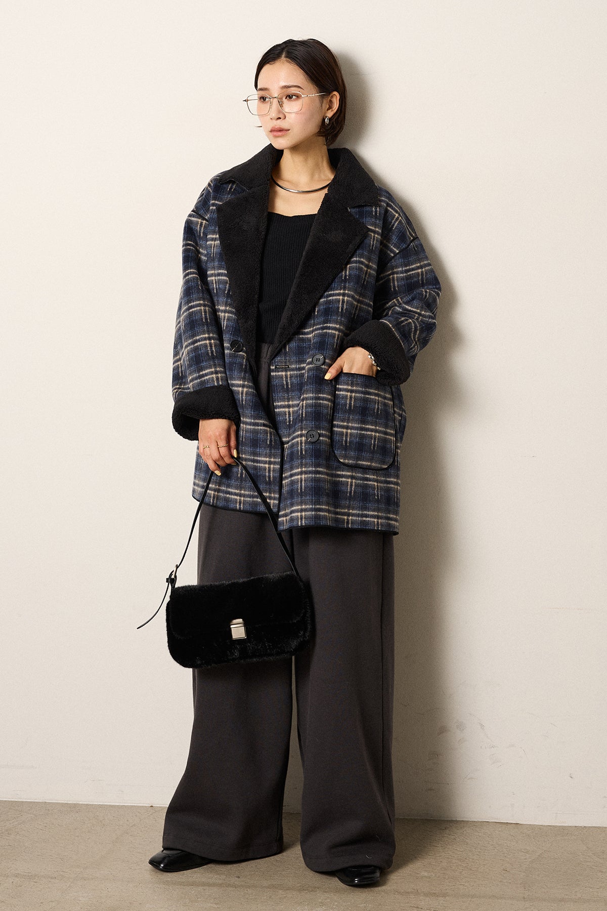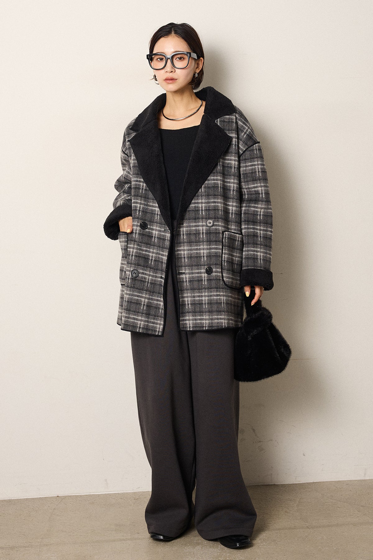 ◆ 裏地ボアタータンチェック柄ミディアムコート