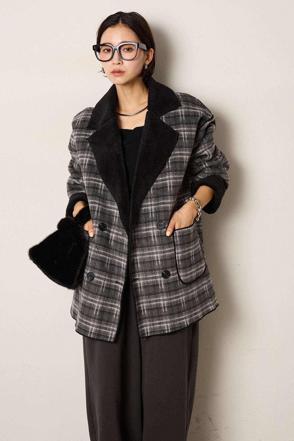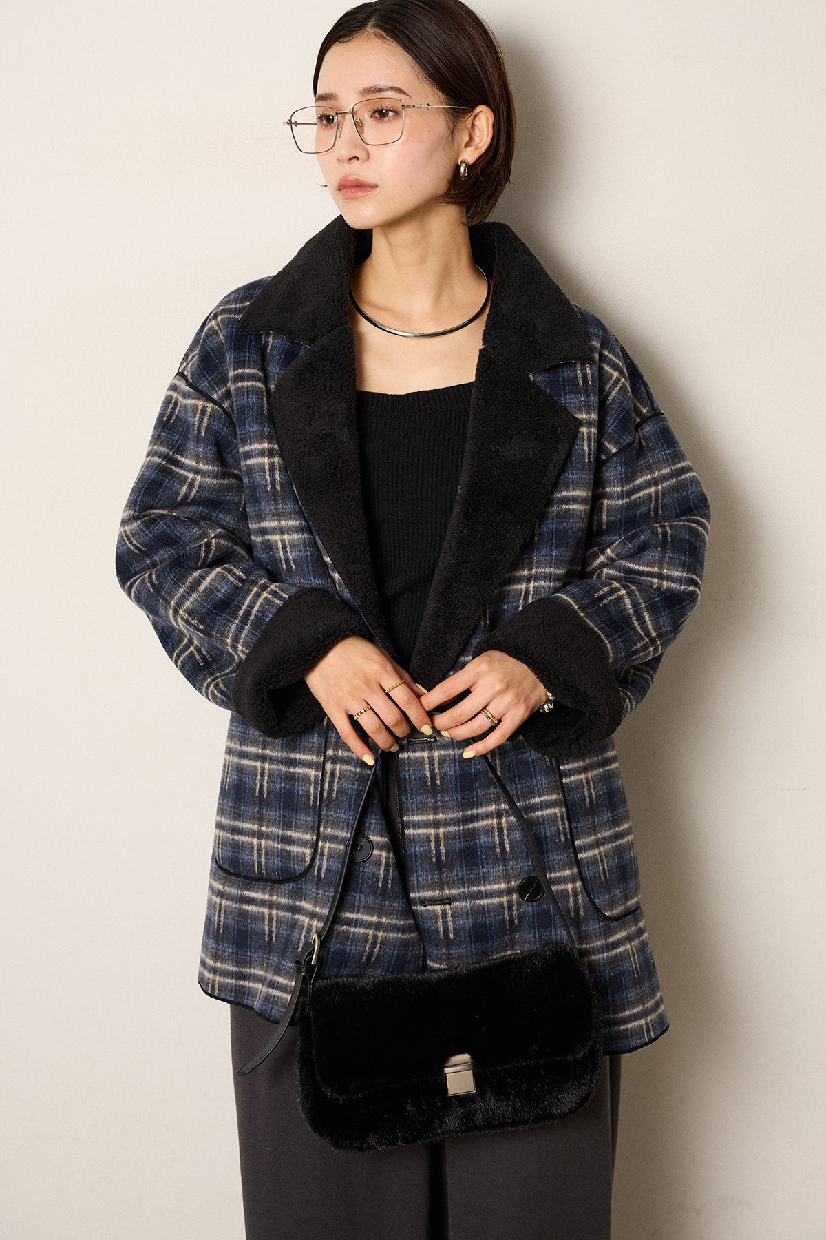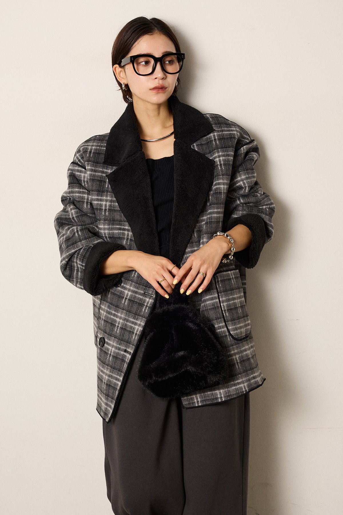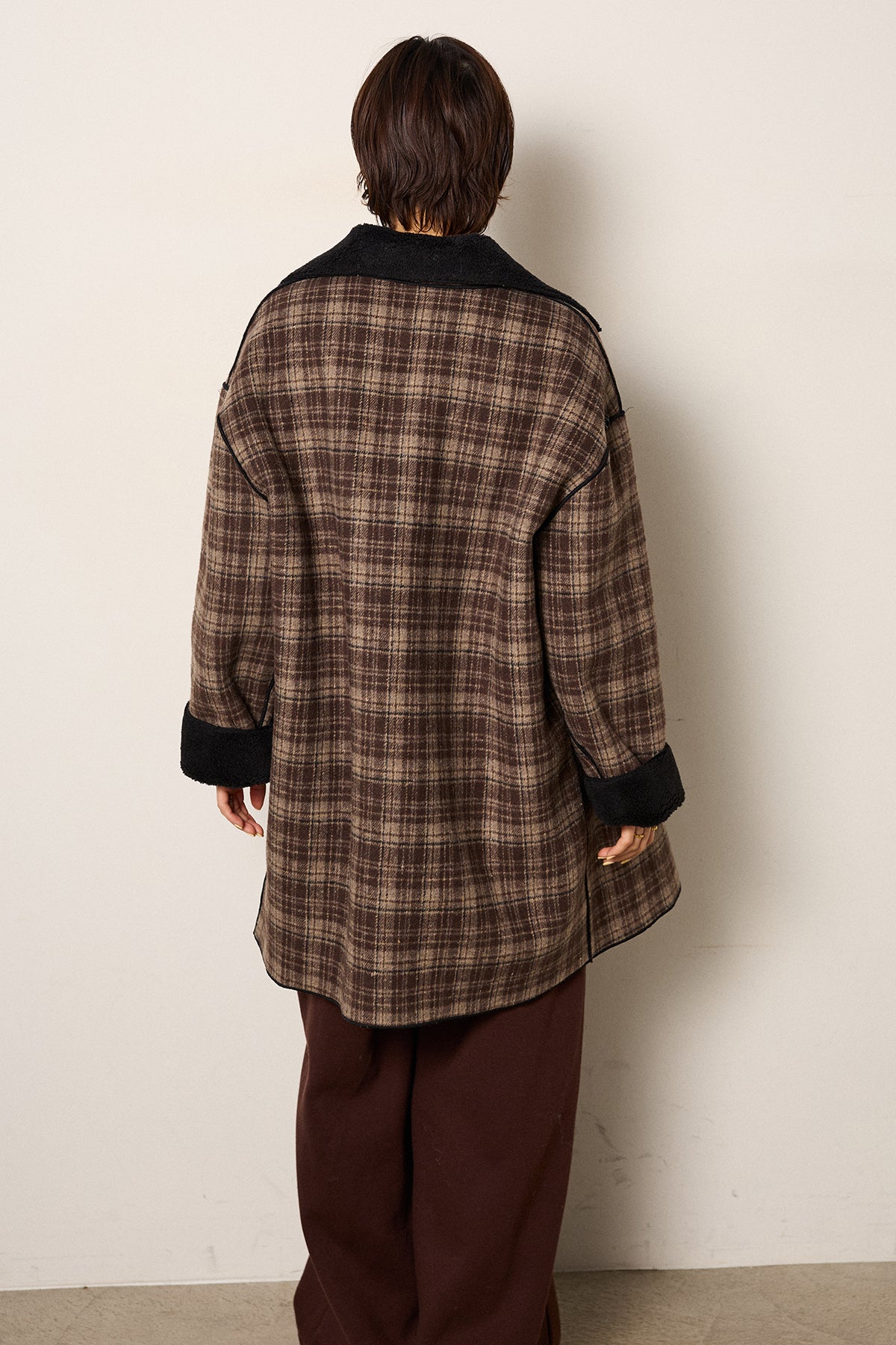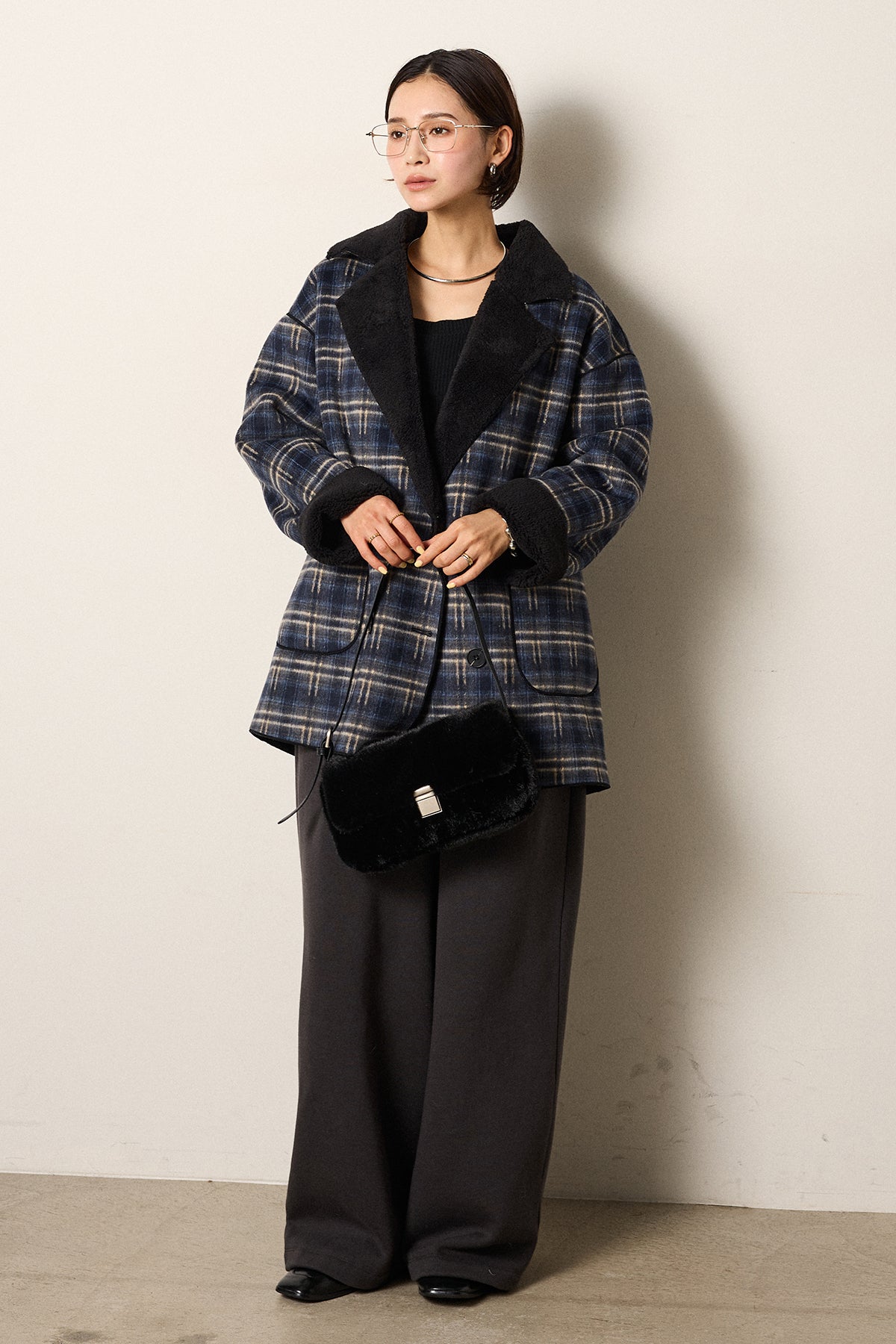 ◆ 裏地ボアタータンチェック柄ミディアムコート
