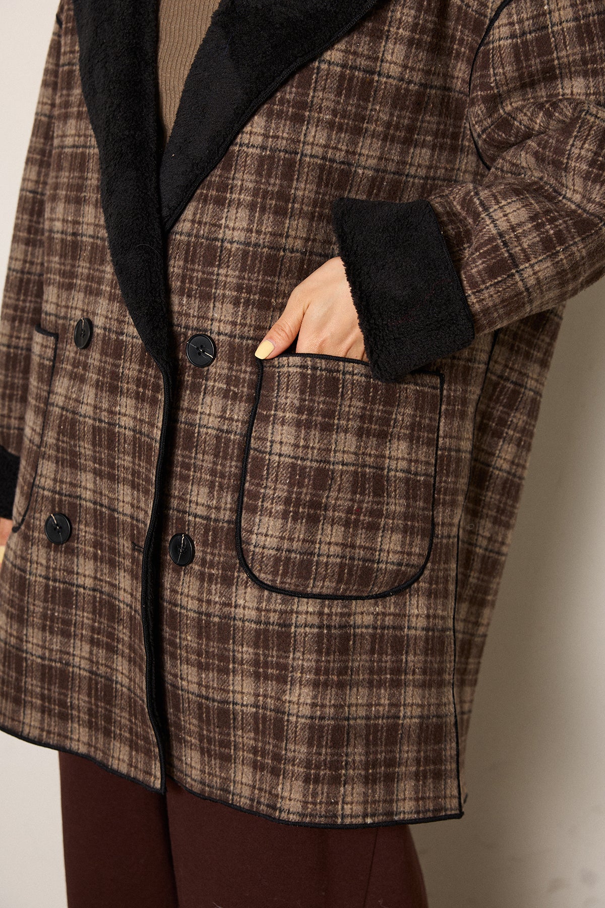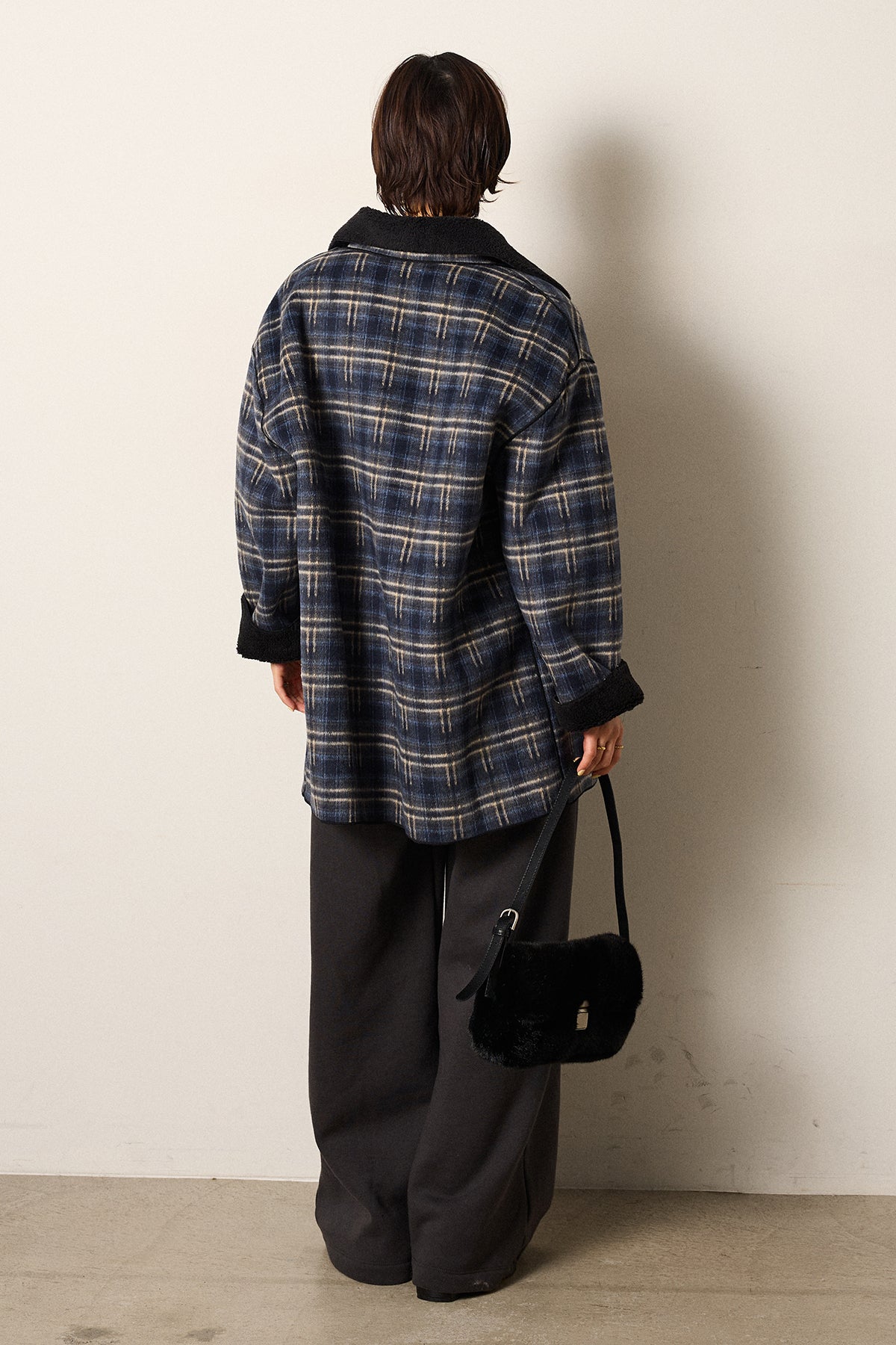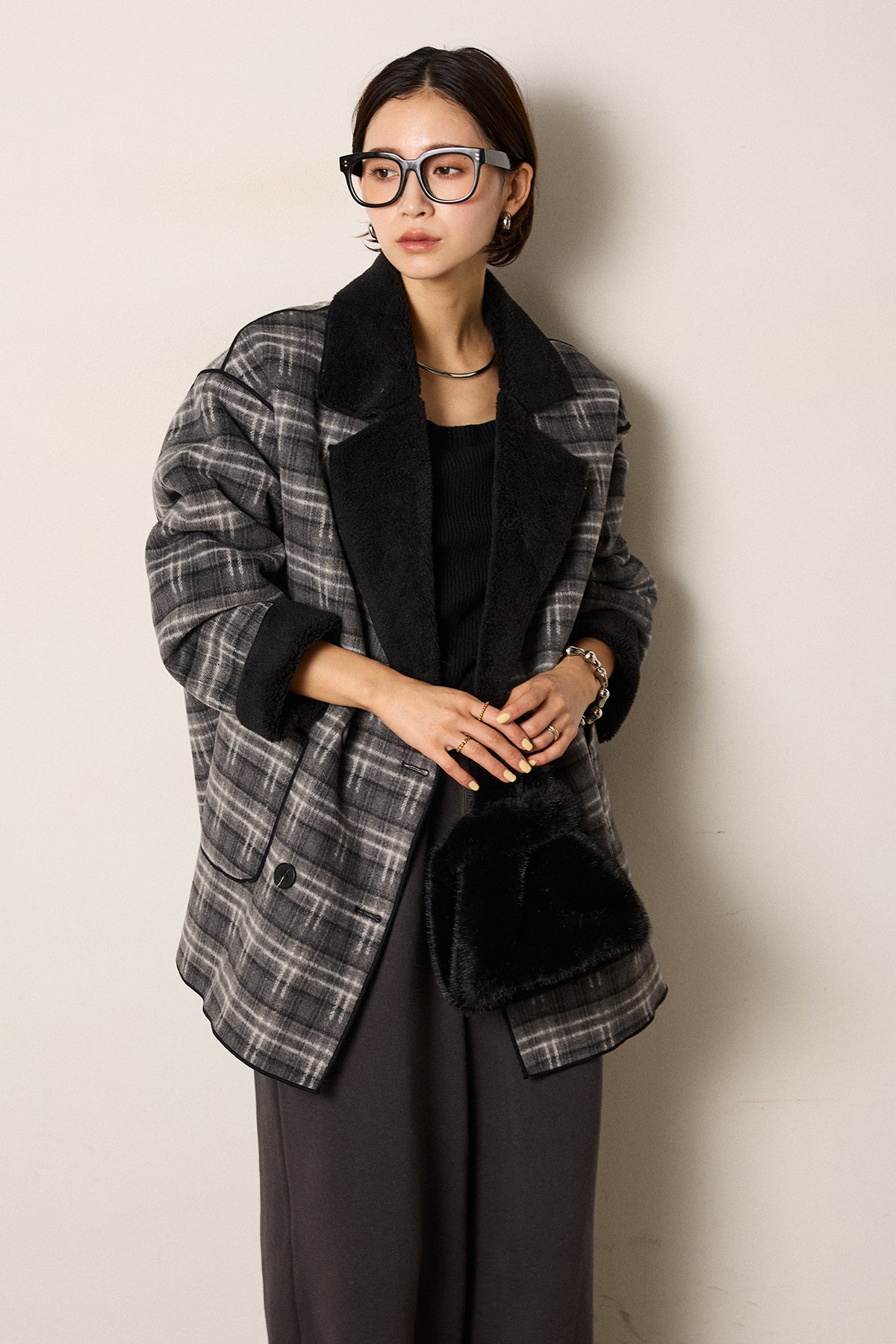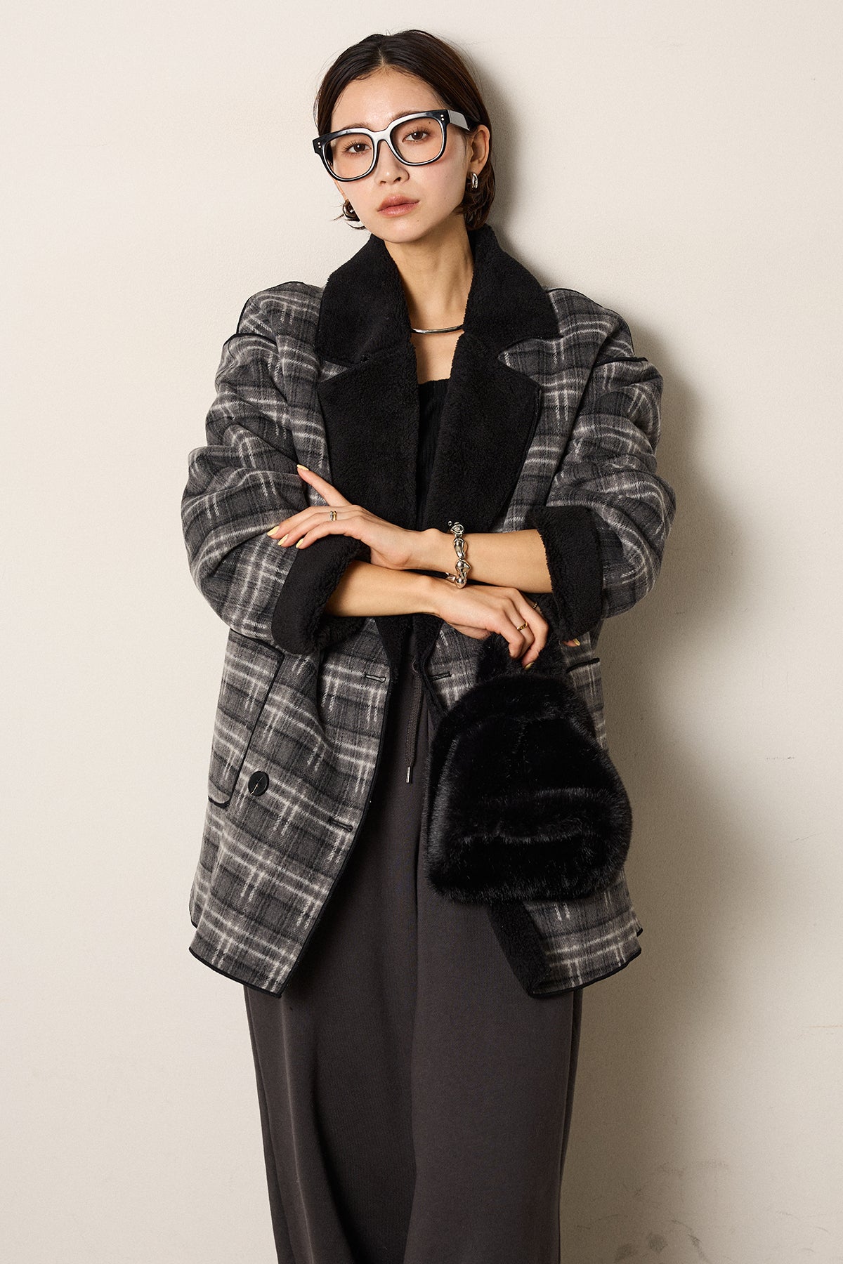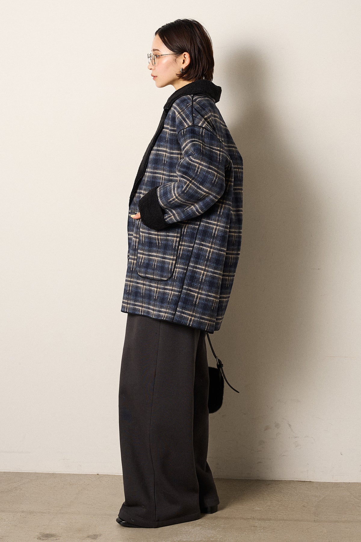 ◆ 裏地ボアタータンチェック柄ミディアムコート