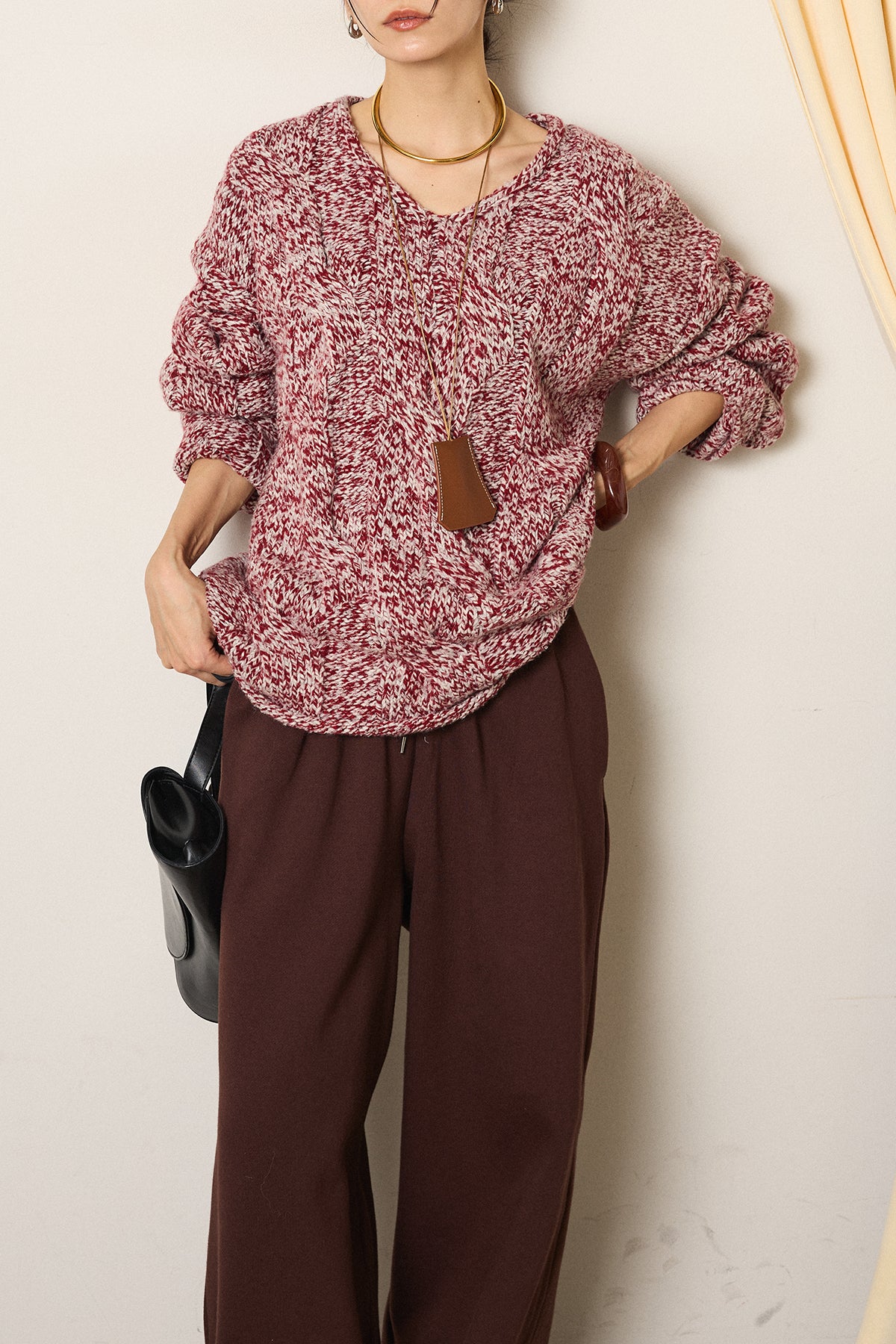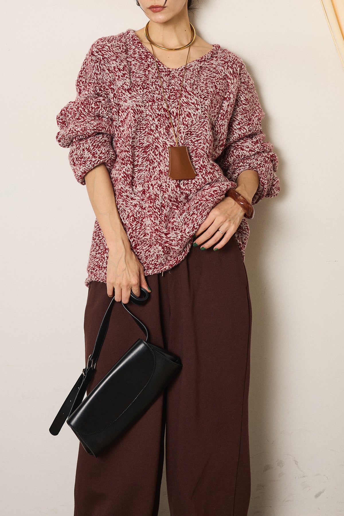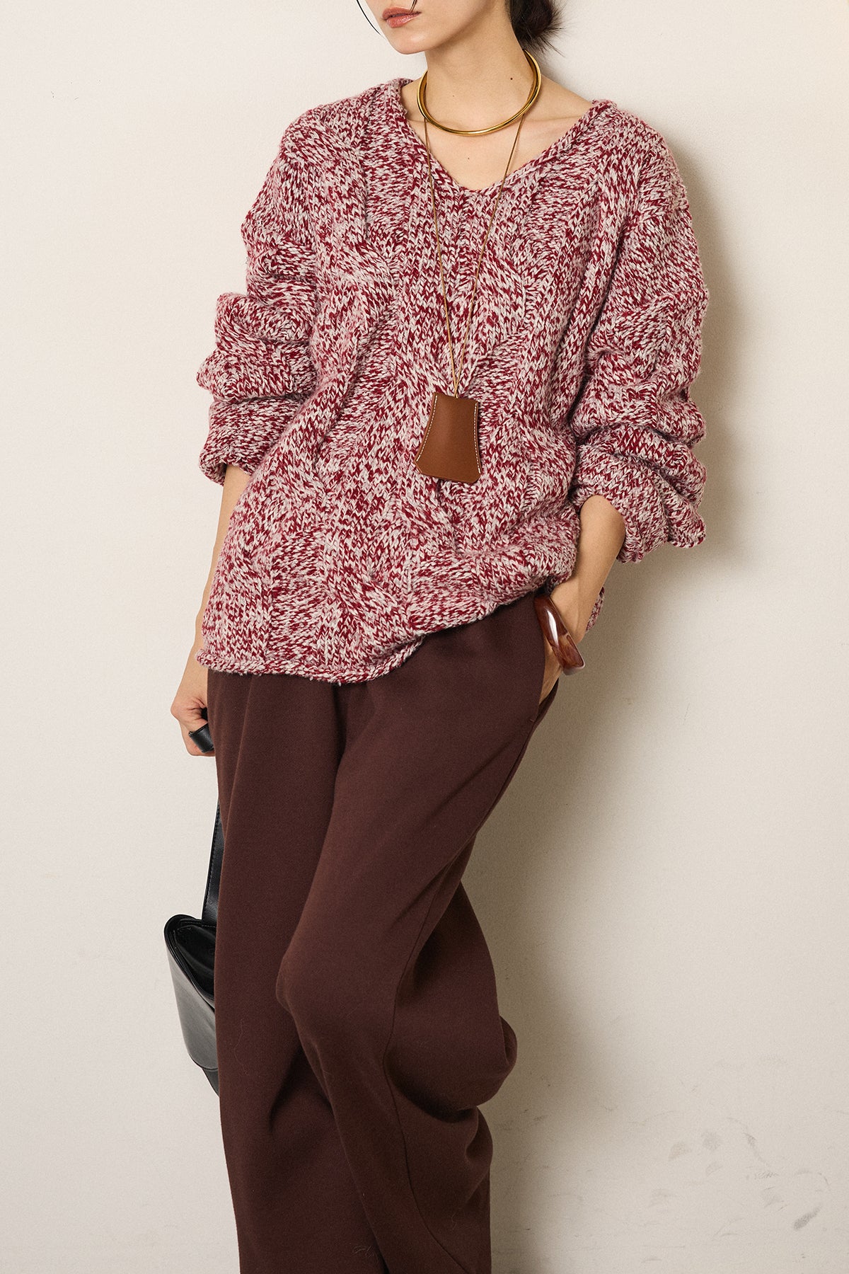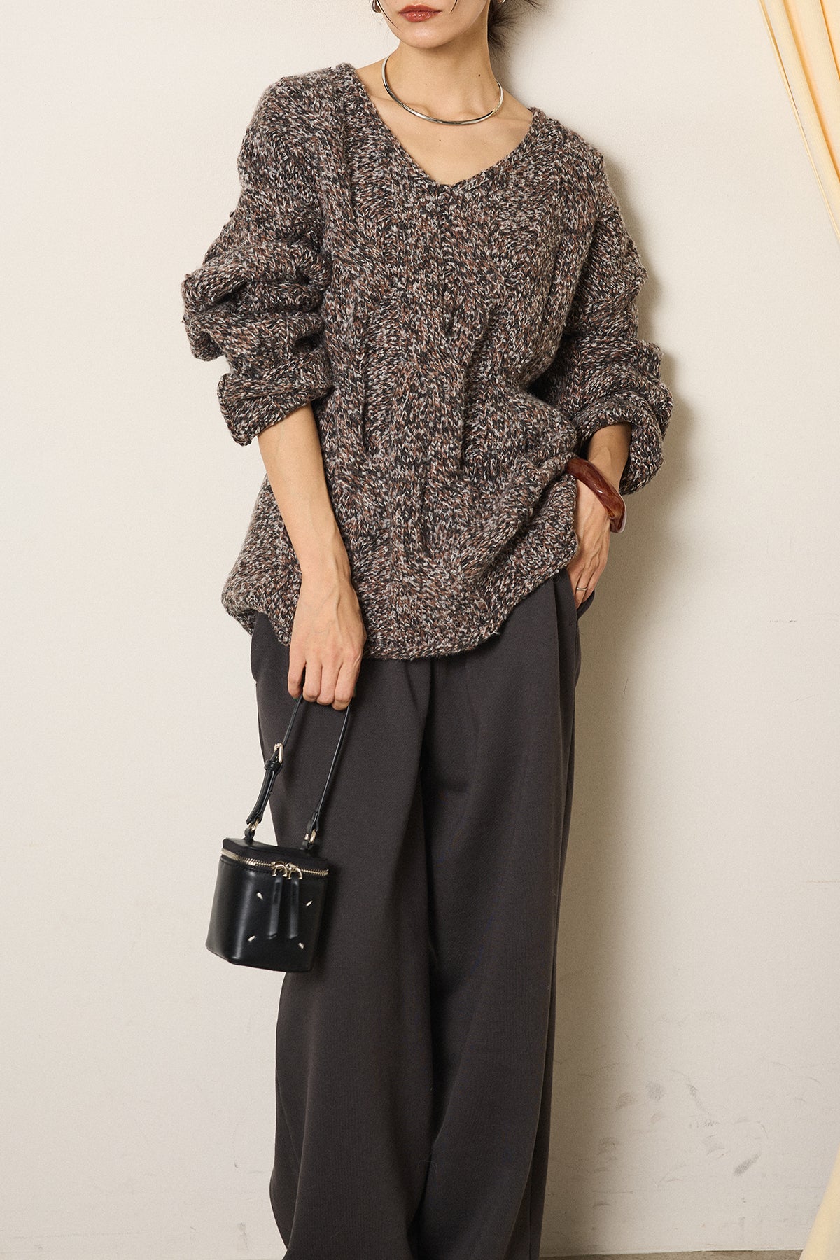 Vネックミックス編みニットトップスの他のセットページはこちら