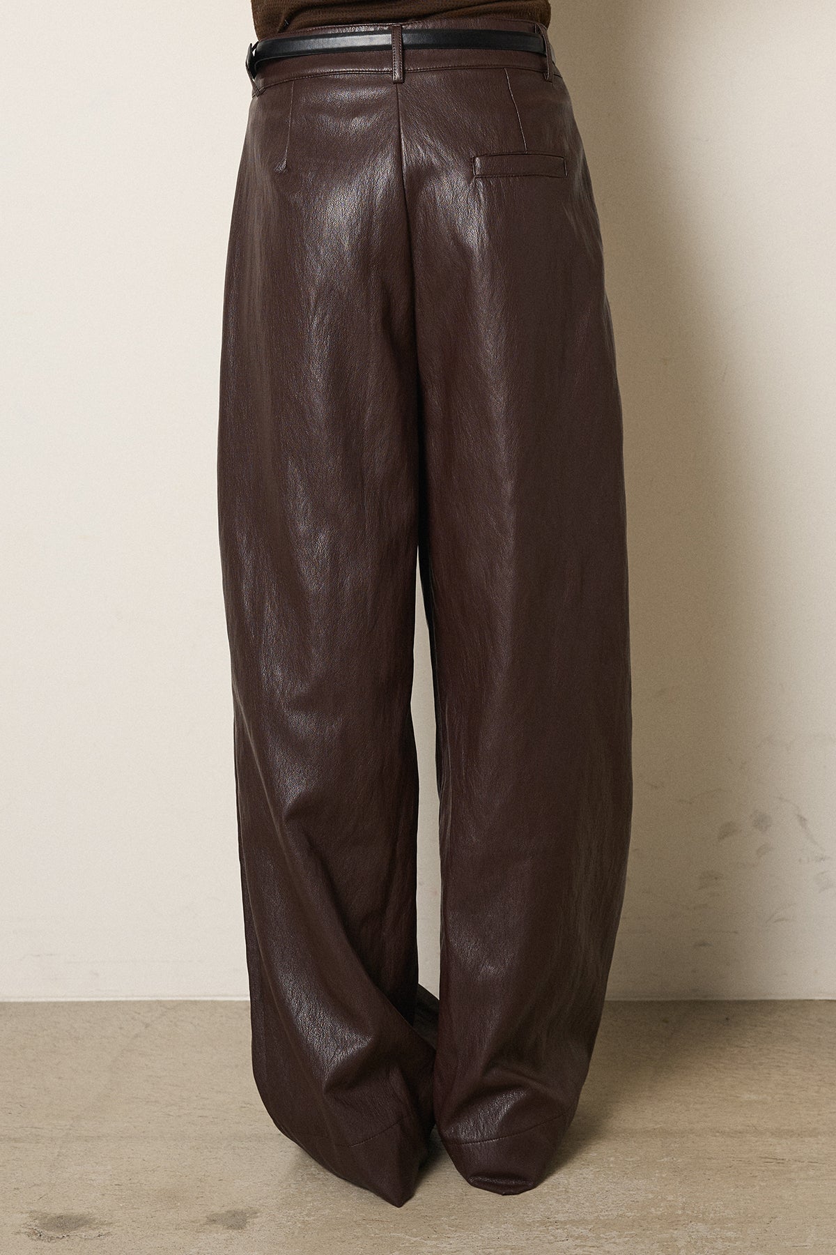 ◆ ベルト付きレザーライクタックパンツ