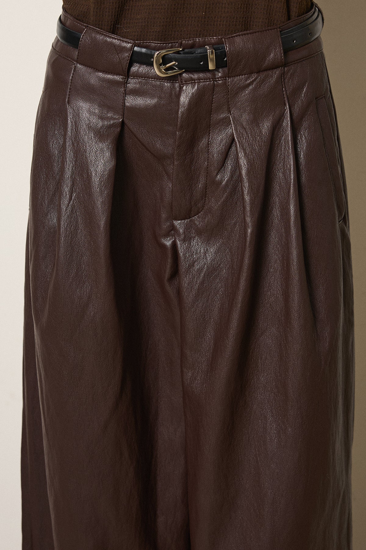 ベルト付きレザーライクタックパンツ
