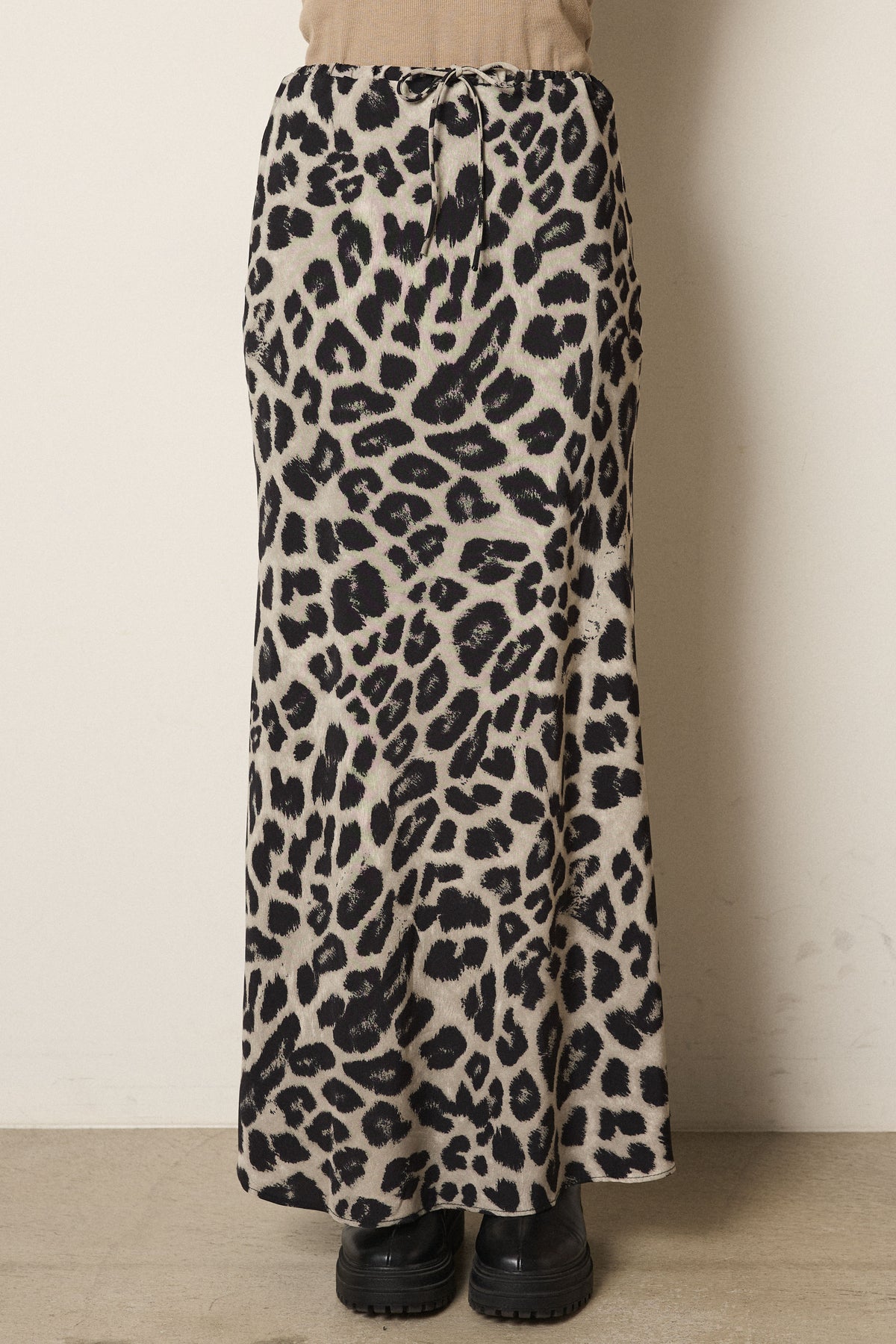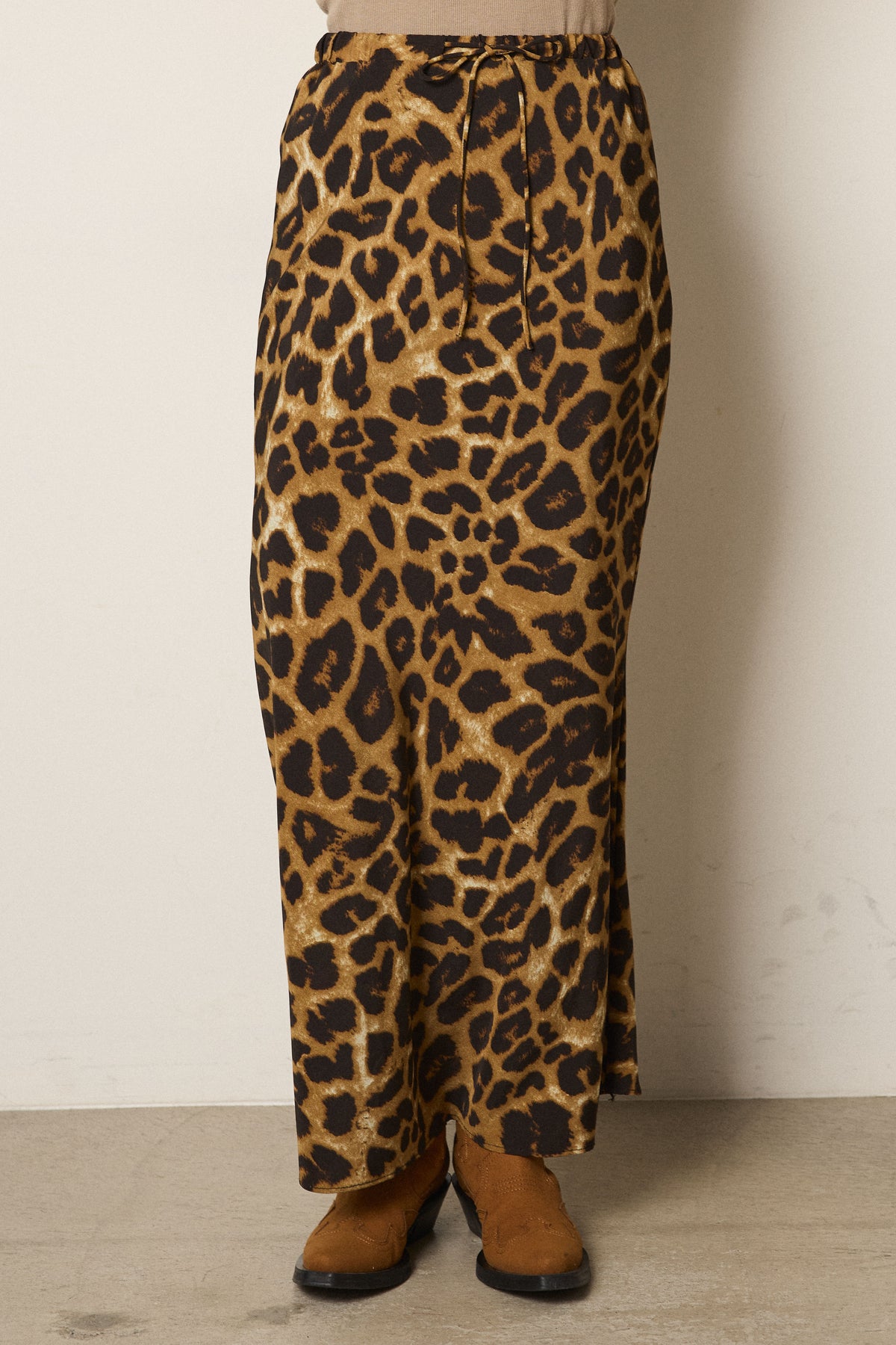 滑らかな光沢感が魅力のナロースカート。サテン素材ならではの落ち感が、動くたびに上品な表情を生み出します。 すっきりとしたシルエットで、トップスを選ばず合わせやすいバランス。 ニットやスウェットなど、異素材アイテムと組み合わせることで程よいコントラストが生まれます。 柄の存在感を活かしつつも、全体は落ち着いた印象にまとまる一枚。 コーディネートにさりげないアクセントを加えたいときに取り入れたいアイテムです。
