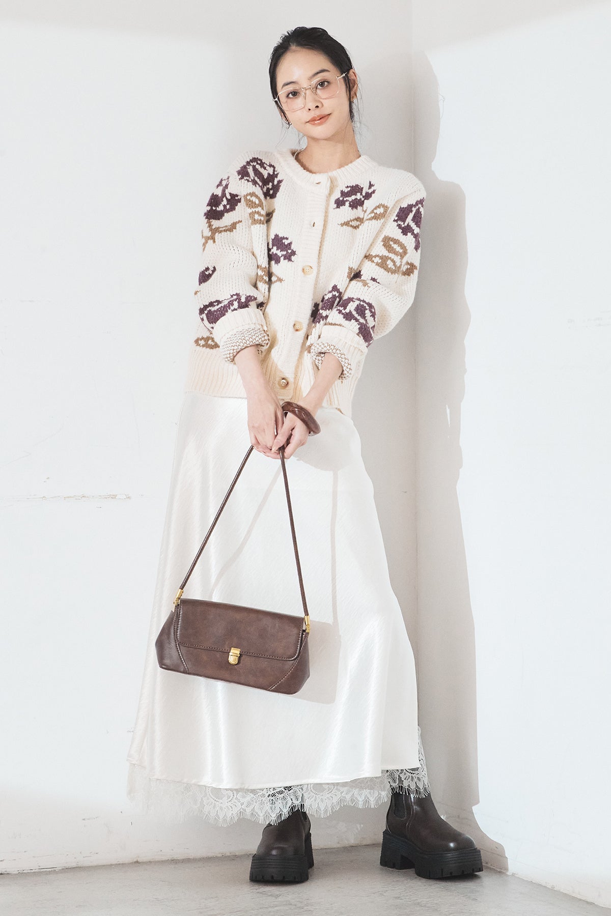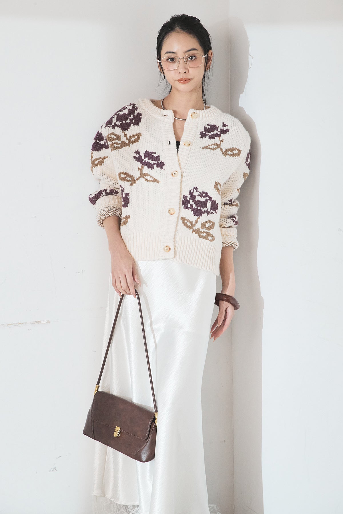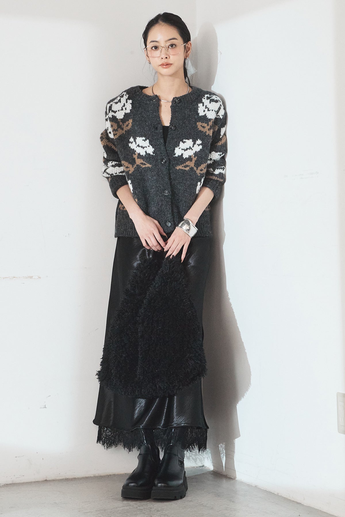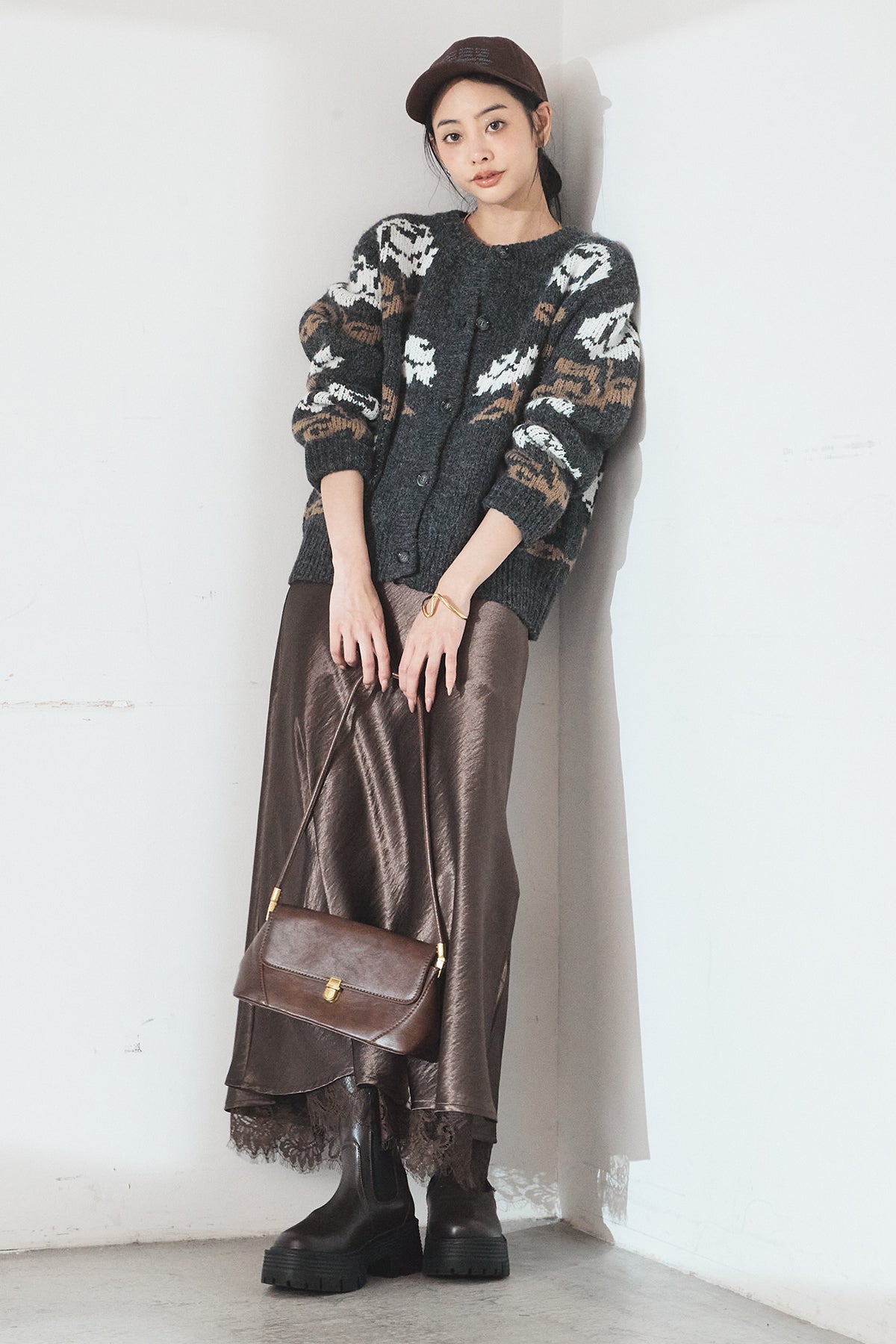 [SET]花柄ジャガードニットカーディガン+裾レースデザインサテンスカート(2set)