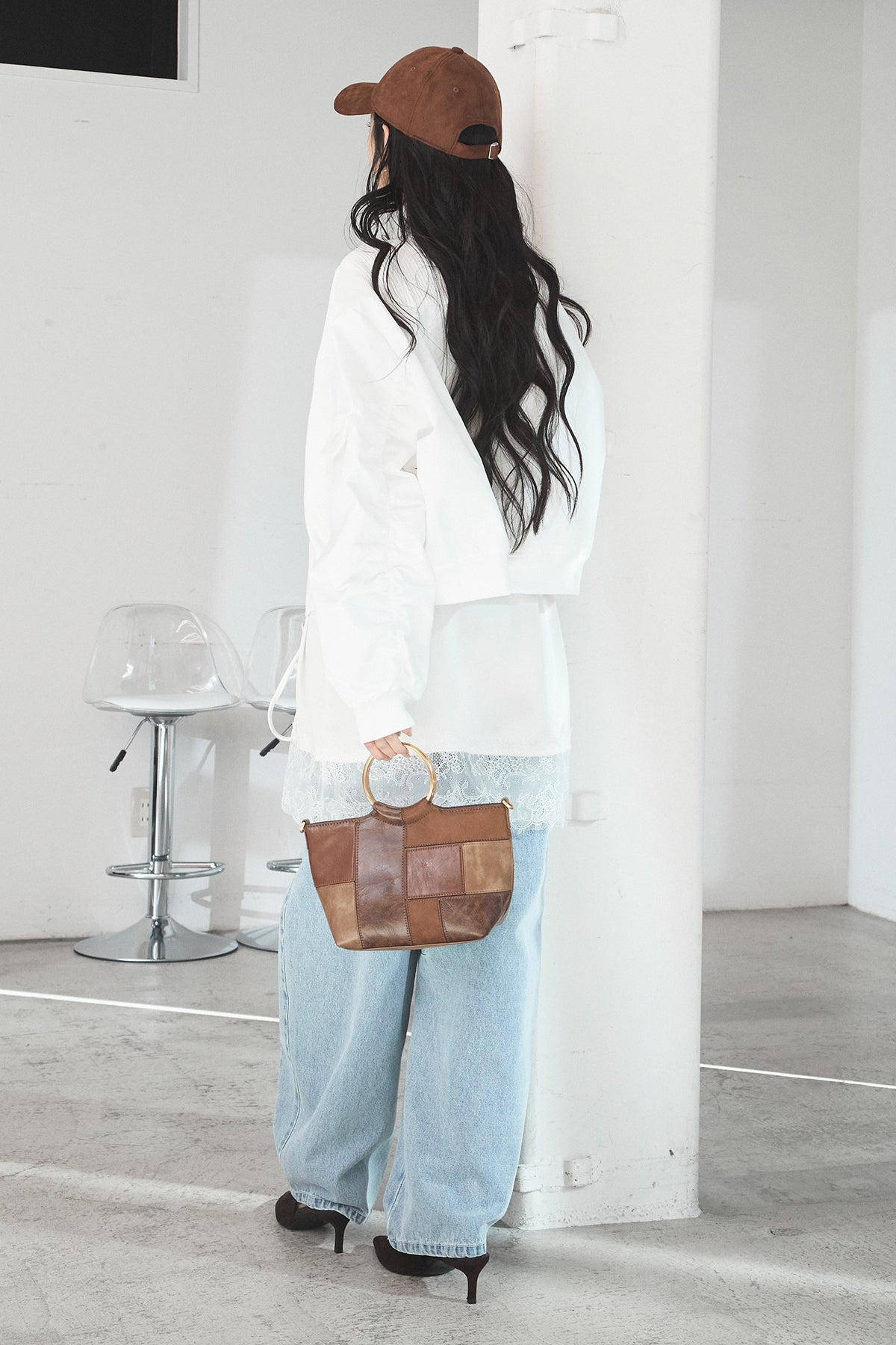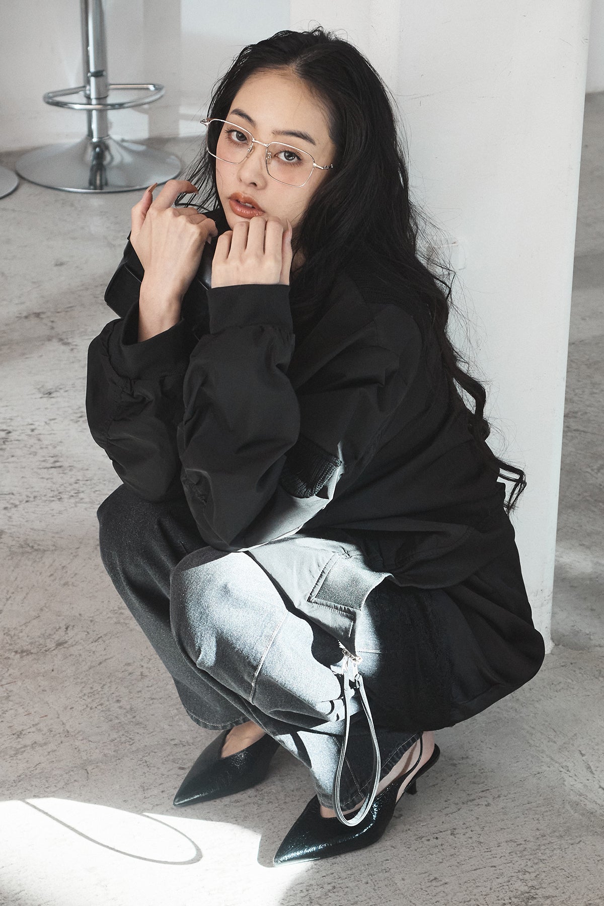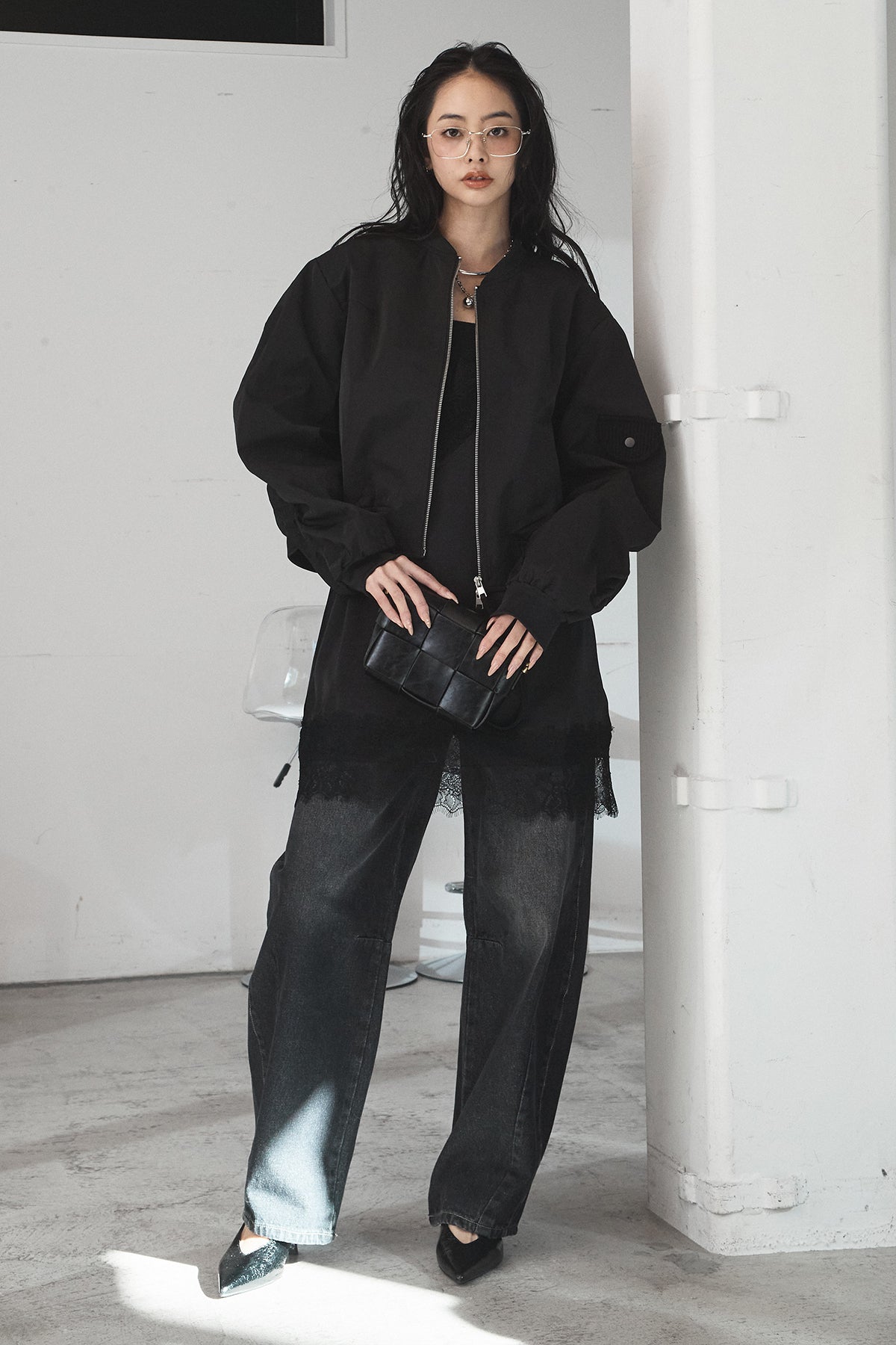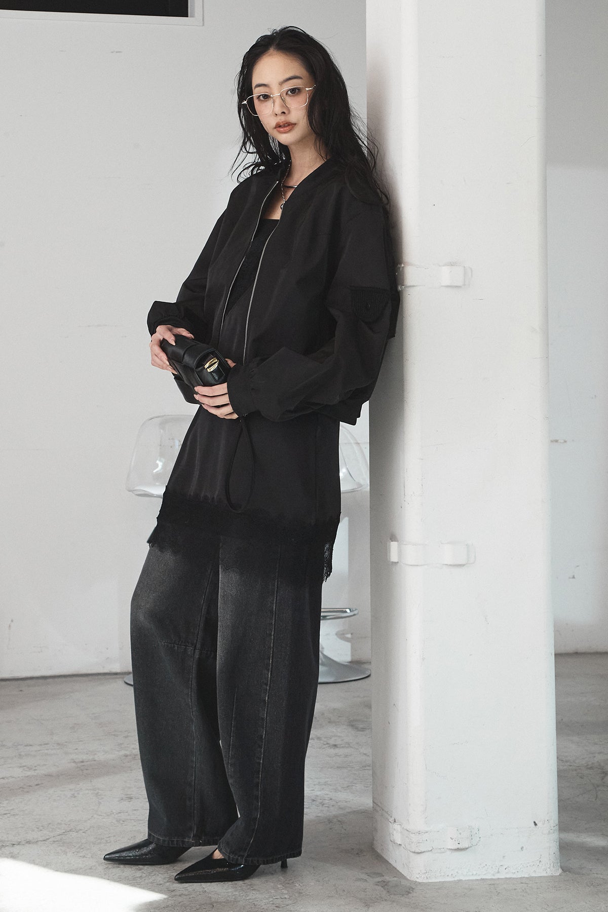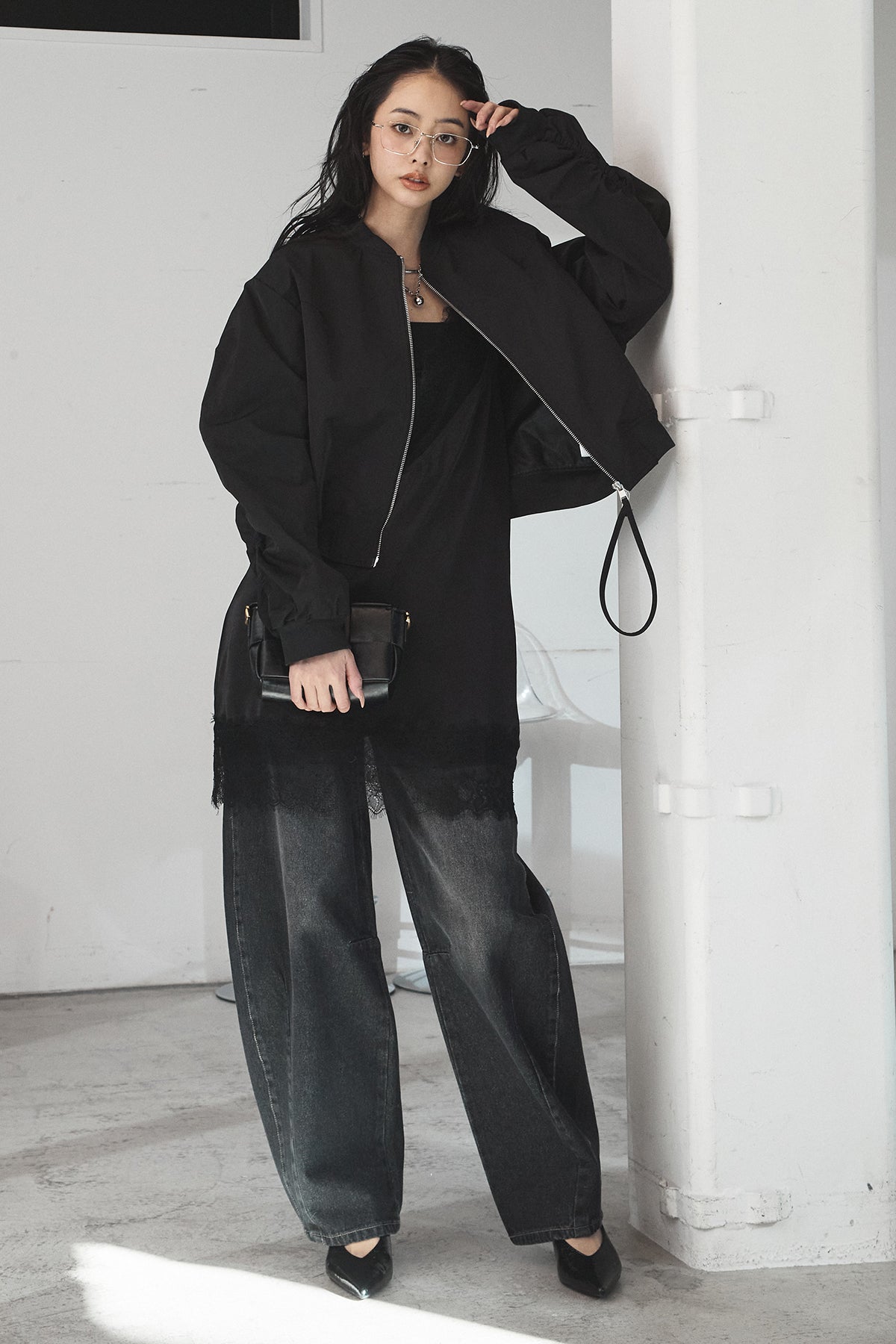 [SET]袖ギャザーデザインブルゾン+デニムアシメカーブパンツ(2set)