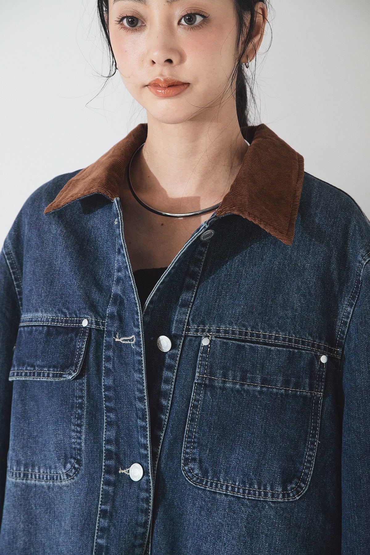 ◆ 襟コーデュロイデニムカバーオール
