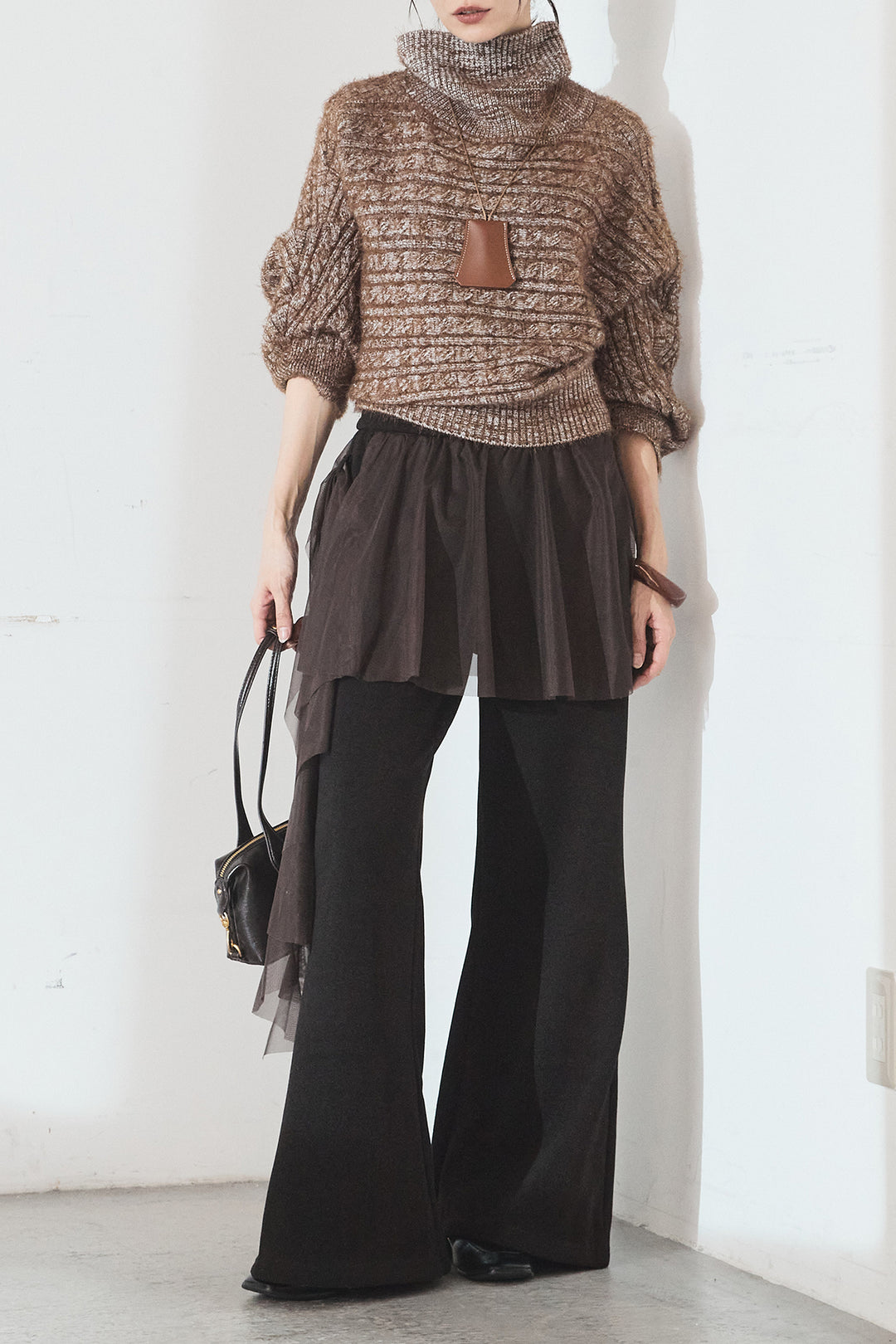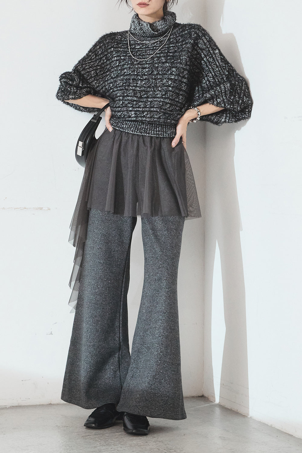 [SET]ミックス編みドルマンニットトップス+チュールレイヤードニットパンツ(2set)