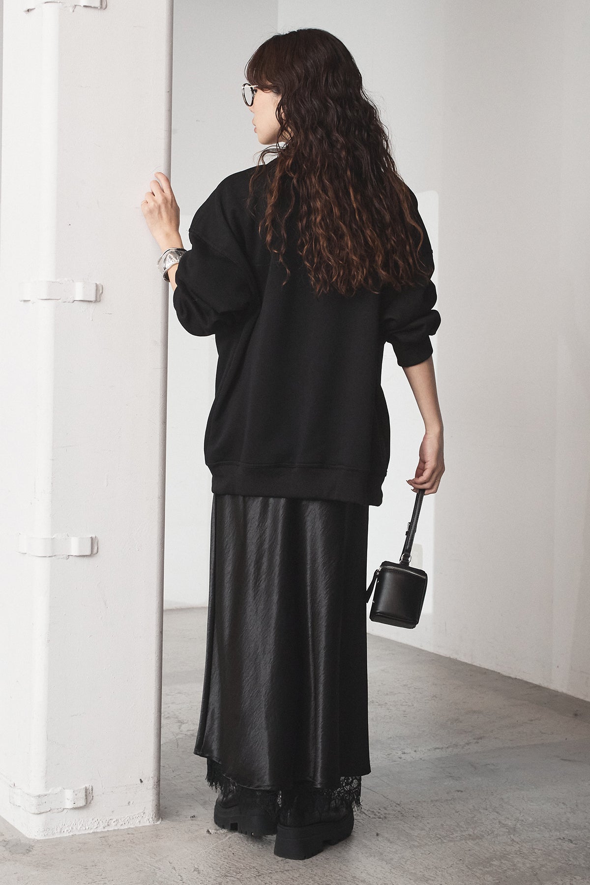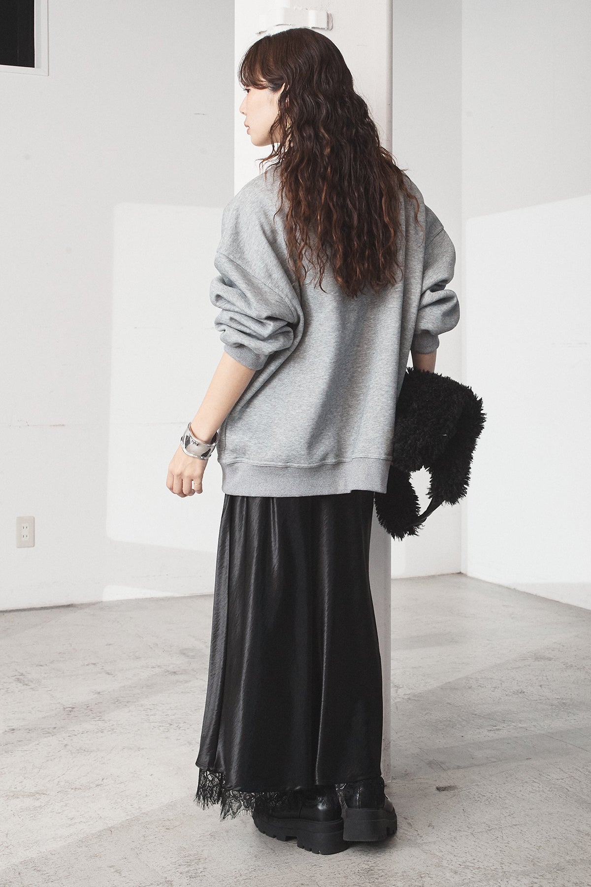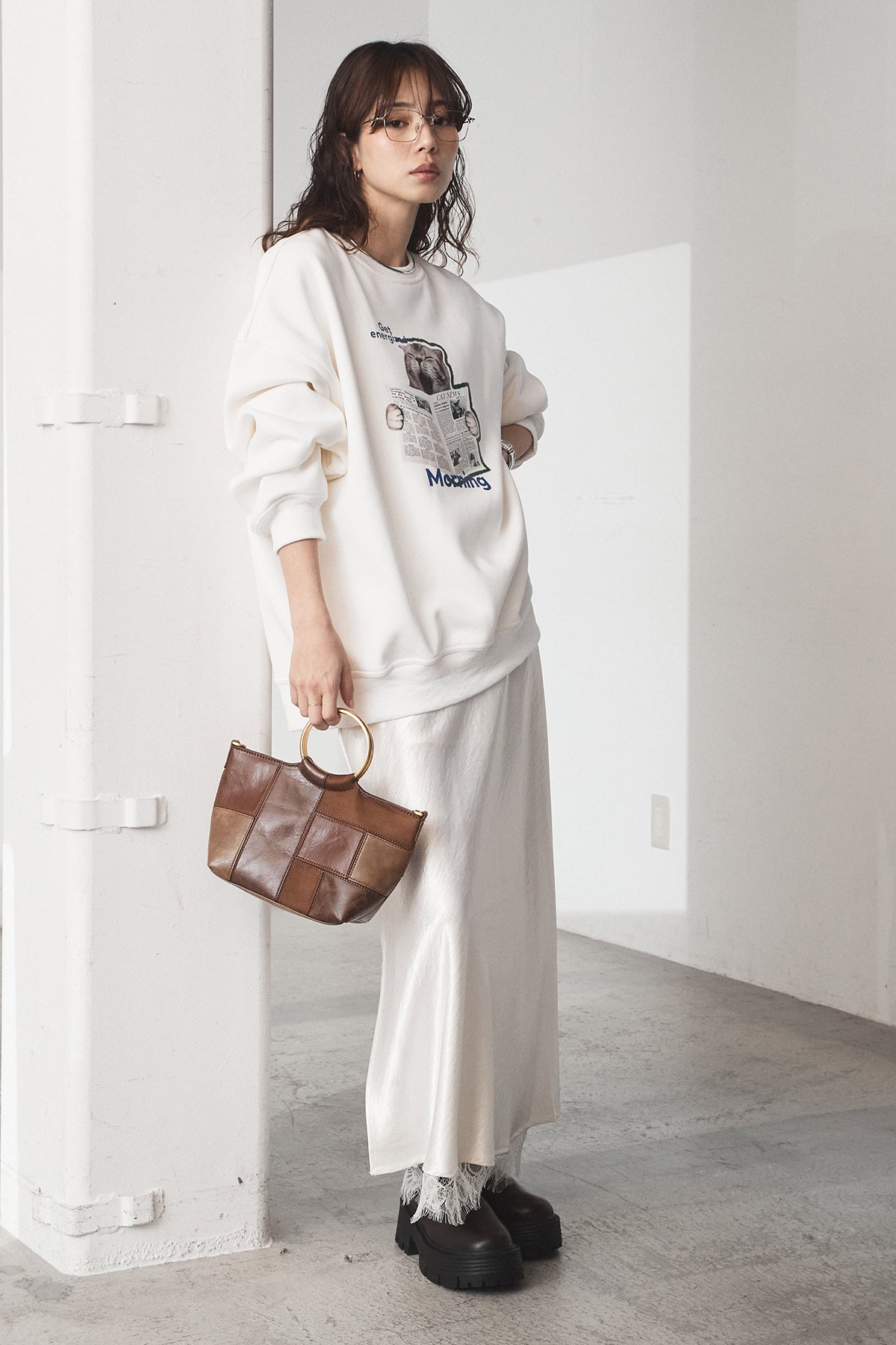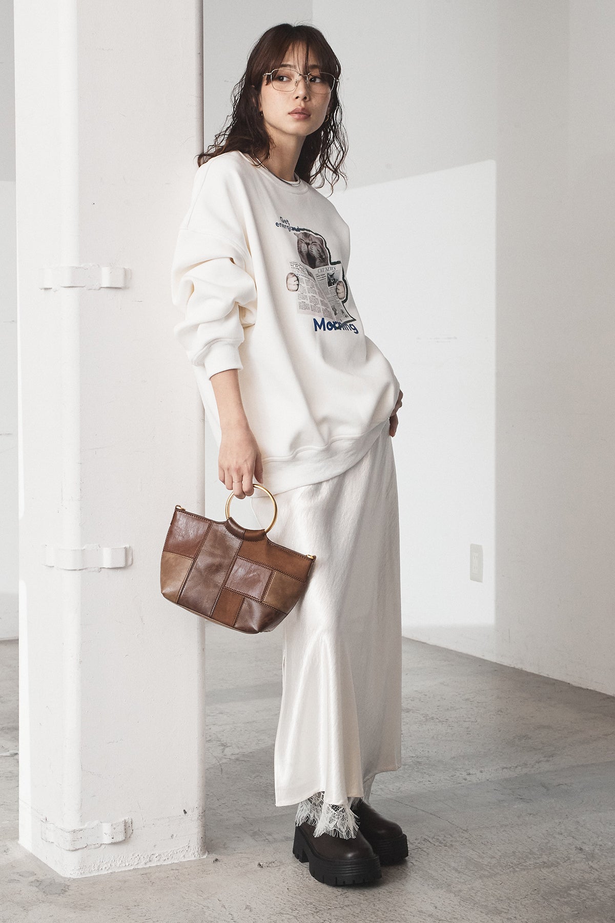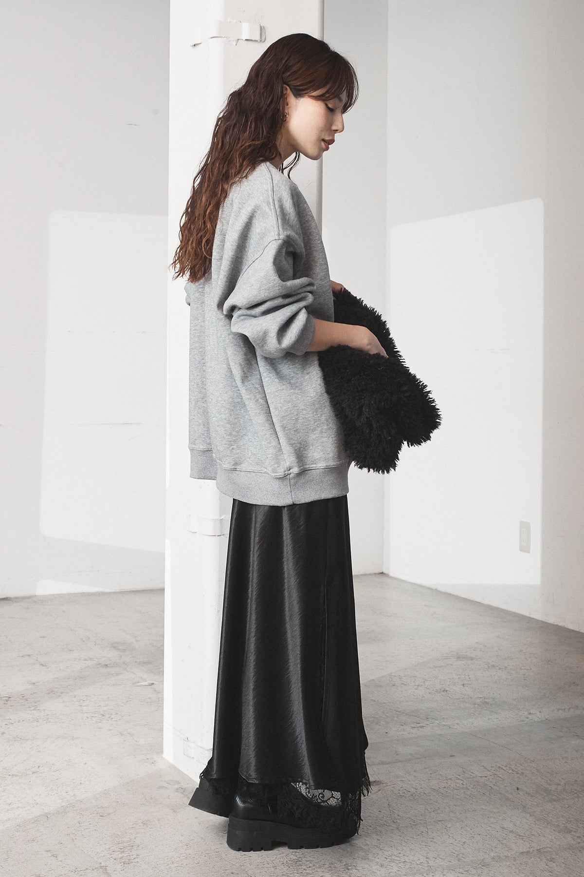 [SET]裏起毛モーニングキャットプリントスウェット+裾レースデザインサテンスカート(2set)