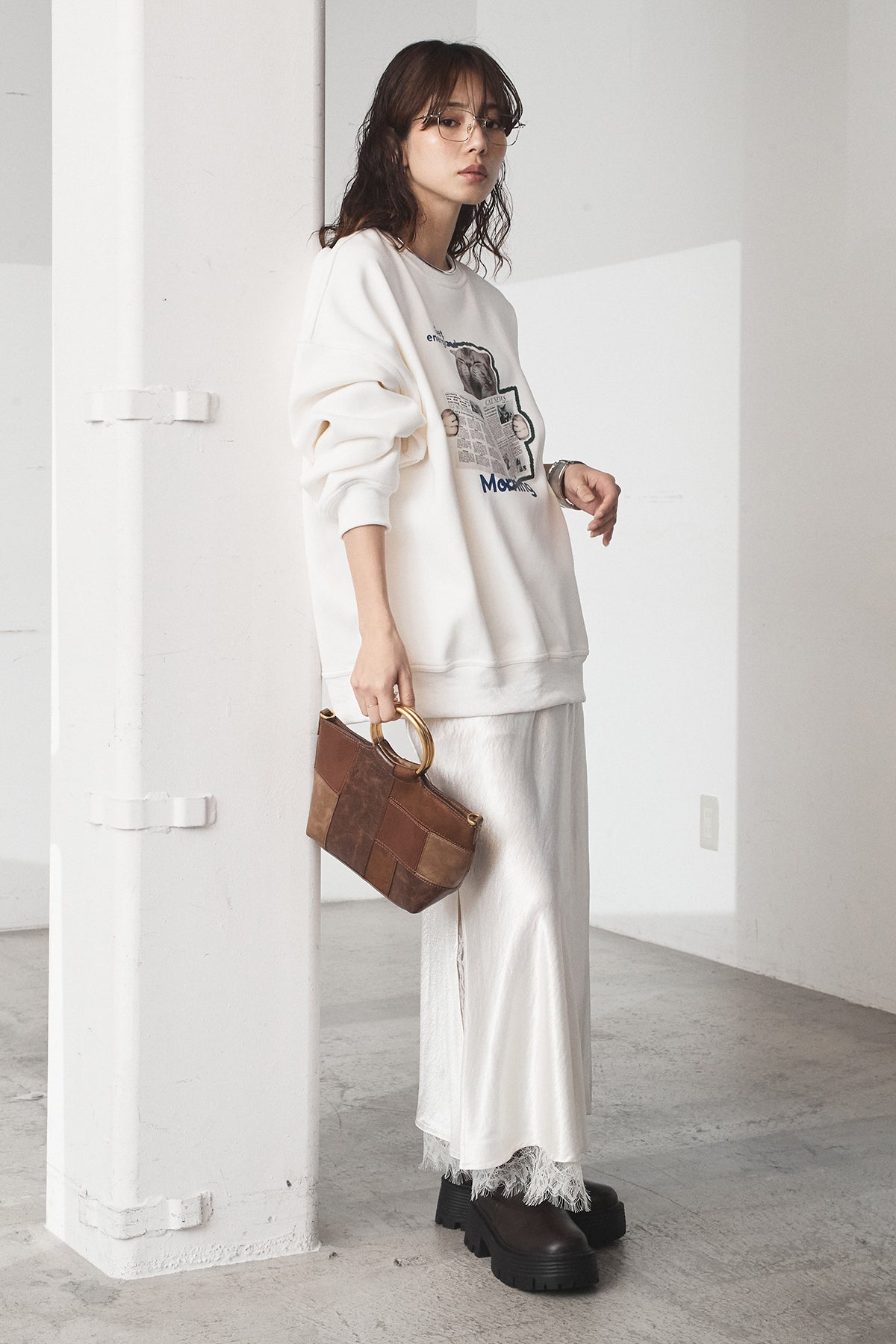 裏起毛素材を使用したプリントスウェット。 やわらかな肌触りで、リラックスして着用できる一枚です。 程よくゆとりのあるシルエットで、シンプルなボトムとも合わせやすいデザイン。 デイリー使いから外出まで、気軽に取り入れやすいアイテムです。