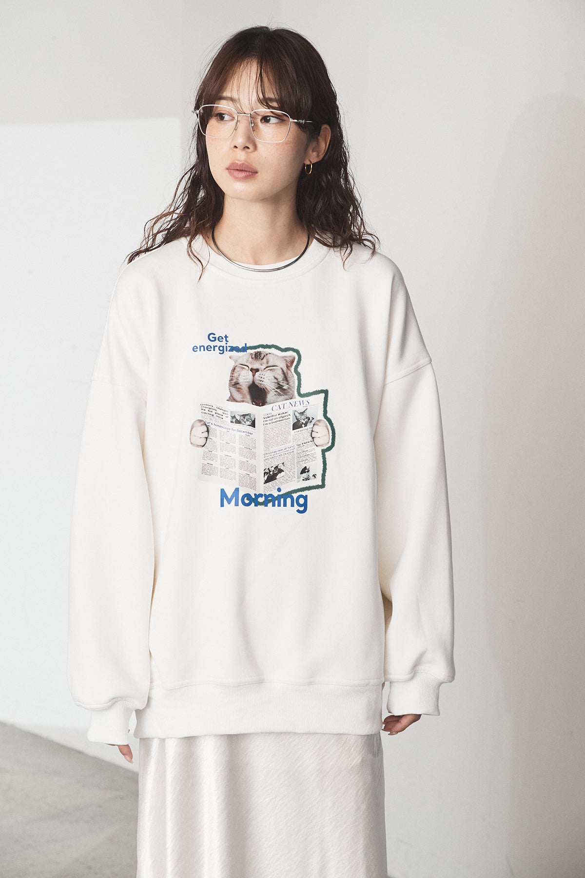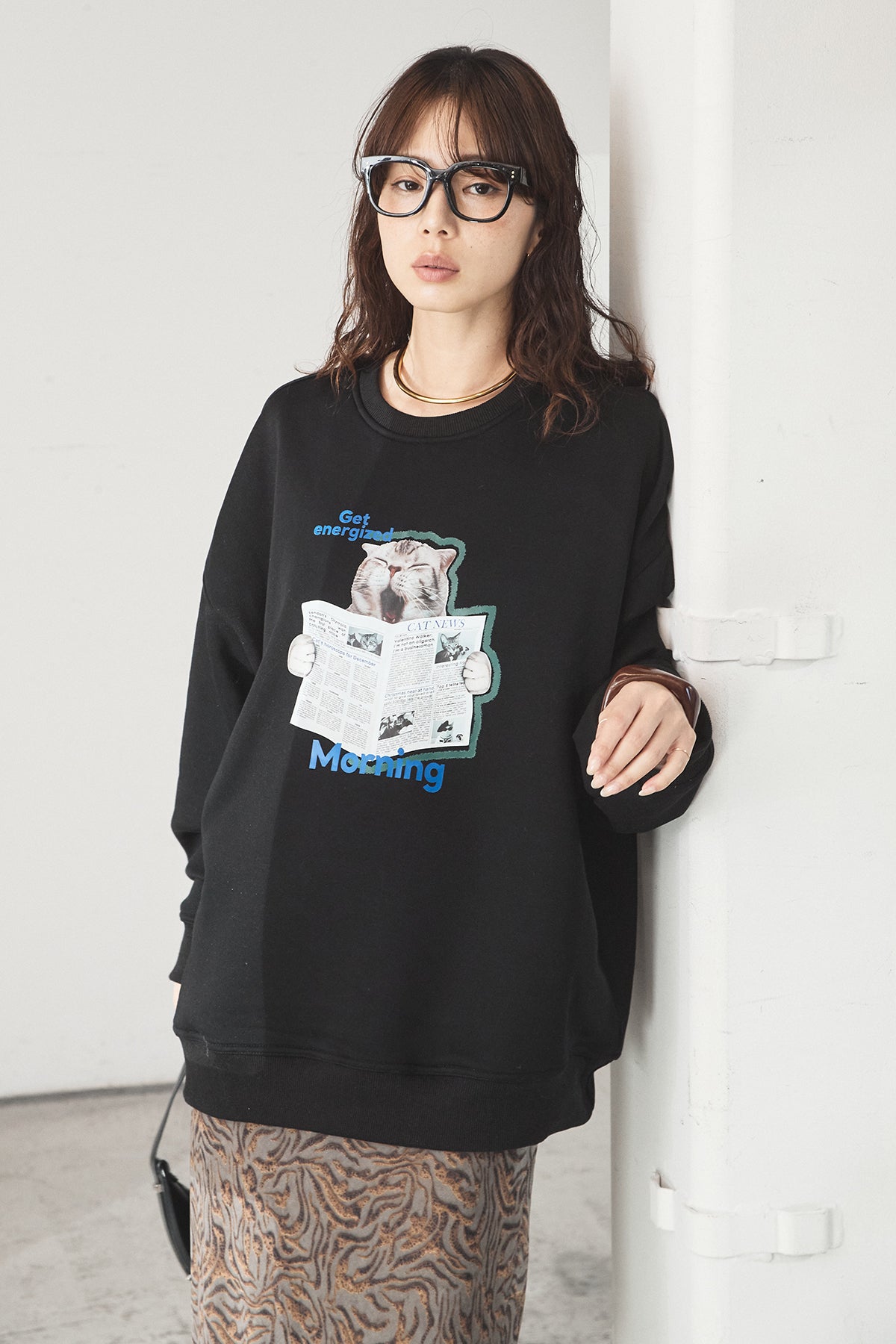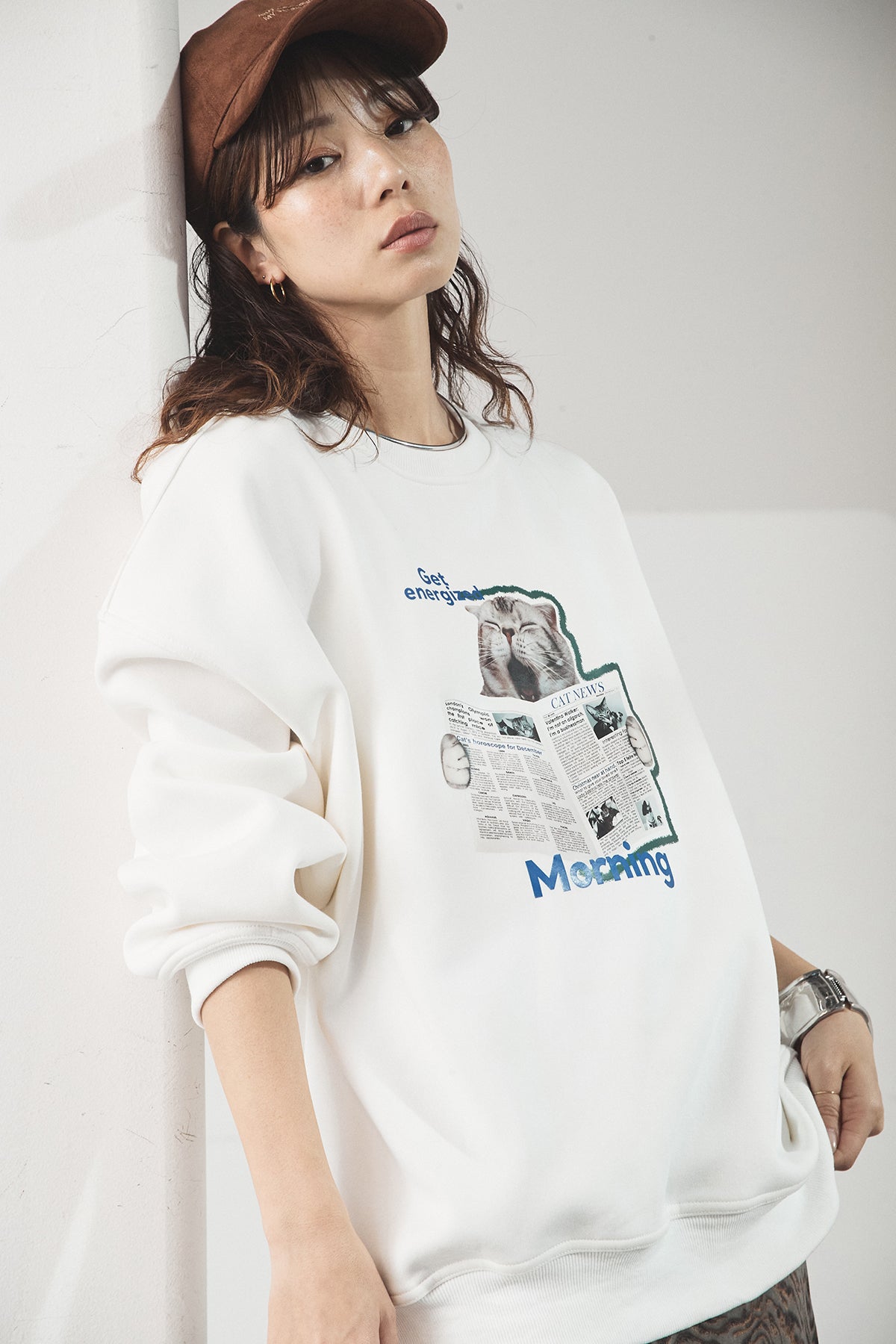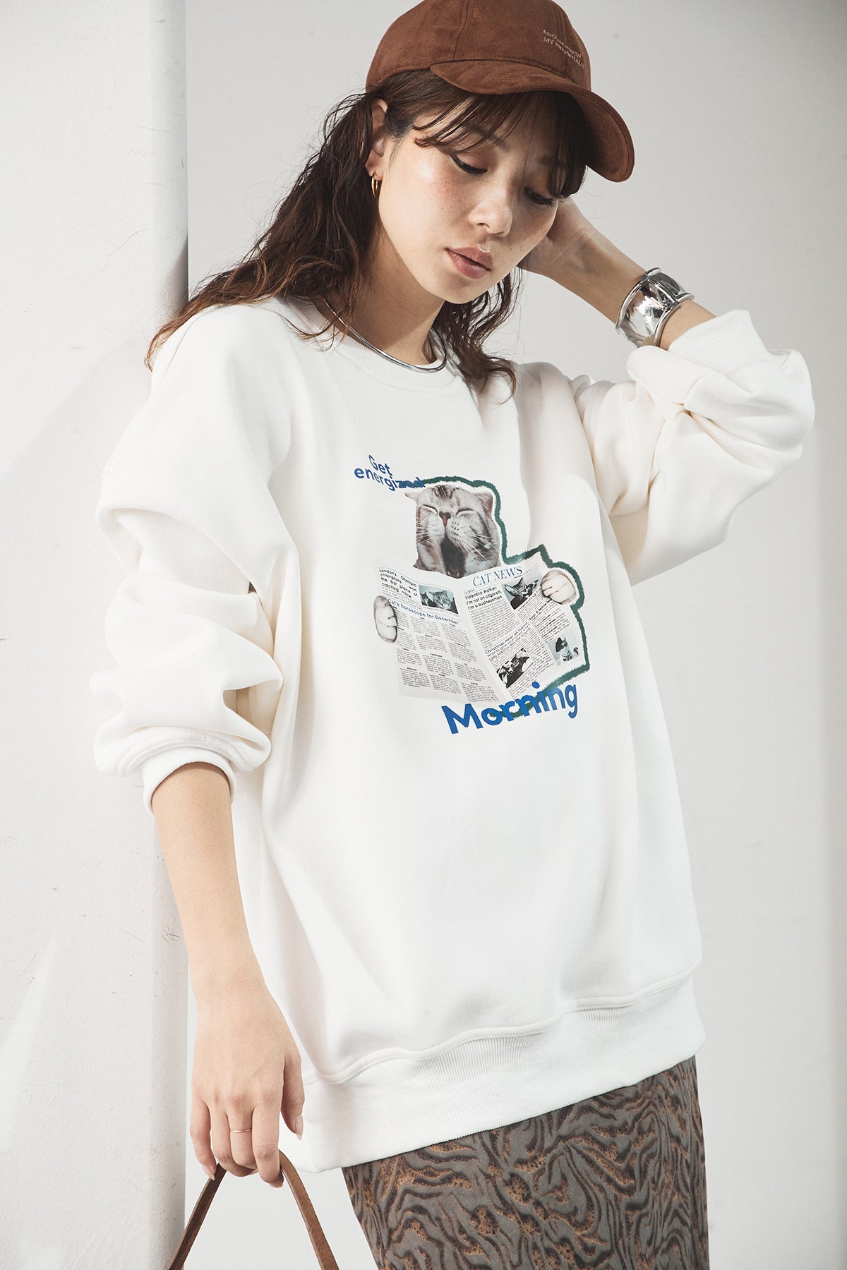 裏起毛モーニングキャットプリントスウェット
