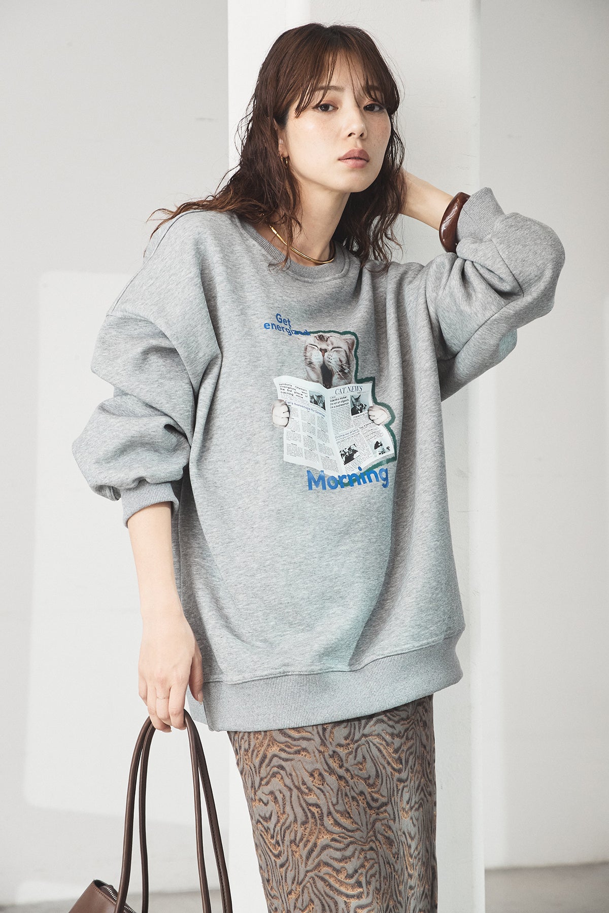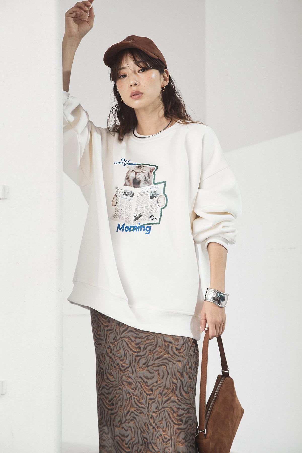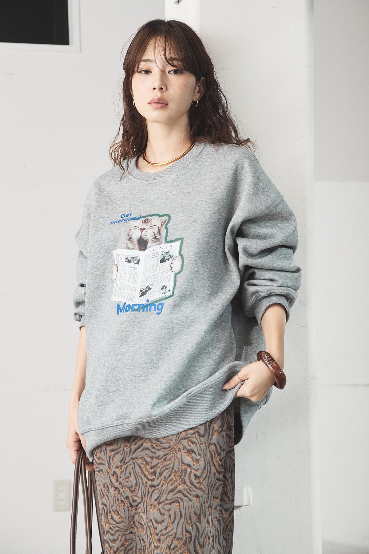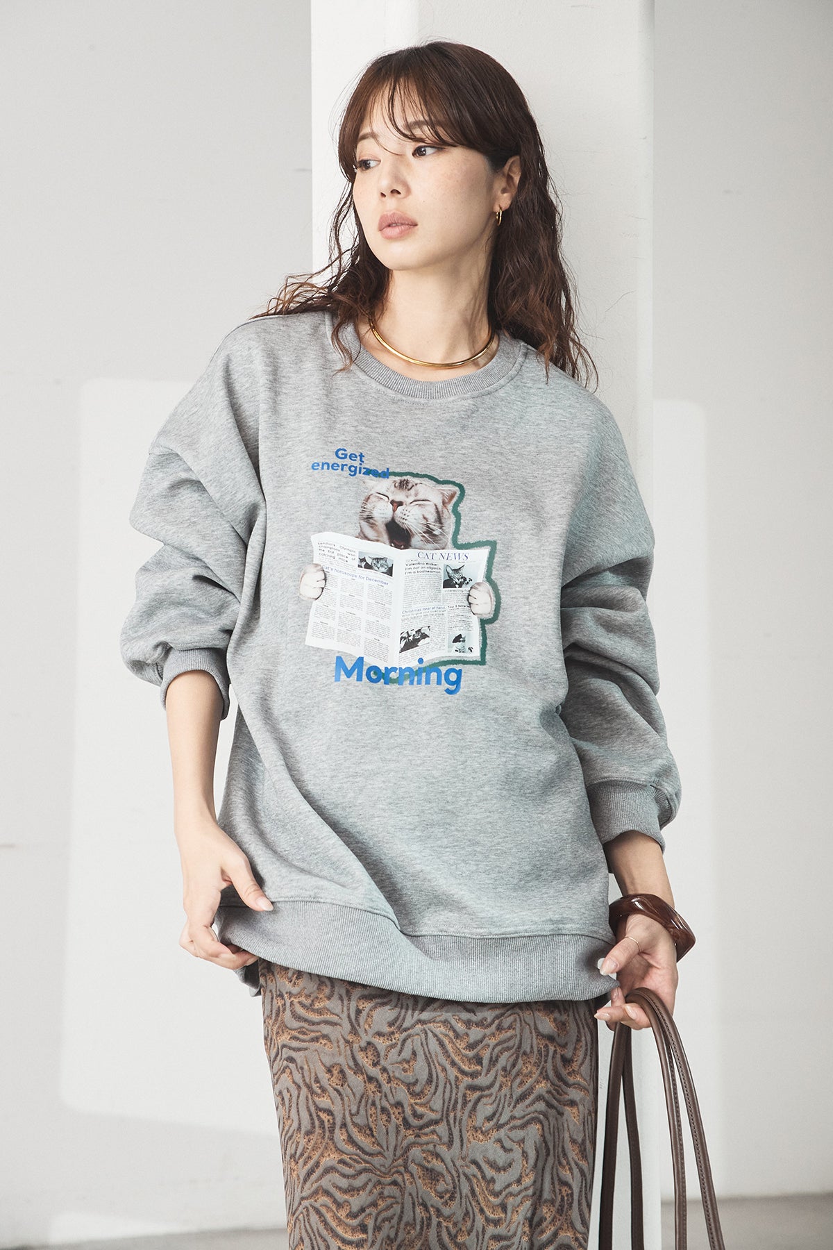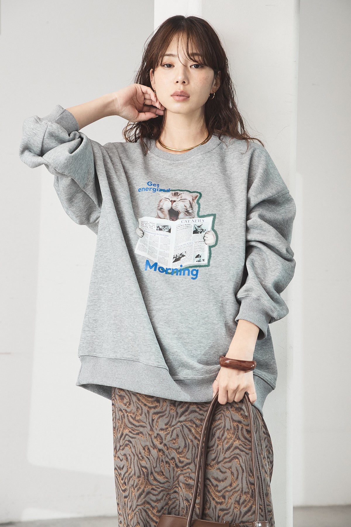 裏起毛モーニングキャットプリントスウェット