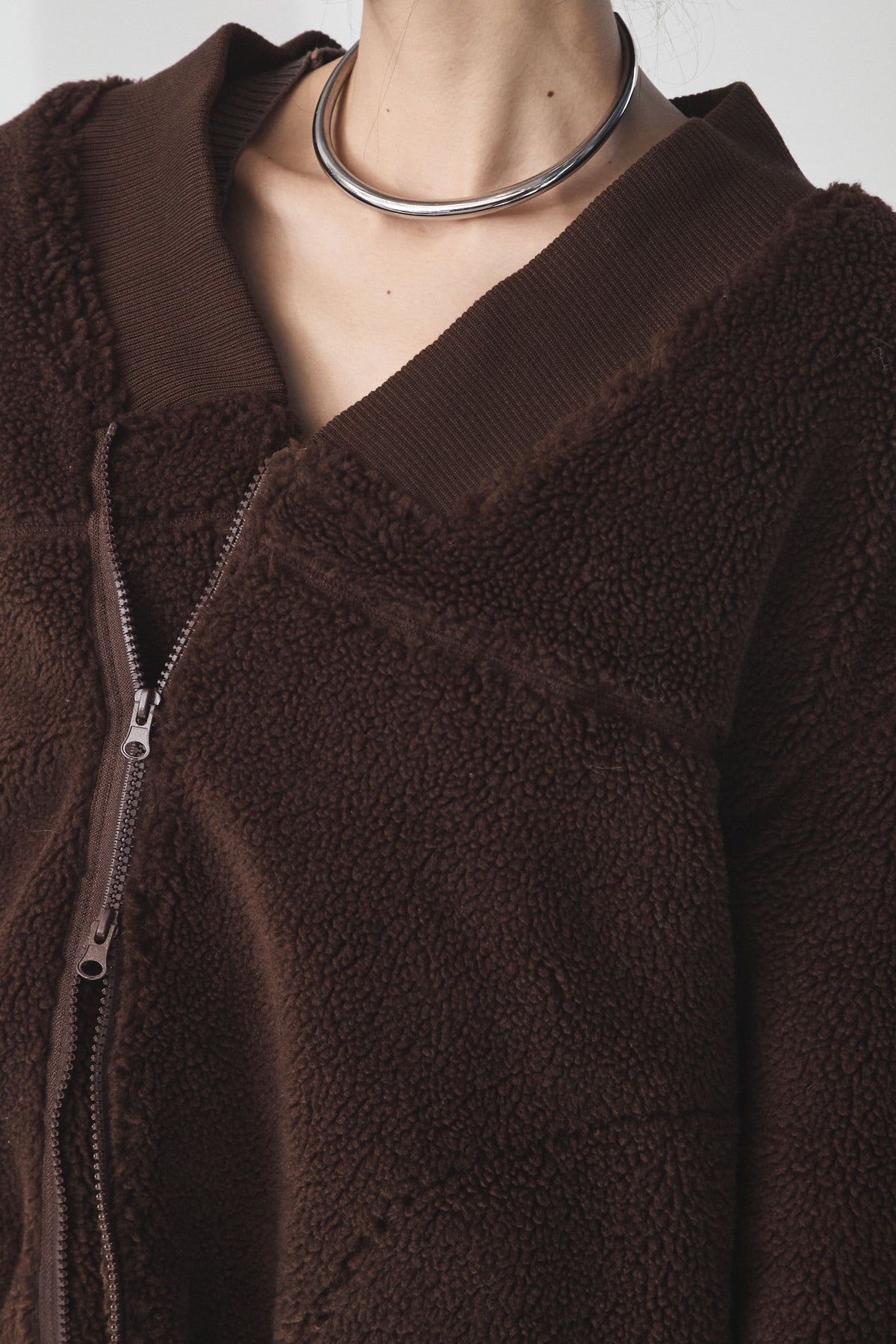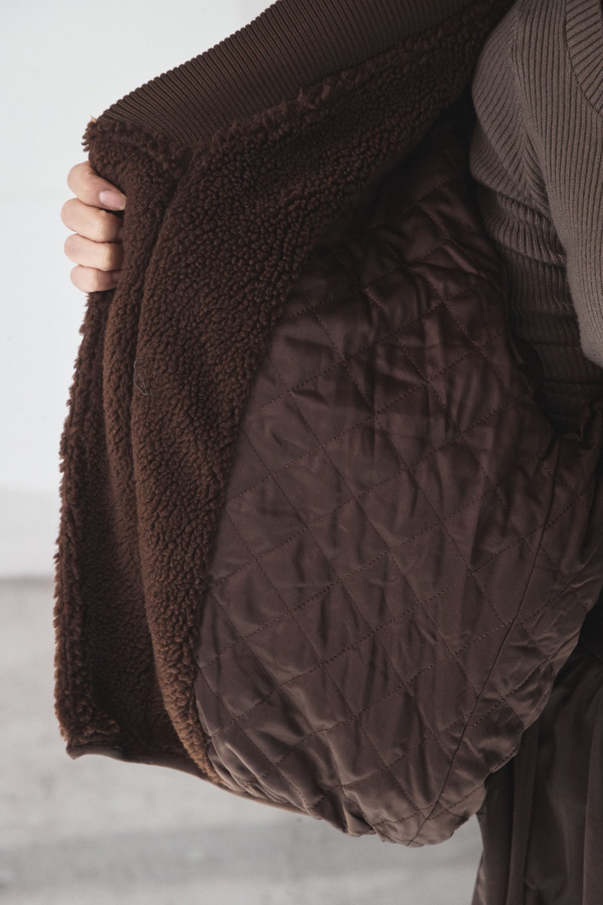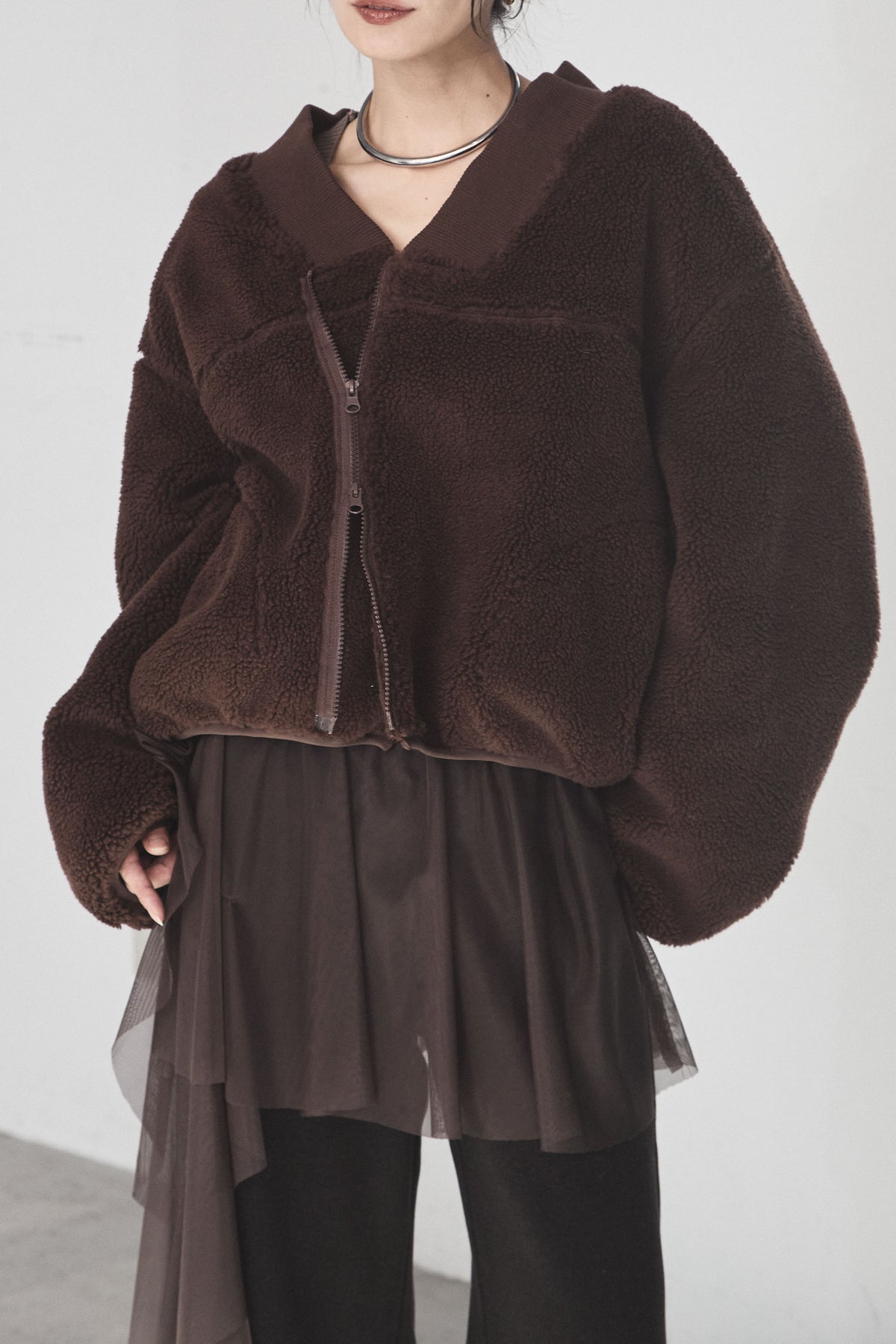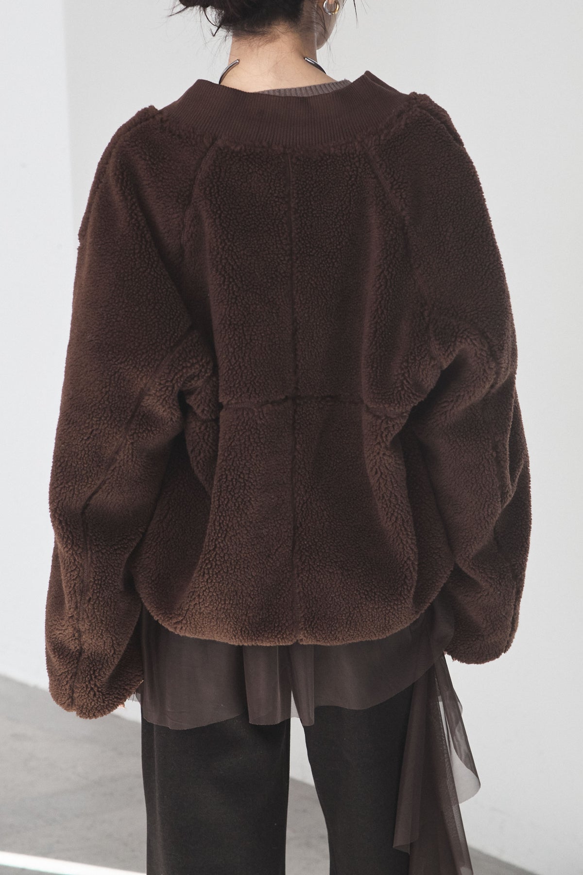 ノーカラーデザインのリブボアアウター。 すっきりとした首元で、インナーを選ばず合わせやすい一着です。 程よいボリューム感がありながら、軽く羽織りやすいシルエット。 パンツにもスカートにも合わせやすく、デイリーに活躍します。