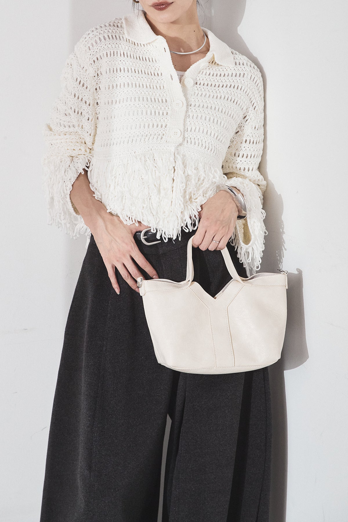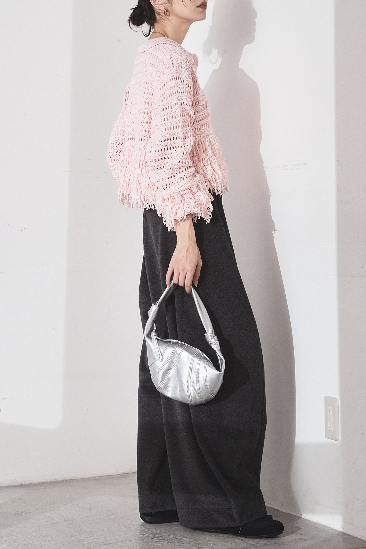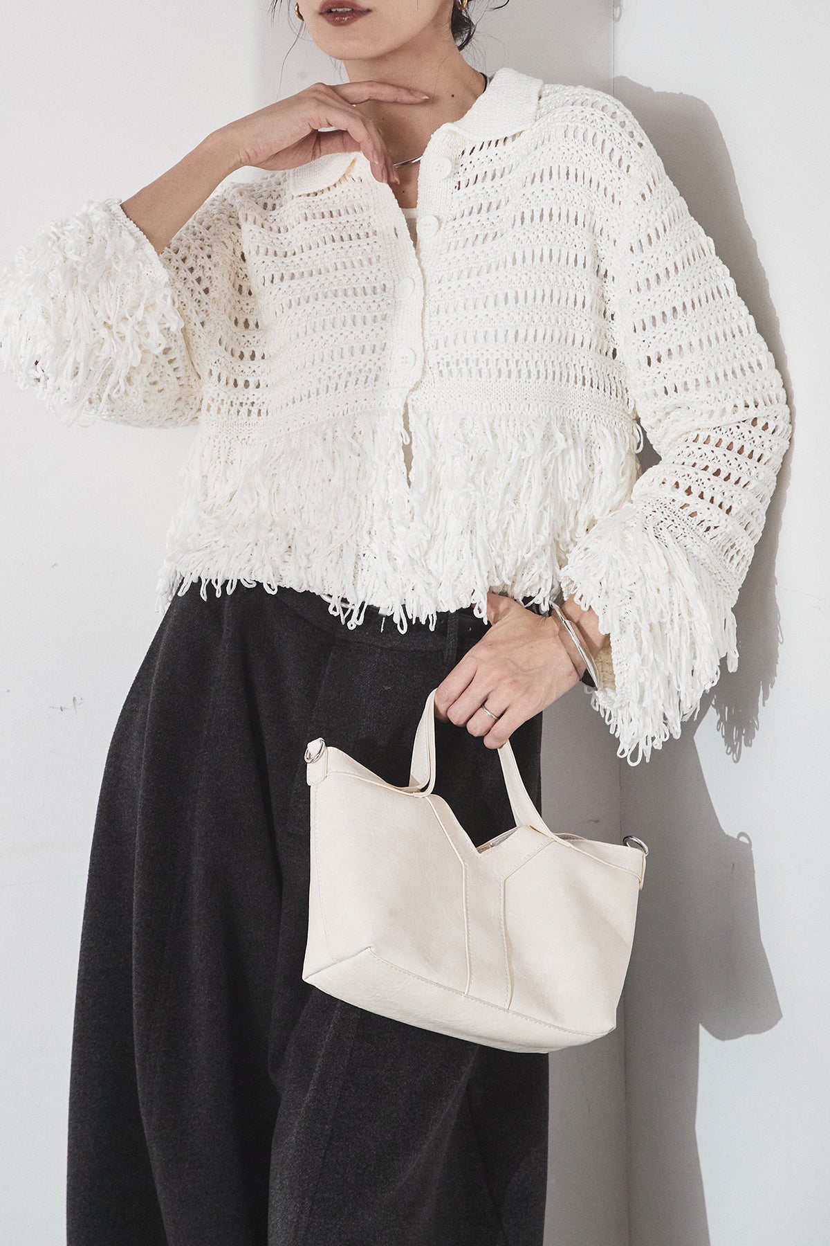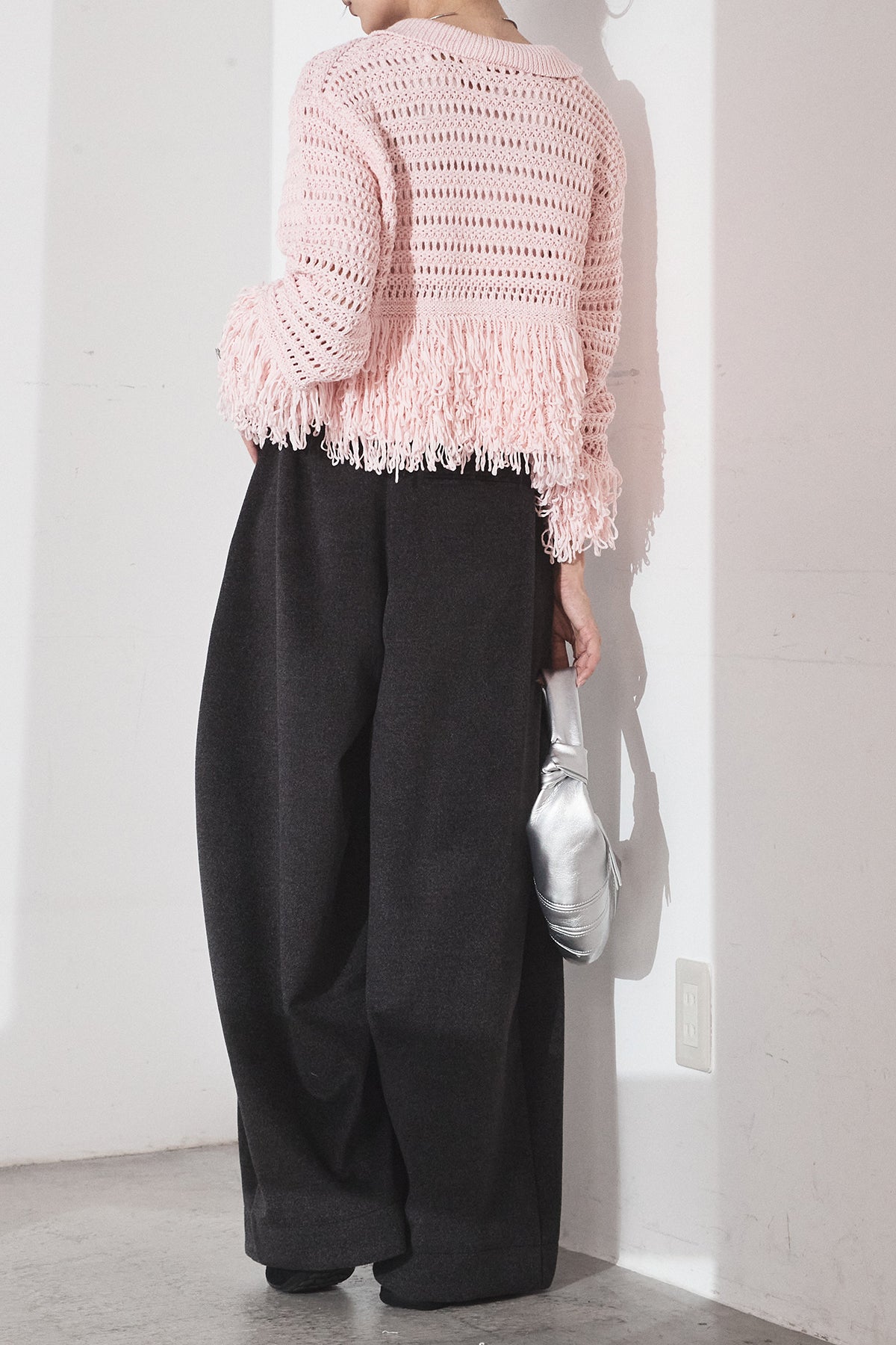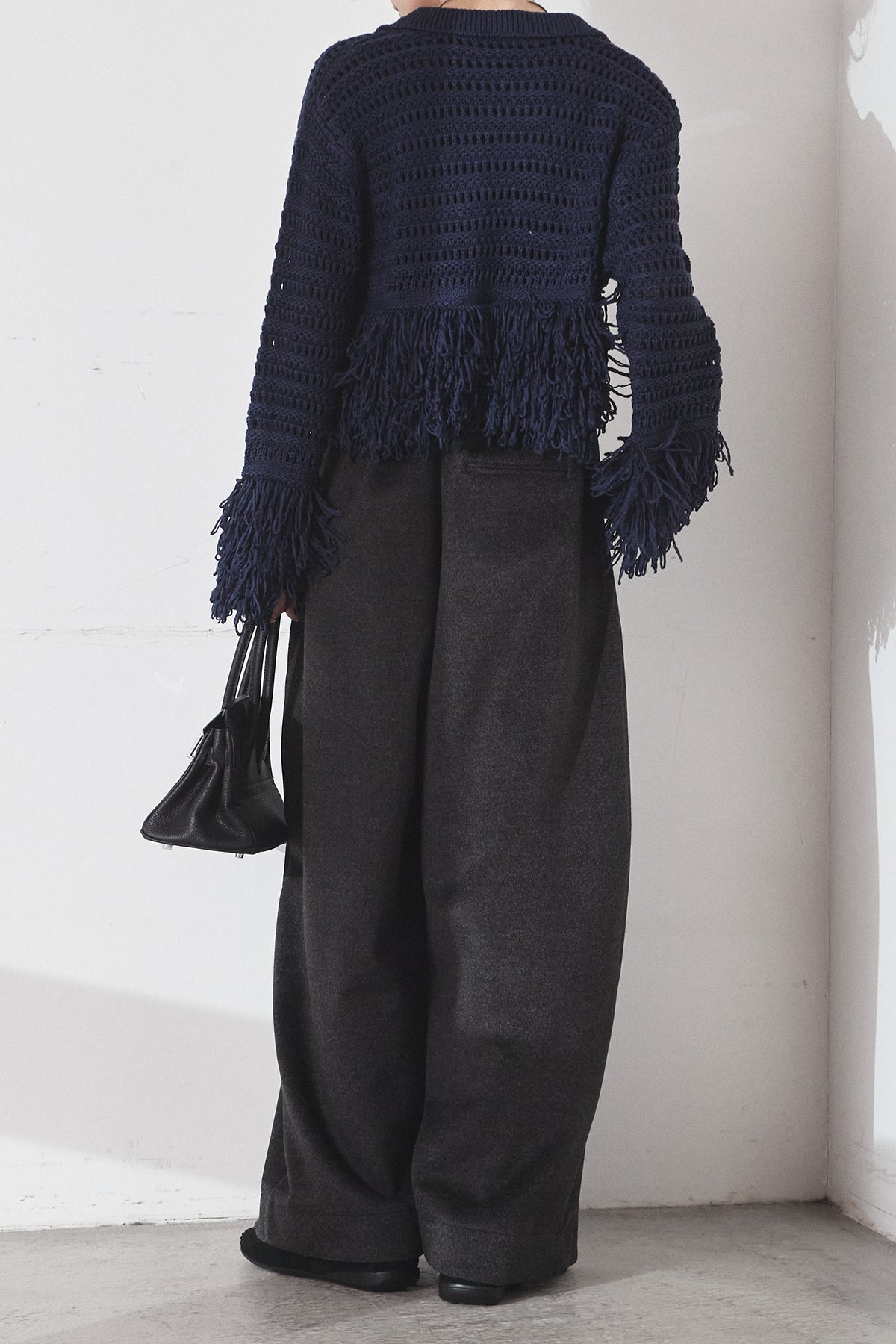 [SET]メッシュフリンジカーディガン+ウールタッチカーブワイドパンツ(2set)