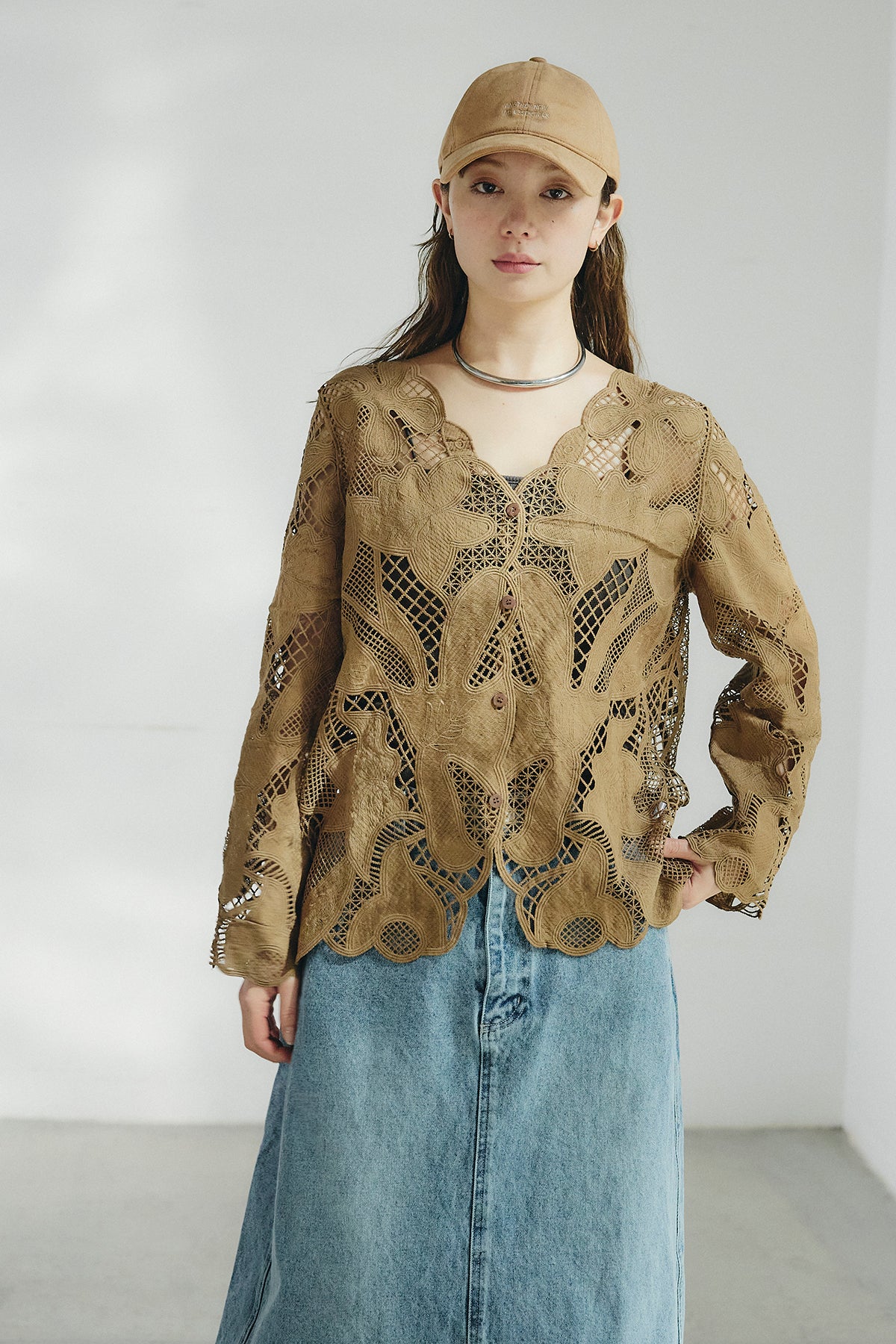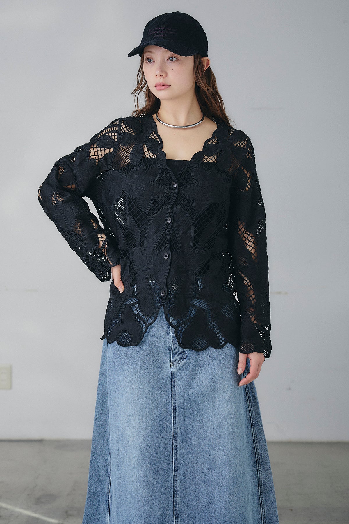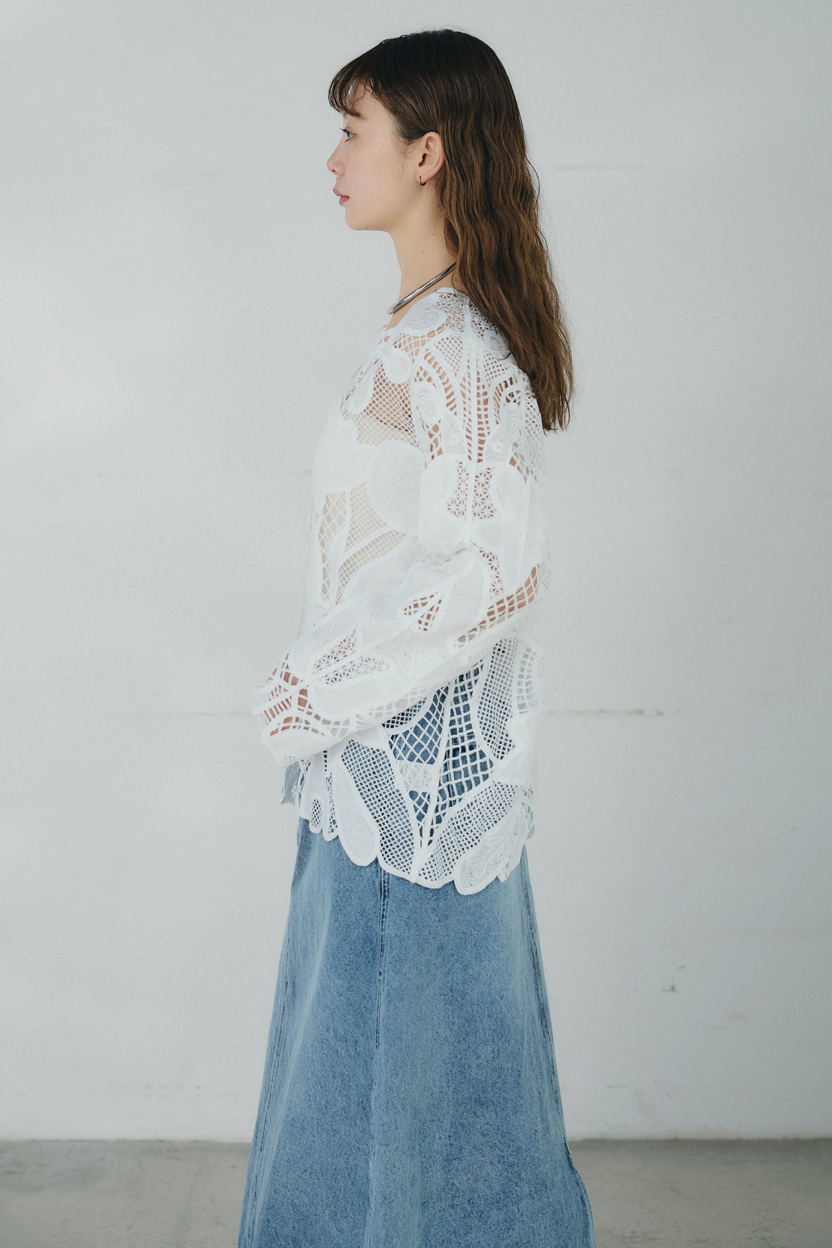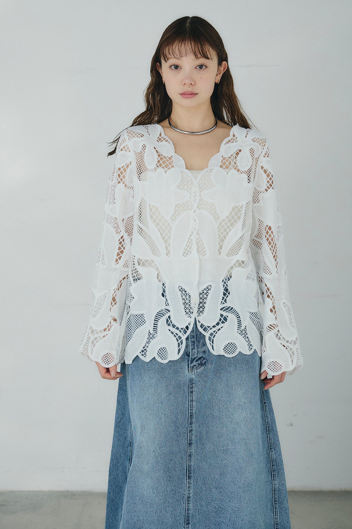 繊細なフラワー刺繍レースが目を惹くデザインブラウス。立体感のあるレースが軽やかな透け感を生み、スタイリングに奥行きを添えます。スカラップ仕様のネックラインと裾がさりげないアクセントになり、1枚で印象に残る仕上がりに。ゆとりのあるシルエットとボリュームスリーブが自然な抜け感を生み、リラックスした着心地も魅力です。デニムでカジュアルにまとめるのはもちろん、スラックスやスカートと合わせたきれいめな着こなしにも好相性。季節の変わり目からロングシーズン取り入れやすい主役級の一着です。