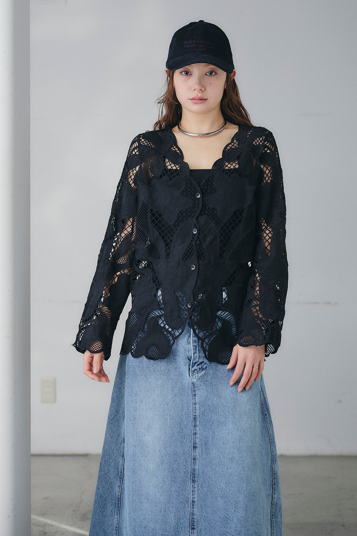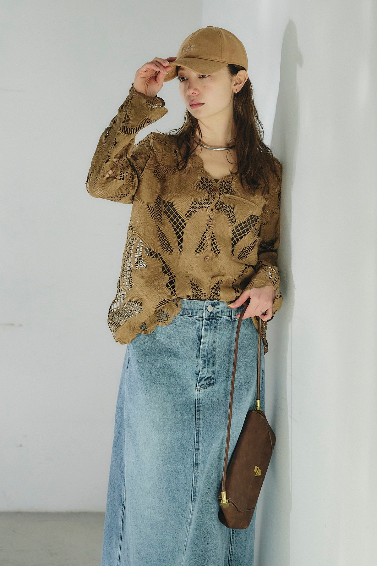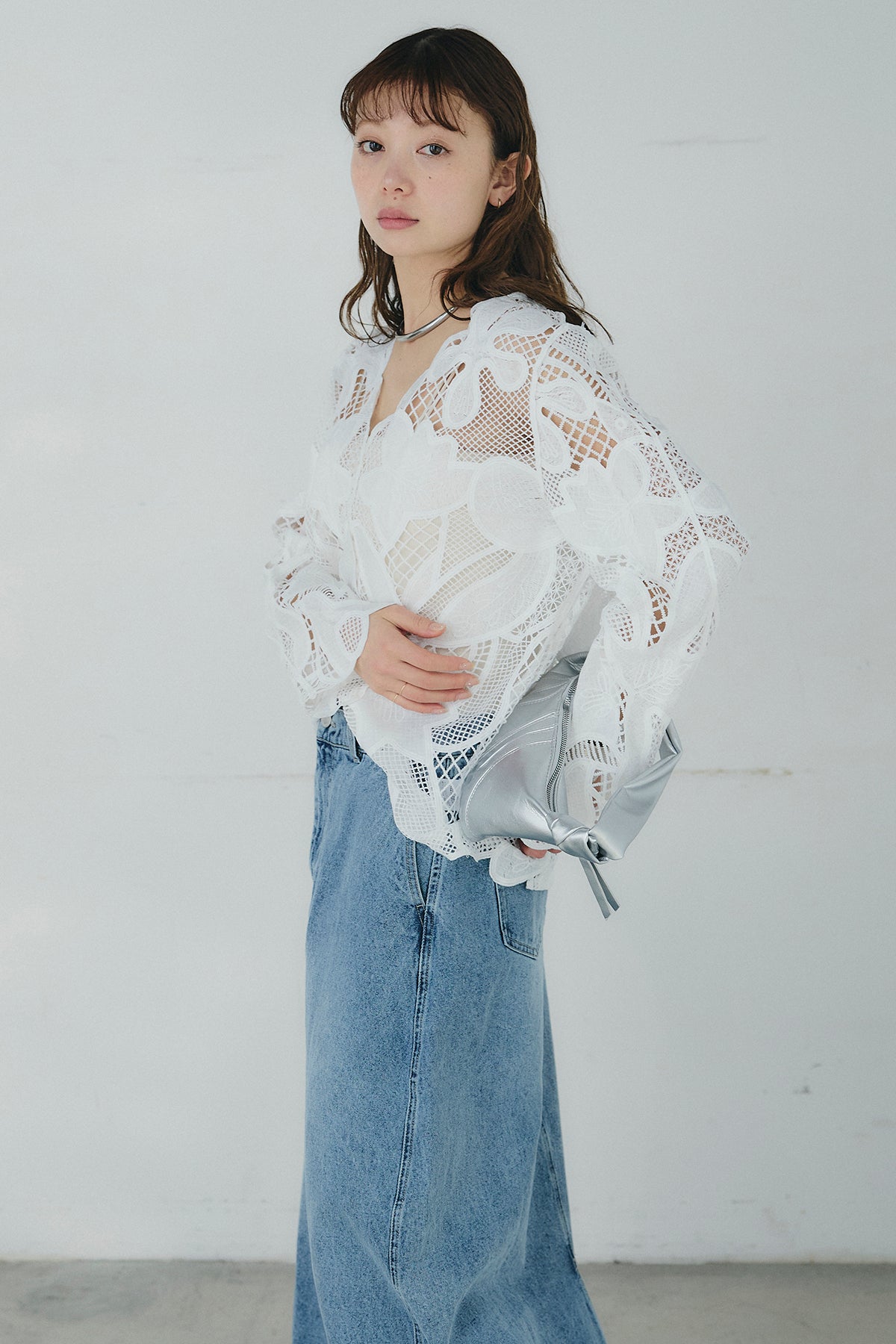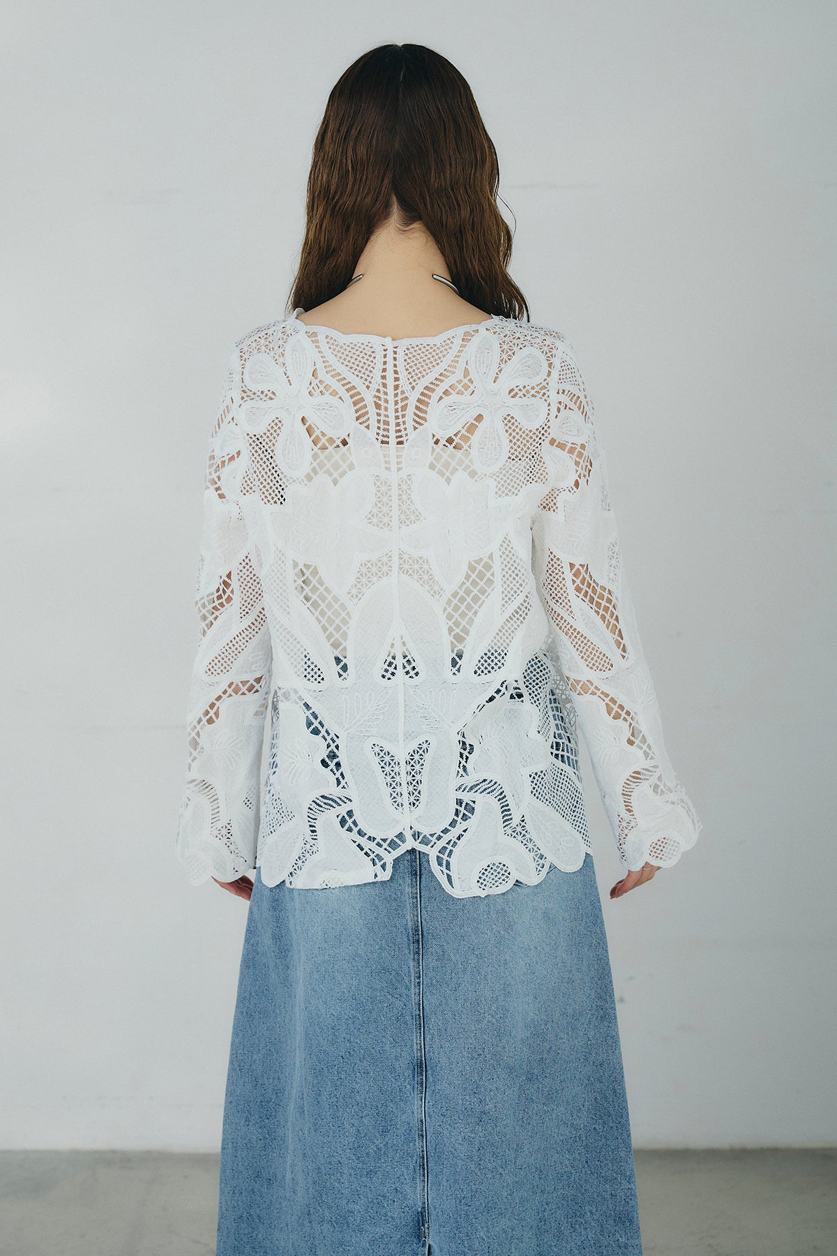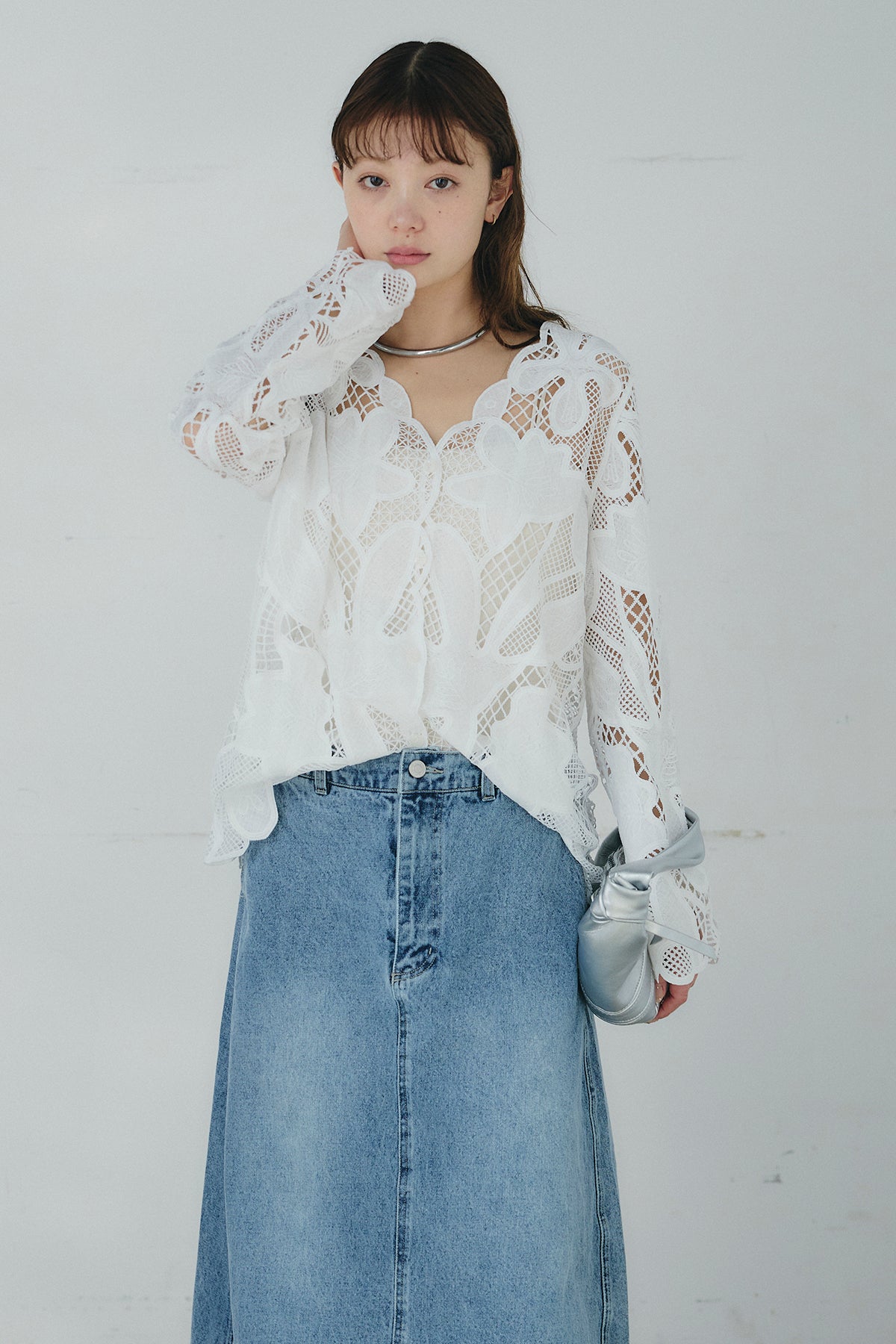 繊細なフラワー刺繍レースが目を惹くデザインブラウス。立体感のあるレースが軽やかな透け感を生み、スタイリングに奥行きを添えます。スカラップ仕様のネックラインと裾がさりげないアクセントになり、1枚で印象に残る仕上がりに。ゆとりのあるシルエットとボリュームスリーブが自然な抜け感を生み、リラックスした着心地も魅力です。デニムでカジュアルにまとめるのはもちろん、スラックスやスカートと合わせたきれいめな着こなしにも好相性。季節の変わり目からロングシーズン取り入れやすい主役級の一着です。
